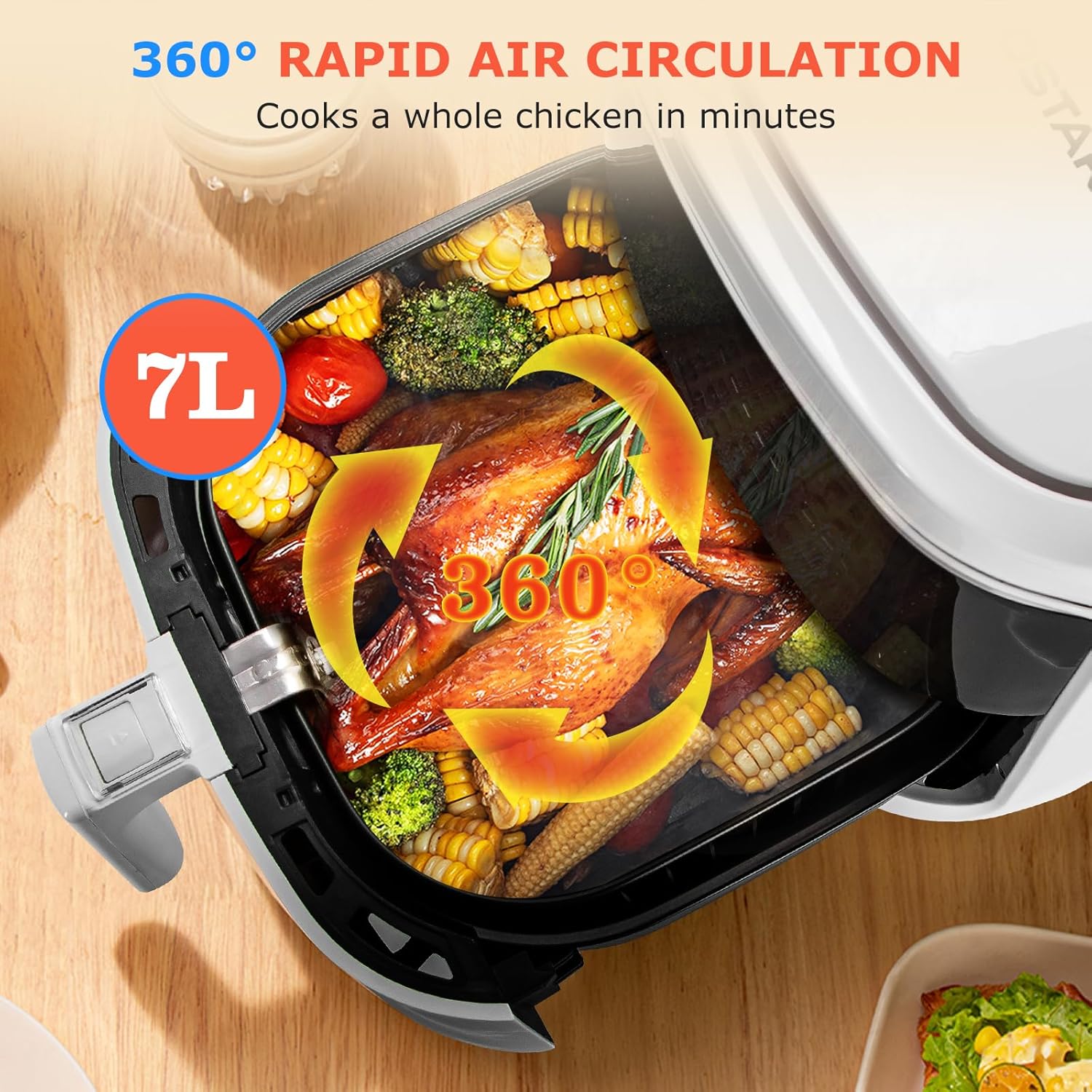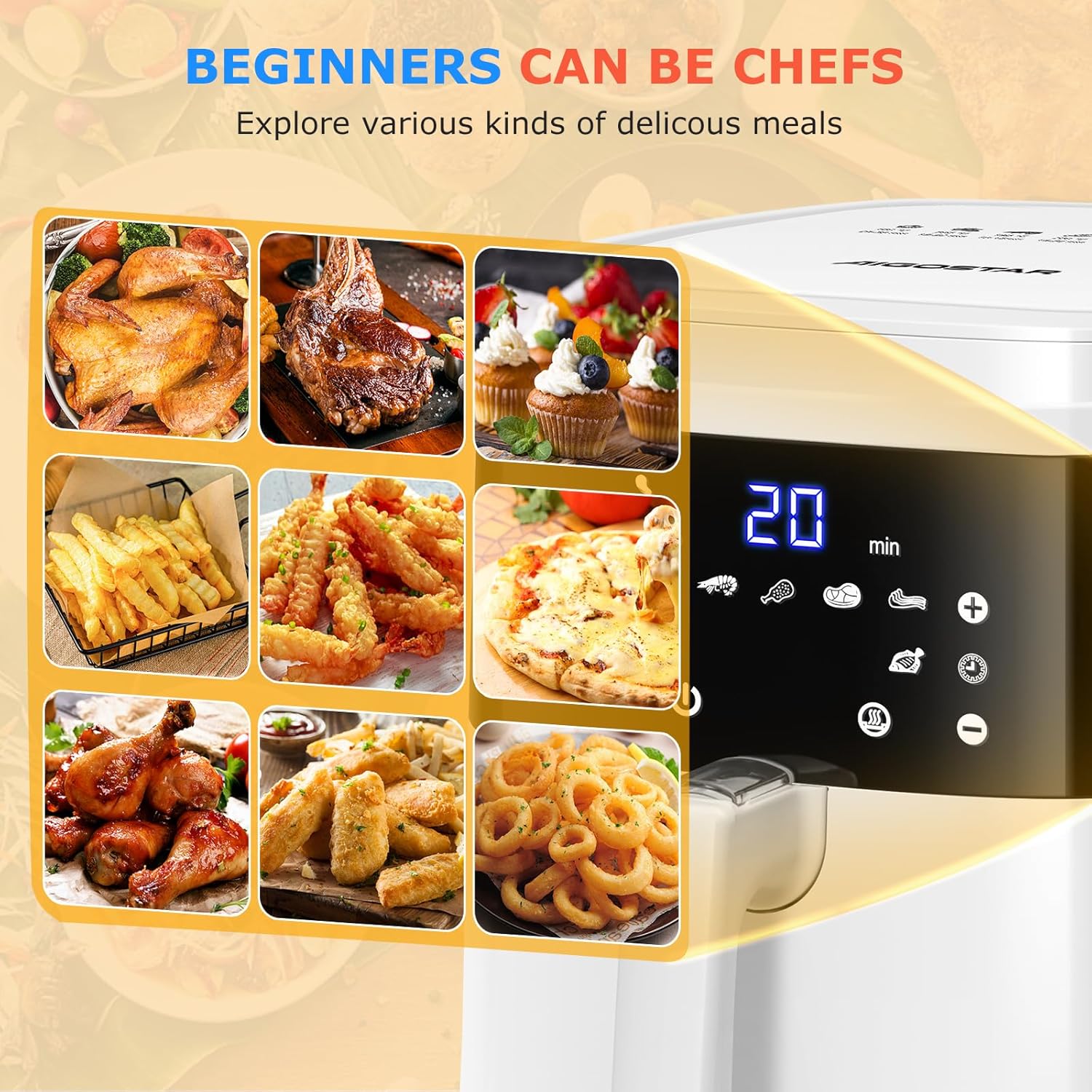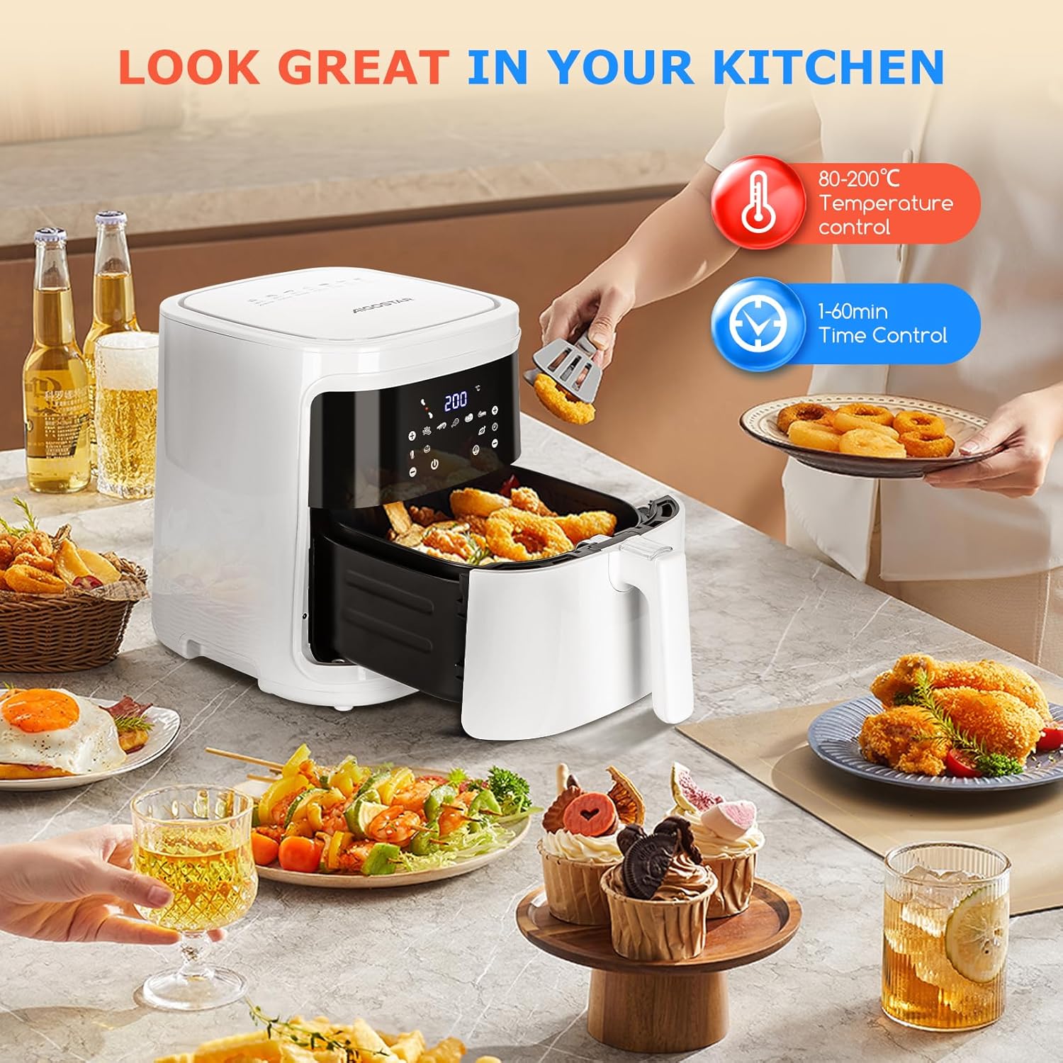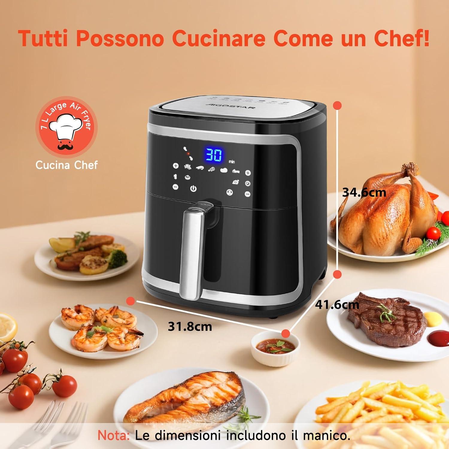 Aigostar Cube 30IBT - Friggitrice ad Aria XXL, 1900W, 7L air fryer, Pannello touch a led, 20- Ricette, Cestello removibile anti aderente, Mantenimento calore, 7 Scelte già programmate