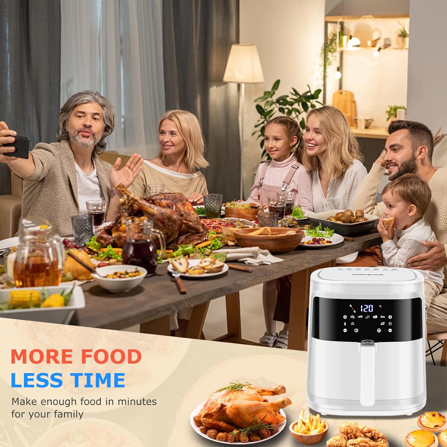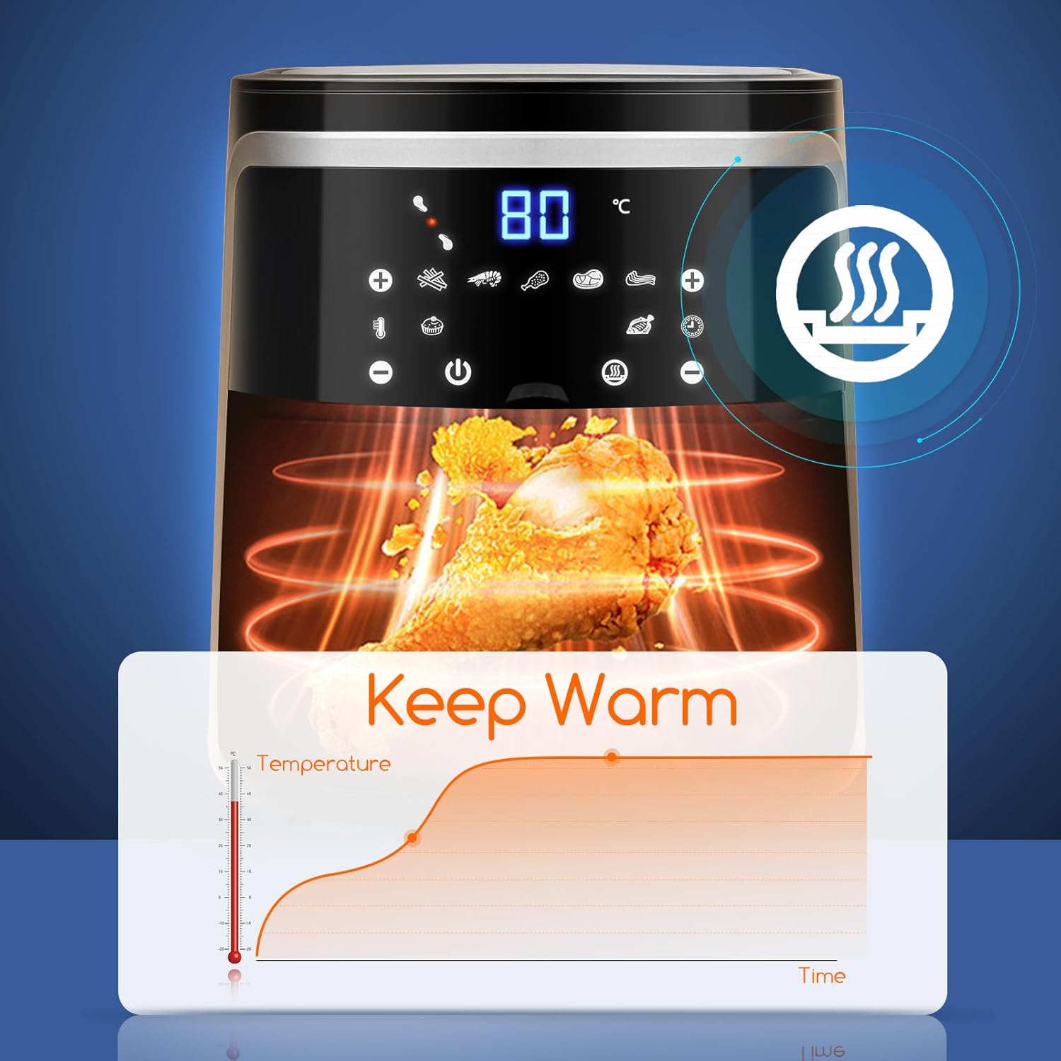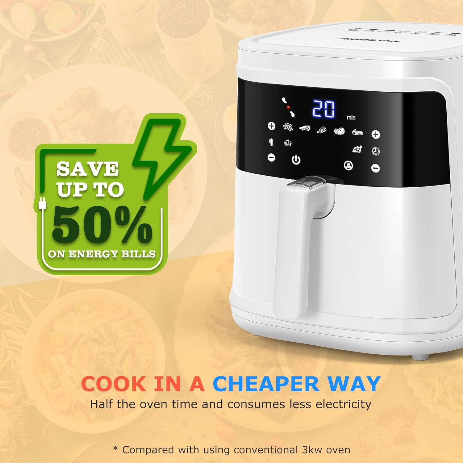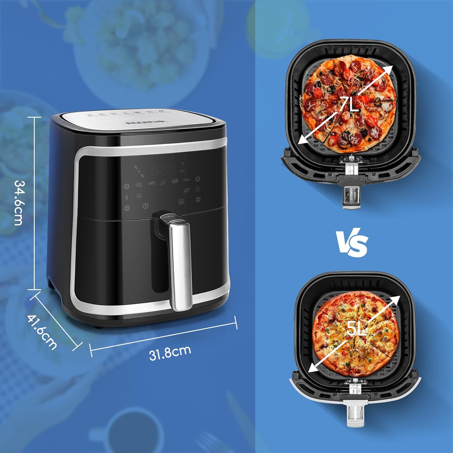 Aigostar Cube 30IBT - Friggitrice ad Aria XXL, 1900W, 7L air fryer, Pannello touch a led, 20- Ricette, Cestello removibile anti aderente, Mantenimento calore, 7 Scelte già programmate
