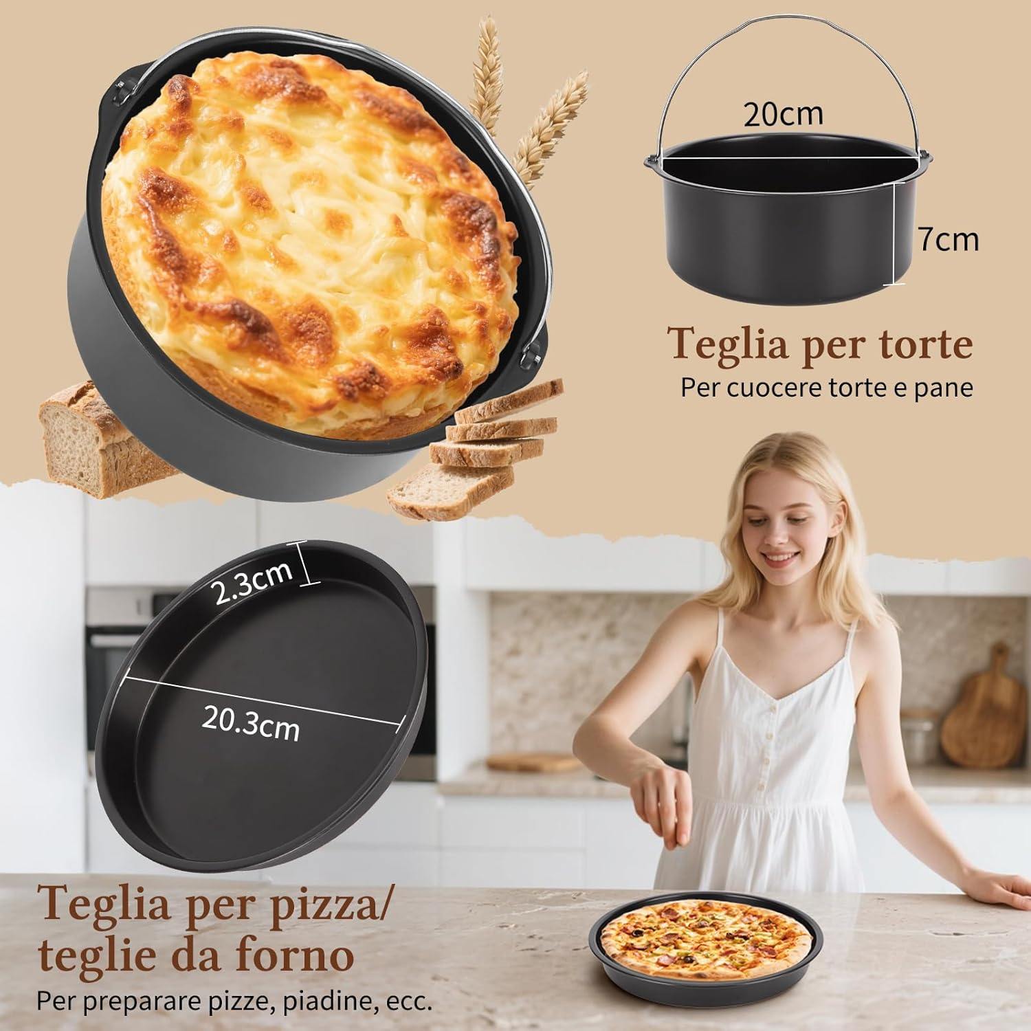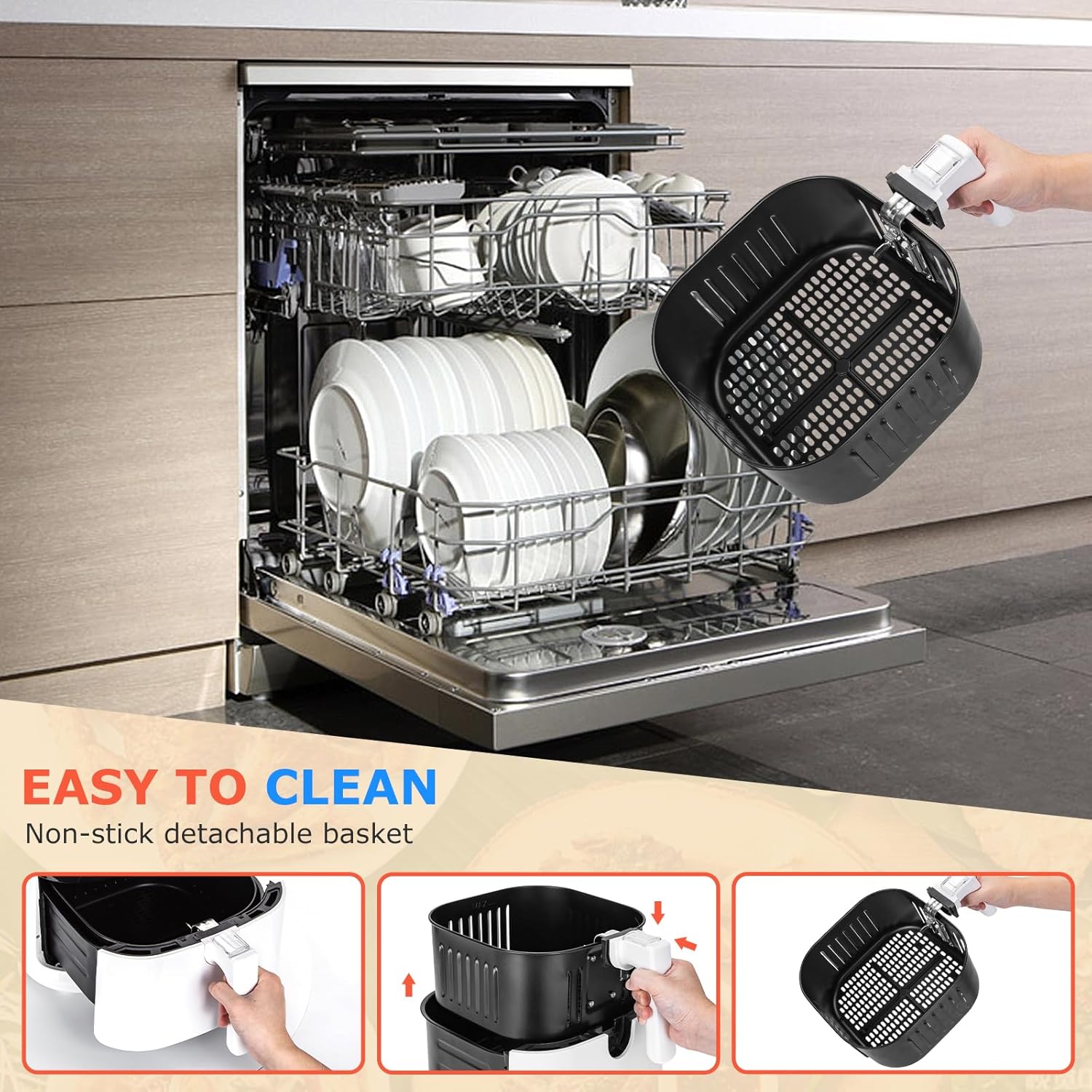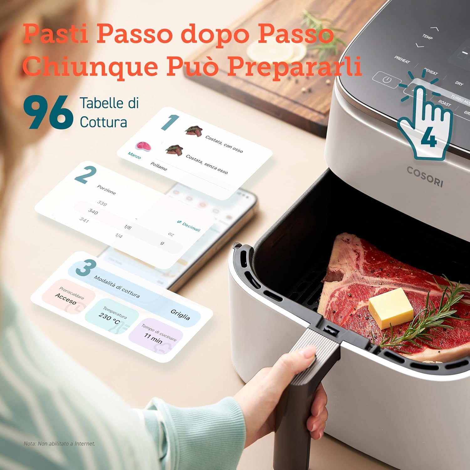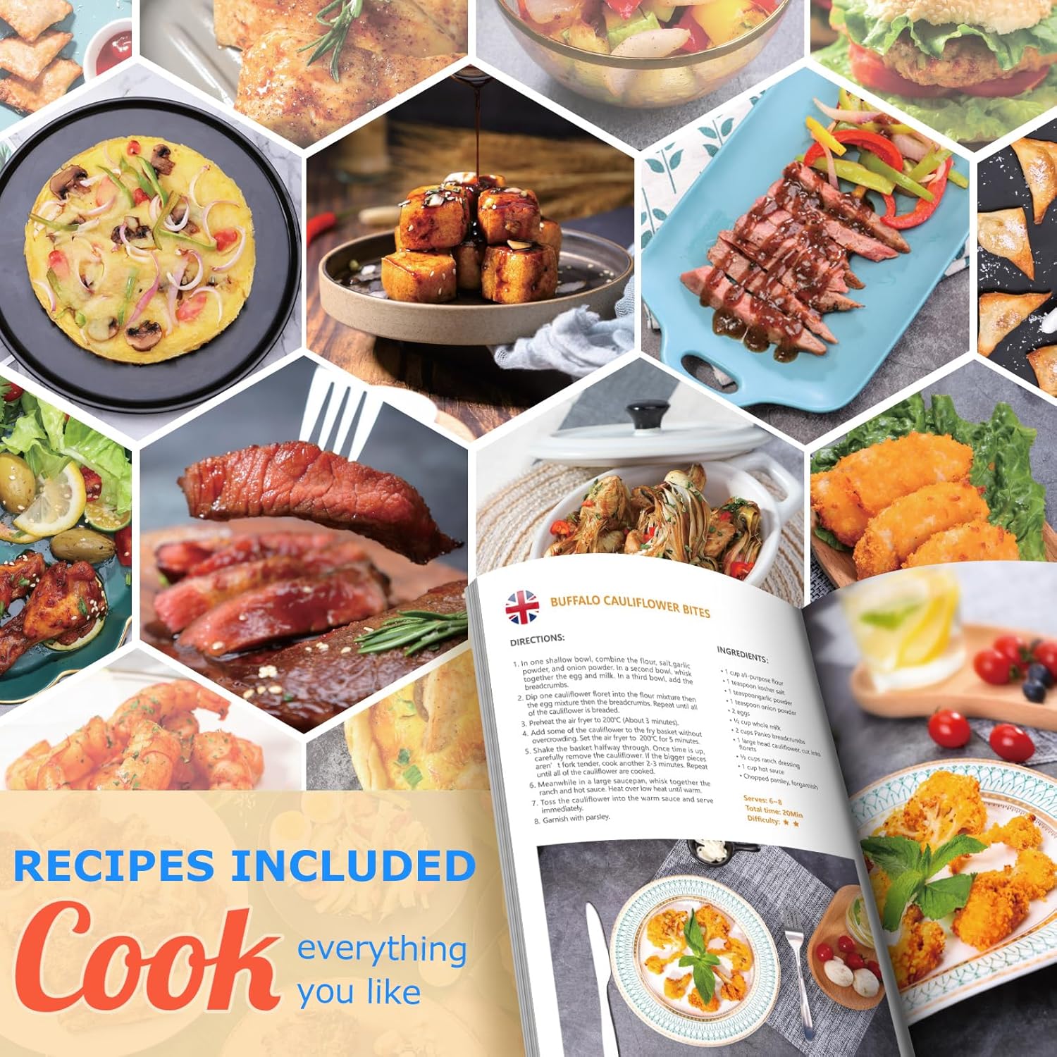 Aigostar Cube 30IBT - Friggitrice ad Aria XXL, 1900W, 7L air fryer, Pannello touch a led, 20- Ricette, Cestello removibile anti aderente, Mantenimento calore, 7 Scelte già programmate