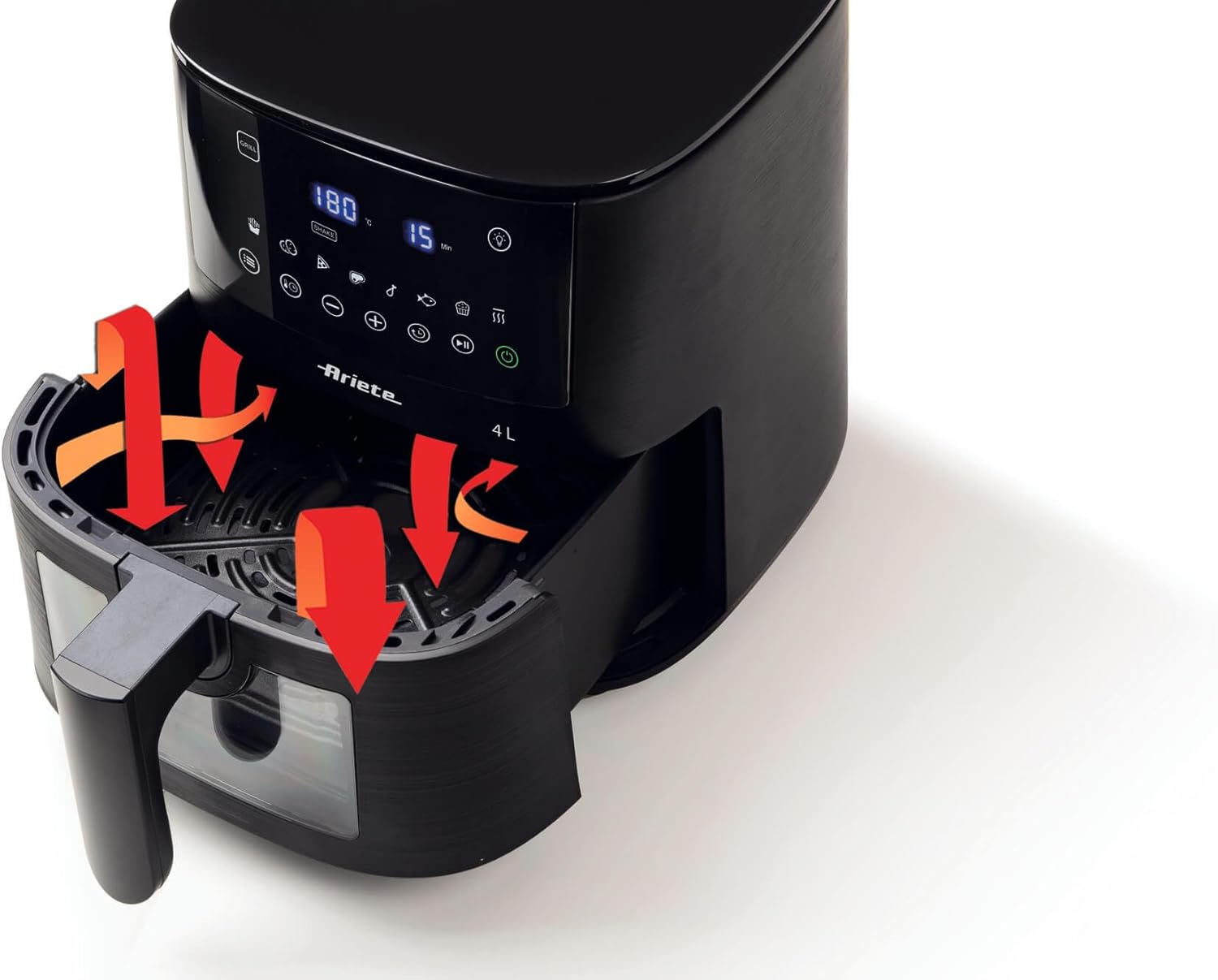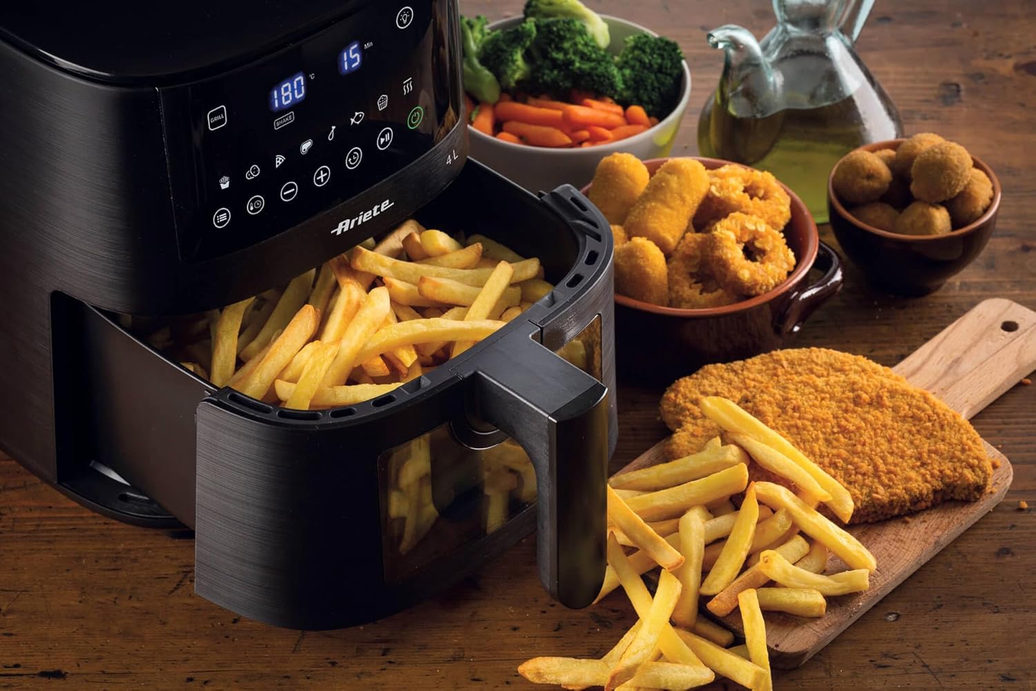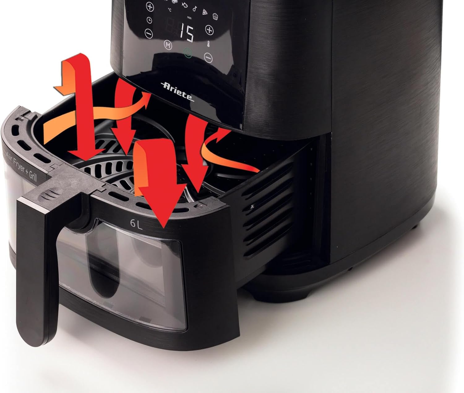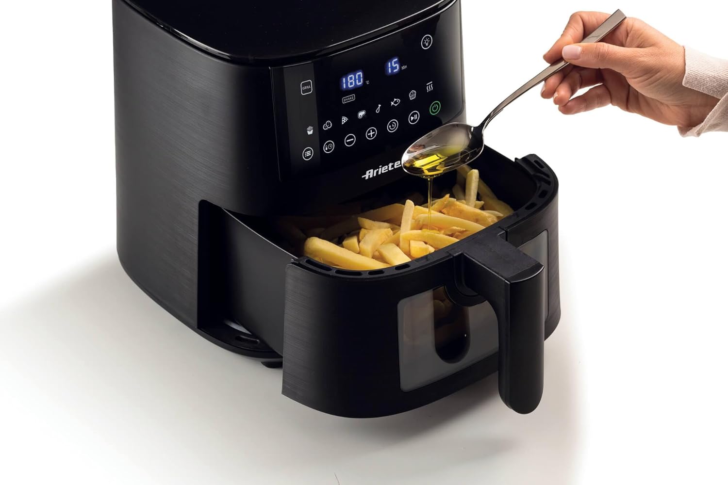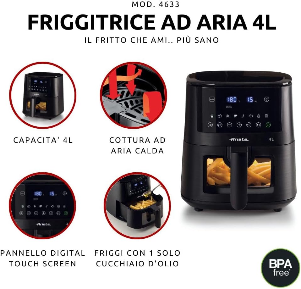 Ariete 4630 Air Fryer 9L, 1500 W, 9L Capacity, 2.5 kg Cooking Capacity, 8 Preset Programmes, Temperature up to 200°, Transparent Basket for Cooking Control, Black