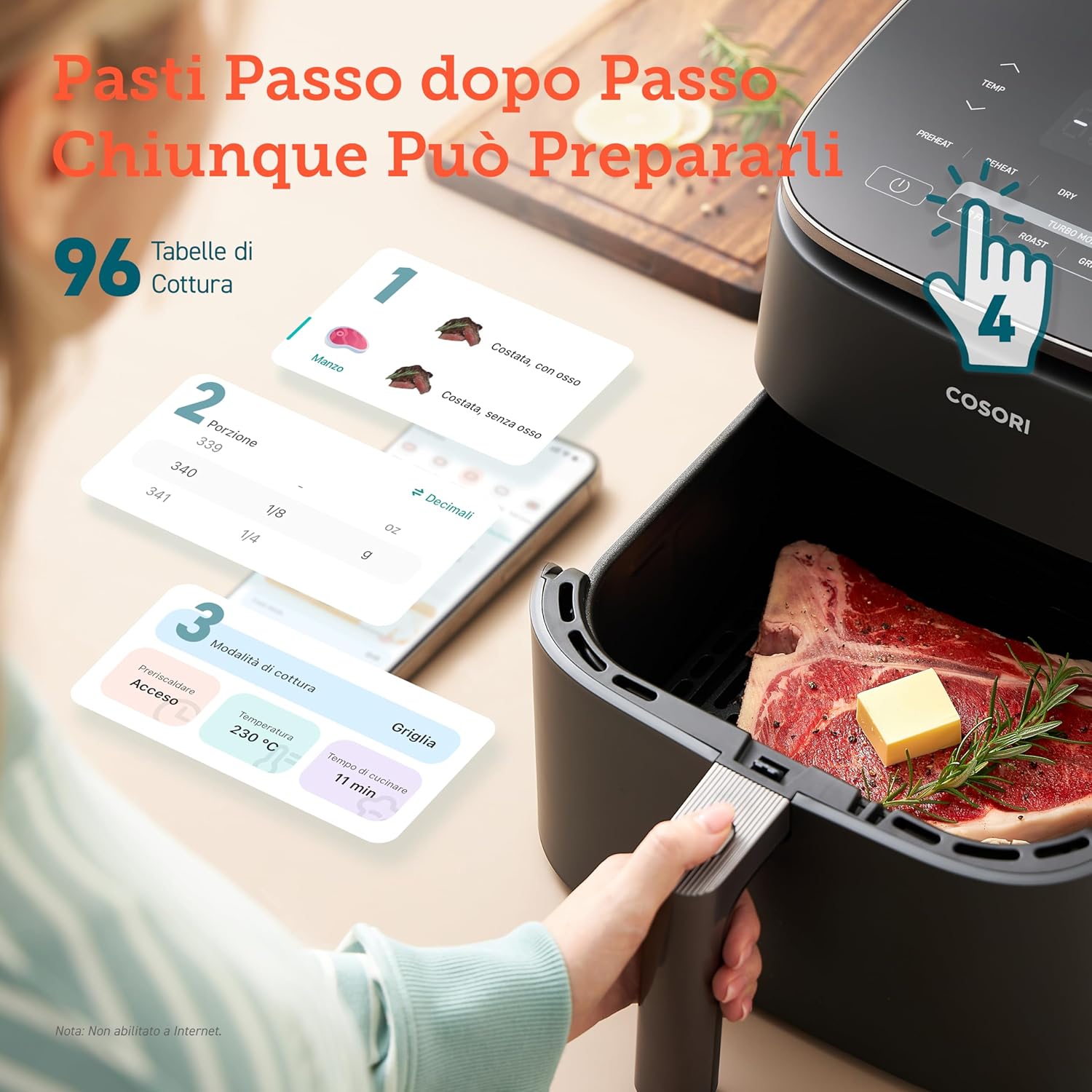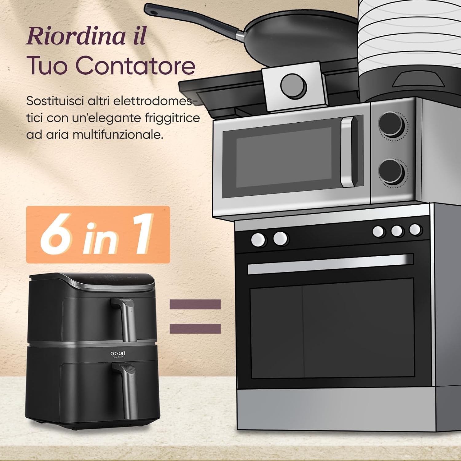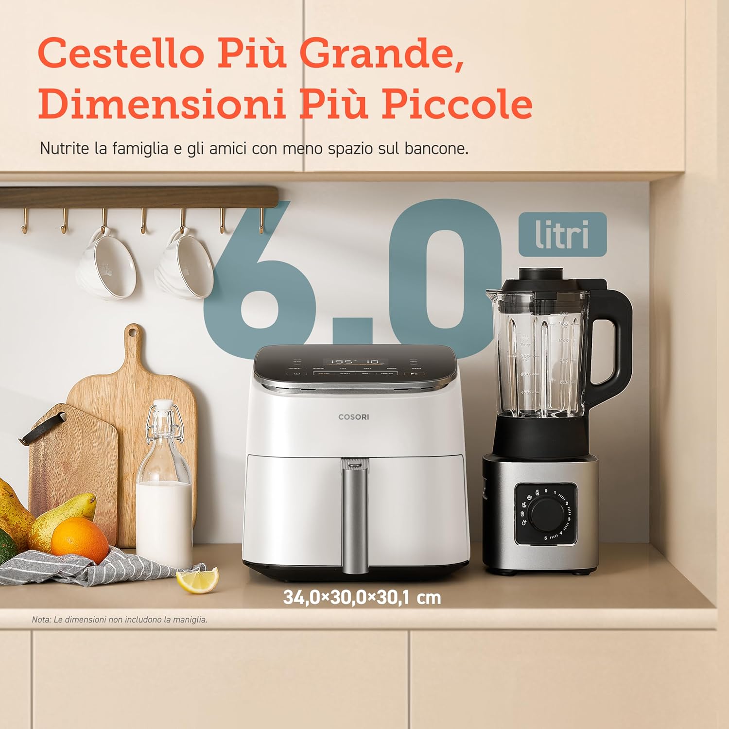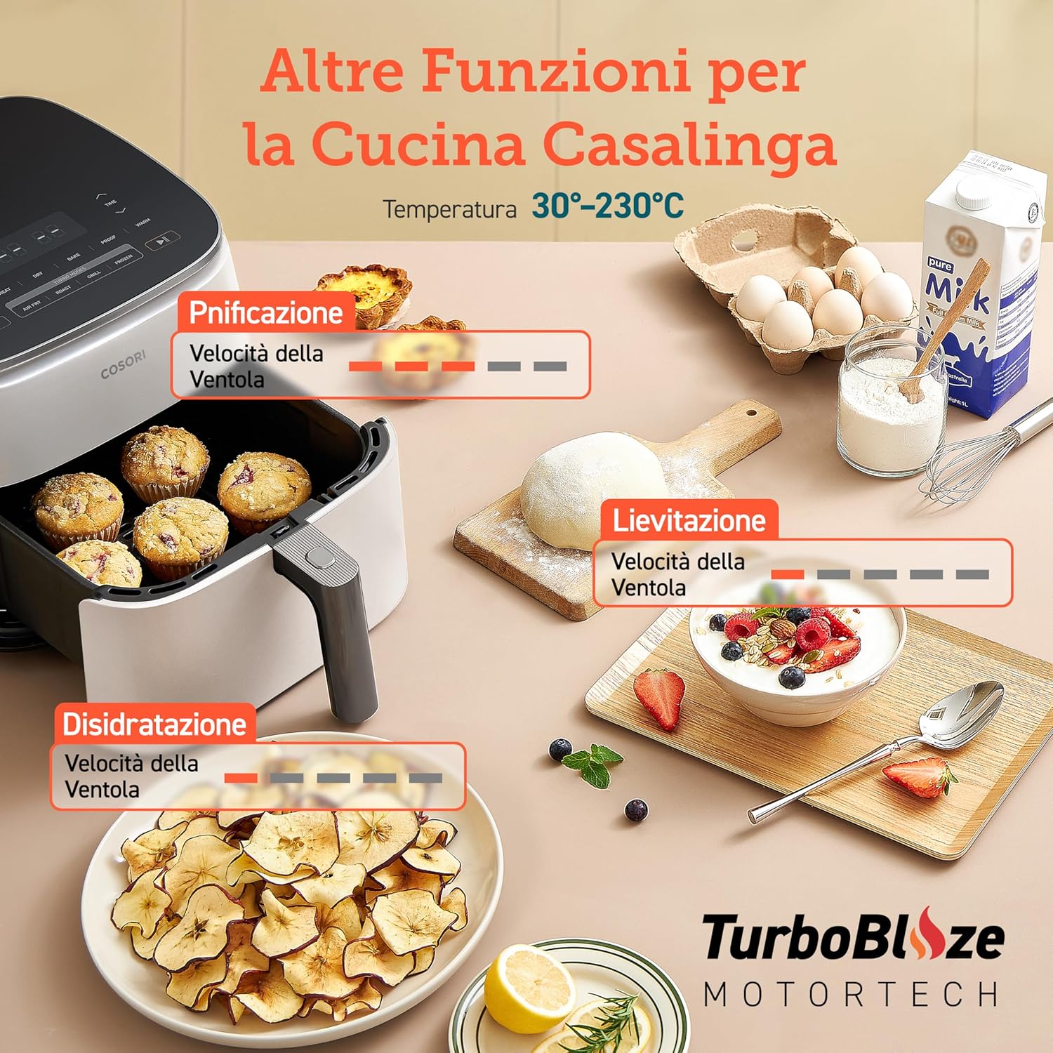 COSORI Friggitrice ad Aria Turbo Blaze 6L (1,36Kg), Air Fryer con DC Motore Tecnologia, 9 Funzioni & 5 Velocità della Ventola Automatica, 110 Ricette & 96 Tabelle di Cottura degli Ingredienti, 1725W
