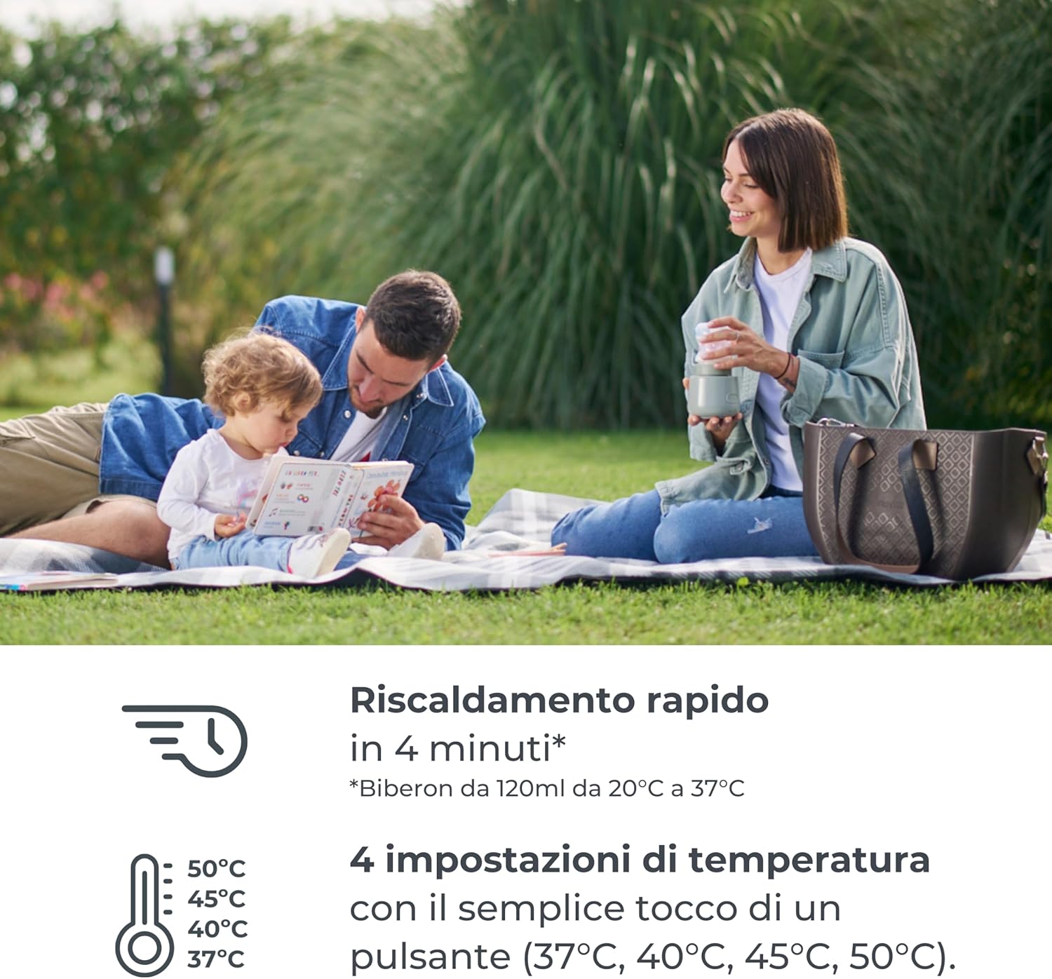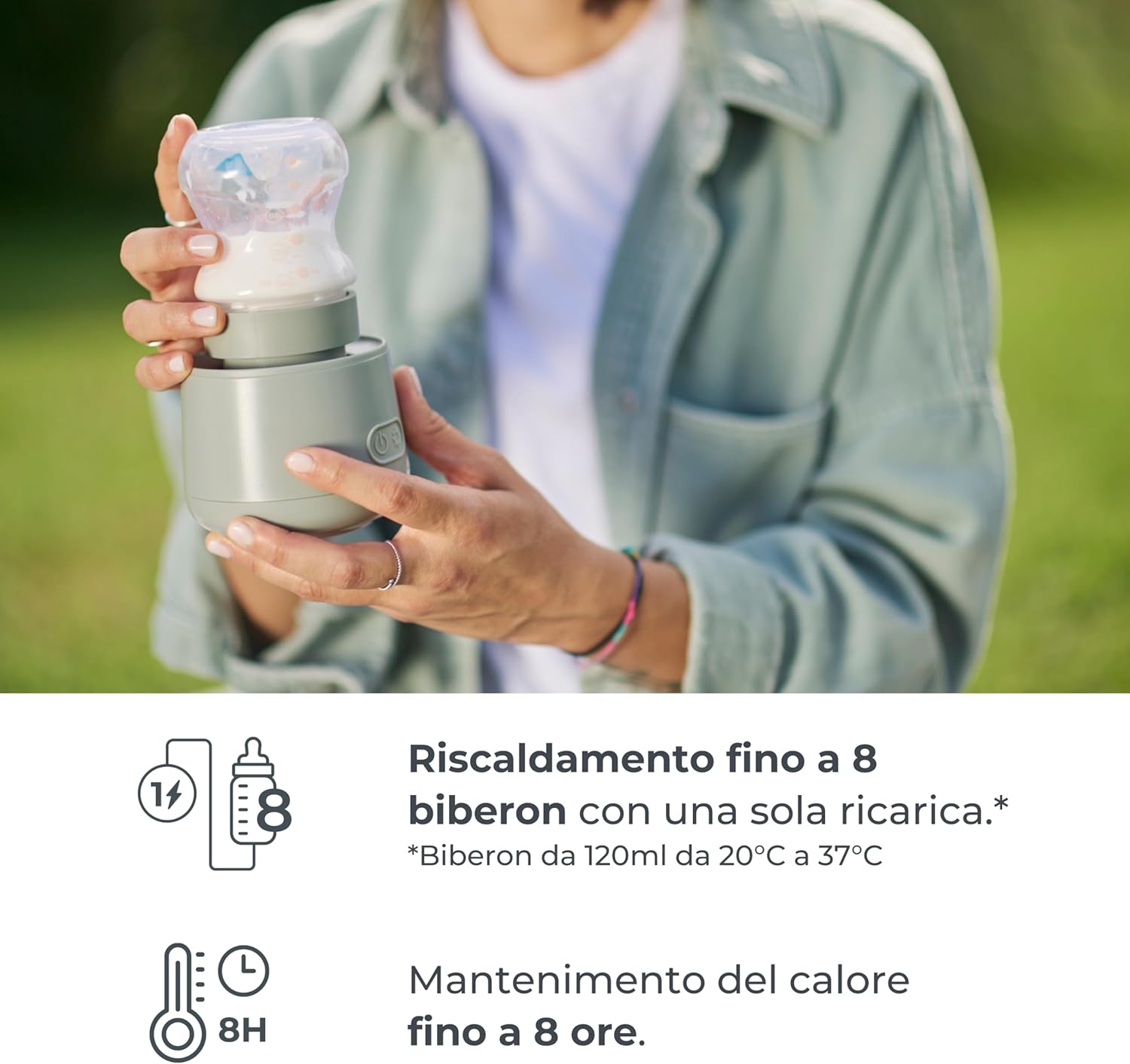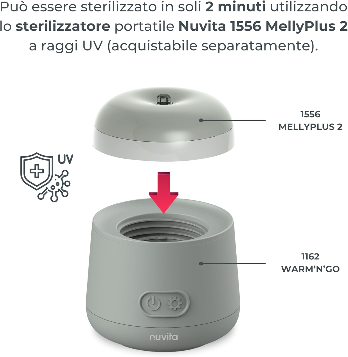 Nuvita Scaldabiberon Portatile Universale Nuvita 1162 Warm’n’Go con USB - Riscaldamento Rapido, 4 Impostazioni di Temperatura, Facile da trasportare con Chiusura Ermetica, Scalda fino a 8 Biberon