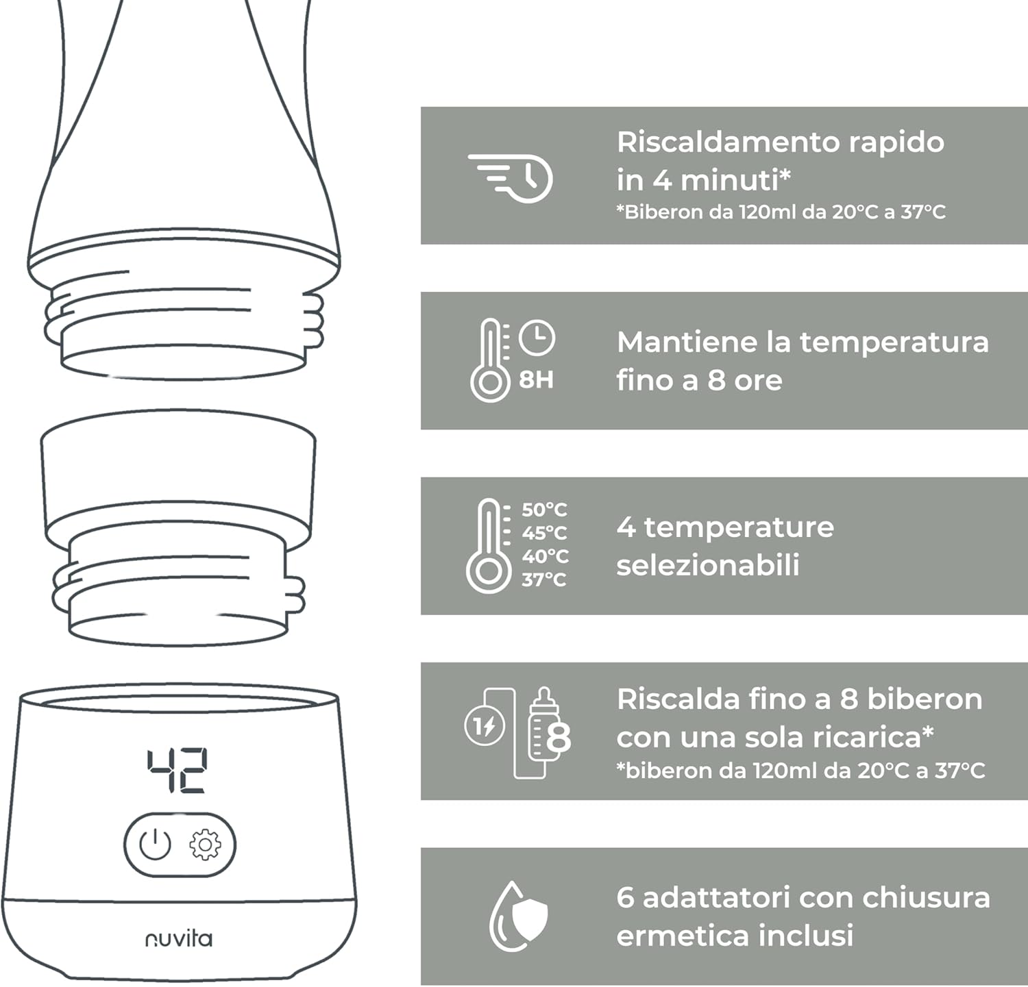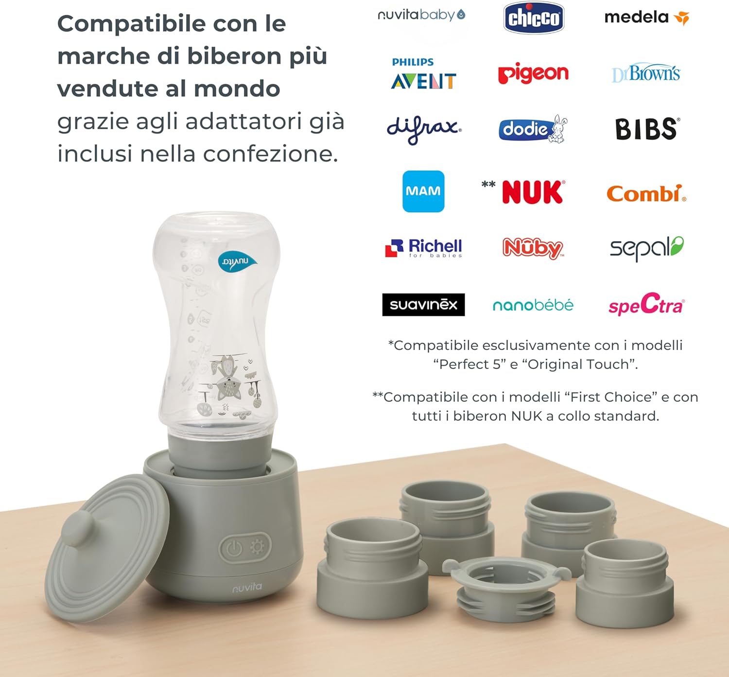 Nuvita 1163 Warm’n’Mix Scaldabiberon Portatile a batteria con Funzione di Riscaldamento e Mescolamento – Riscaldamento Rapido in 3 Minuti, 4 Impostazioni di Temperatura, Compatibilità Universale