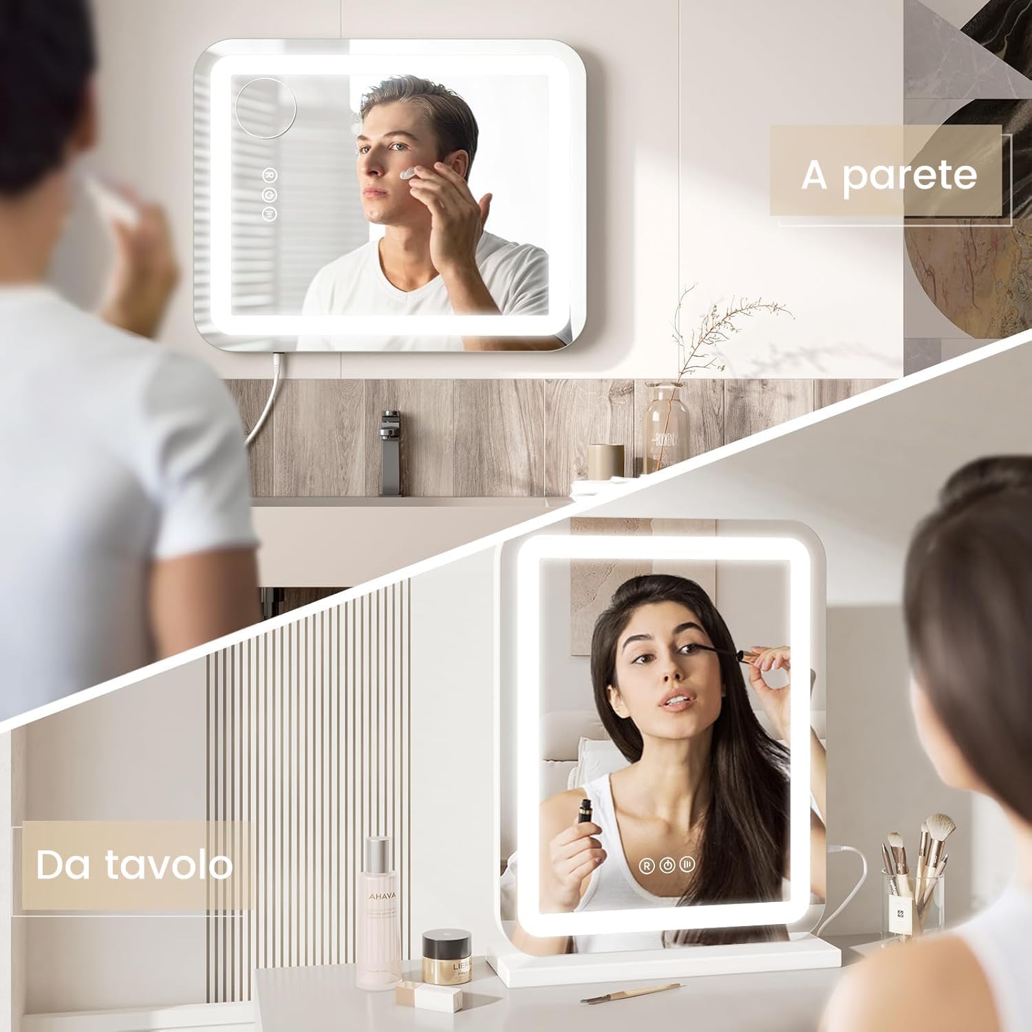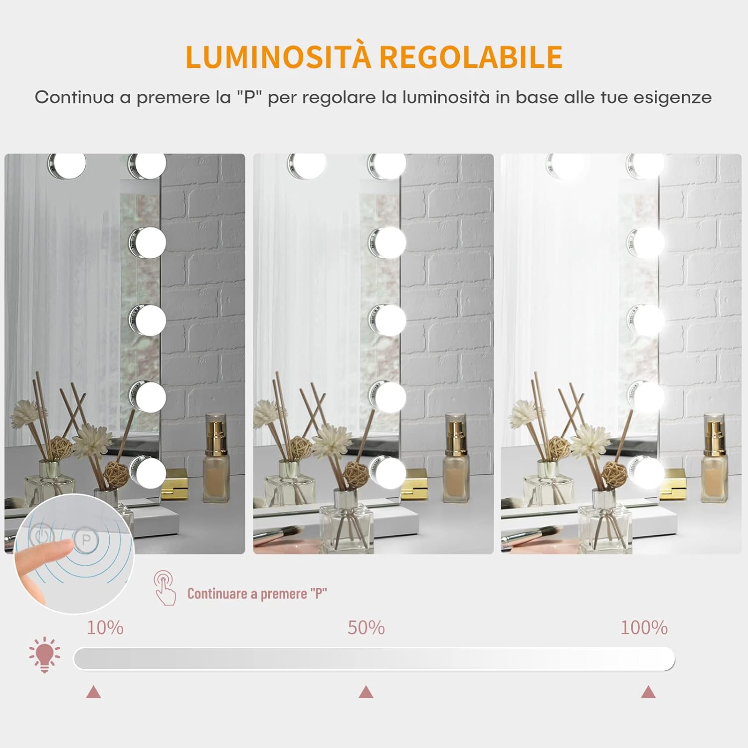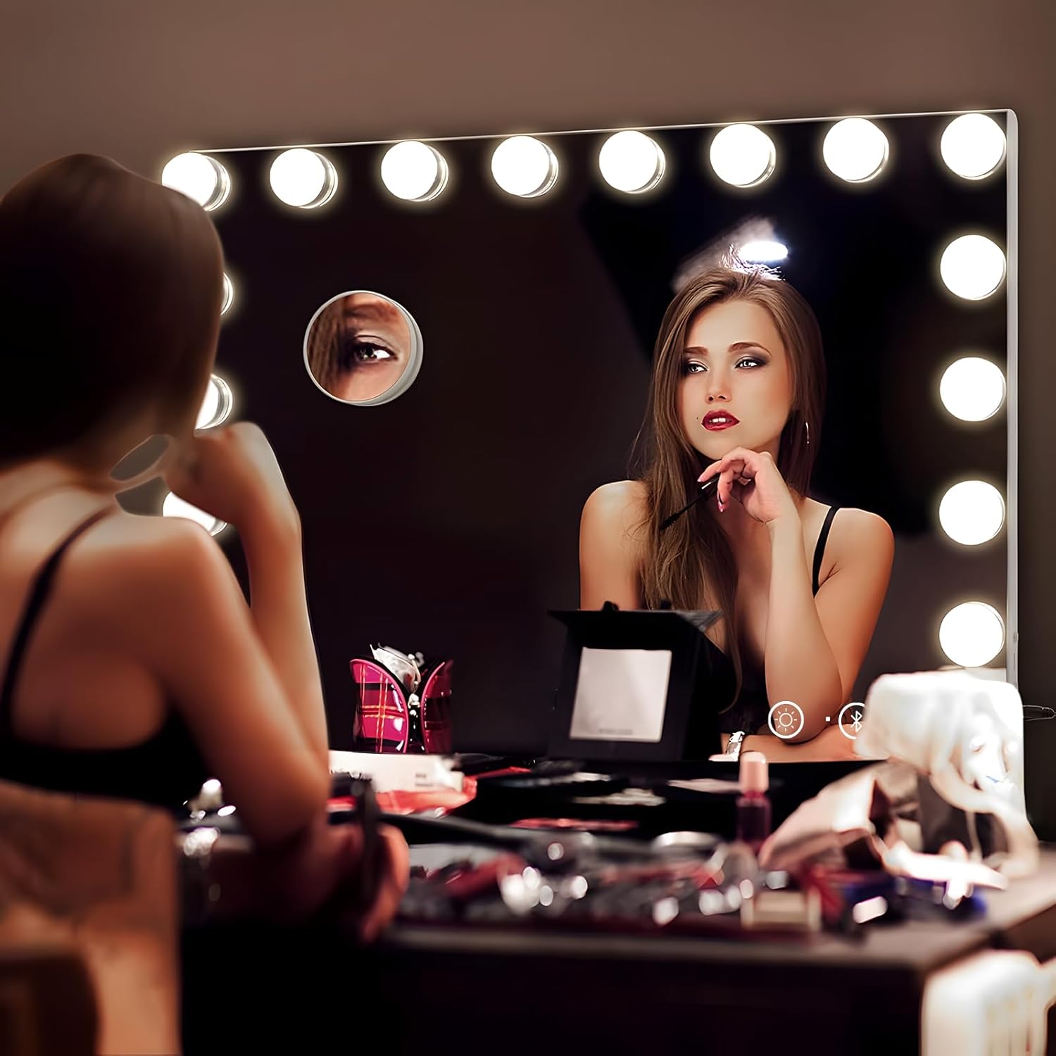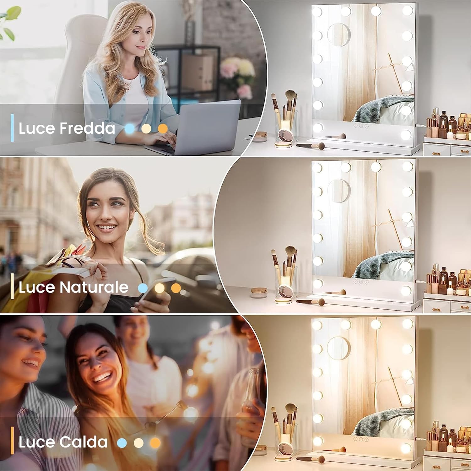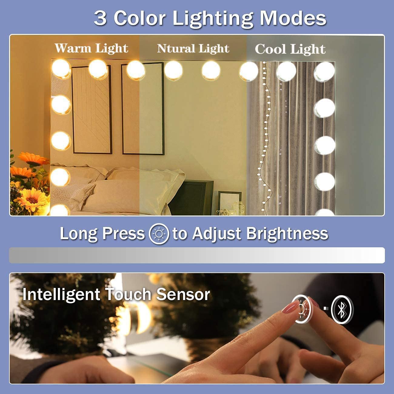 LuxeVue Specchio da Trucco con Luci luce Hollywood Specchio con a 3 colori e LED dimmerabili Specchio Hollywood da Tavolo Touch Screen Regolabile a 360 Gradi