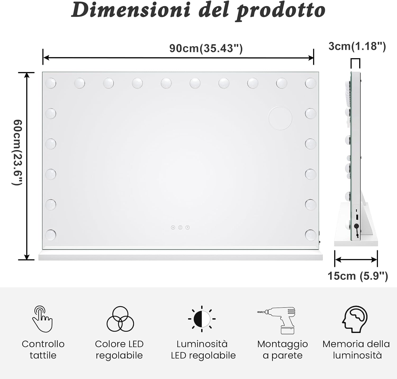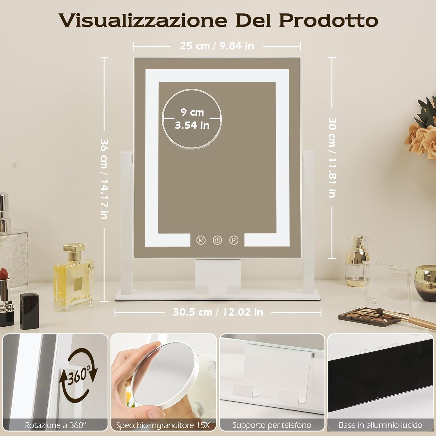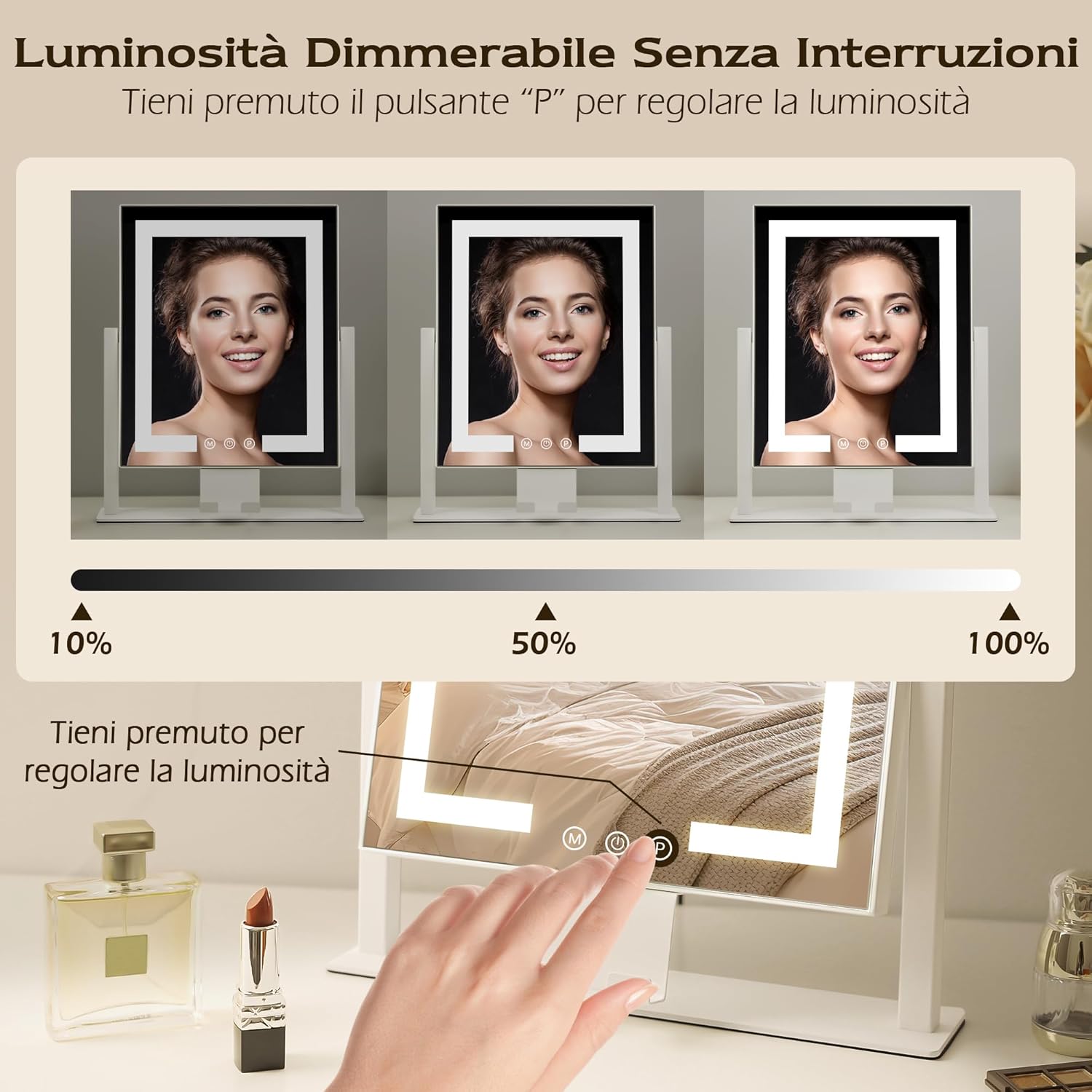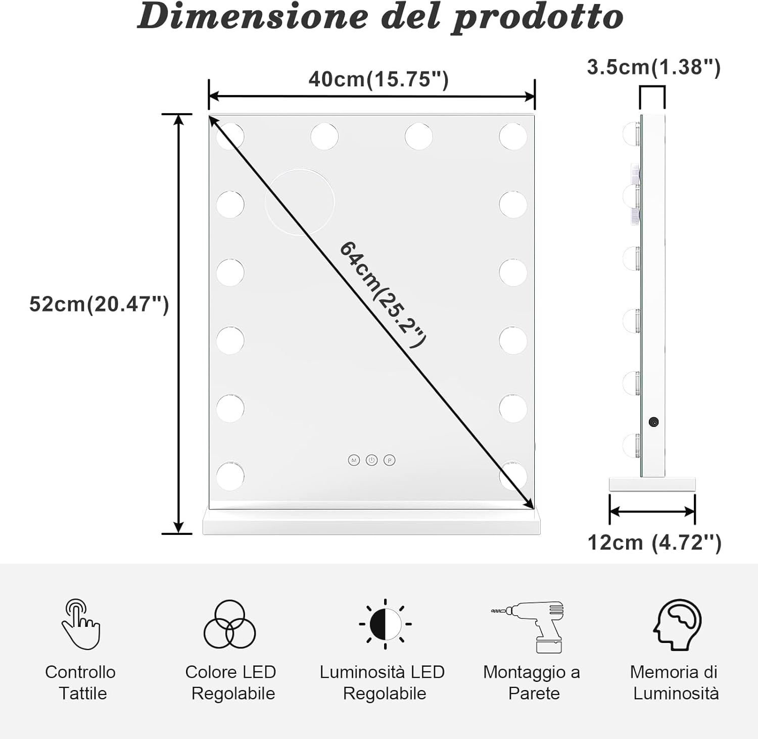 LuxeVue Specchio da Trucco con Luci luce Hollywood Specchio con a 3 colori e LED dimmerabili Specchio Hollywood da Tavolo Touch Screen Regolabile a 360 Gradi