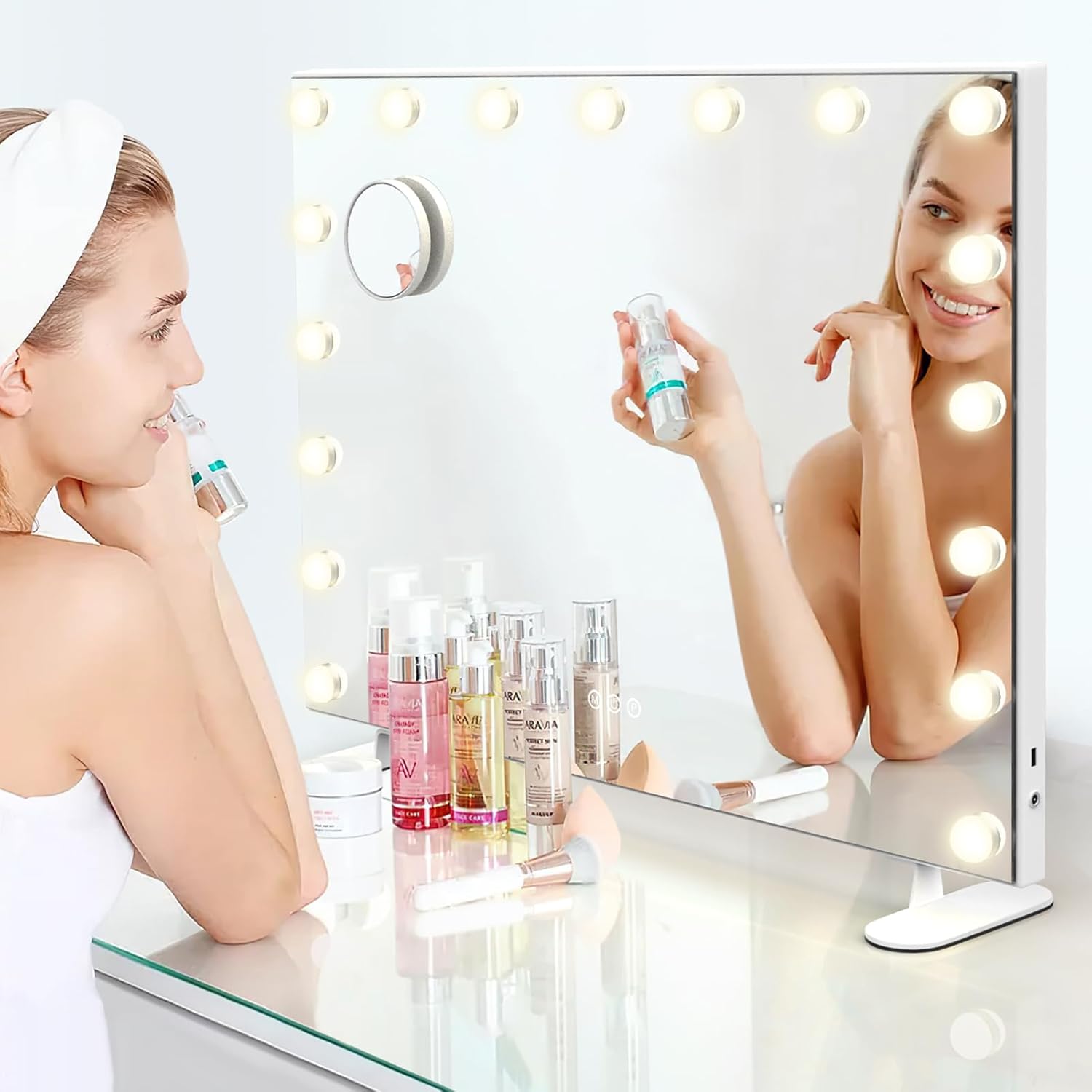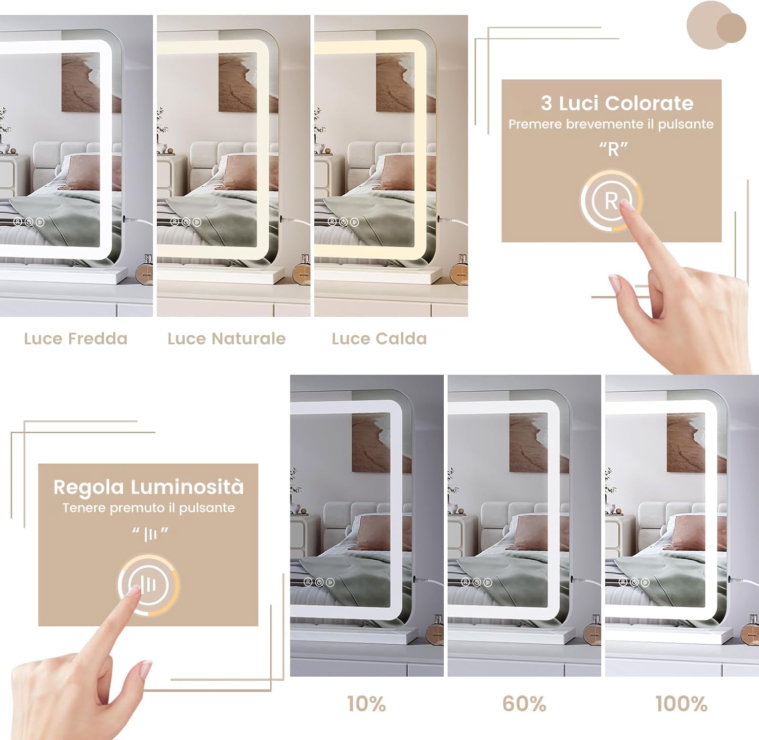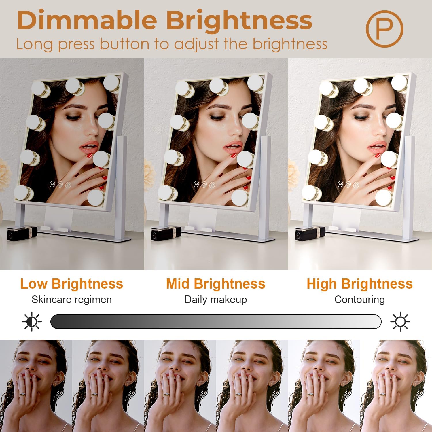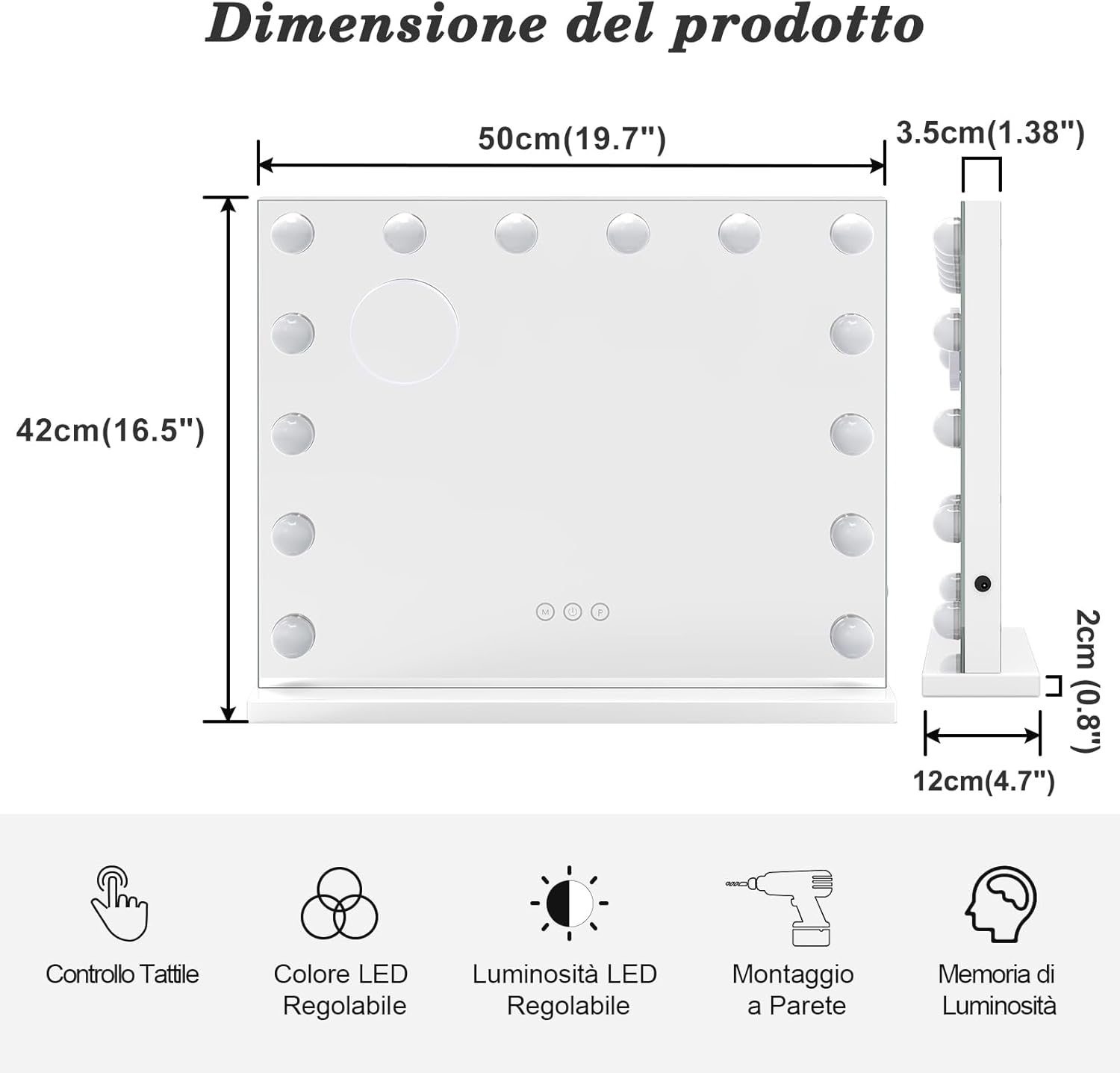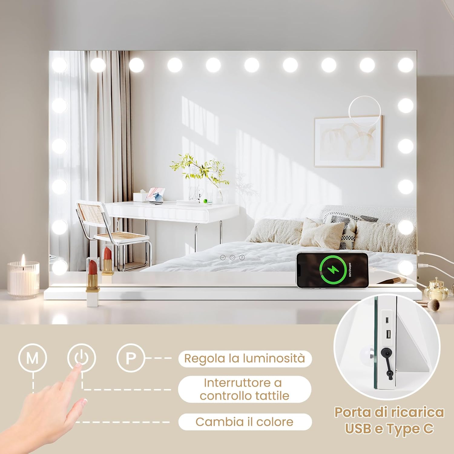 LuxeVue Specchio da Trucco con Luci luce Hollywood Specchio con a 3 colori e LED dimmerabili Specchio Hollywood da Tavolo Touch Screen Regolabile a 360 Gradi