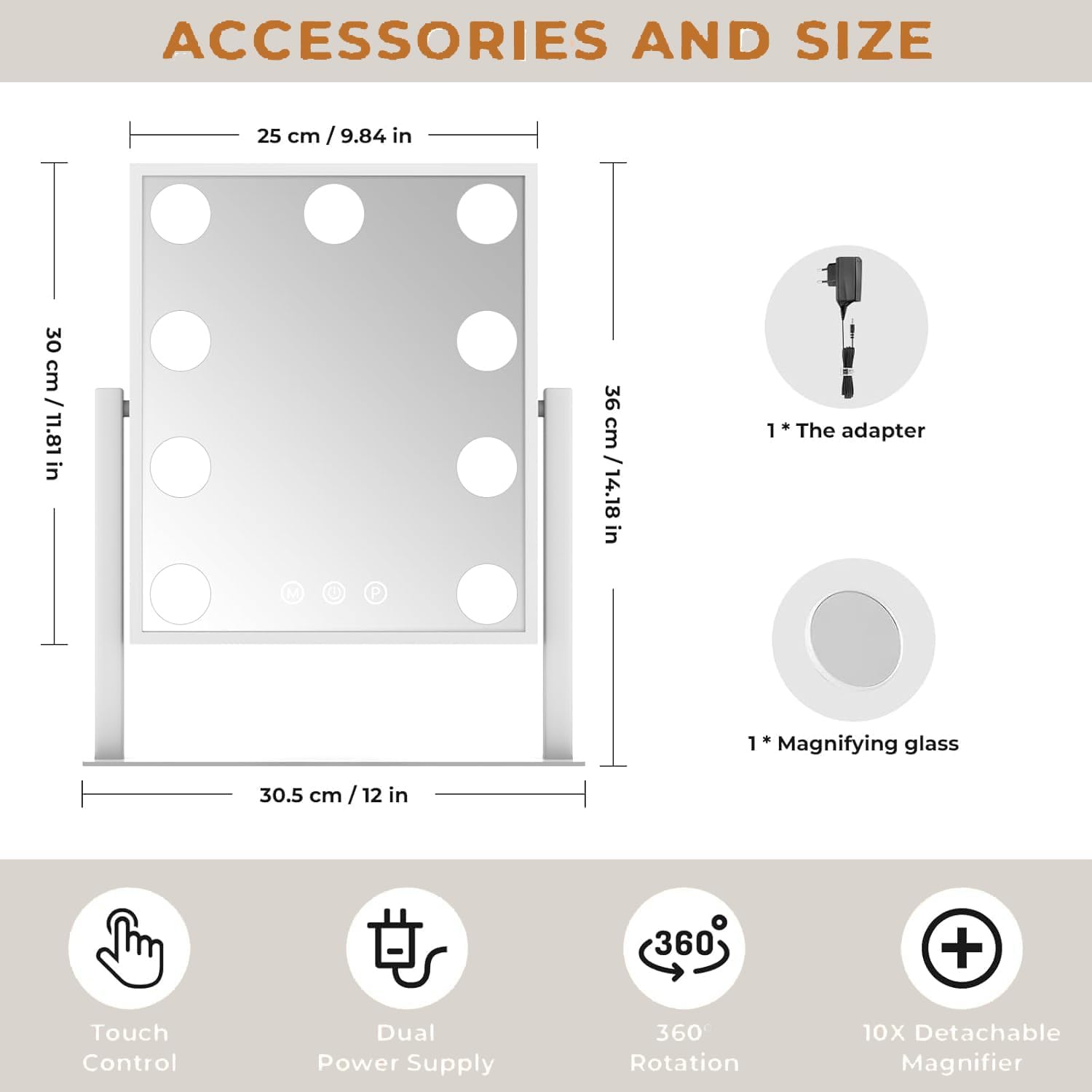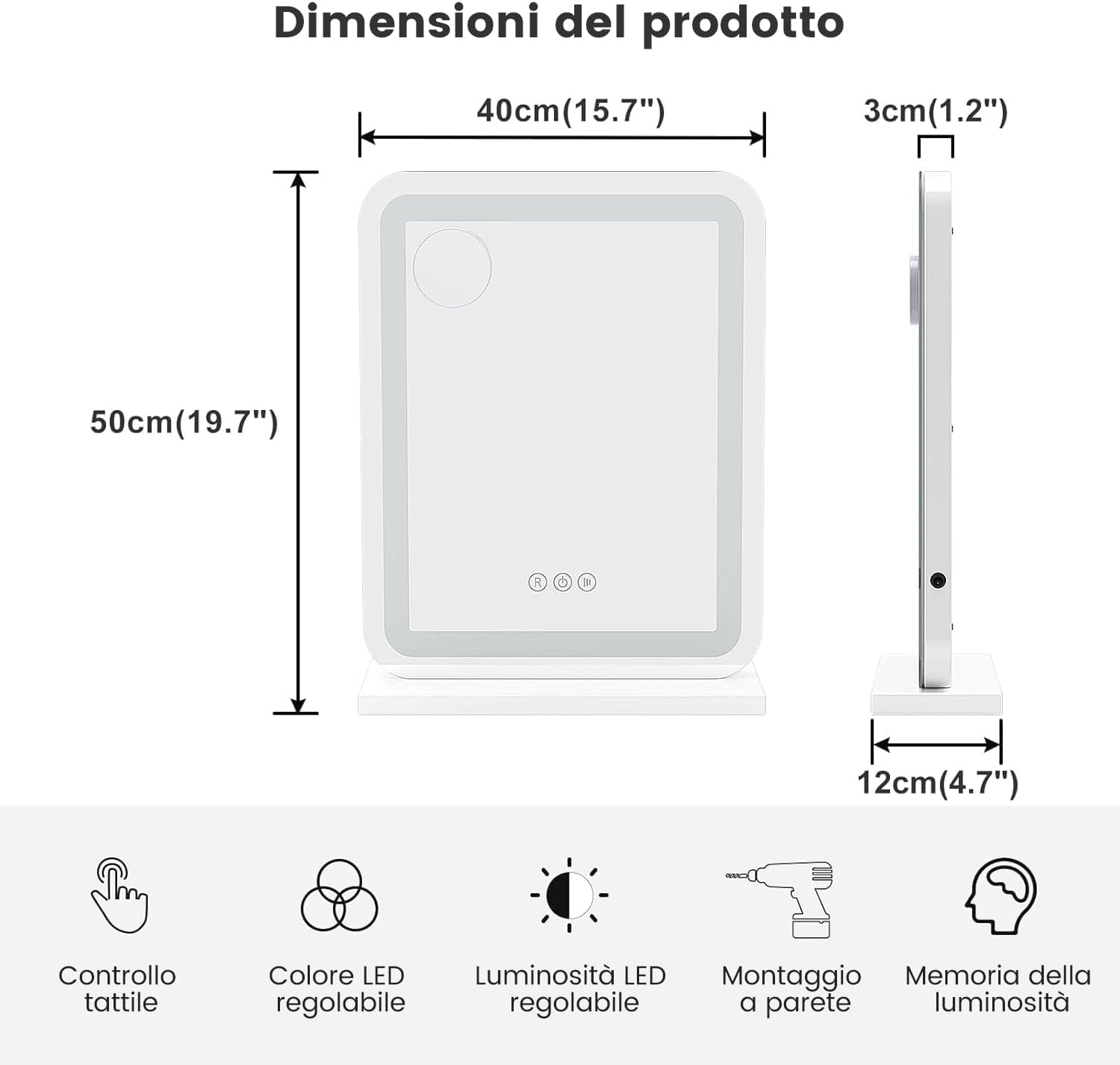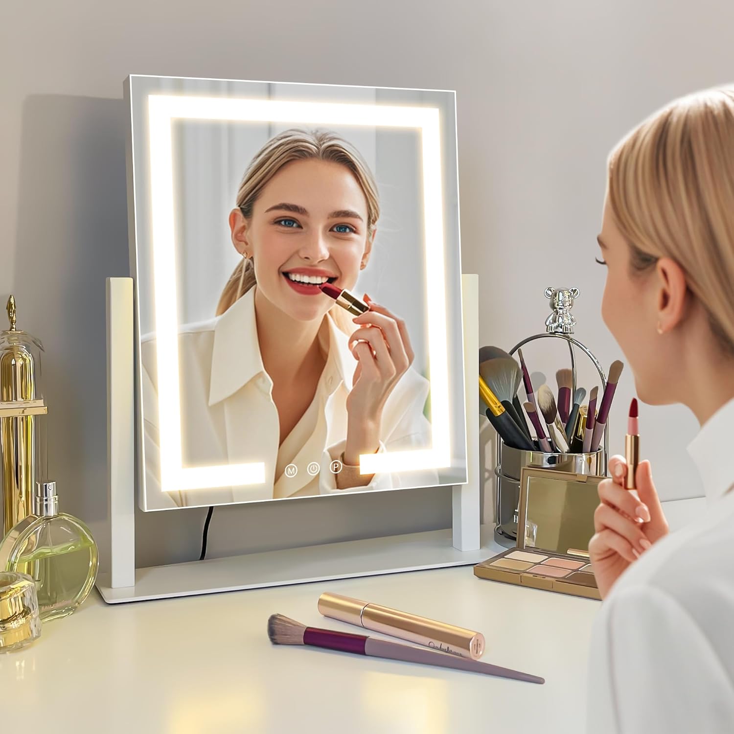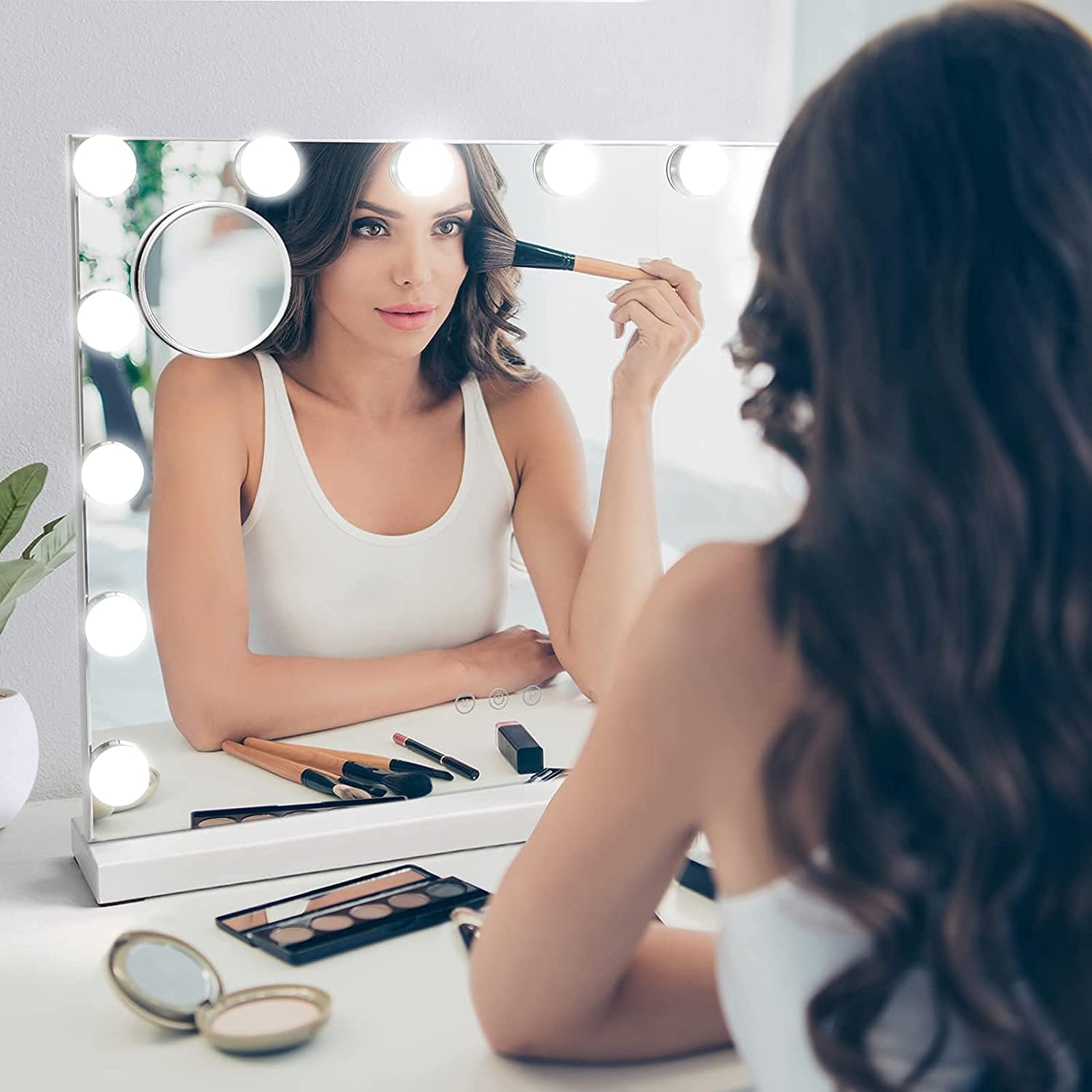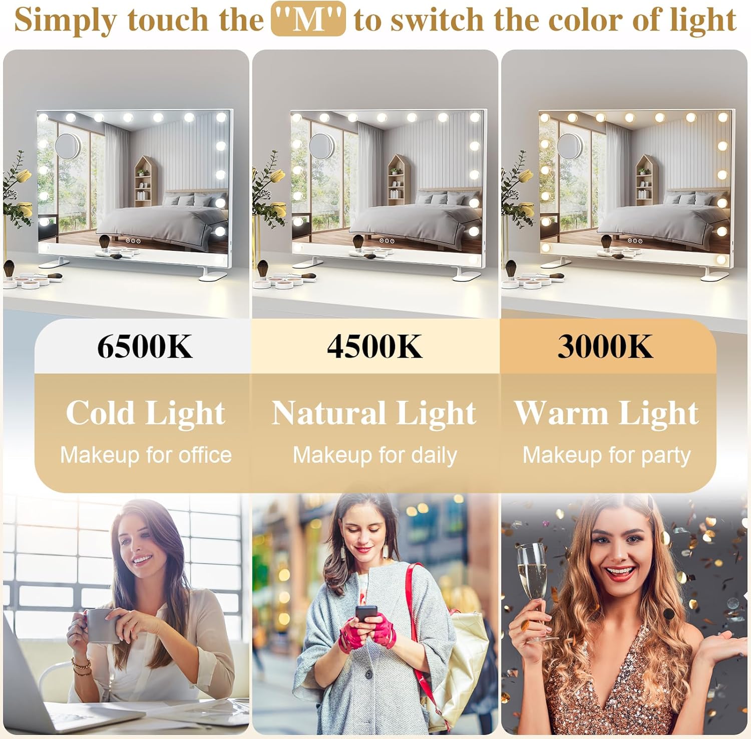 LuxeVue Specchio da Trucco con Luci luce Hollywood Specchio con a 3 colori e LED dimmerabili Specchio Hollywood da Tavolo Touch Screen Regolabile a 360 Gradi