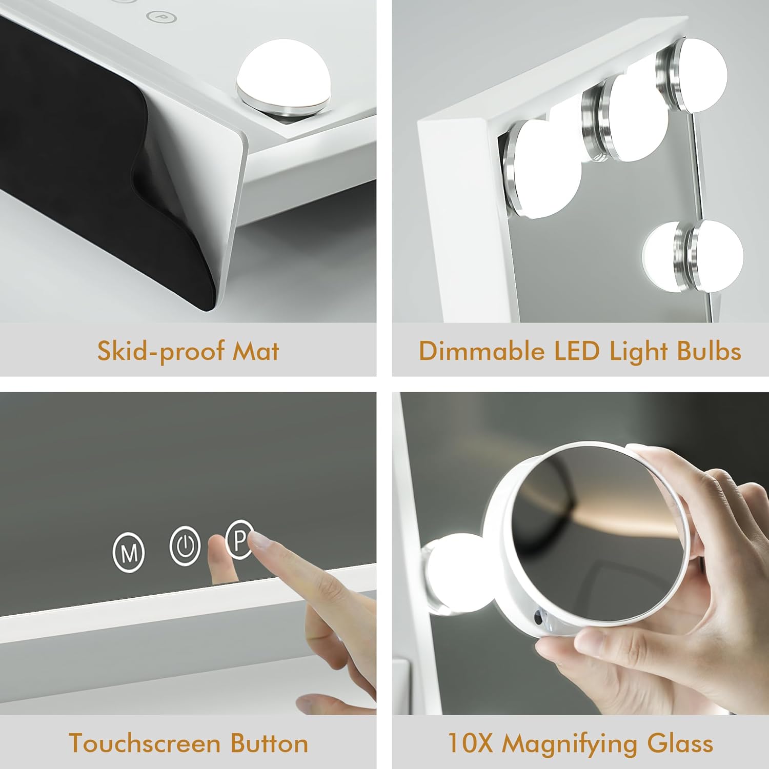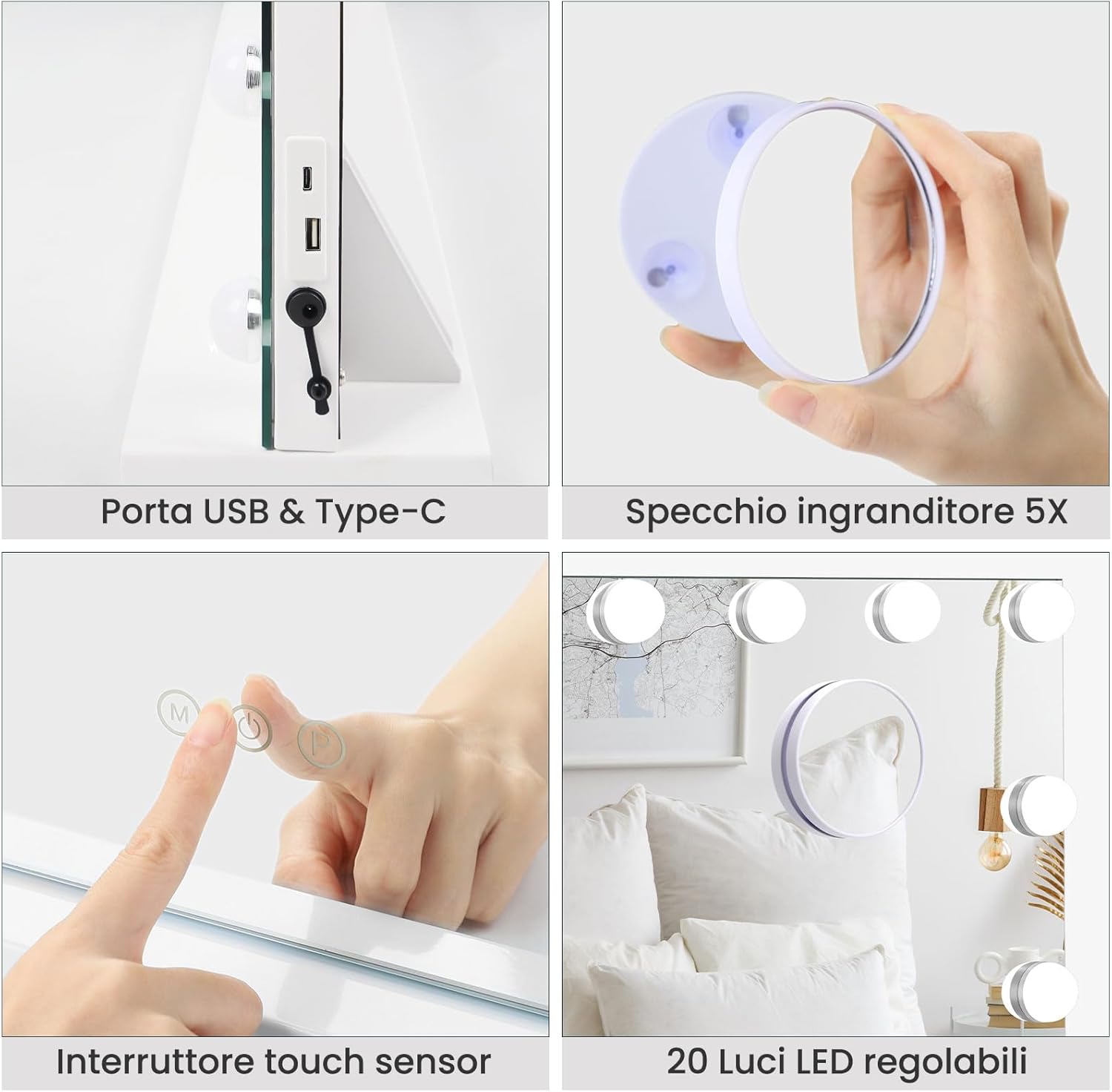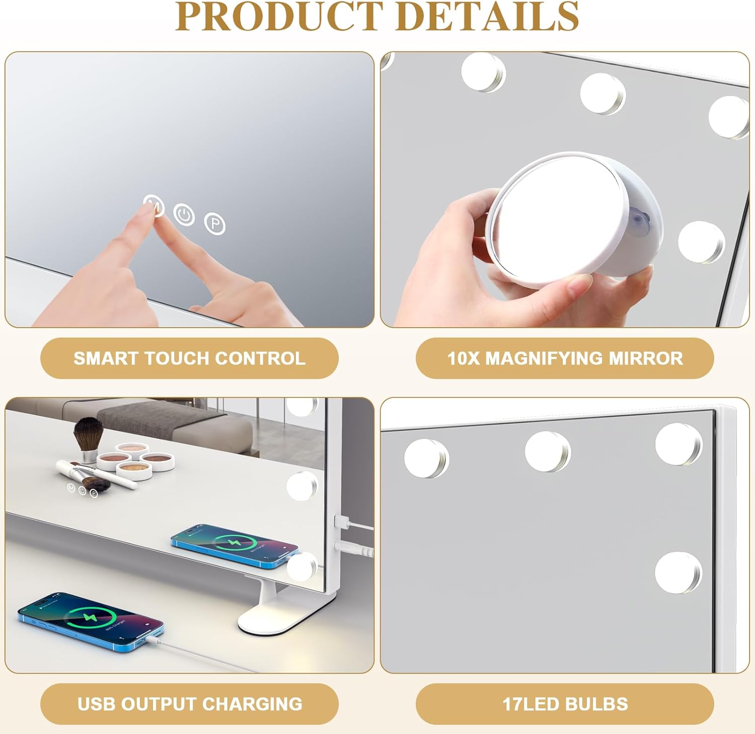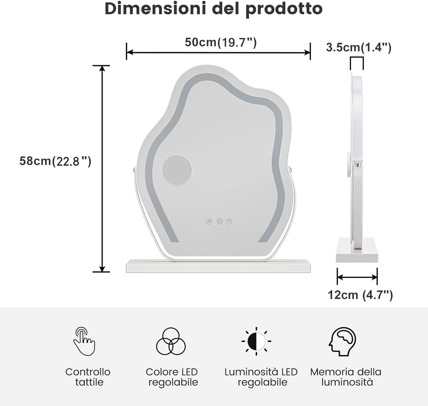 LuxeVue Specchio da Trucco con Luci luce Hollywood Specchio con a 3 colori e LED dimmerabili Specchio Hollywood da Tavolo Touch Screen Regolabile a 360 Gradi