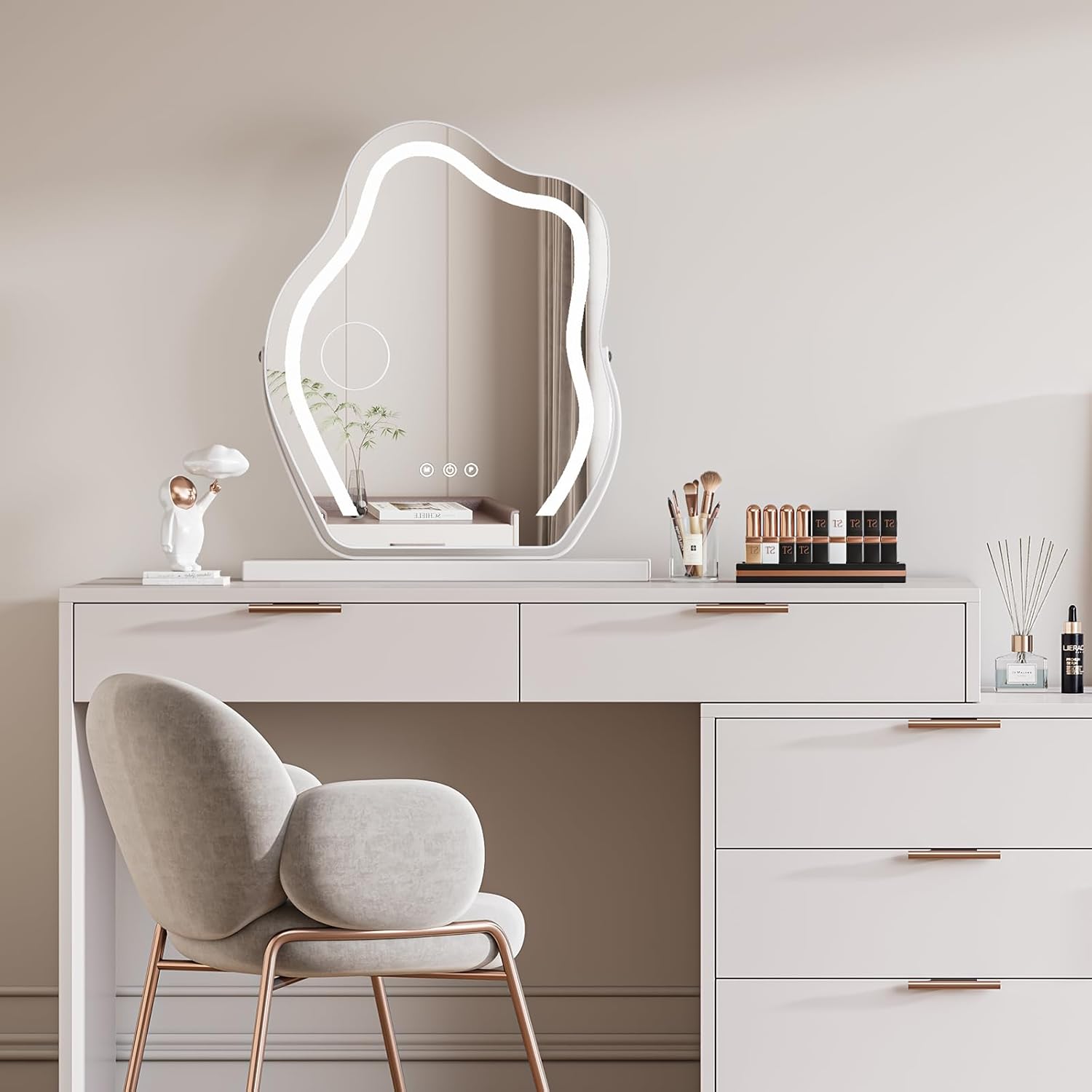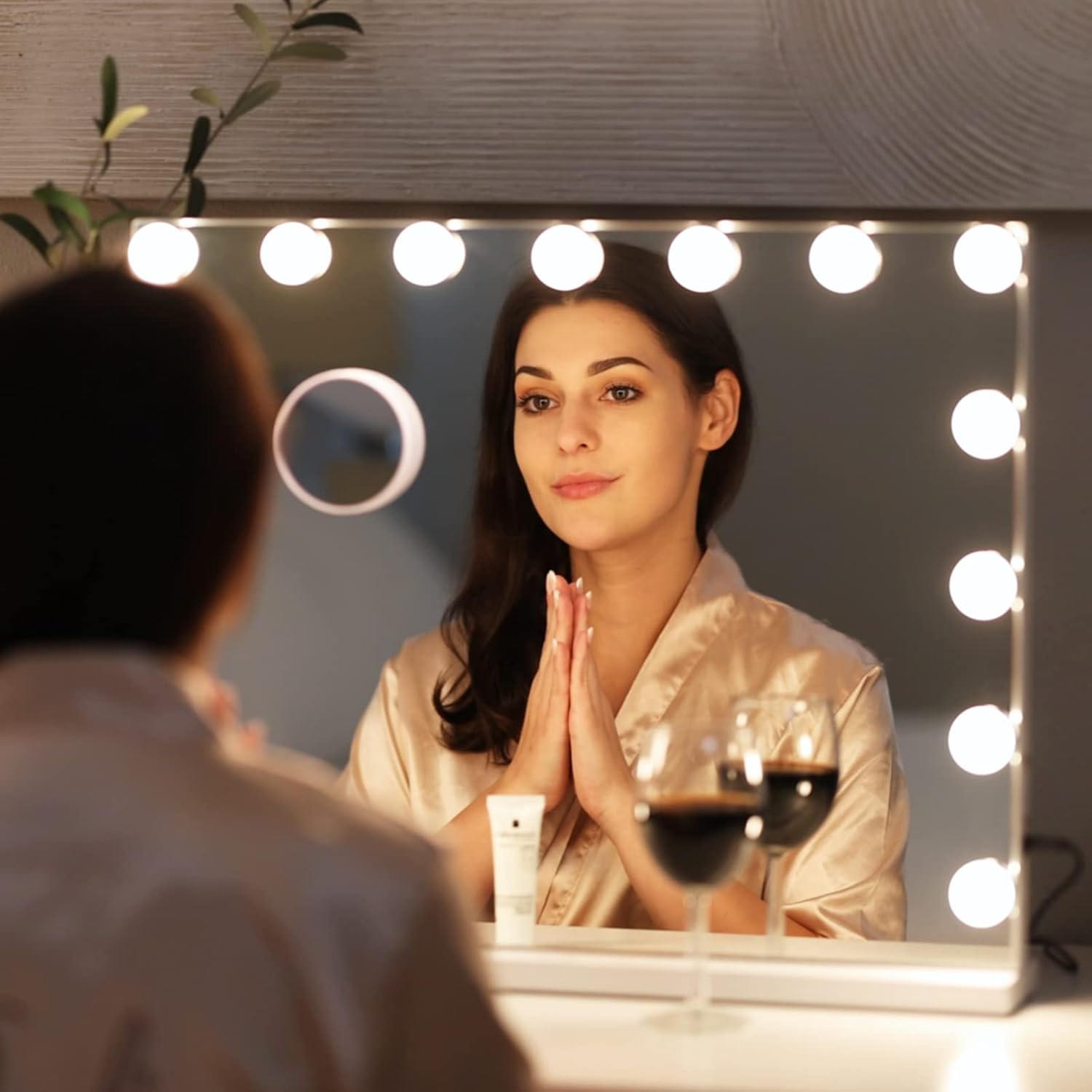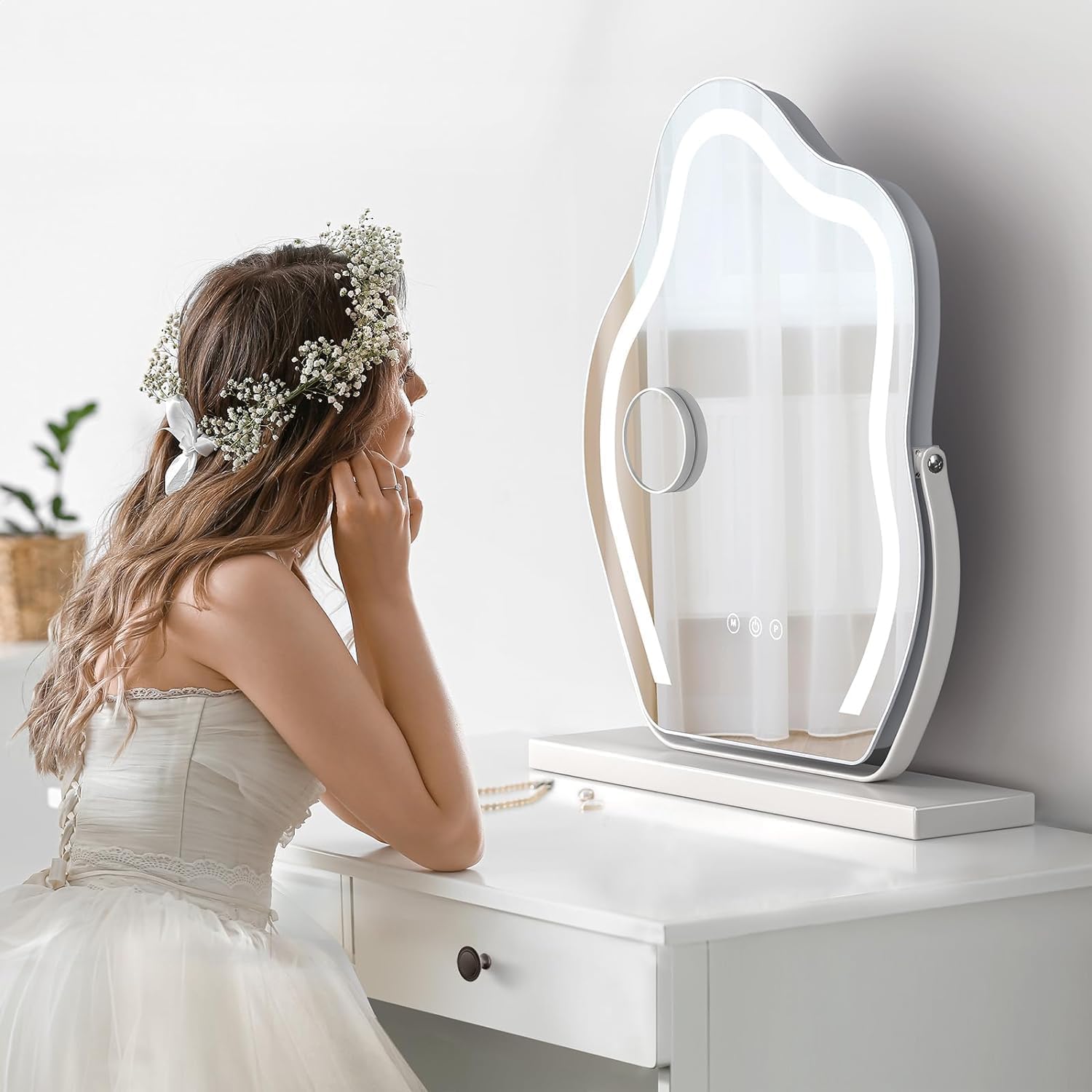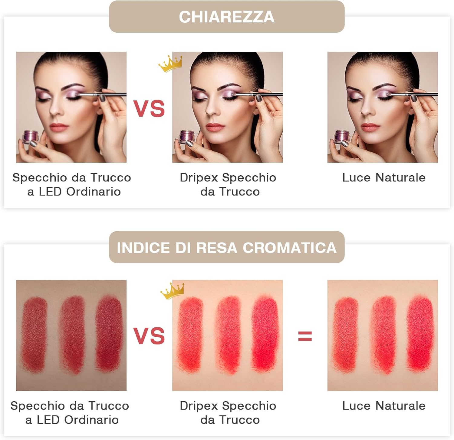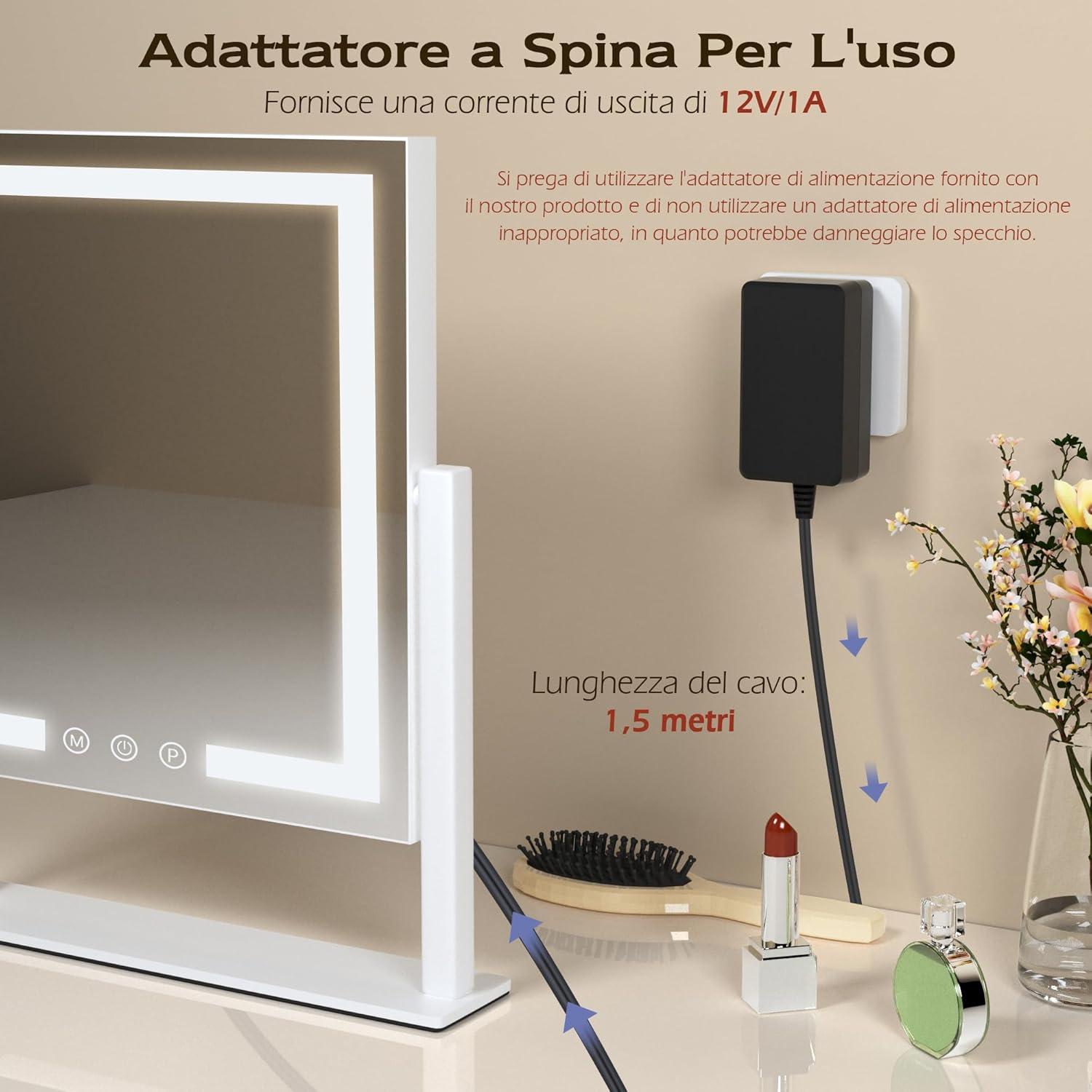 LuxeVue Specchio da Trucco con Luci luce Hollywood Specchio con a 3 colori e LED dimmerabili Specchio Hollywood da Tavolo Touch Screen Regolabile a 360 Gradi
