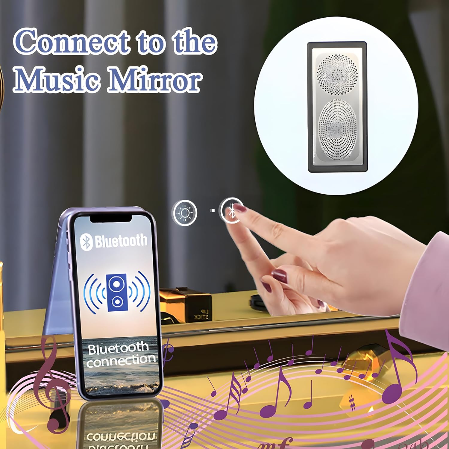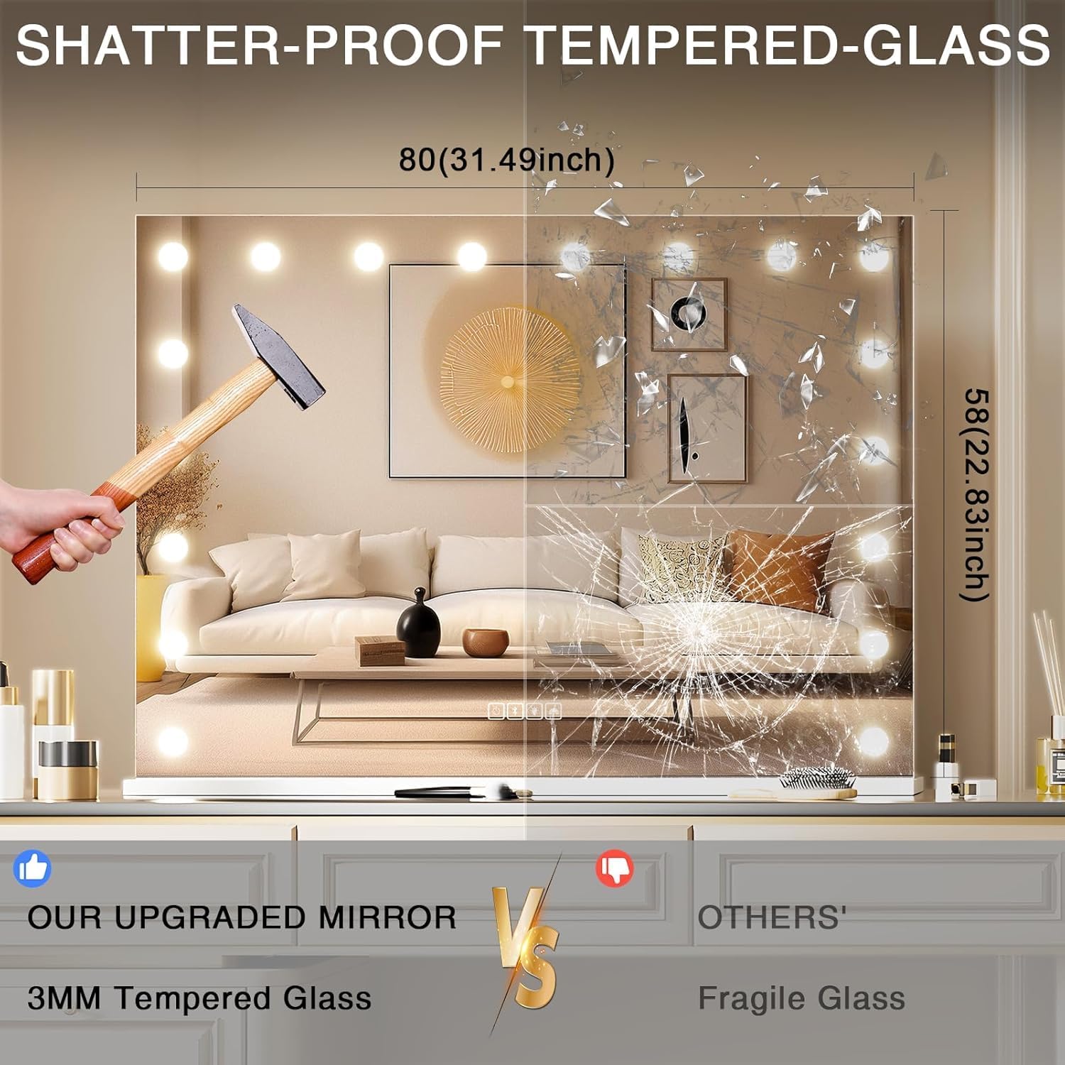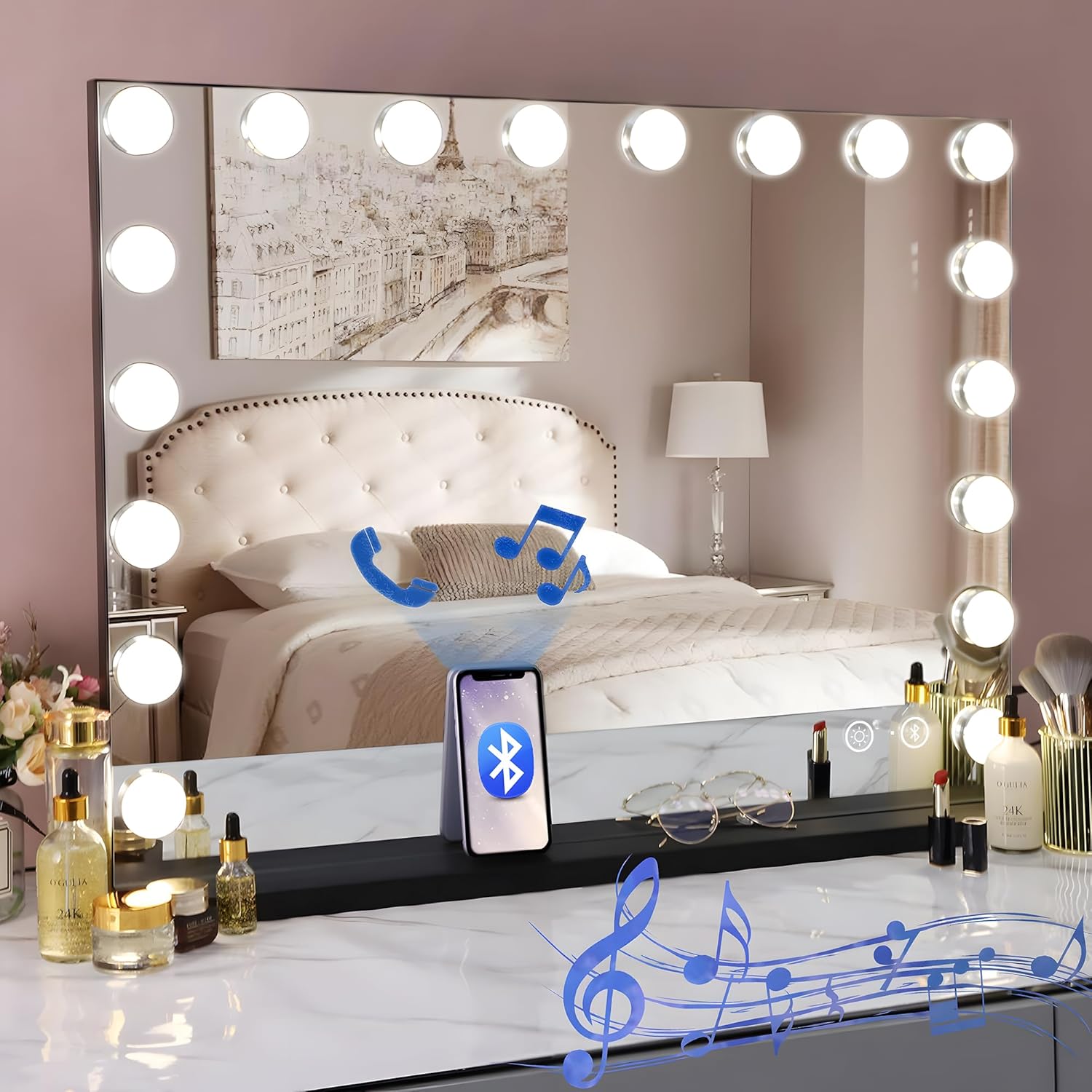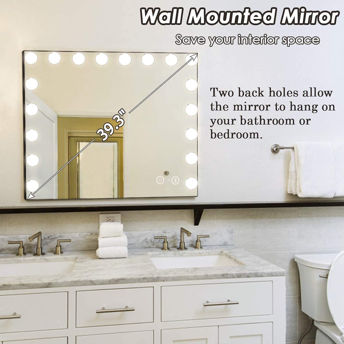 FENCHILIN Specchio trucco con Luci e altoparlante, Hollywood con 18 lampade a LED dimmerabili Porta di ricarica USB Grande per makeup, ingranditore 10x 80x58cm