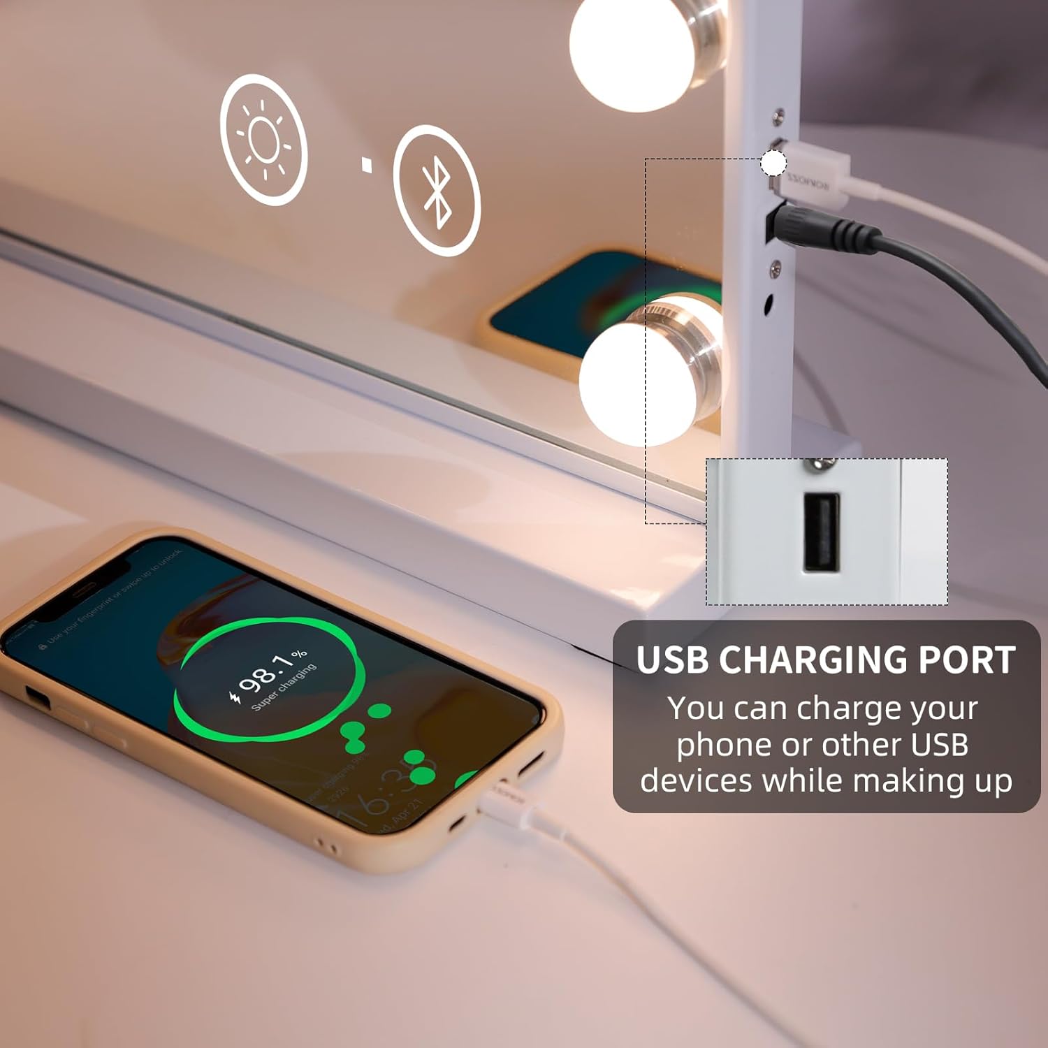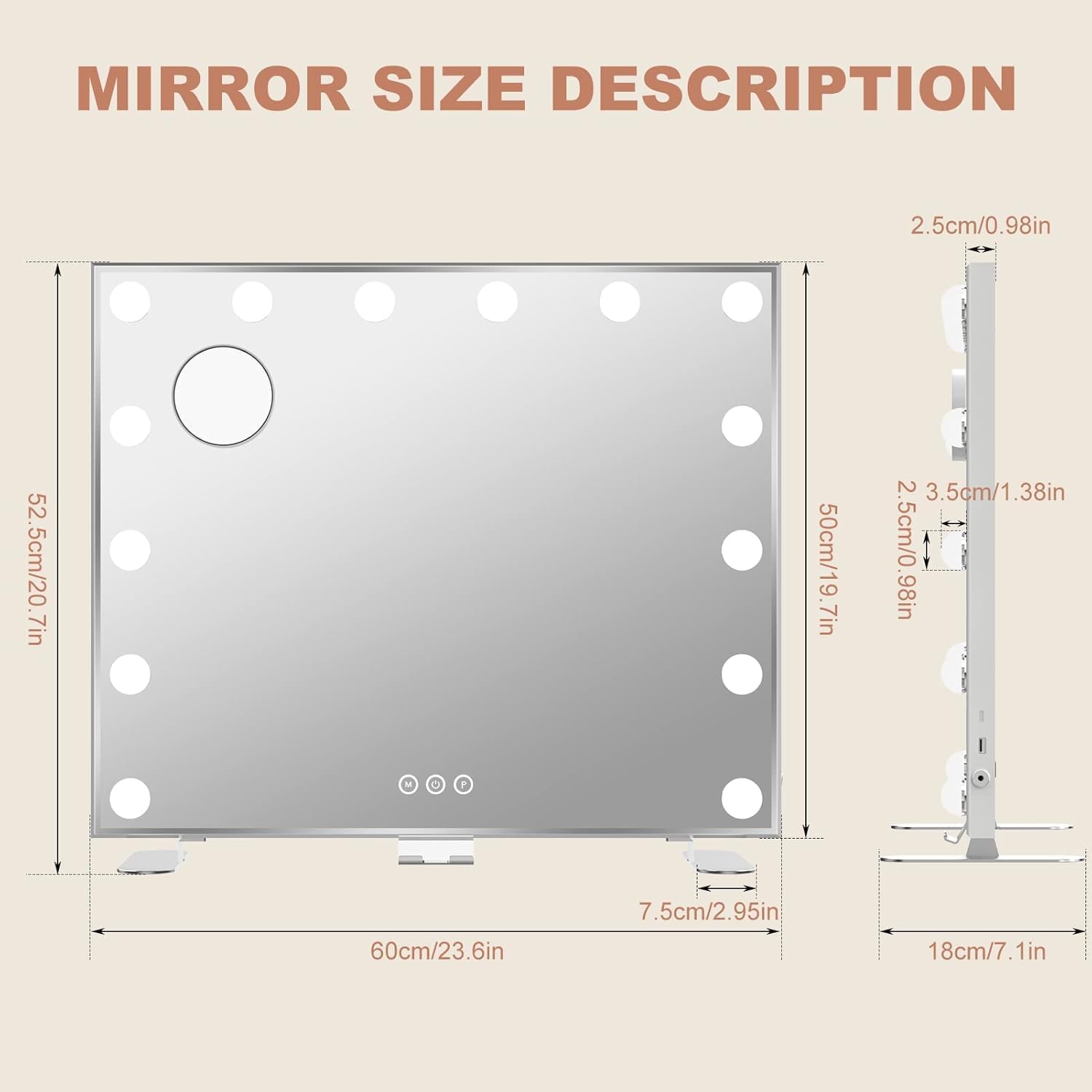 Ekasoco Hollywood Specchio Trucco con Luc, 58x48cm Specchio con Luci 15 LED, 3 Modalità Illuminazione Regolabile, Controllo Tattile, Porte USB, Specchi da Tavolo per La Camera da Letto Spogliatoio