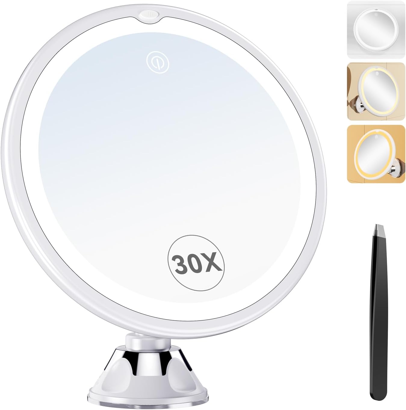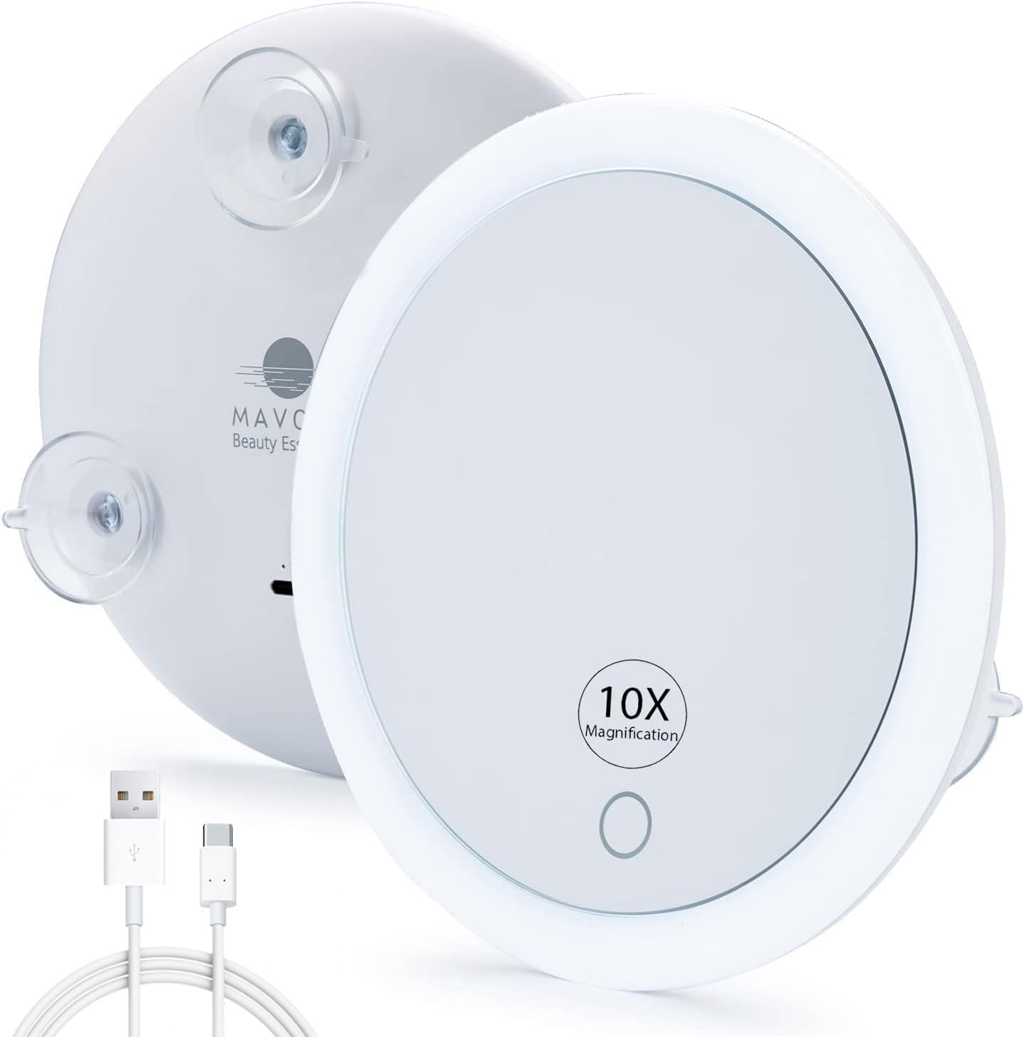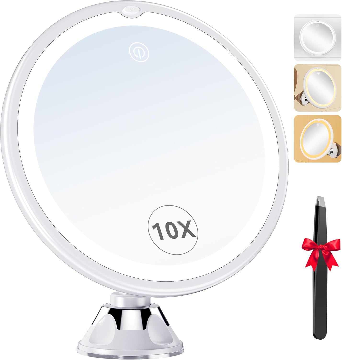 Specchio ingranditore 10X con luce LED e 3 forti ventose, compatto e illuminato (4 batterie AAA)