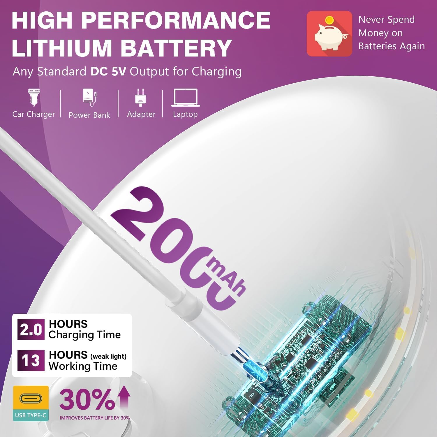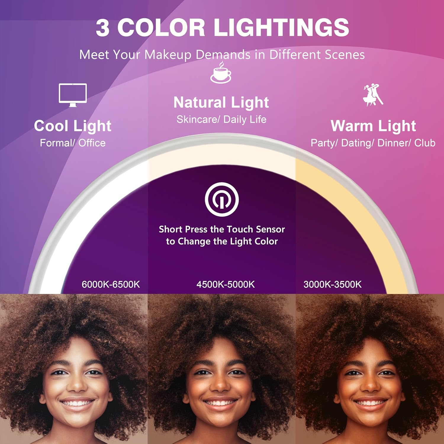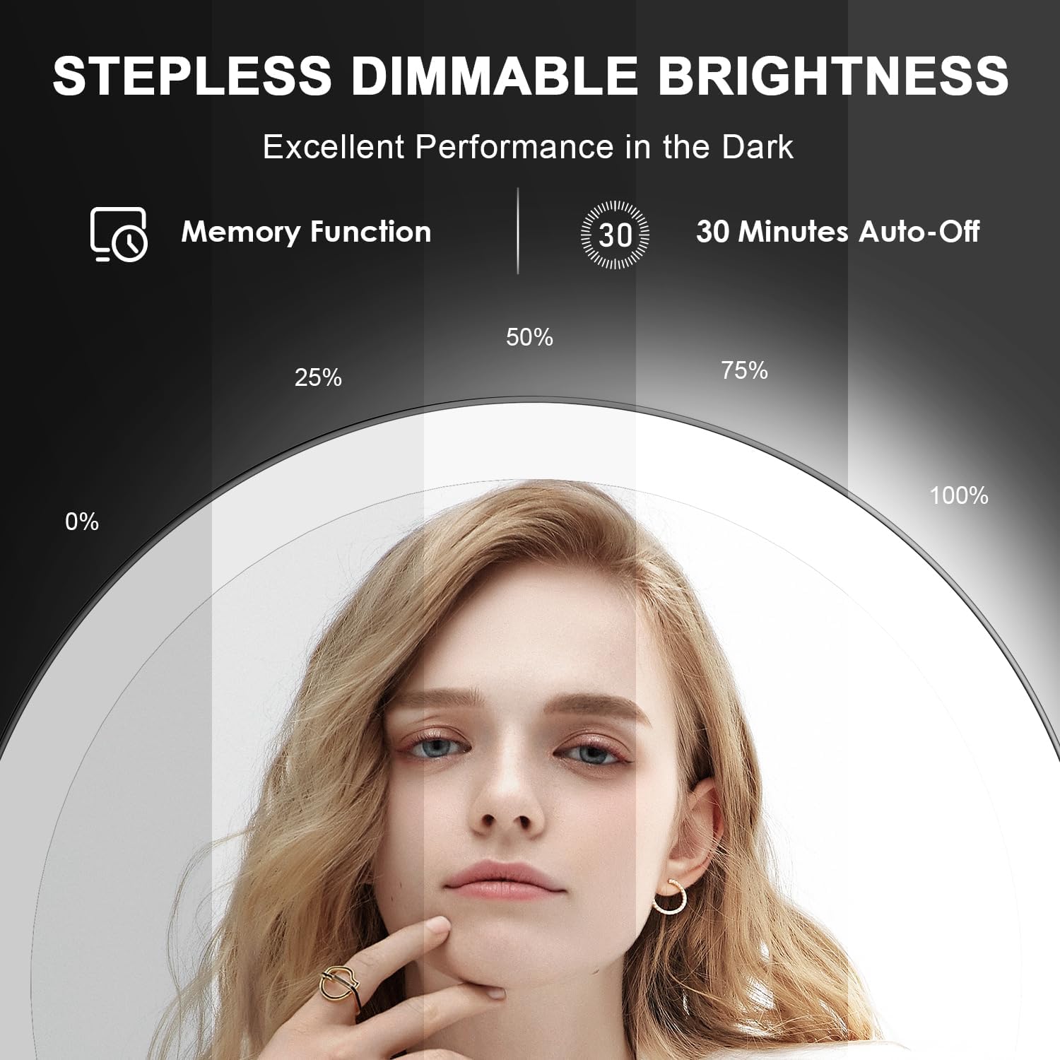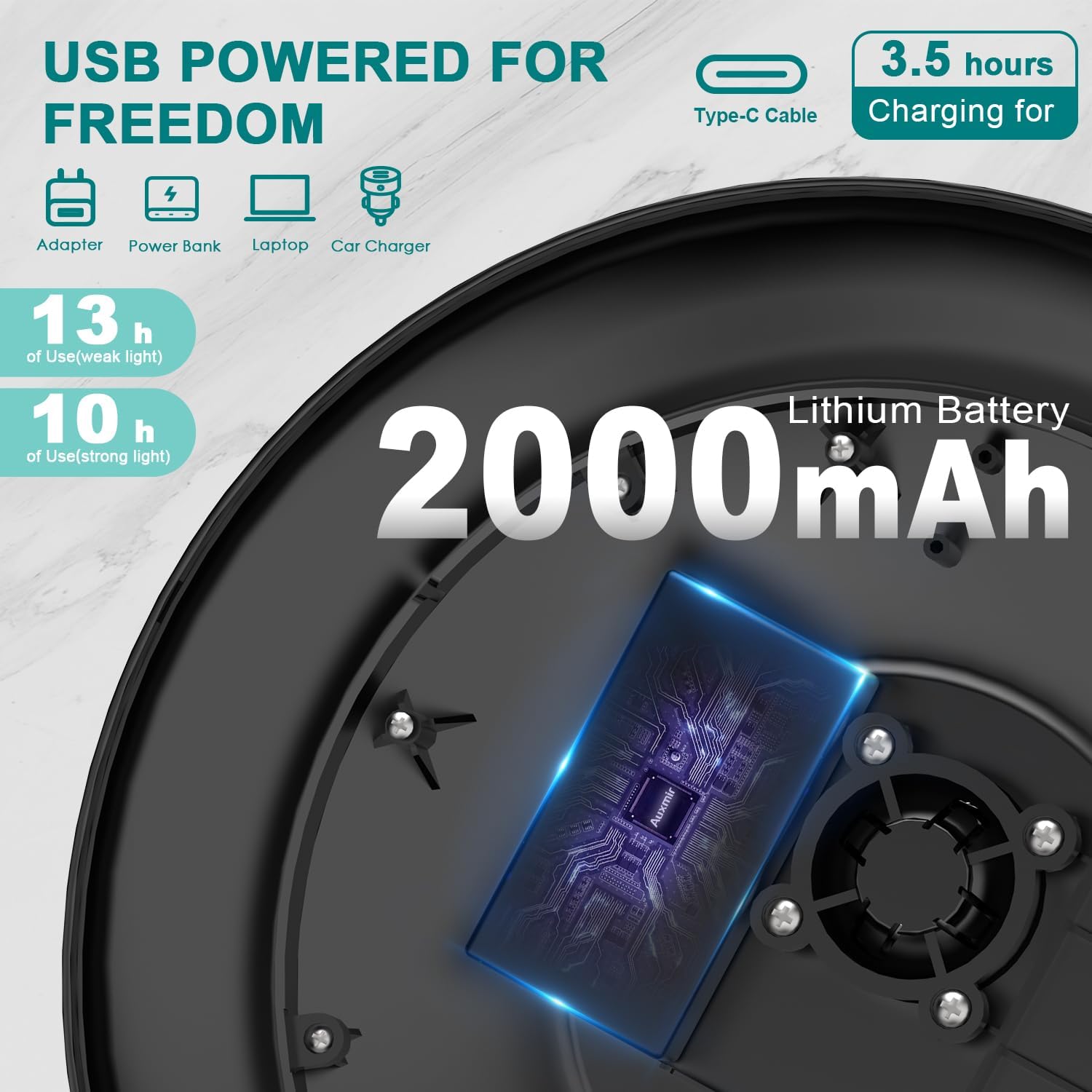 Auxmir Specchio Trucco con Luci LED, Specchio Ingranditore 30X/1X a Doppio Lato, Luminosità Regolabile a 3 Colori, Specchio da Tavolo Pieghevole con Foro per Appendere, Ricaricabile e Portatile