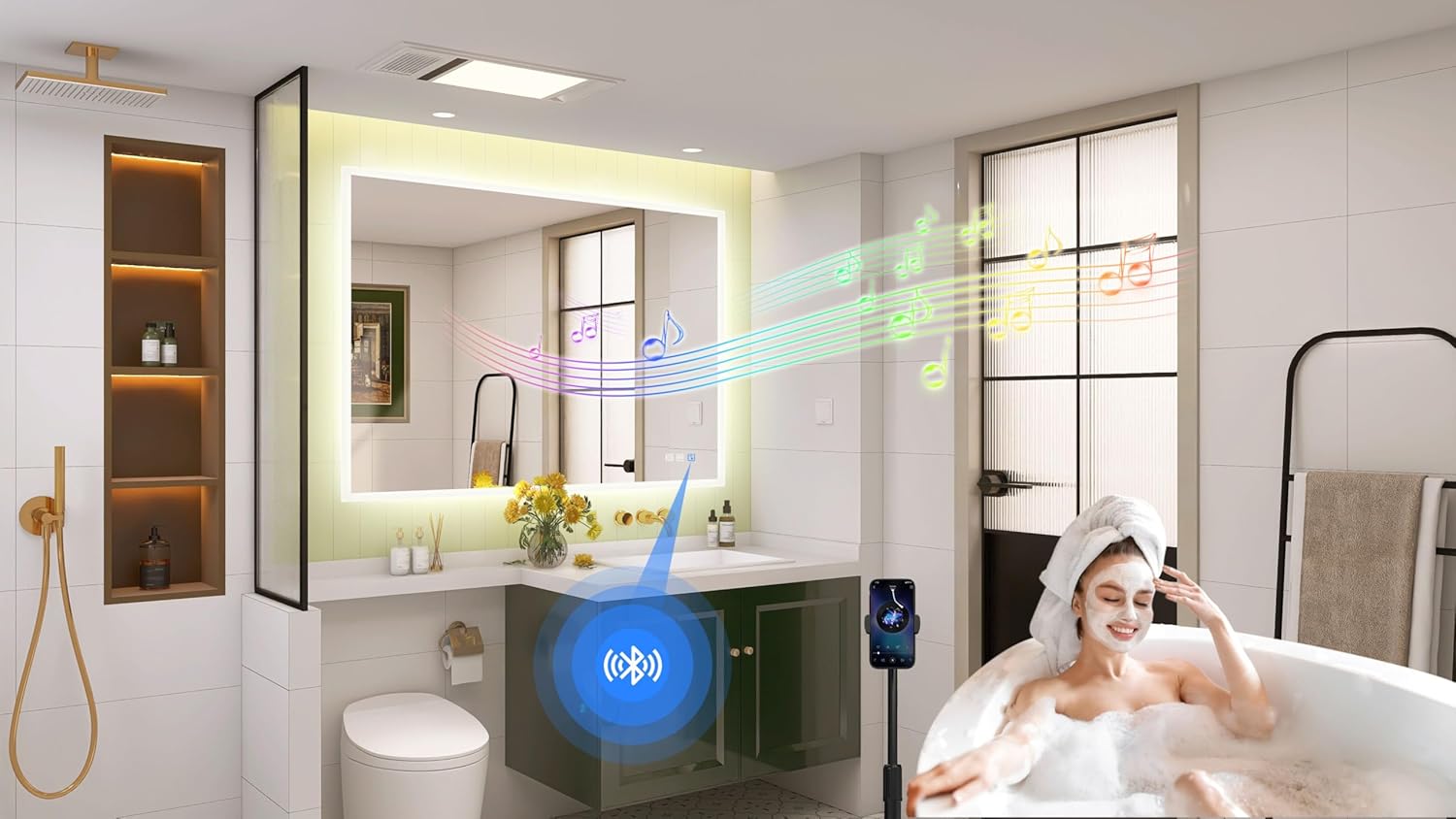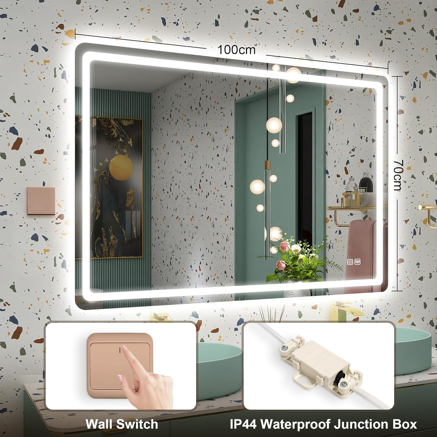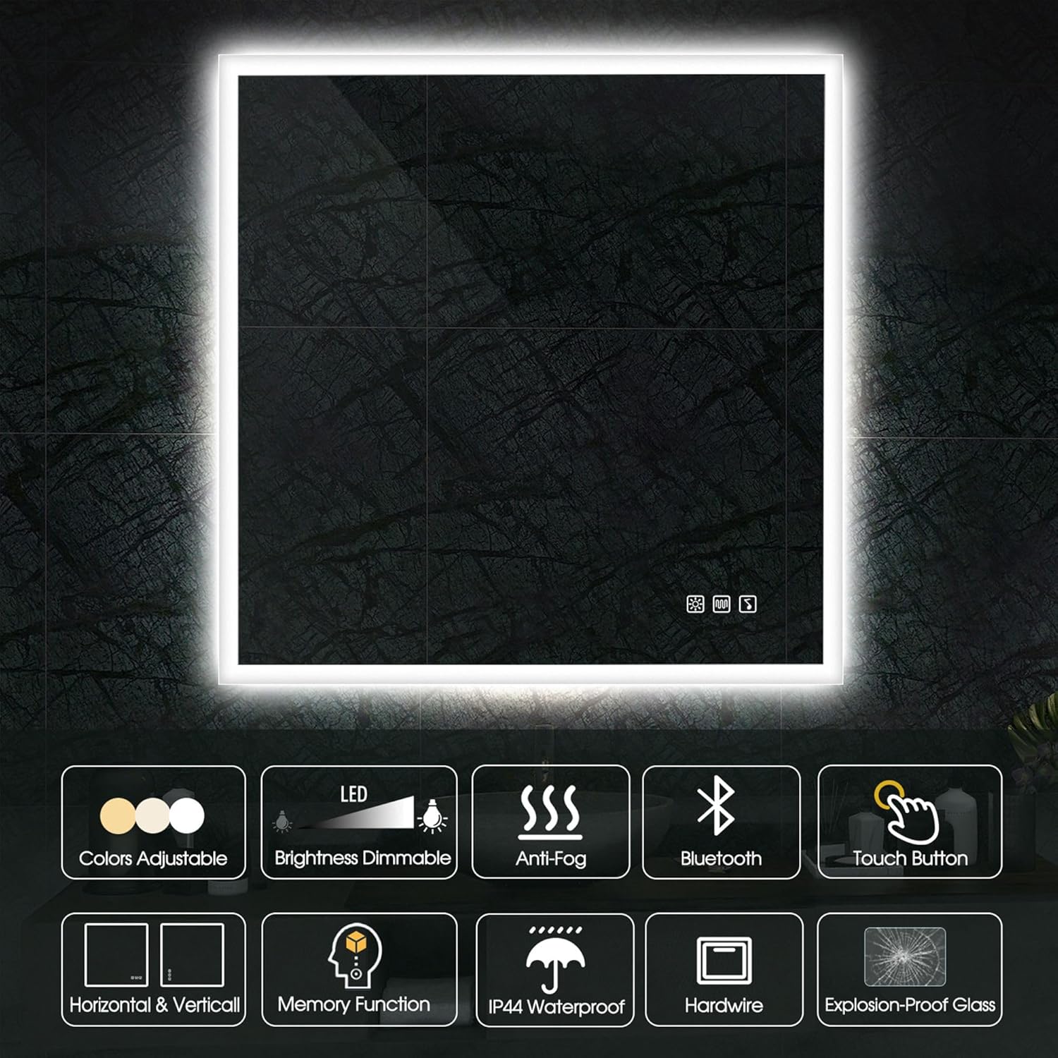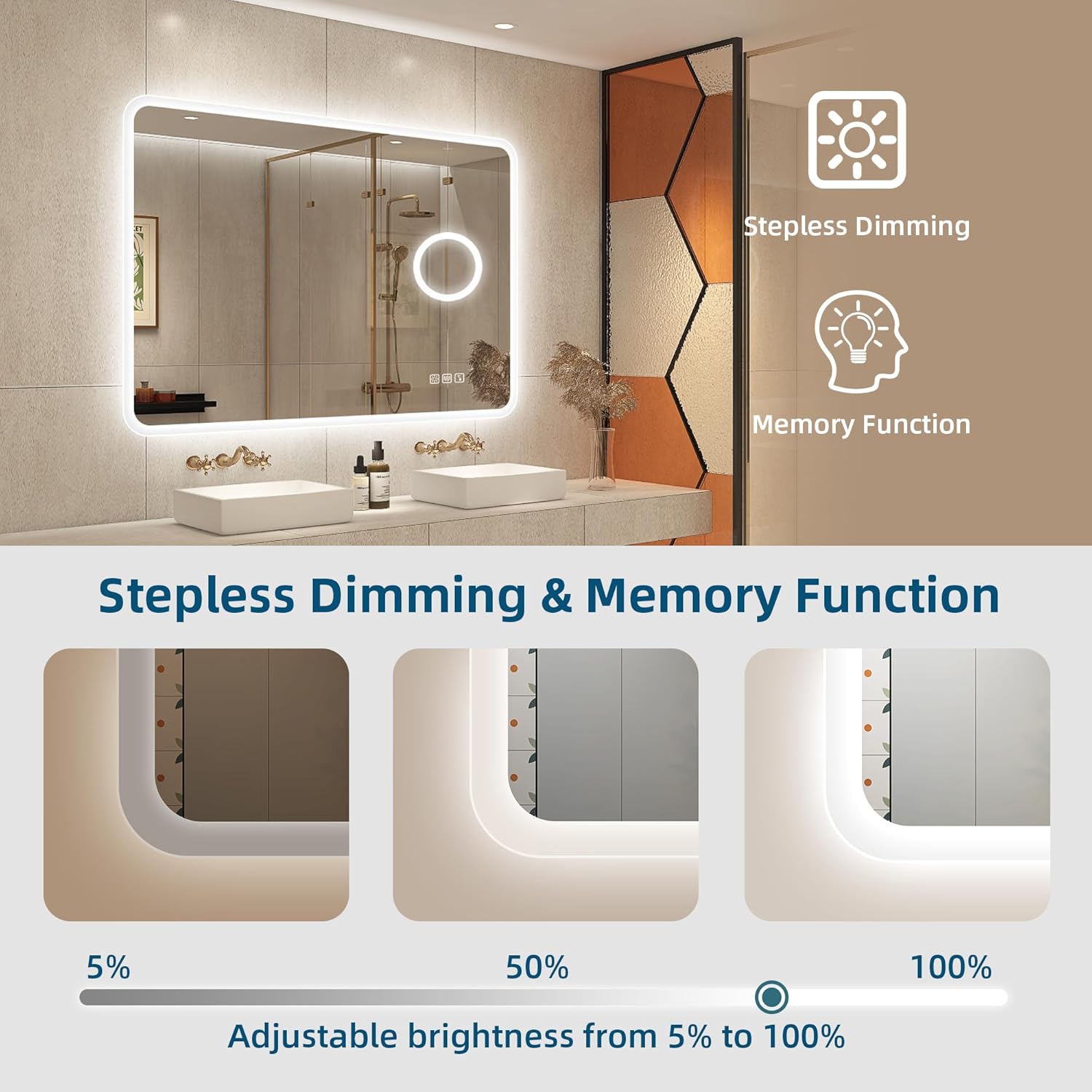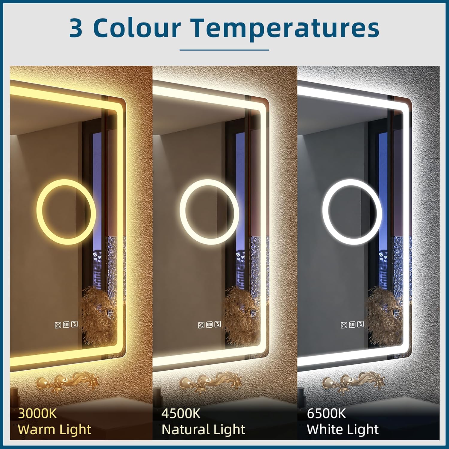 STARLEAD Specchio-Bagno-con-Luce e Bluetooth 70x100cm, Specchio-Bagno-LED con Antifog, 3 Colori Luce, Dimmerabile, IP44, Vetro Temperato HD, Memoria, Orizzontale/Verticale