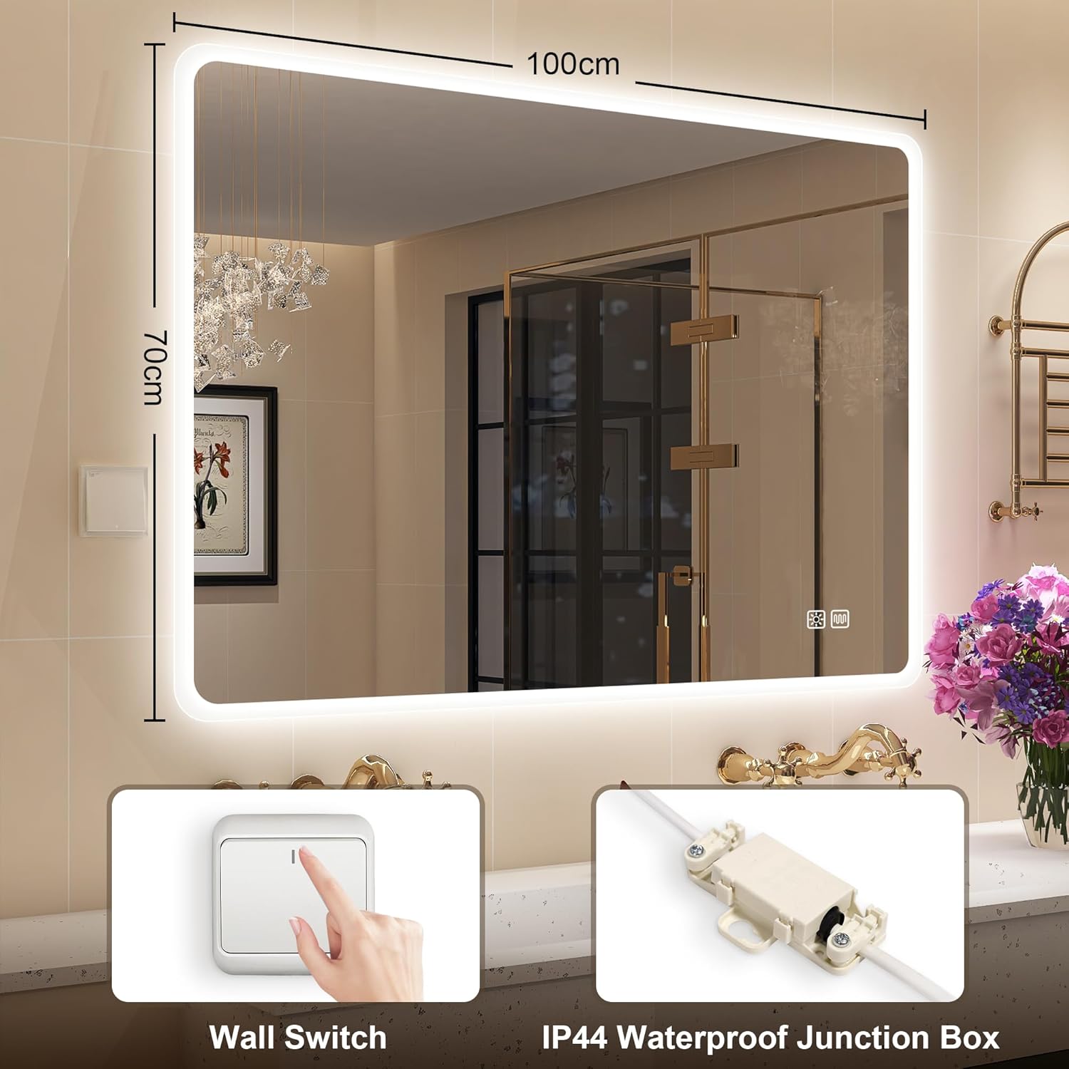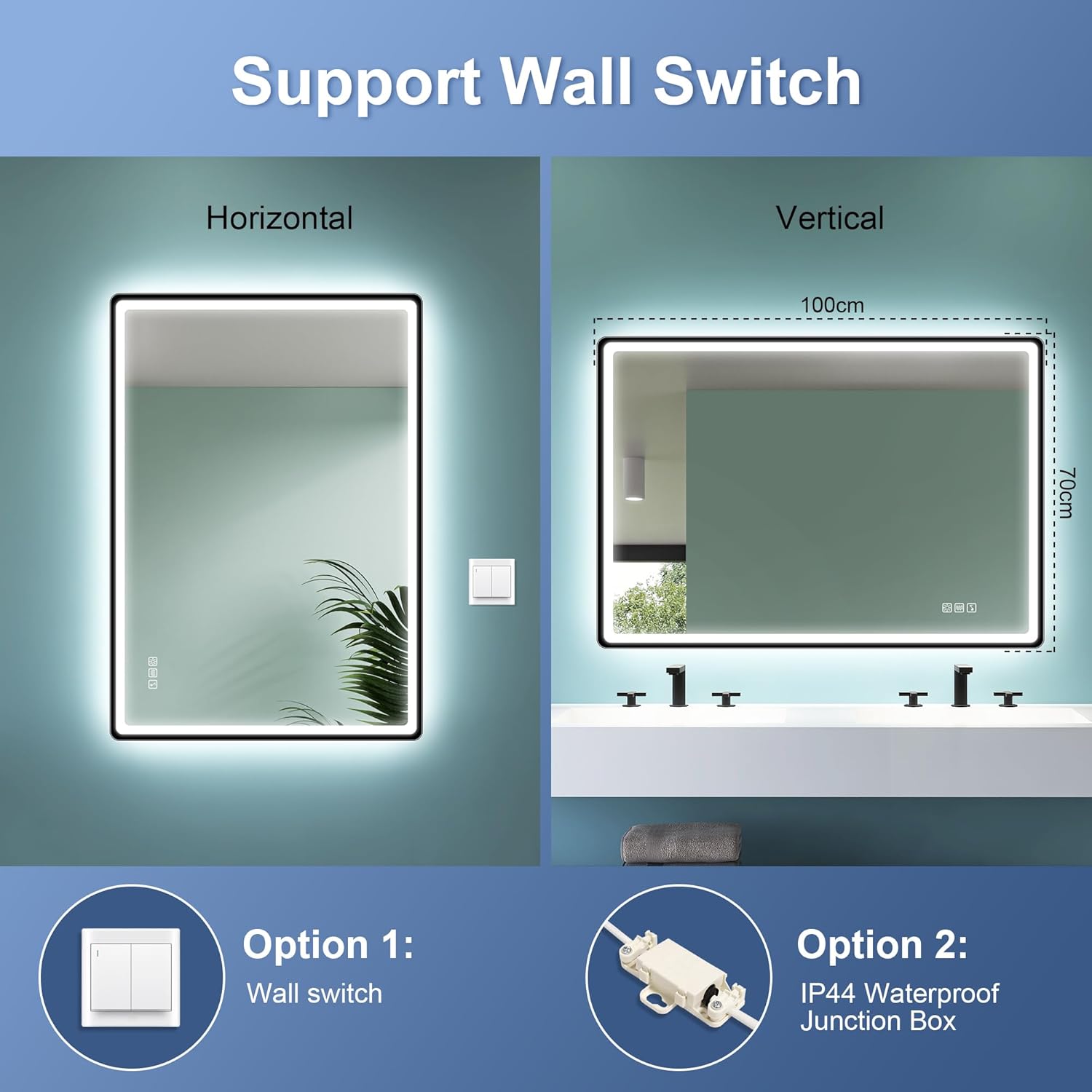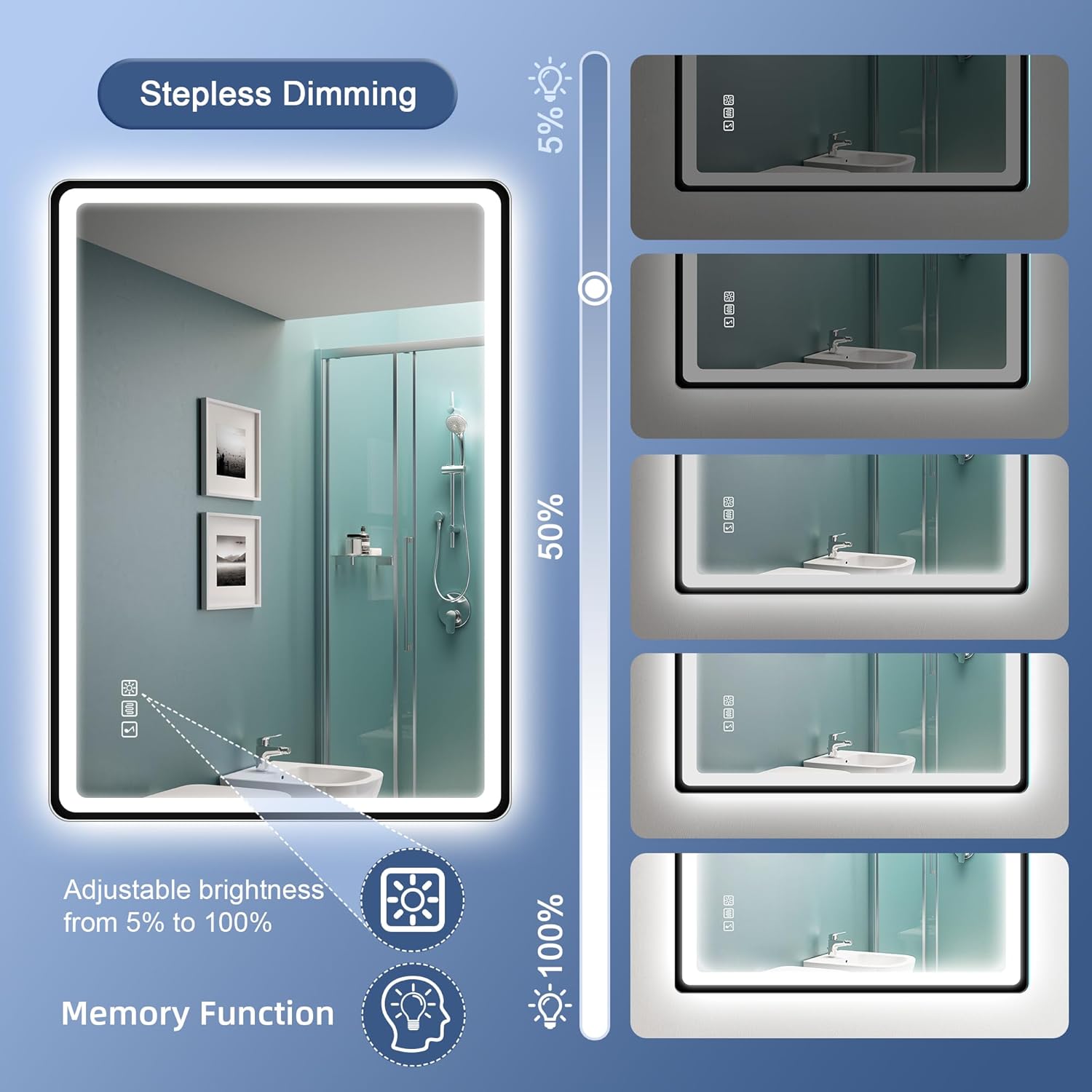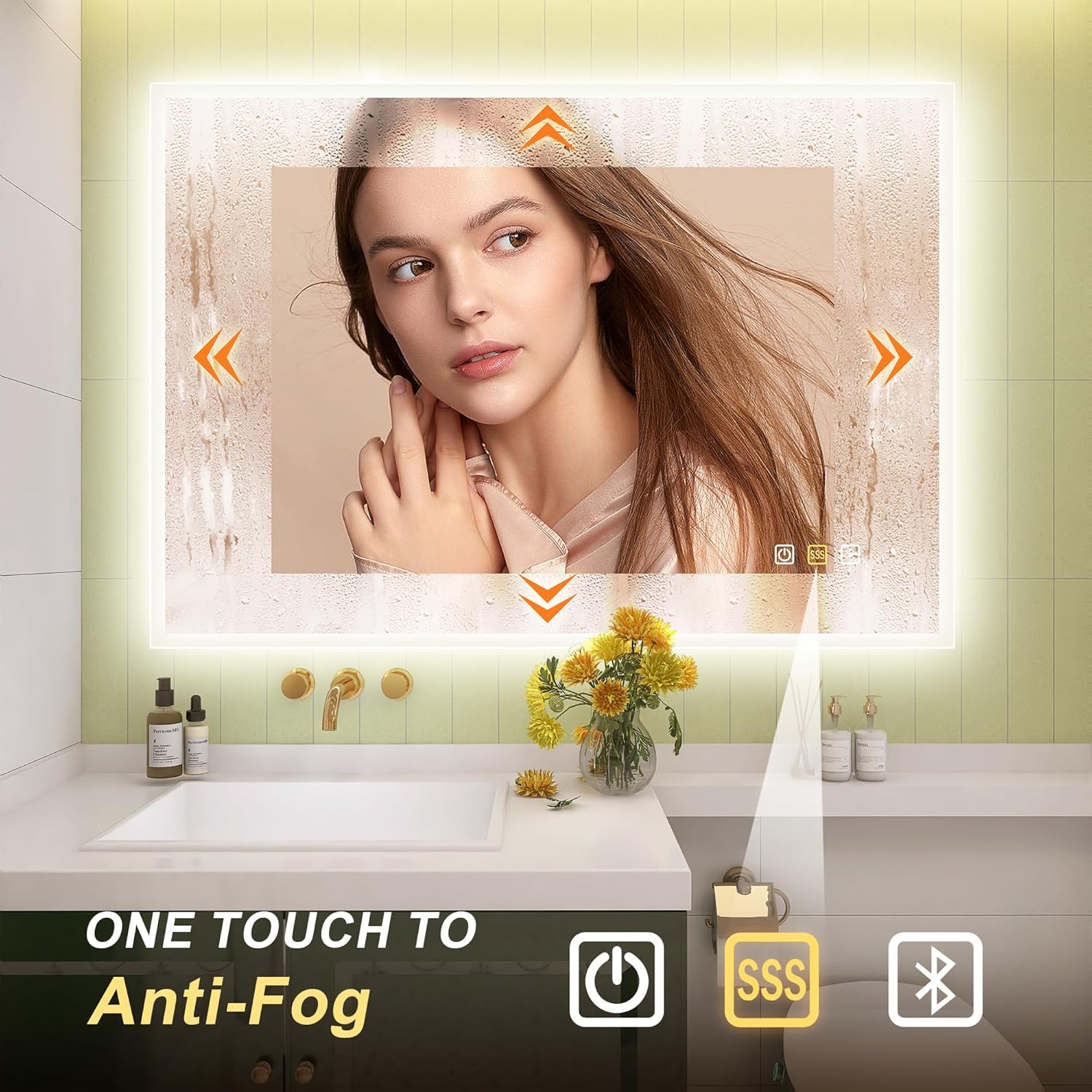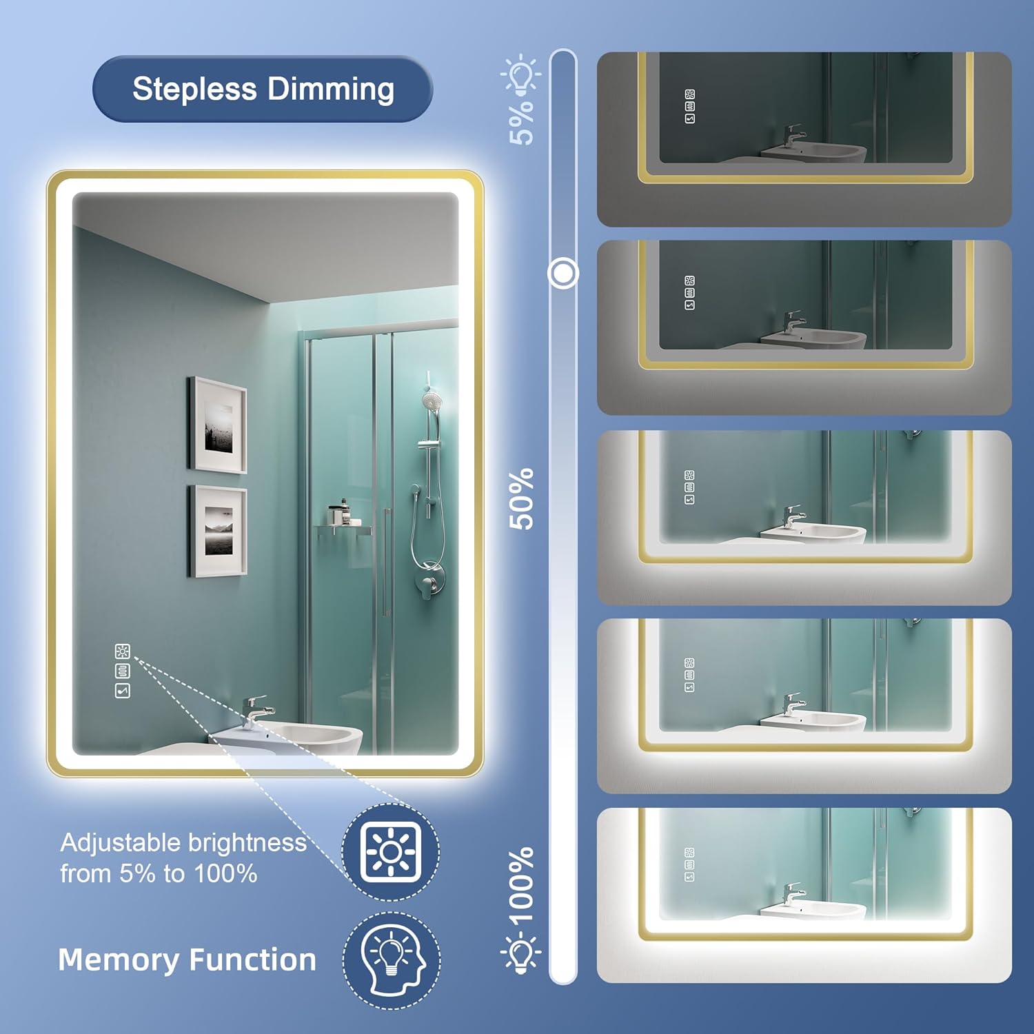 STARLEAD Specchio-Bagno-con-Luce e Bluetooth 70x100cm, Specchio-Bagno-LED con Antifog, 3 Colori Luce, Dimmerabile, IP44, Vetro Temperato HD, Memoria, Orizzontale/Verticale