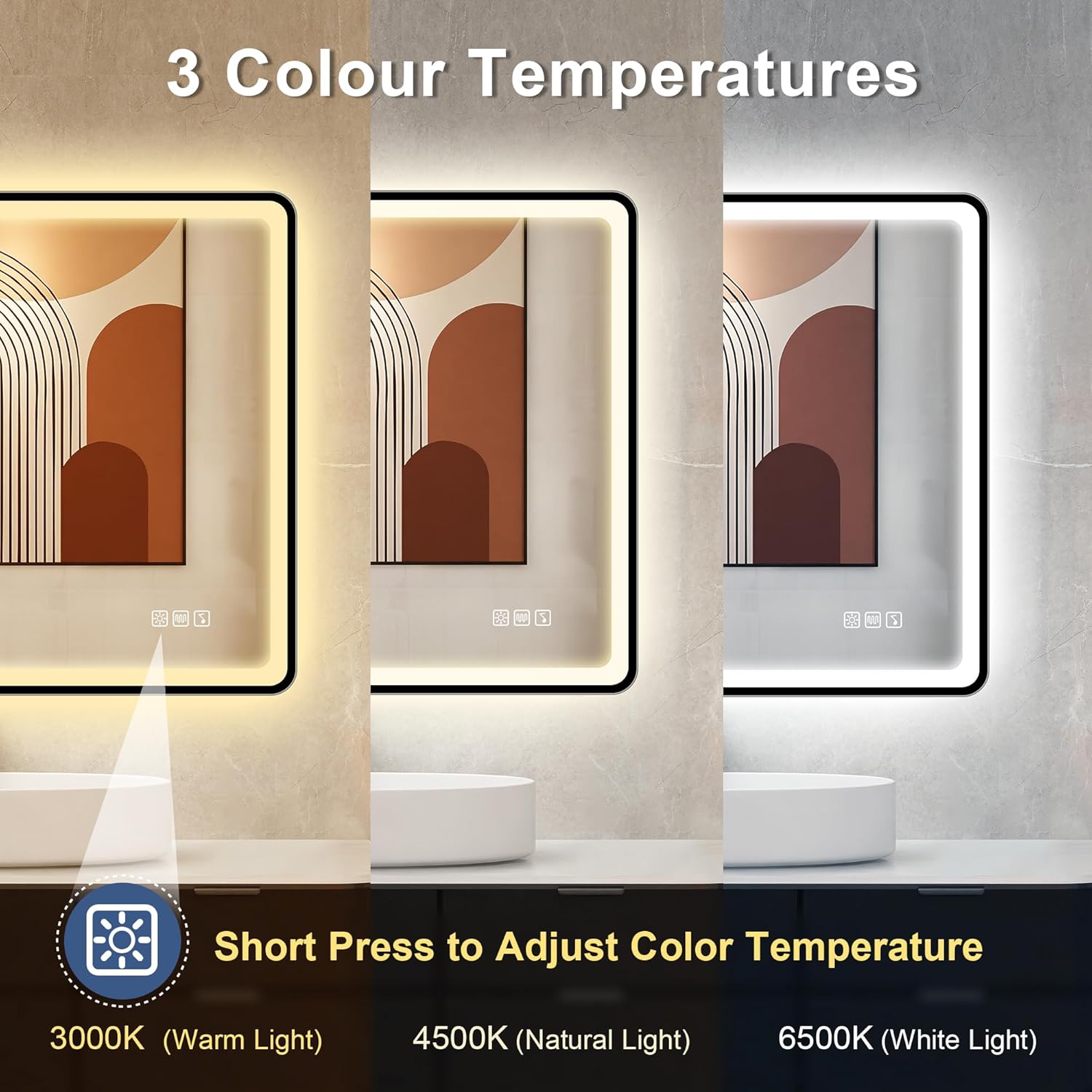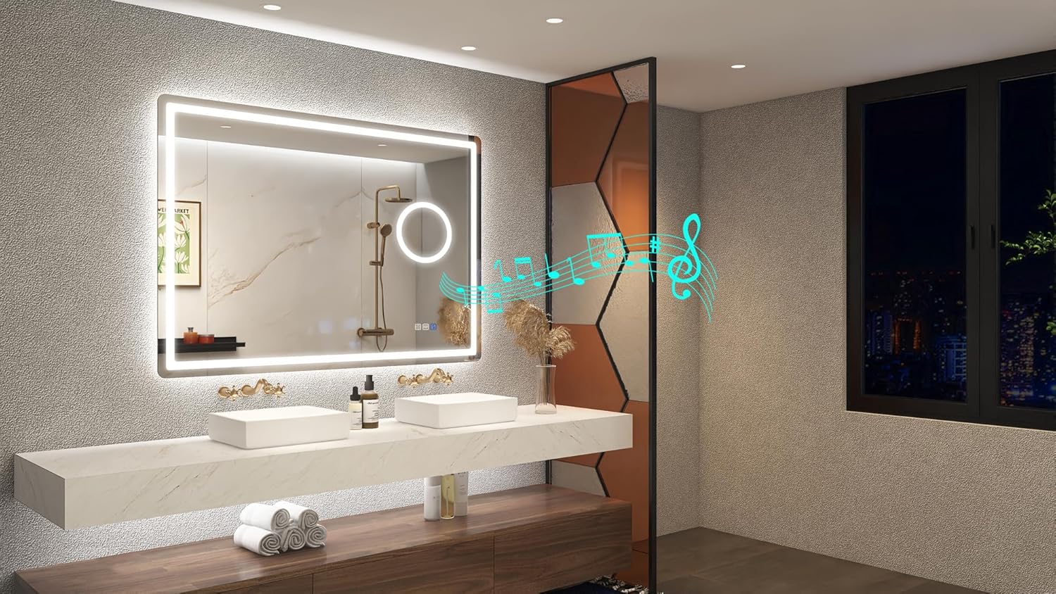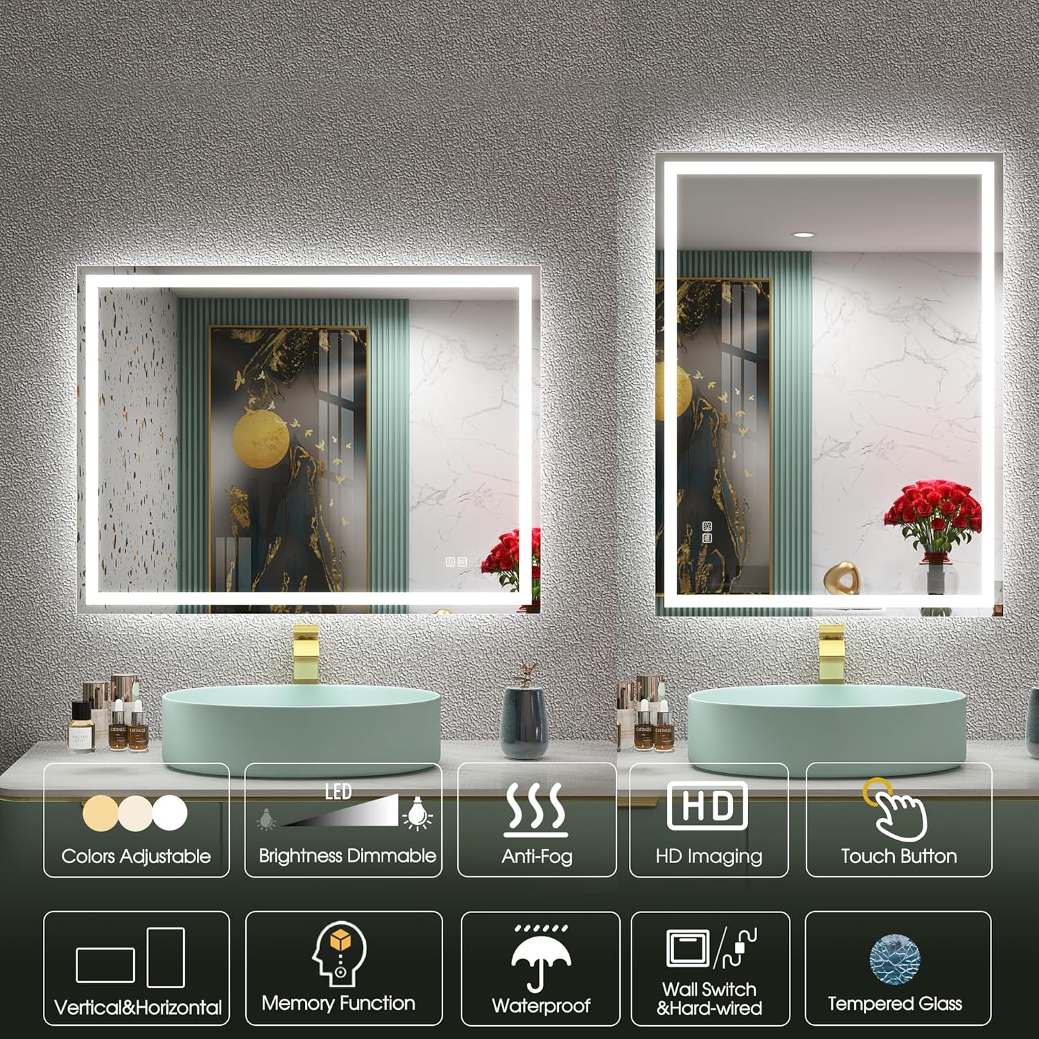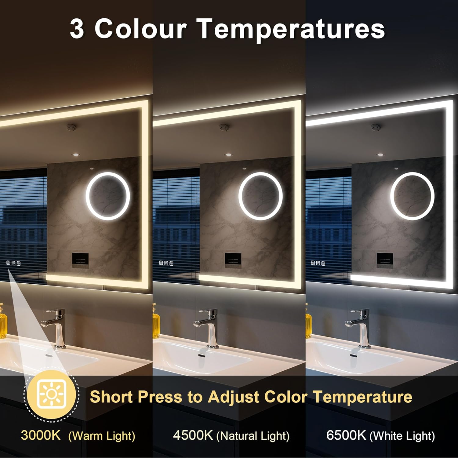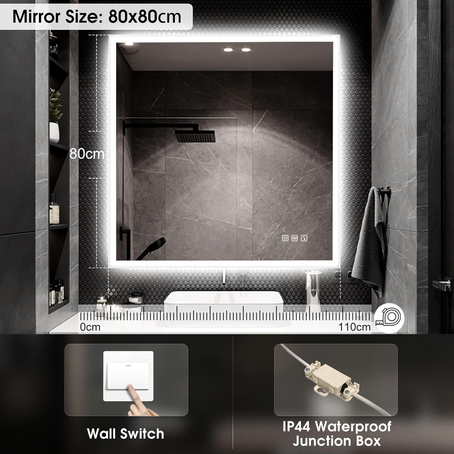 STARLEAD Specchio-Bagno-con-Luce e Bluetooth 70x100cm, Specchio-Bagno-LED con Antifog, 3 Colori Luce, Dimmerabile, IP44, Vetro Temperato HD, Memoria, Orizzontale/Verticale