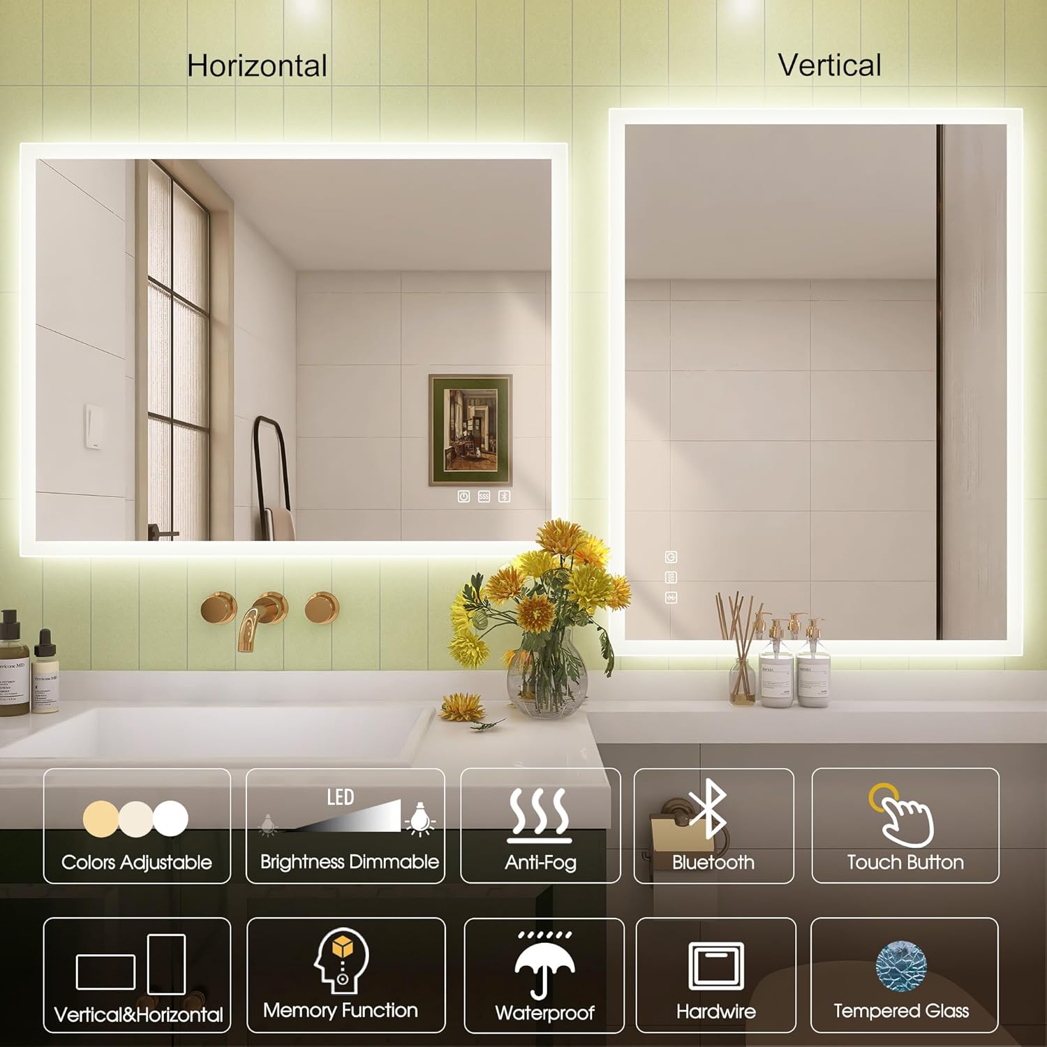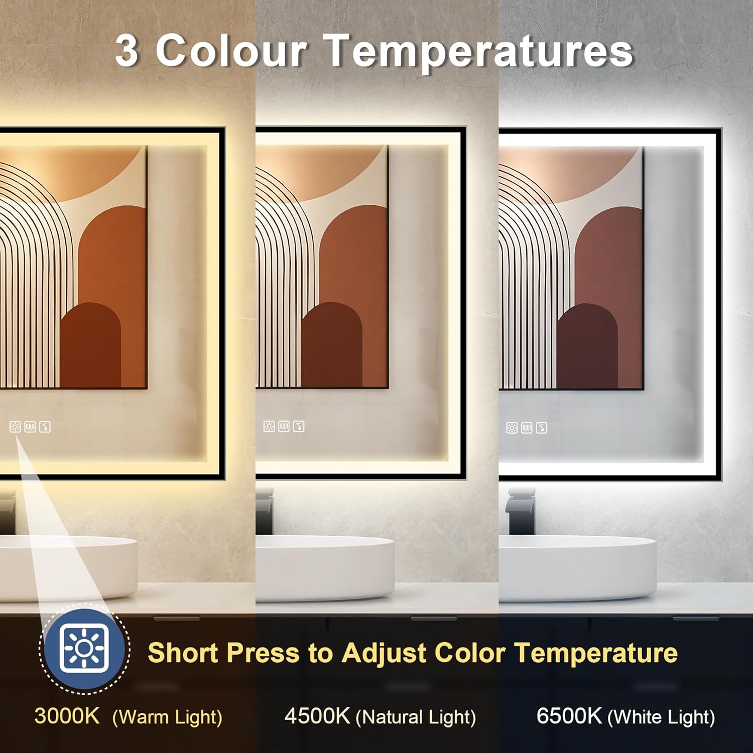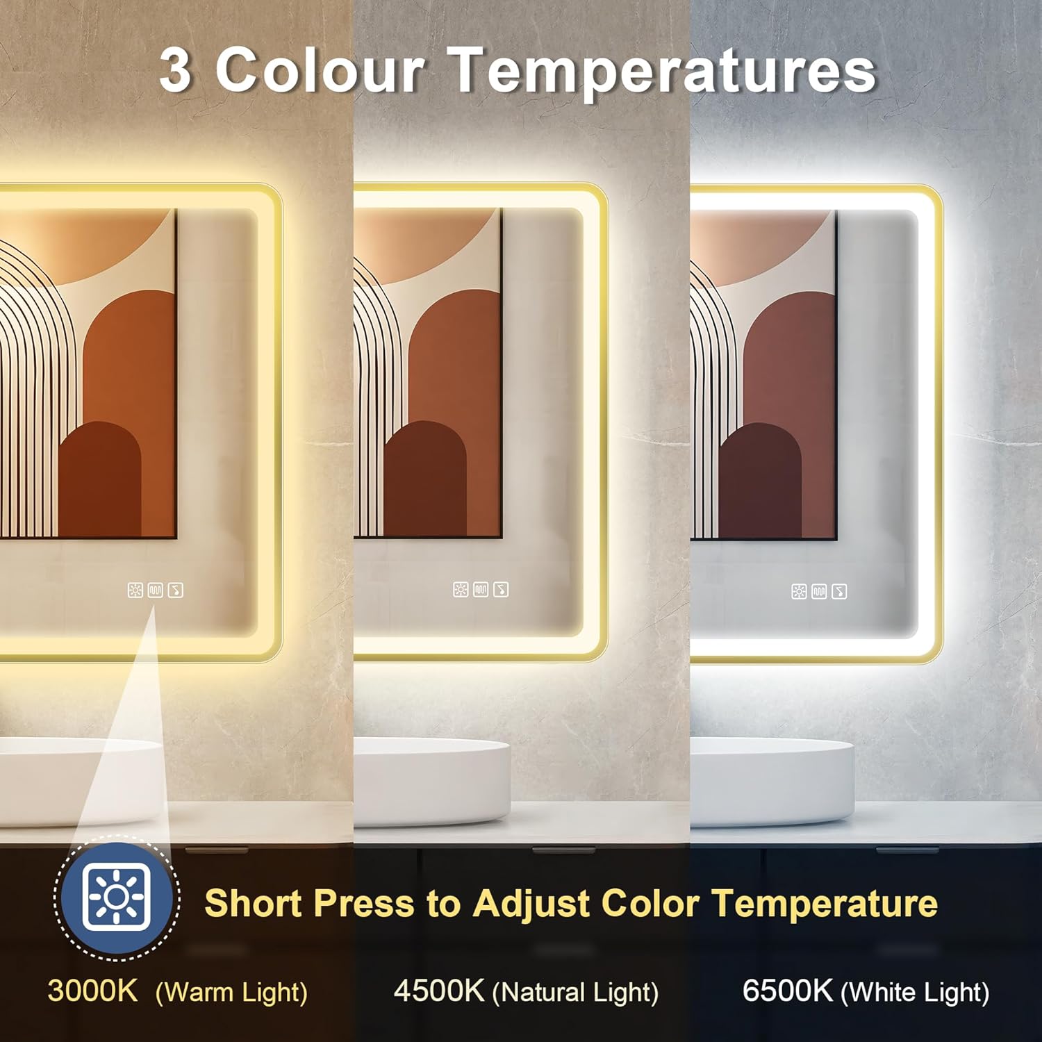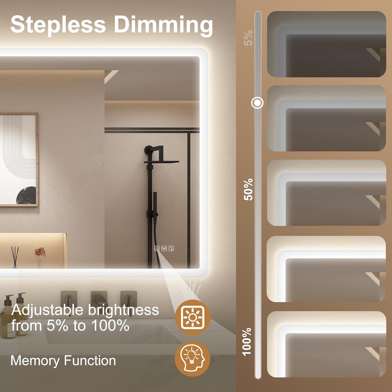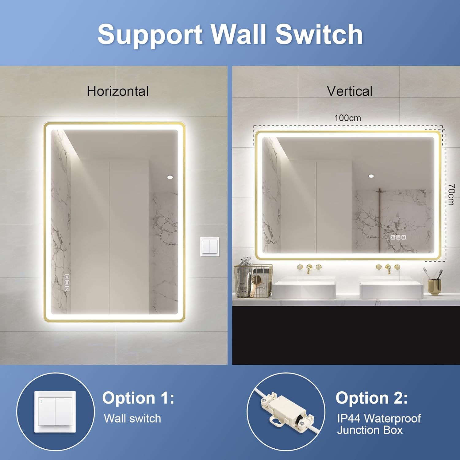 STARLEAD Specchio-Bagno-con-Luce e Bluetooth 70x100cm, Specchio-Bagno-LED con Antifog, 3 Colori Luce, Dimmerabile, IP44, Vetro Temperato HD, Memoria, Orizzontale/Verticale