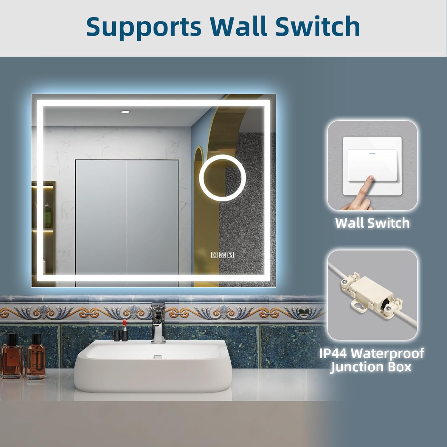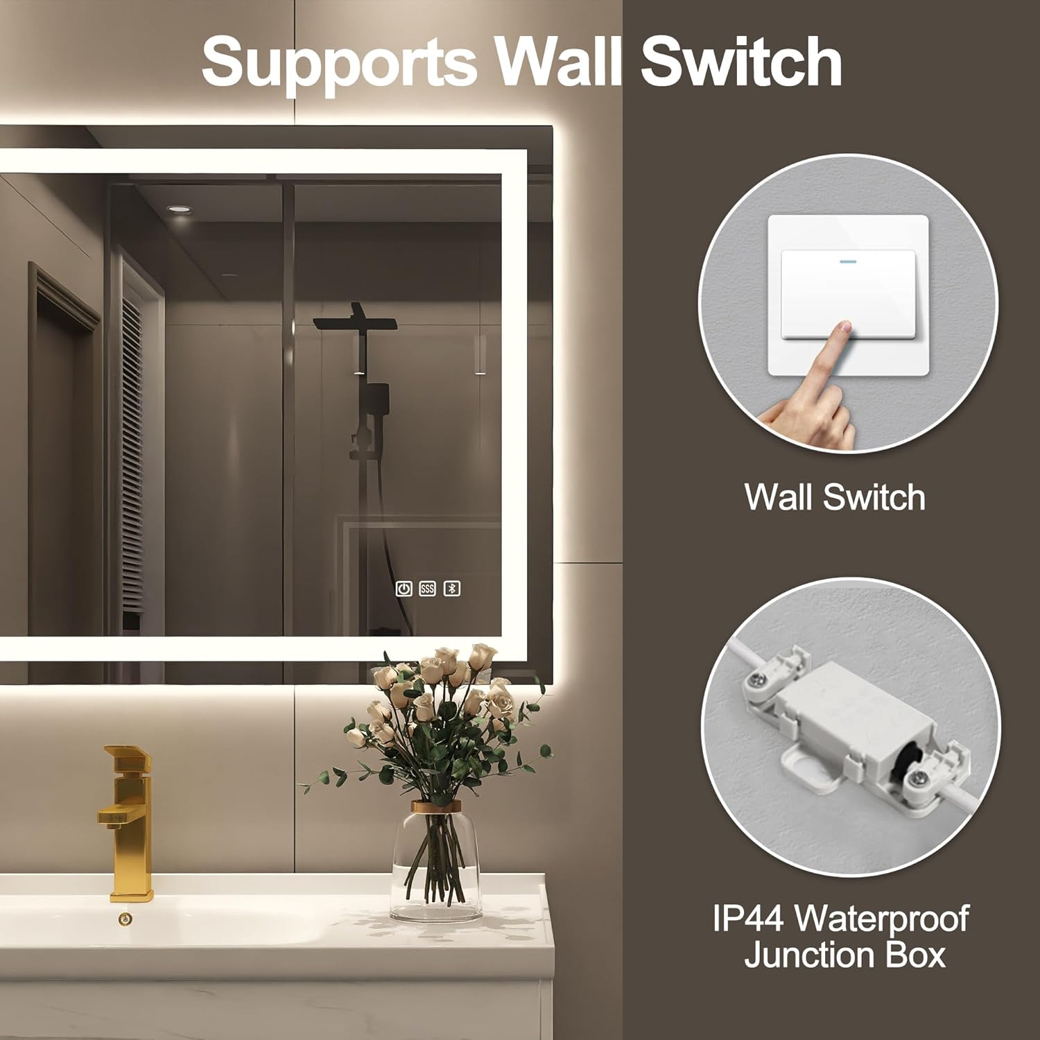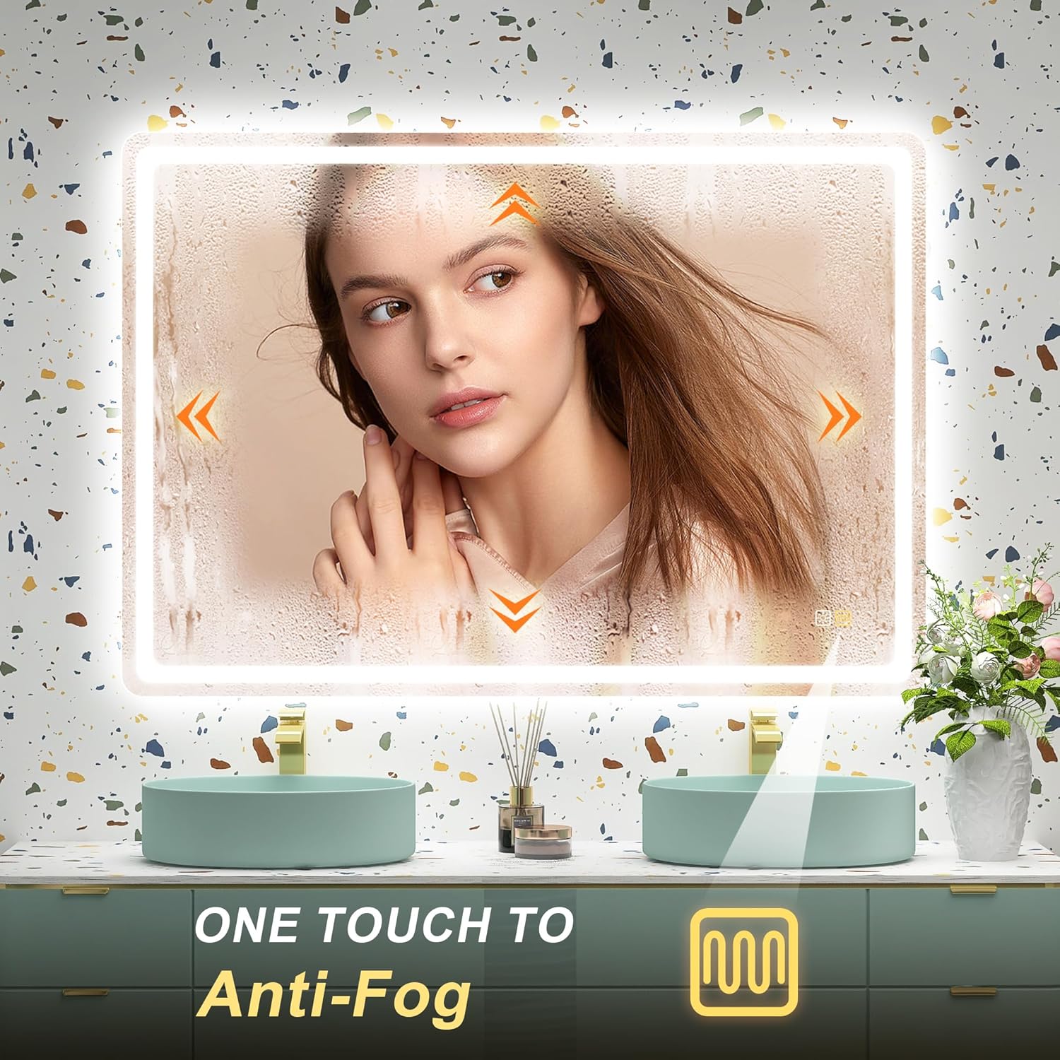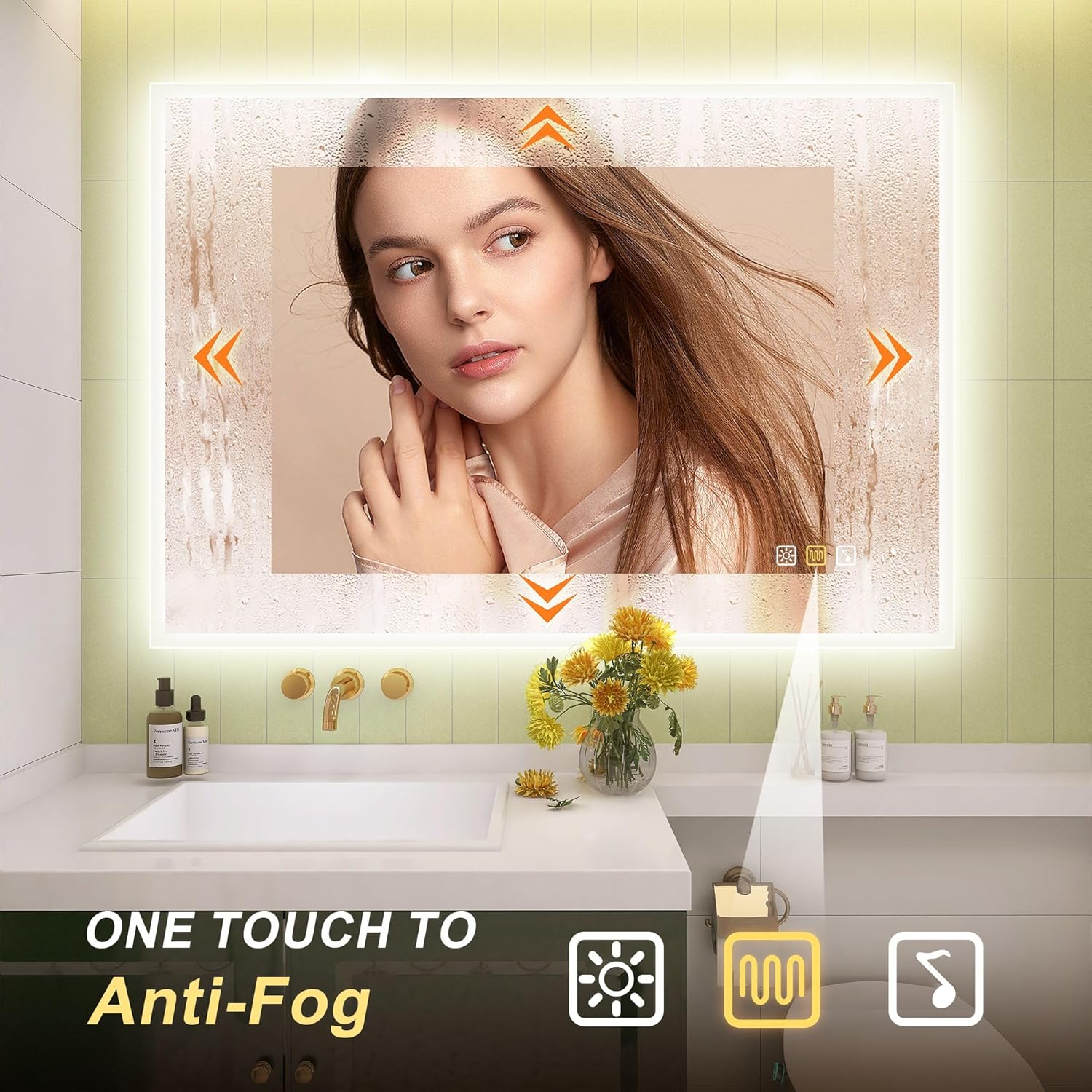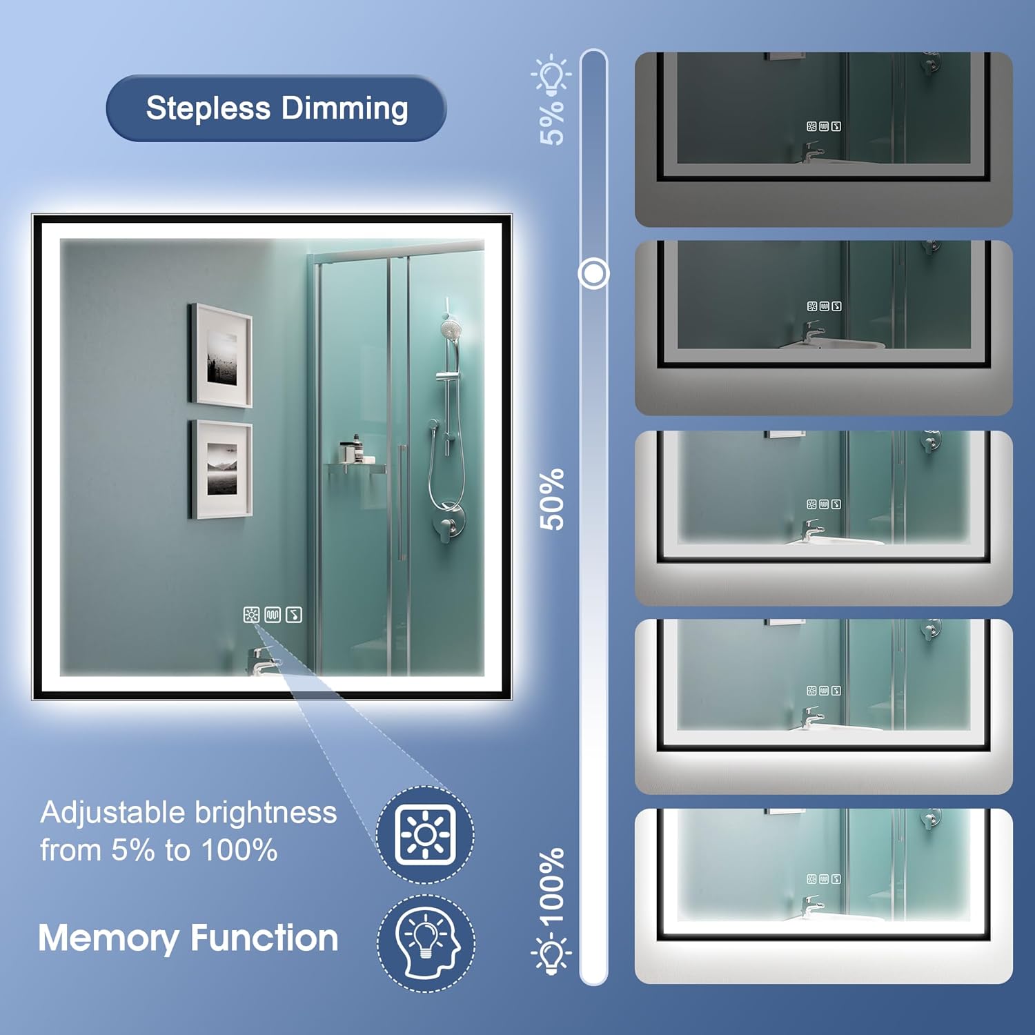 STARLEAD Specchio-Bagno-con-Luce e Bluetooth 70x100cm, Specchio-Bagno-LED con Antifog, 3 Colori Luce, Dimmerabile, IP44, Vetro Temperato HD, Memoria, Orizzontale/Verticale