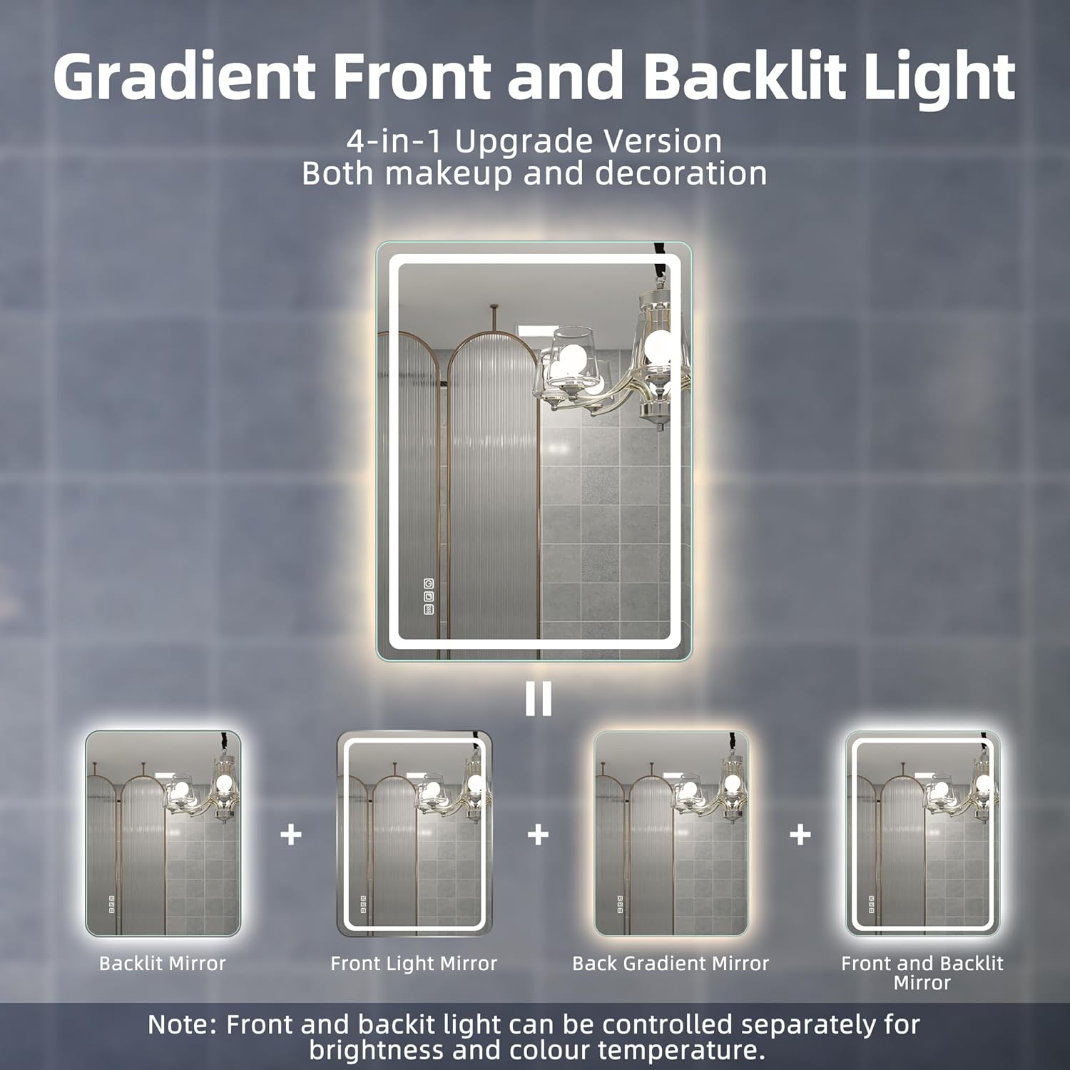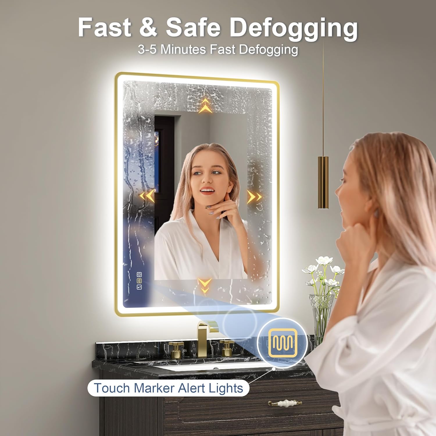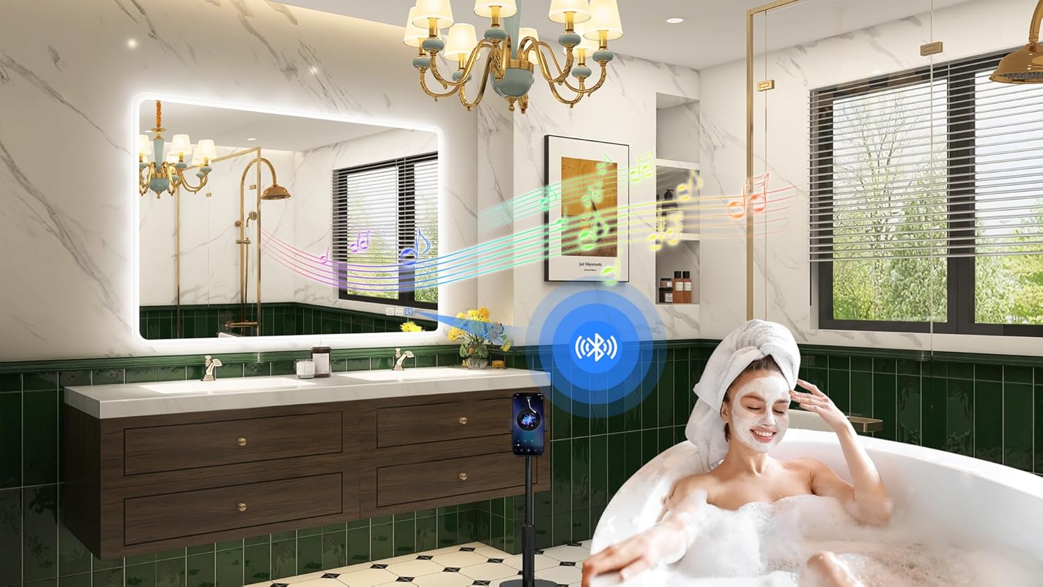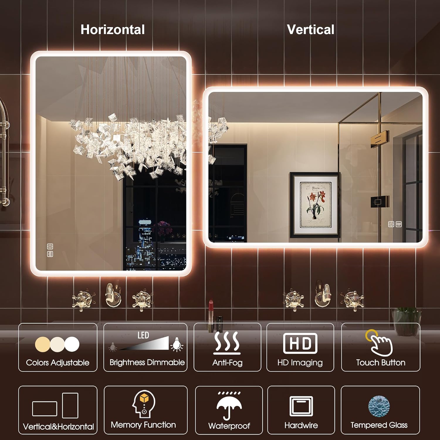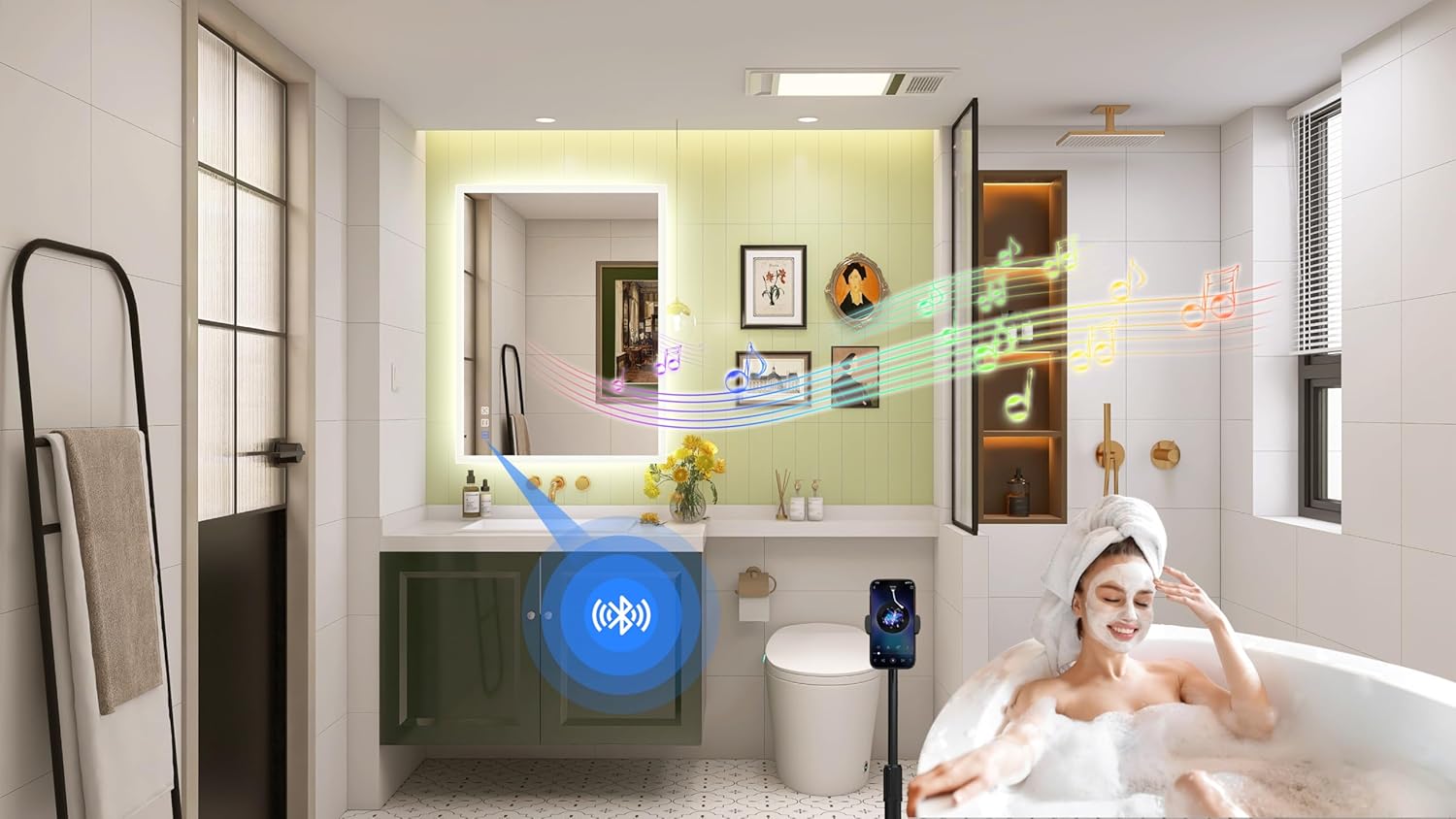 STARLEAD Specchio-Bagno-con-Luce e Bluetooth 70x100cm, Specchio-Bagno-LED con Antifog, 3 Colori Luce, Dimmerabile, IP44, Vetro Temperato HD, Memoria, Orizzontale/Verticale
