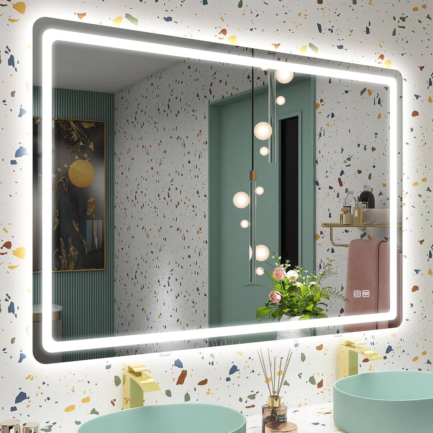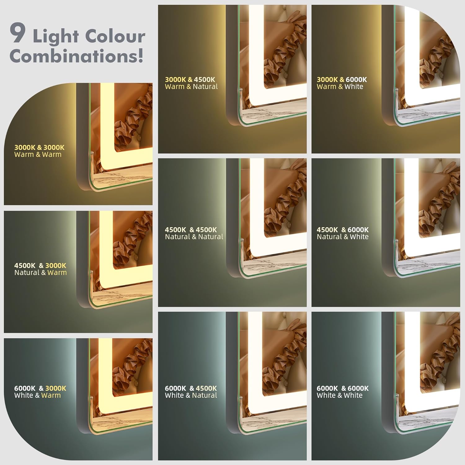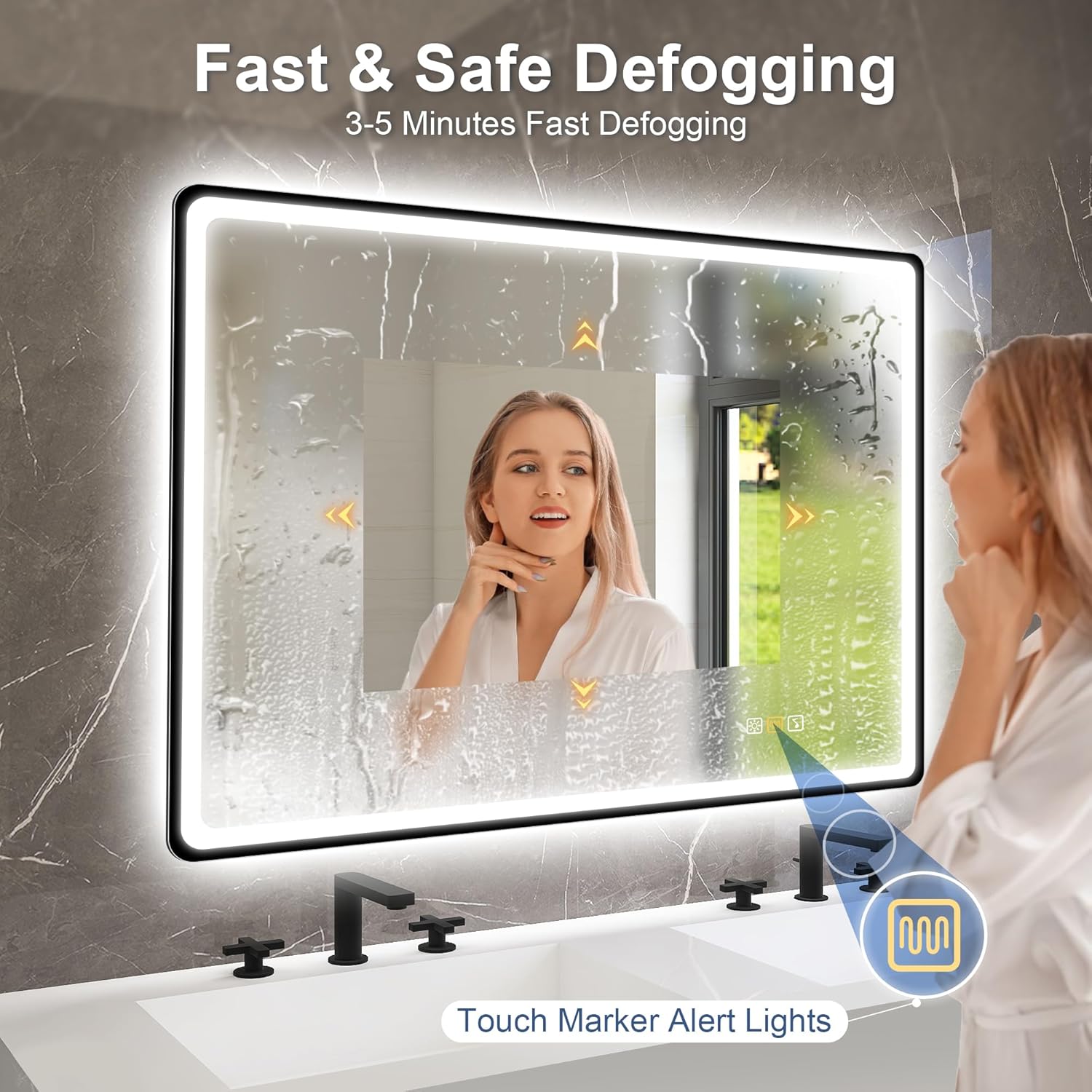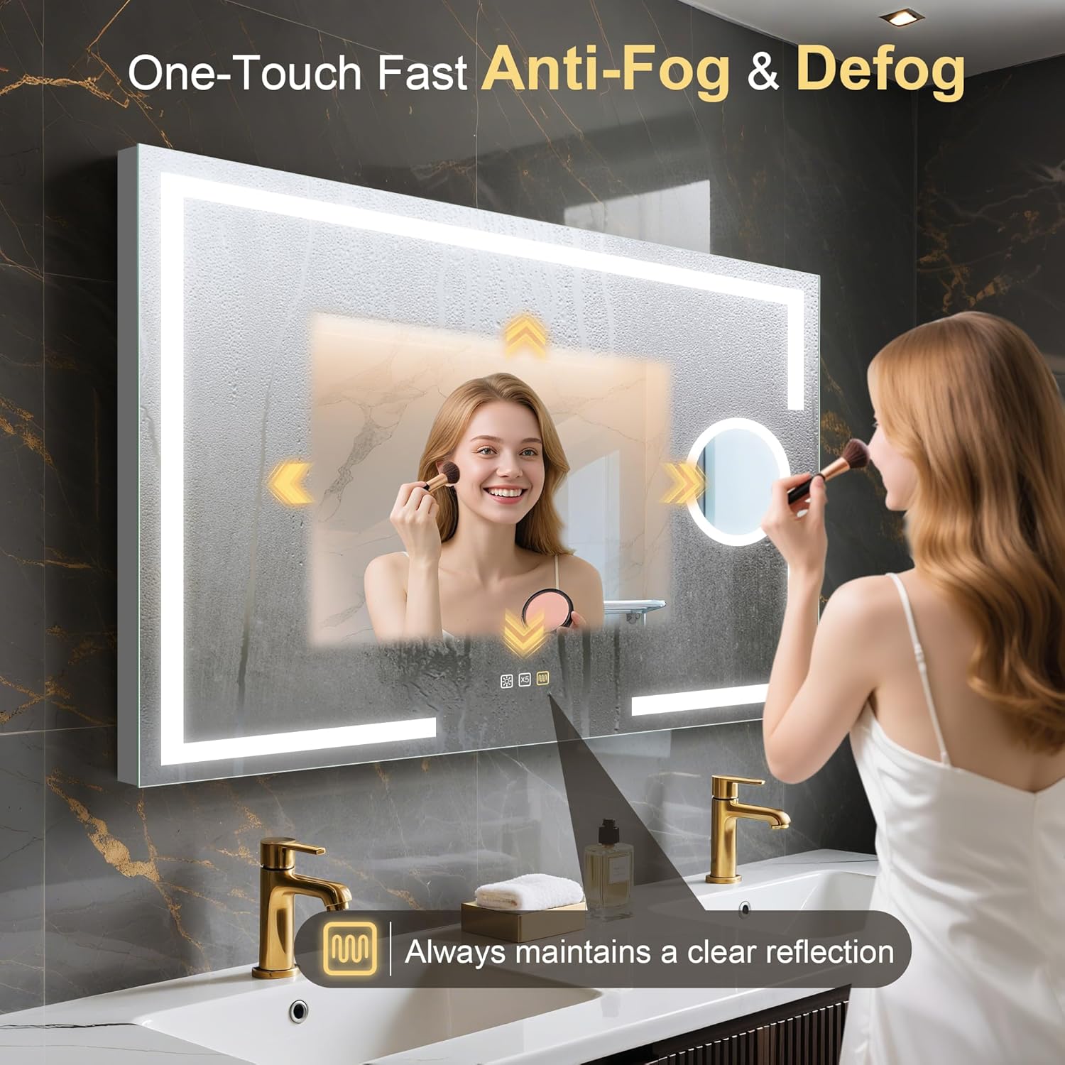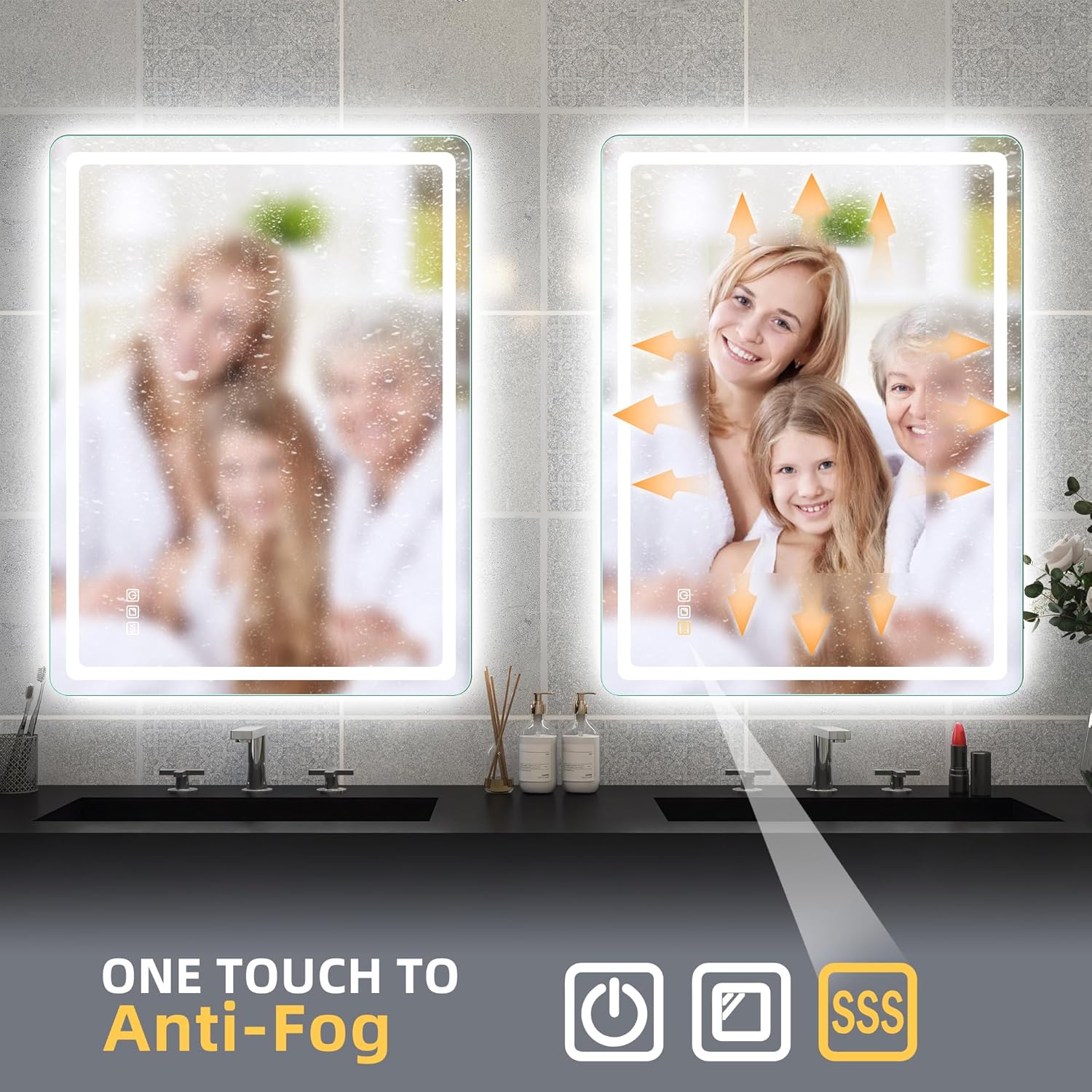STARLEAD Specchio-Bagno-con-Luce e Bluetooth 70x100cm, Specchio-Bagno-LED con Antifog, 3 Colori Luce, Dimmerabile, IP44, Vetro Temperato HD, Memoria, Orizzontale/Verticale