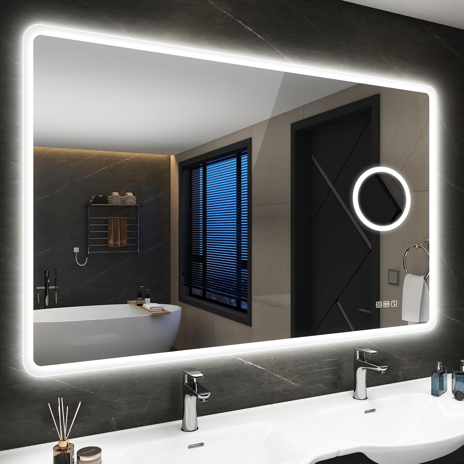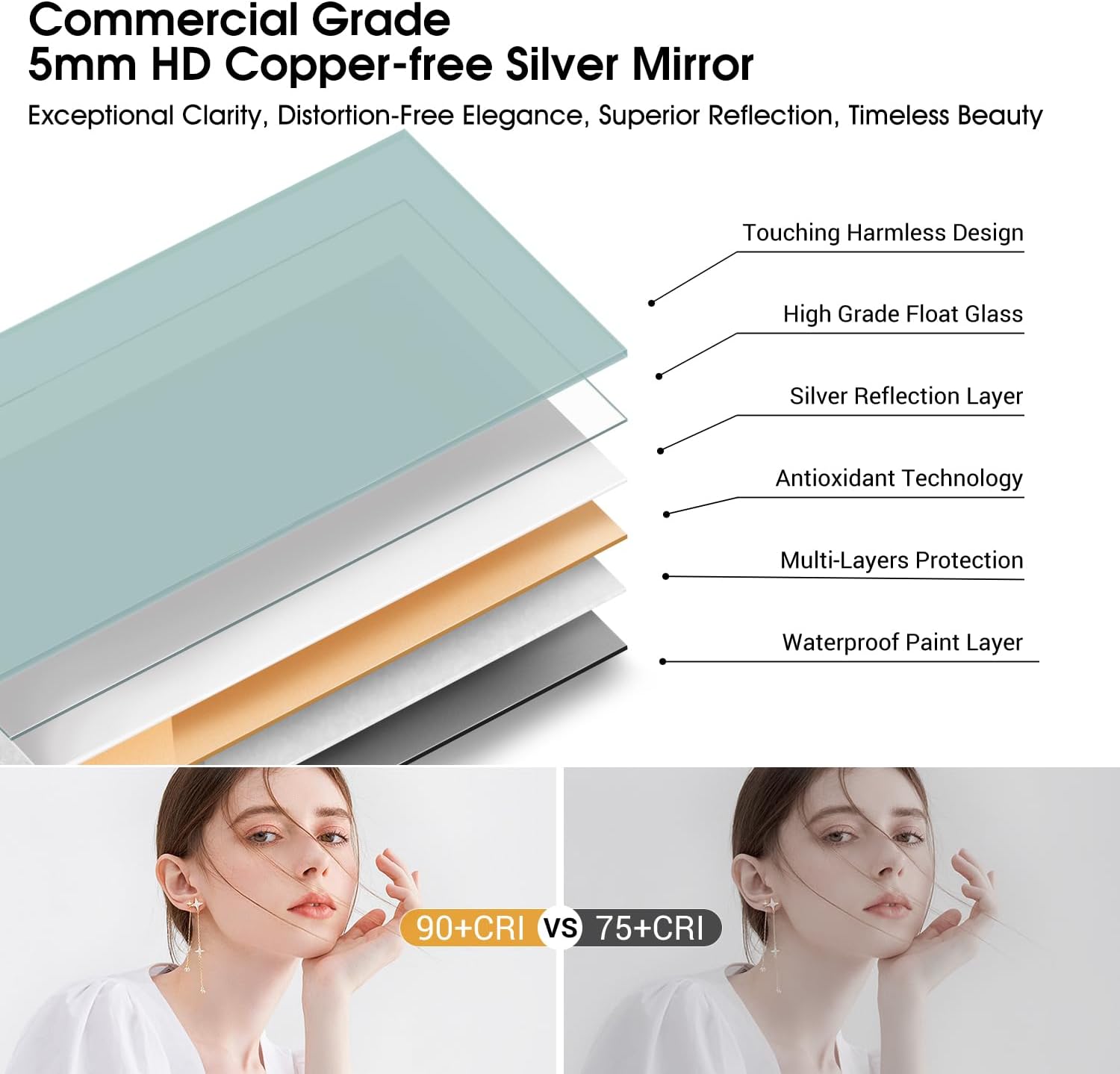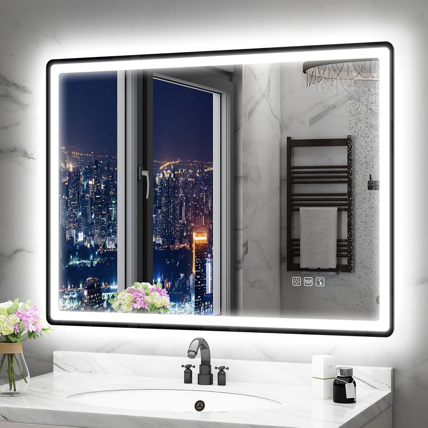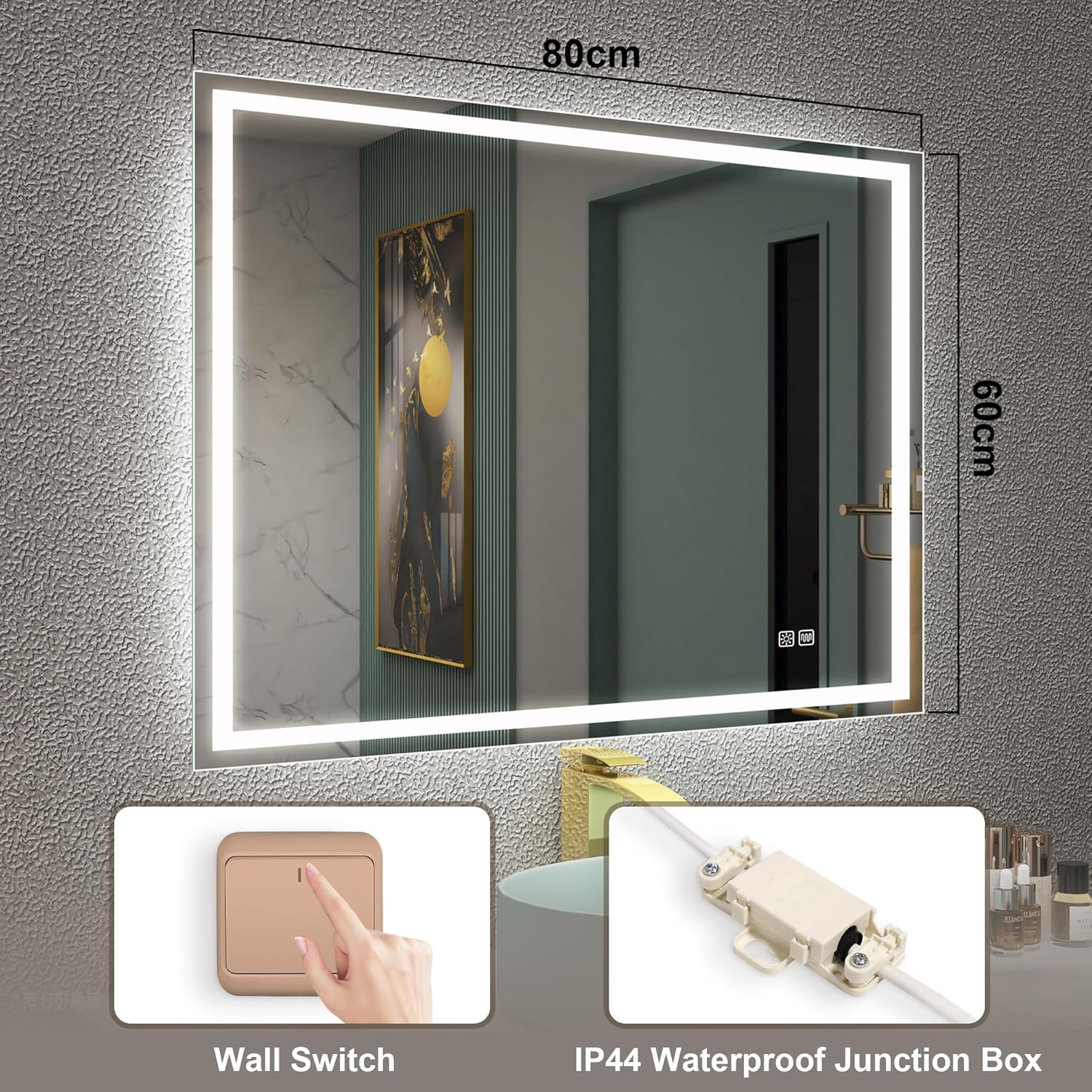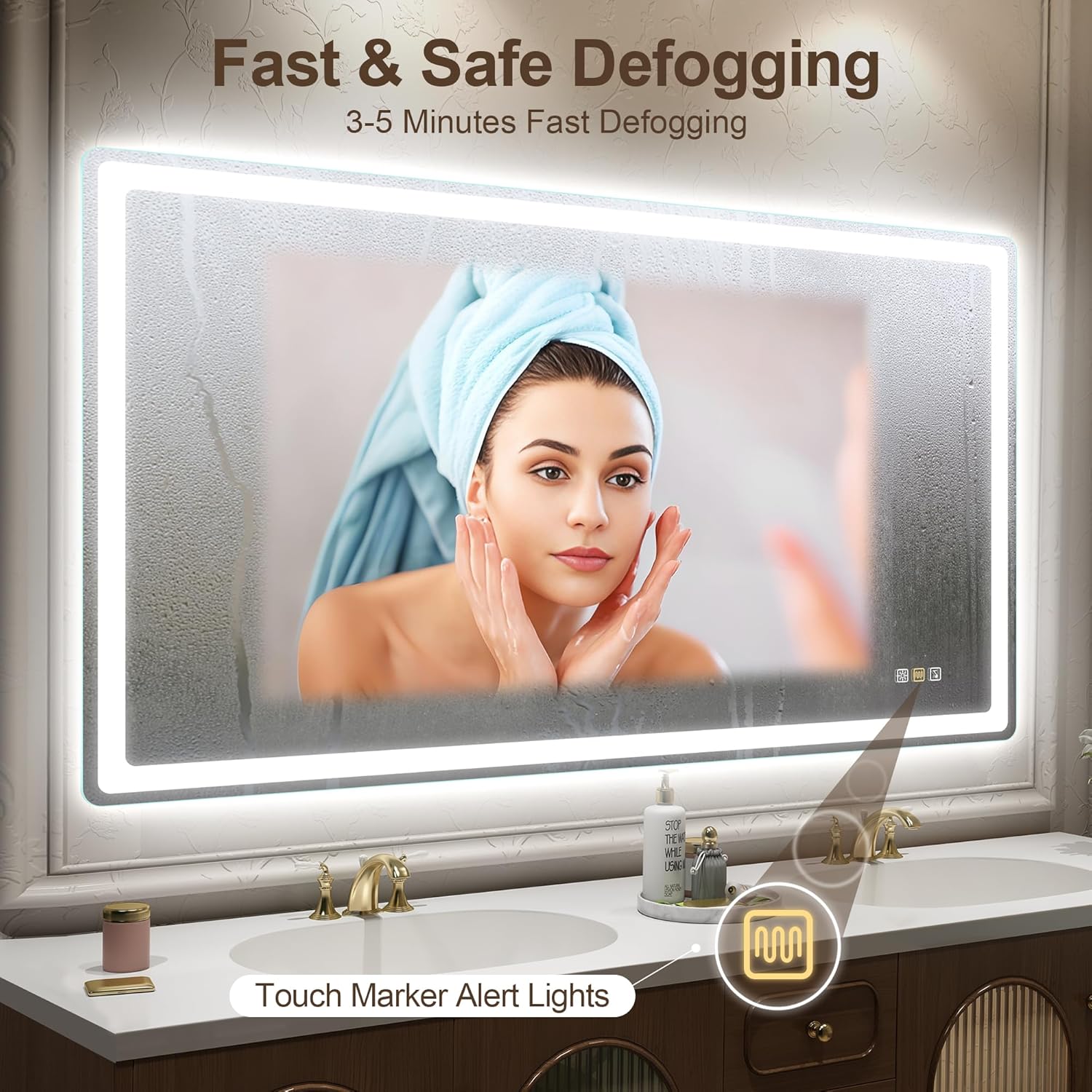 STARLEAD Specchio-Bagno-con-Luce e Bluetooth 70x100cm, Specchio-Bagno-LED con Antifog, 3 Colori Luce, Dimmerabile, IP44, Vetro Temperato HD, Memoria, Orizzontale/Verticale