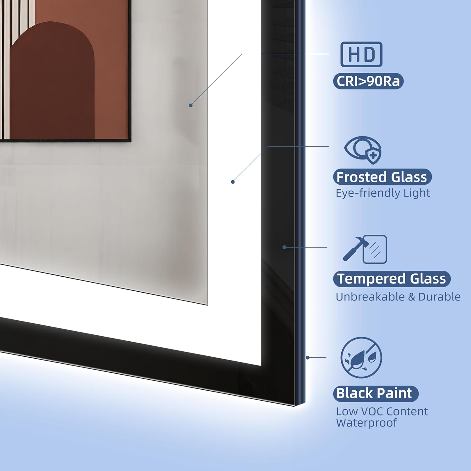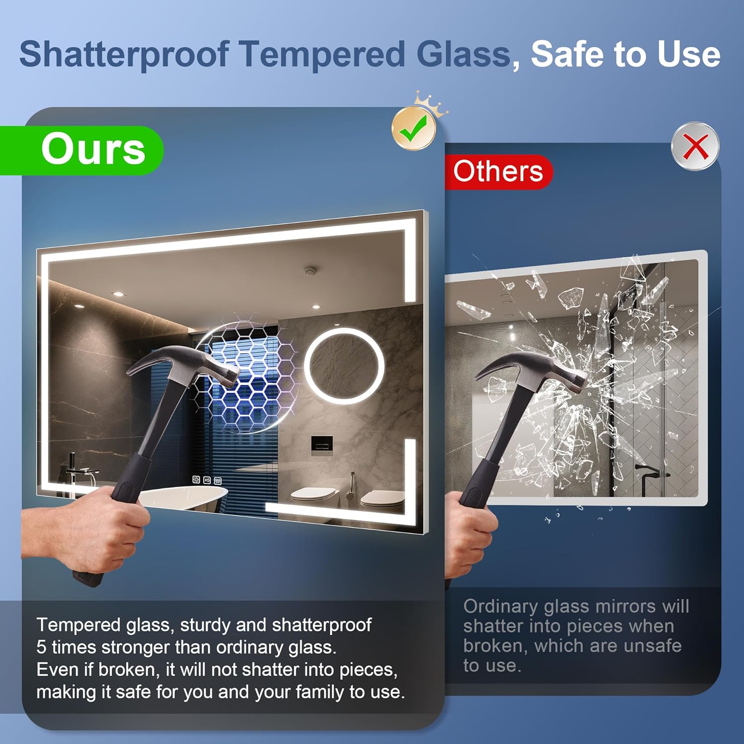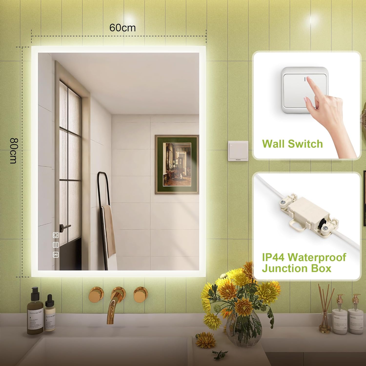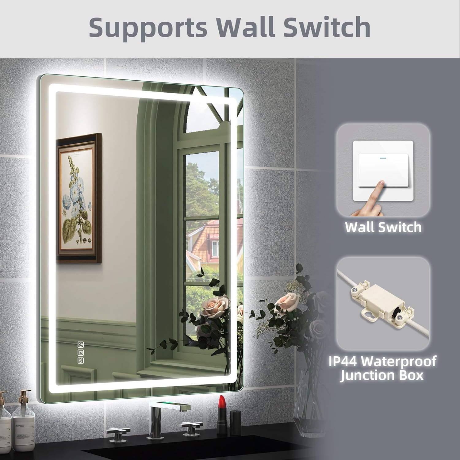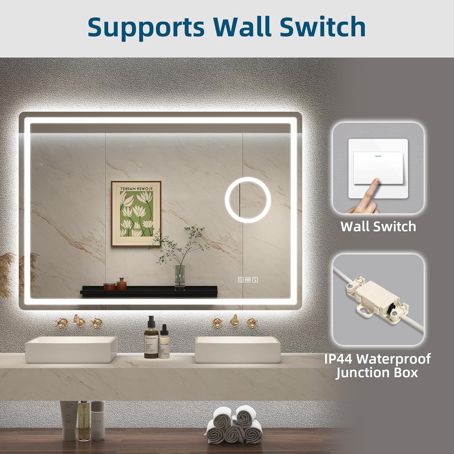 STARLEAD Specchio-Bagno-con-Luce e Bluetooth 70x100cm, Specchio-Bagno-LED con Antifog, 3 Colori Luce, Dimmerabile, IP44, Vetro Temperato HD, Memoria, Orizzontale/Verticale