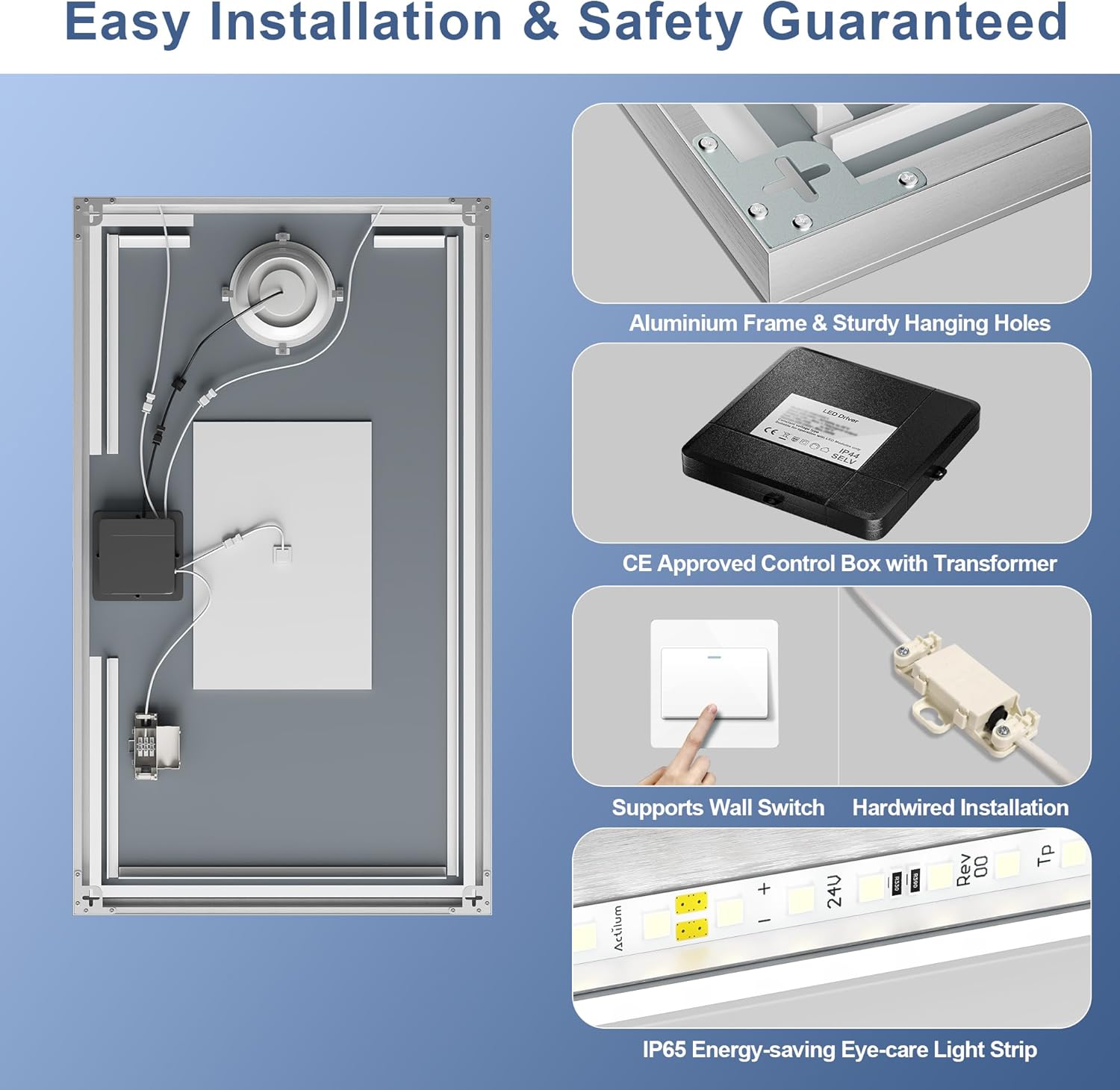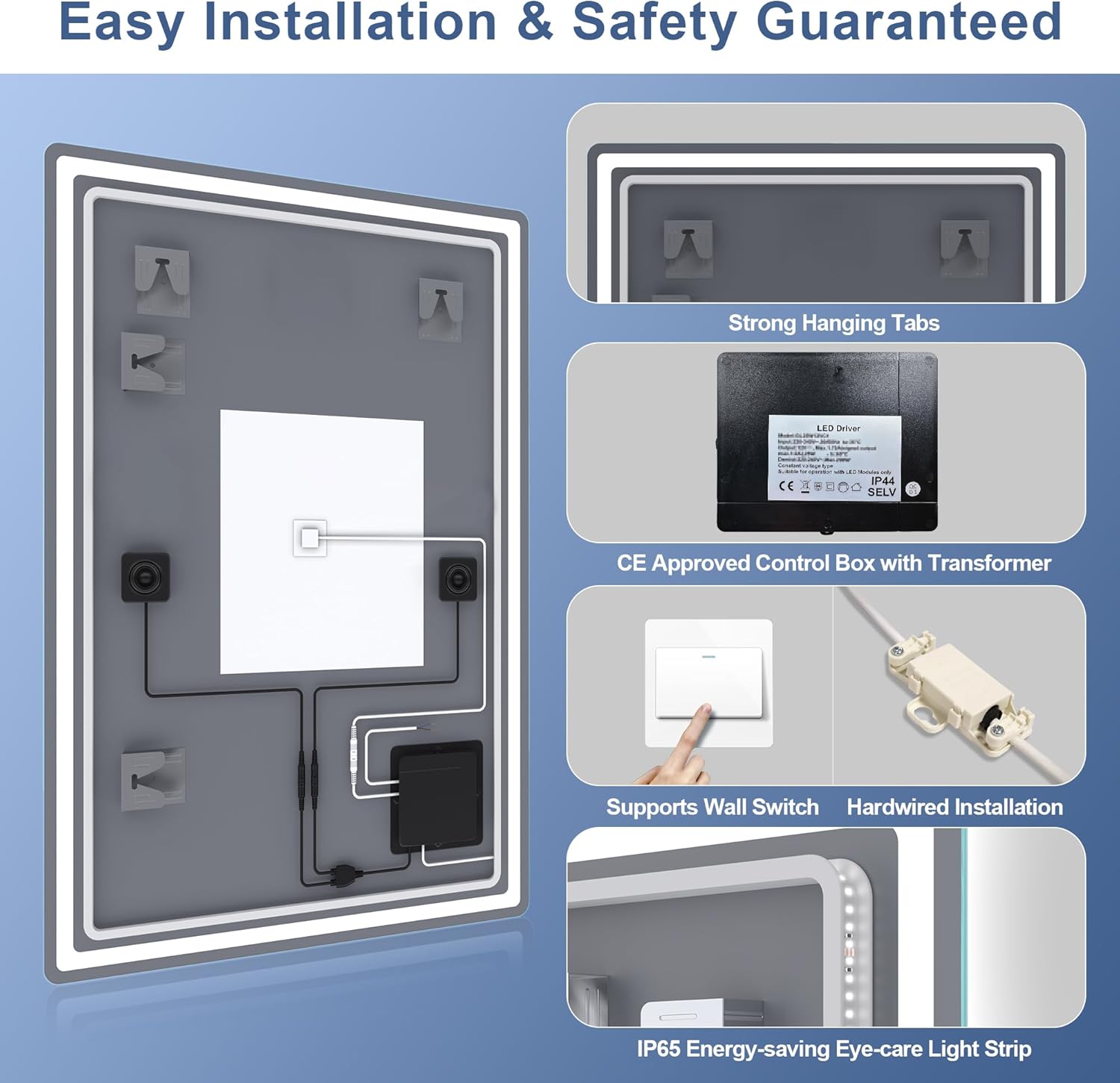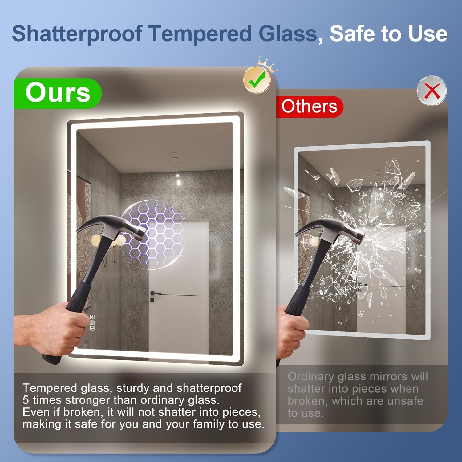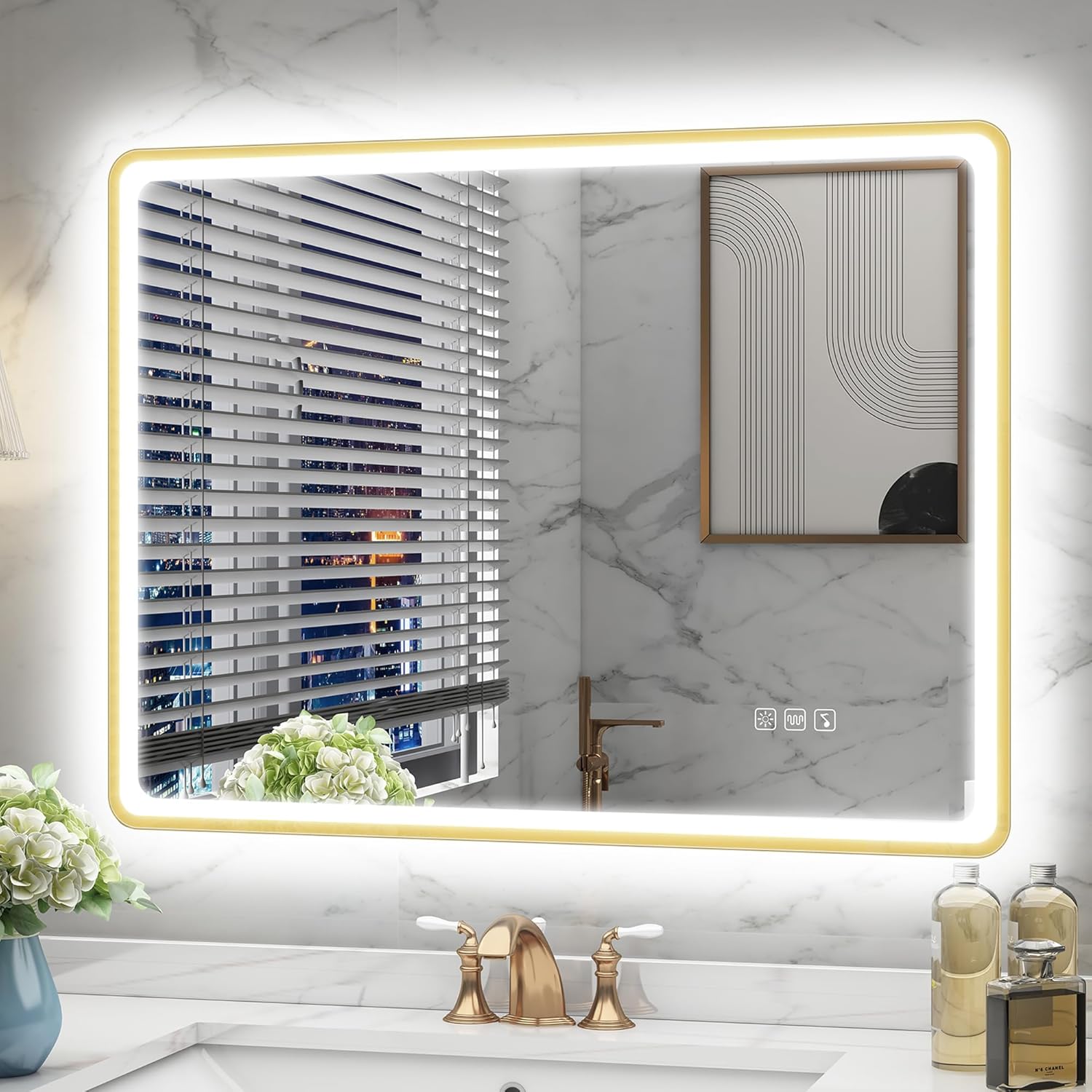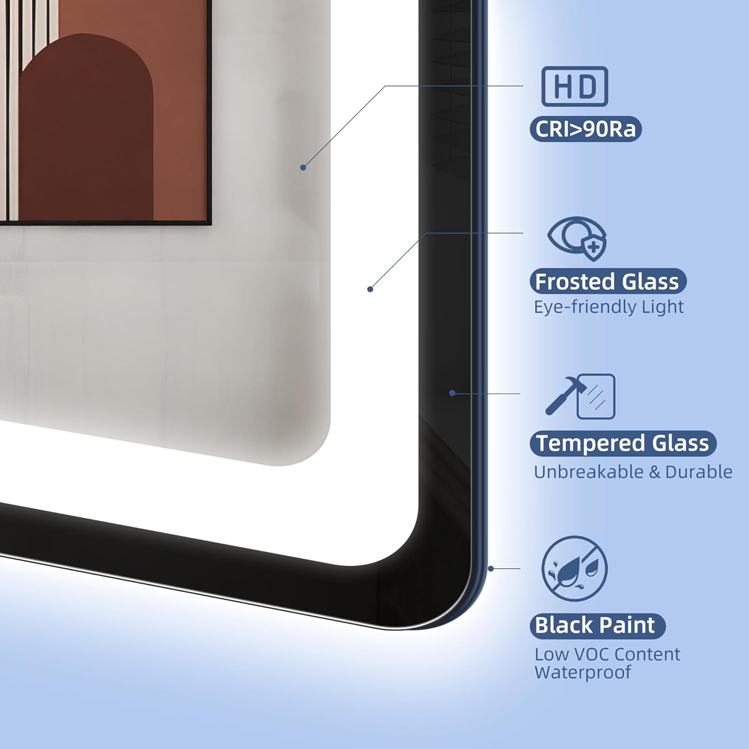 STARLEAD Specchio-Bagno-con-Luce e Bluetooth 70x100cm, Specchio-Bagno-LED con Antifog, 3 Colori Luce, Dimmerabile, IP44, Vetro Temperato HD, Memoria, Orizzontale/Verticale