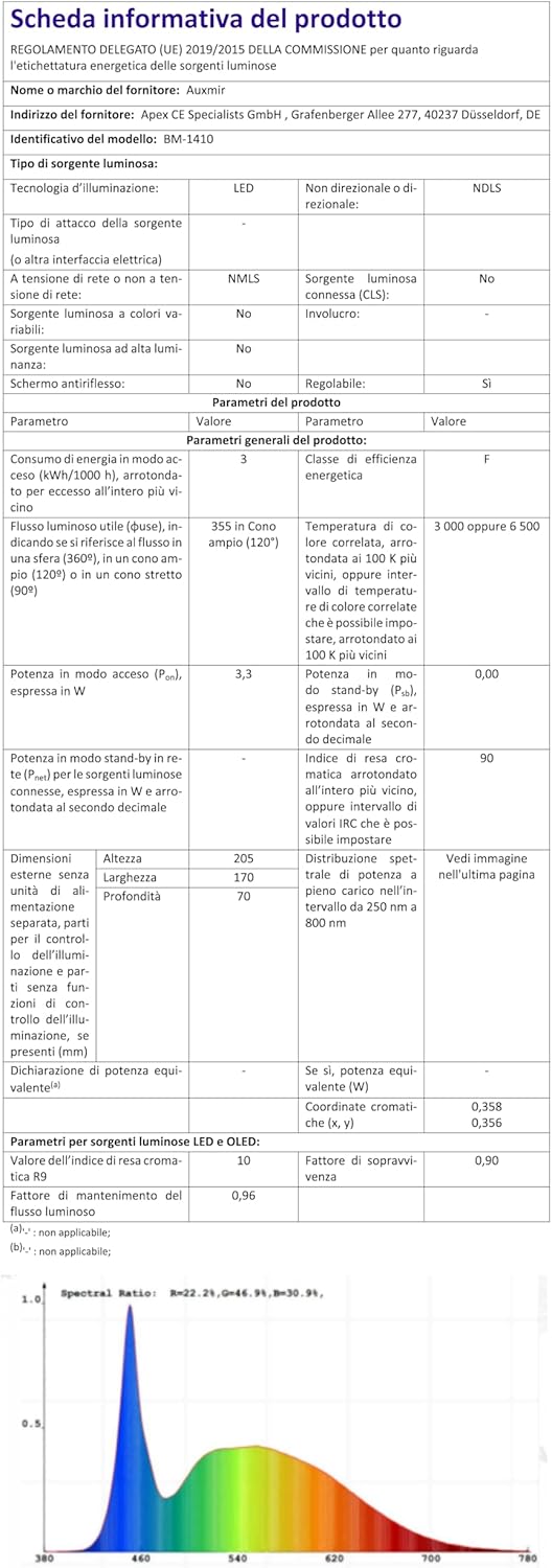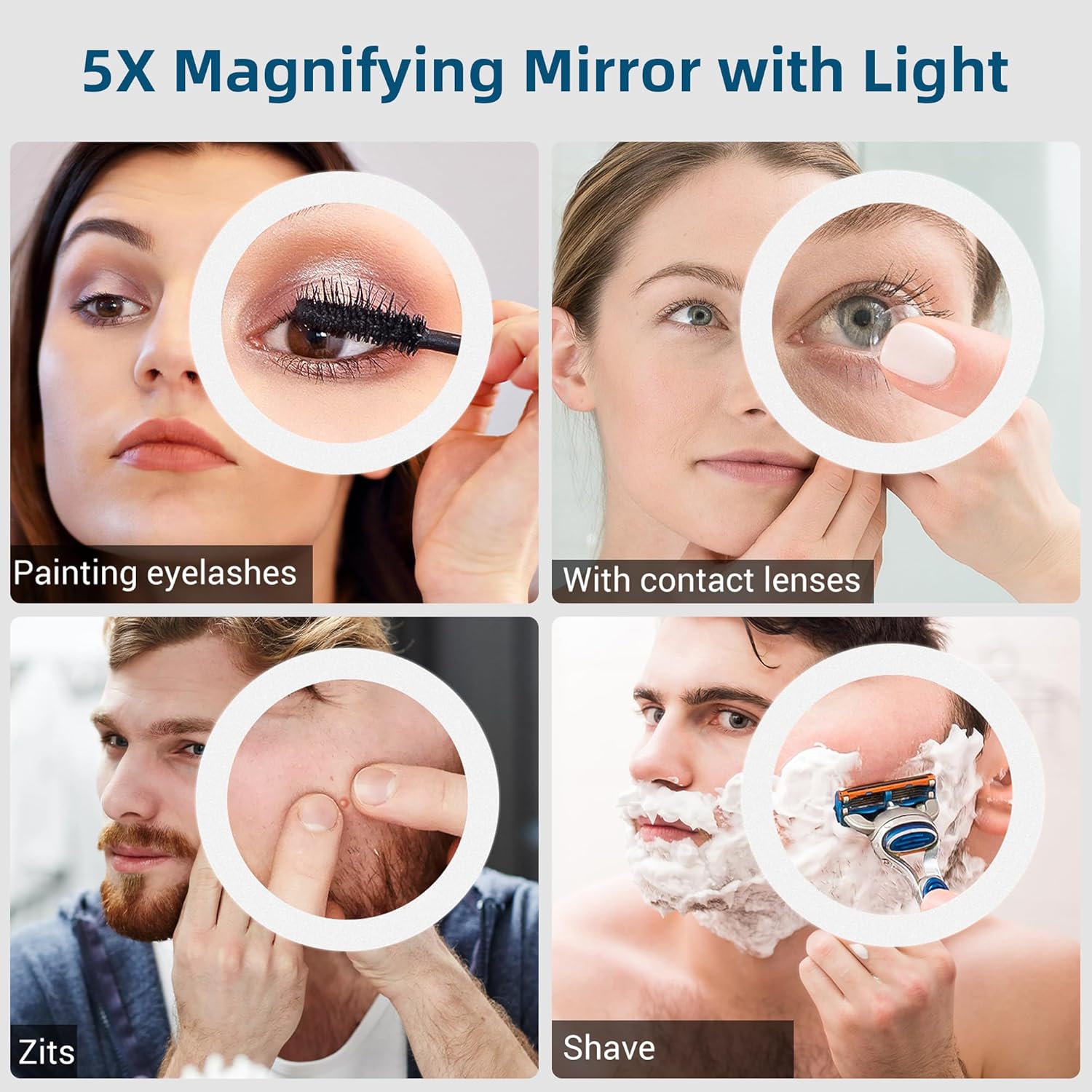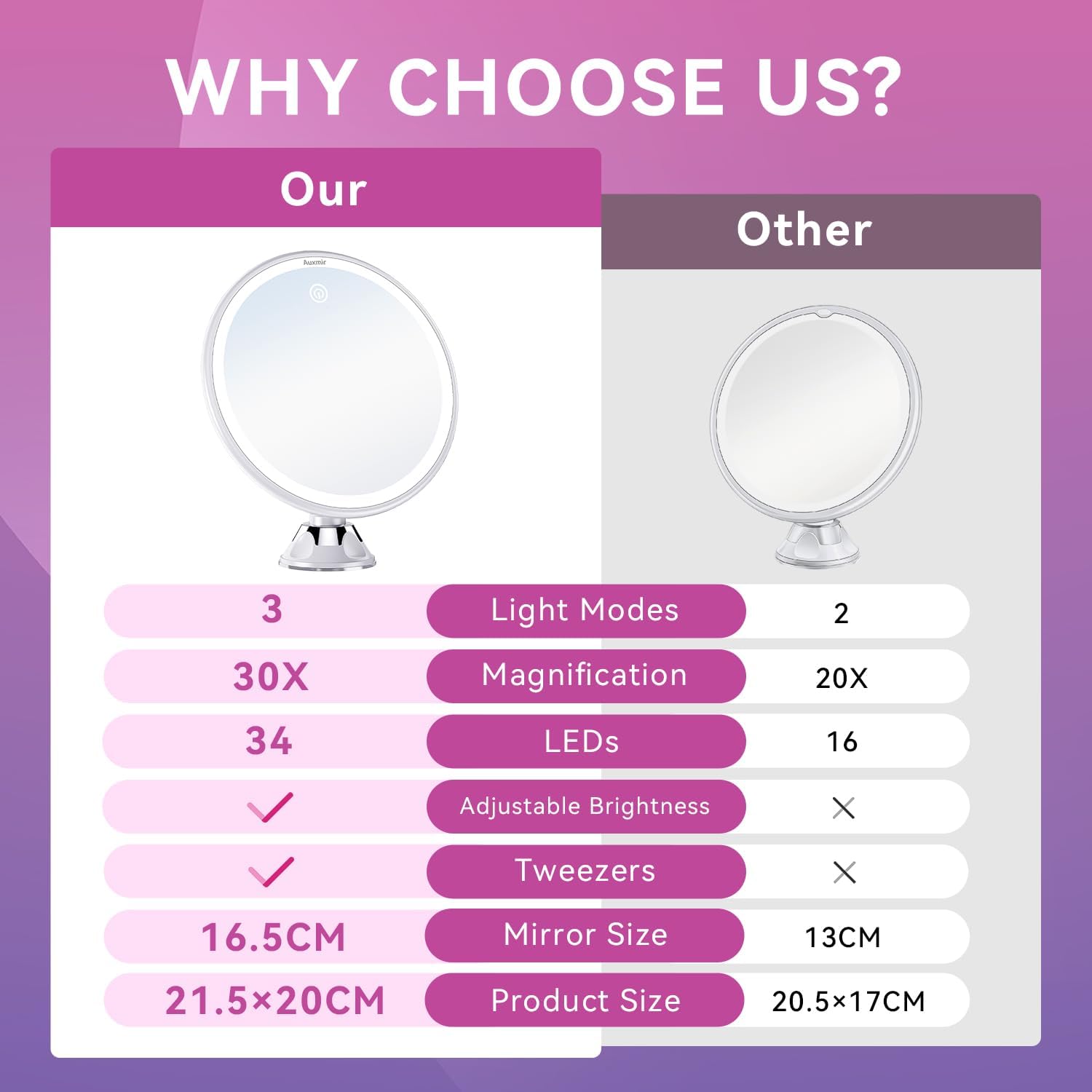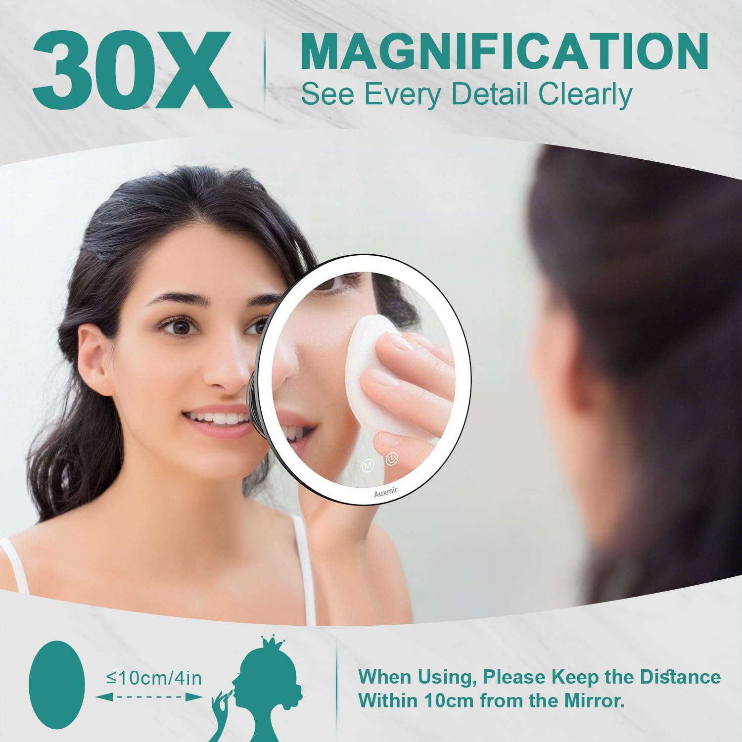 Auxmir Specchio Ingranditore 20X, Specchio Trucco a 3 Colori d’Illuminazione, Luminosità Regolabile, Specchio Cosmetico a Ventosa con Giunto Sferico Orientabile Rotazione a 360°, Ricaricabile