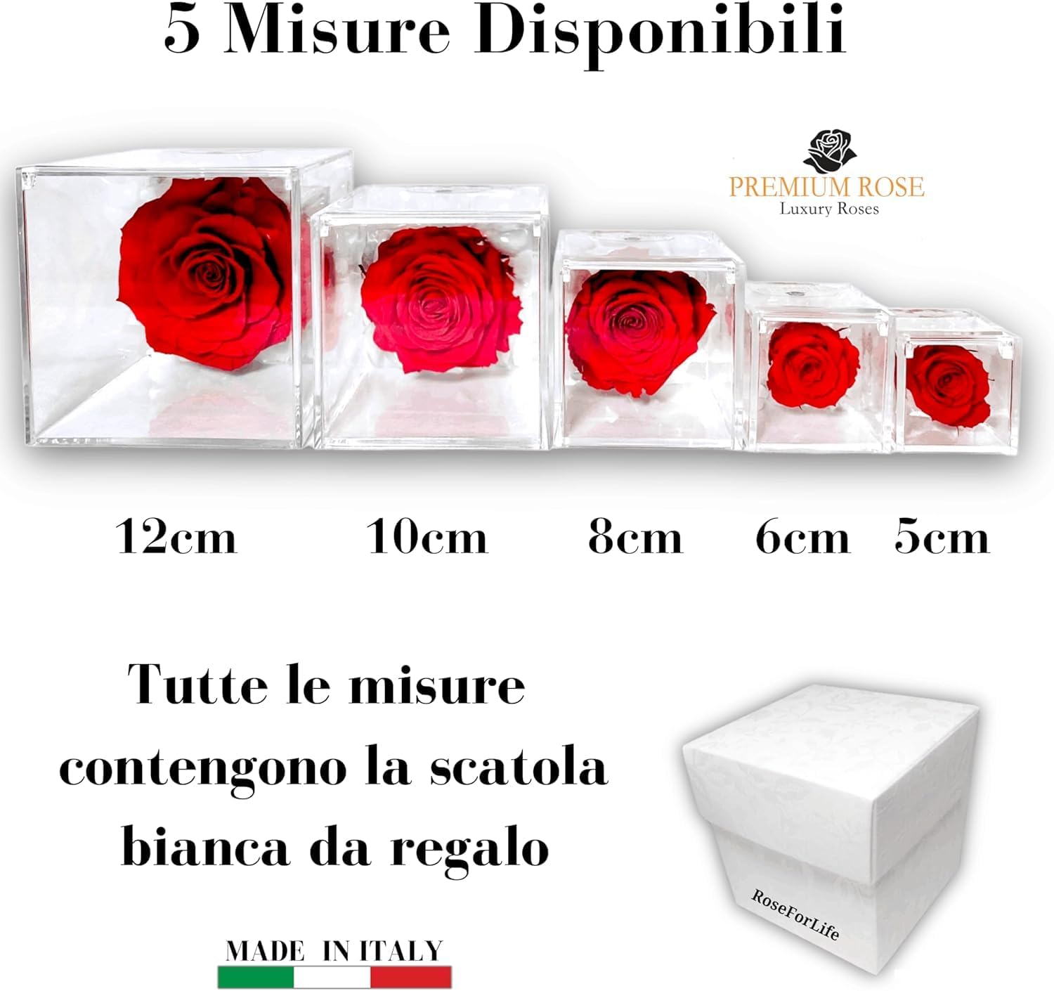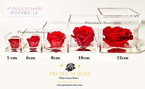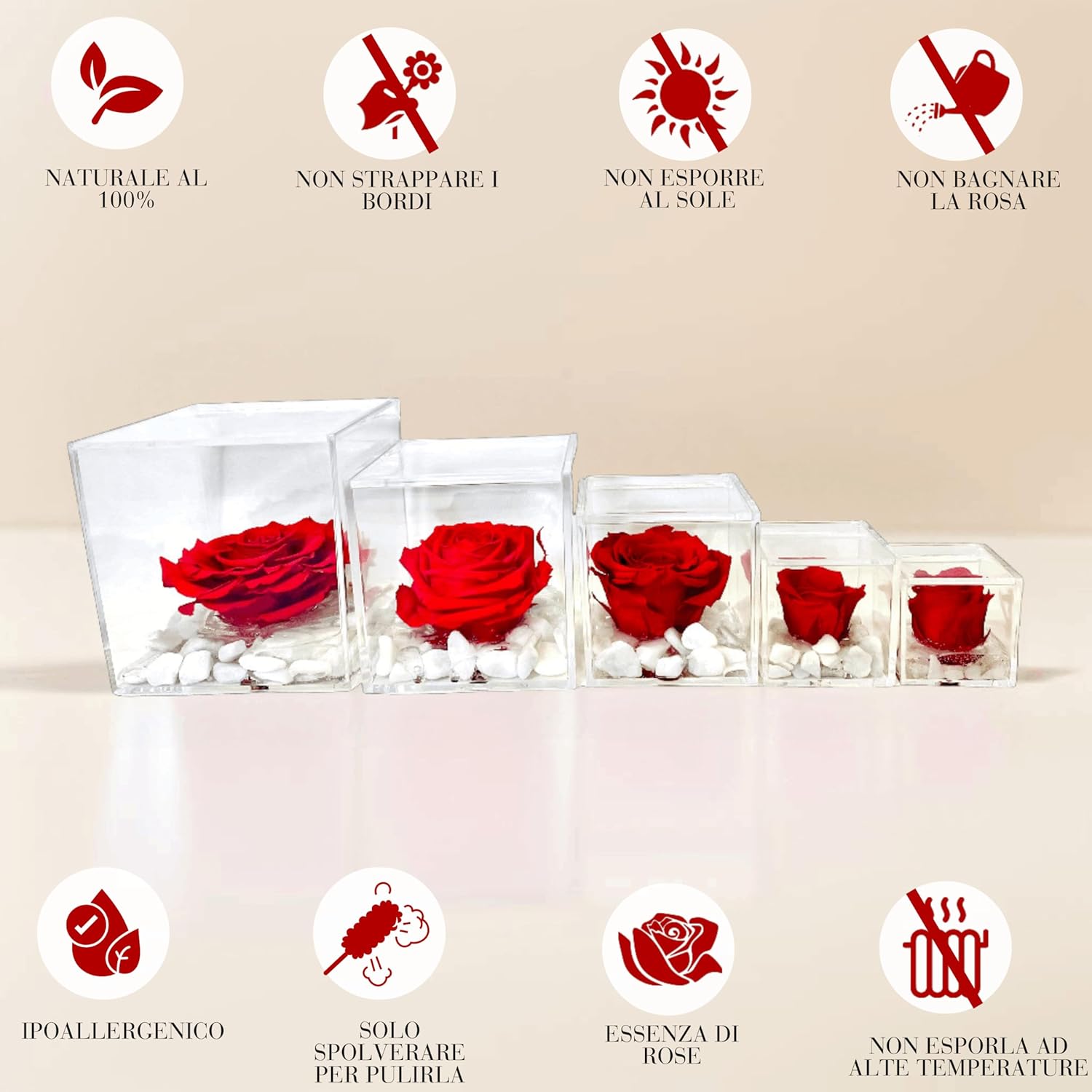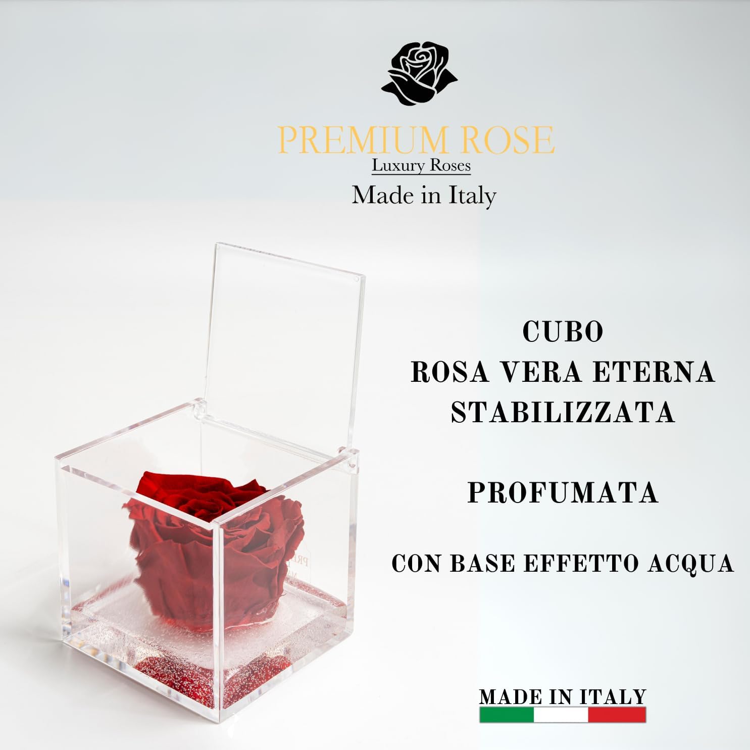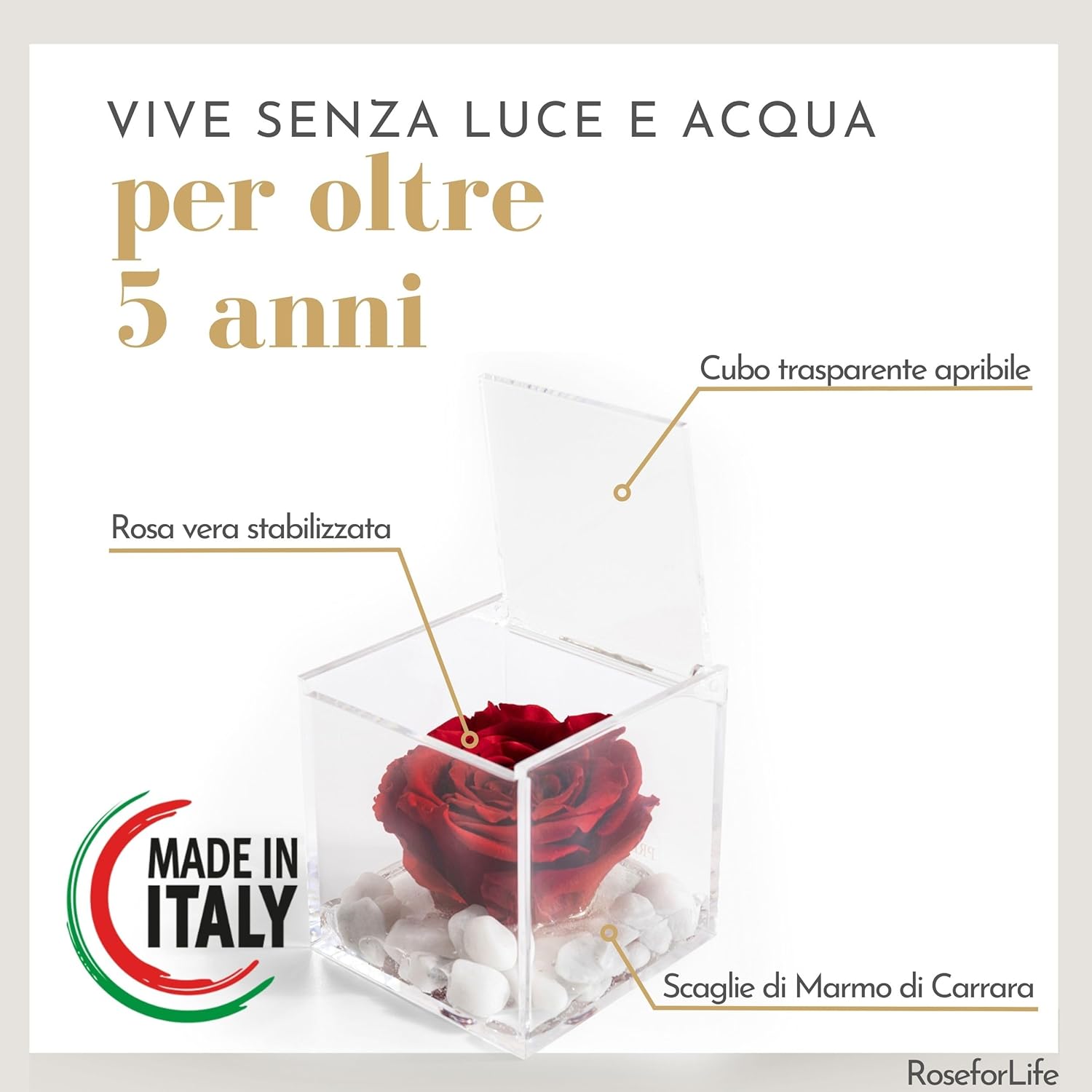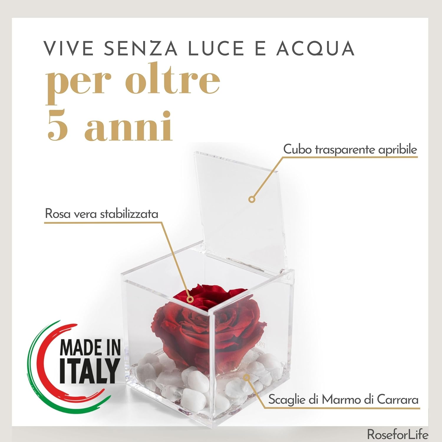 PREMIUM ROSE - Cubo Rosa Stabilizzata Rossa Profumata 8cm con Marmo di Carrara - Rosa Eterna Stabilizzata Rossa Idea per San Valentino, Natale Made in Italy - Rosso 1080