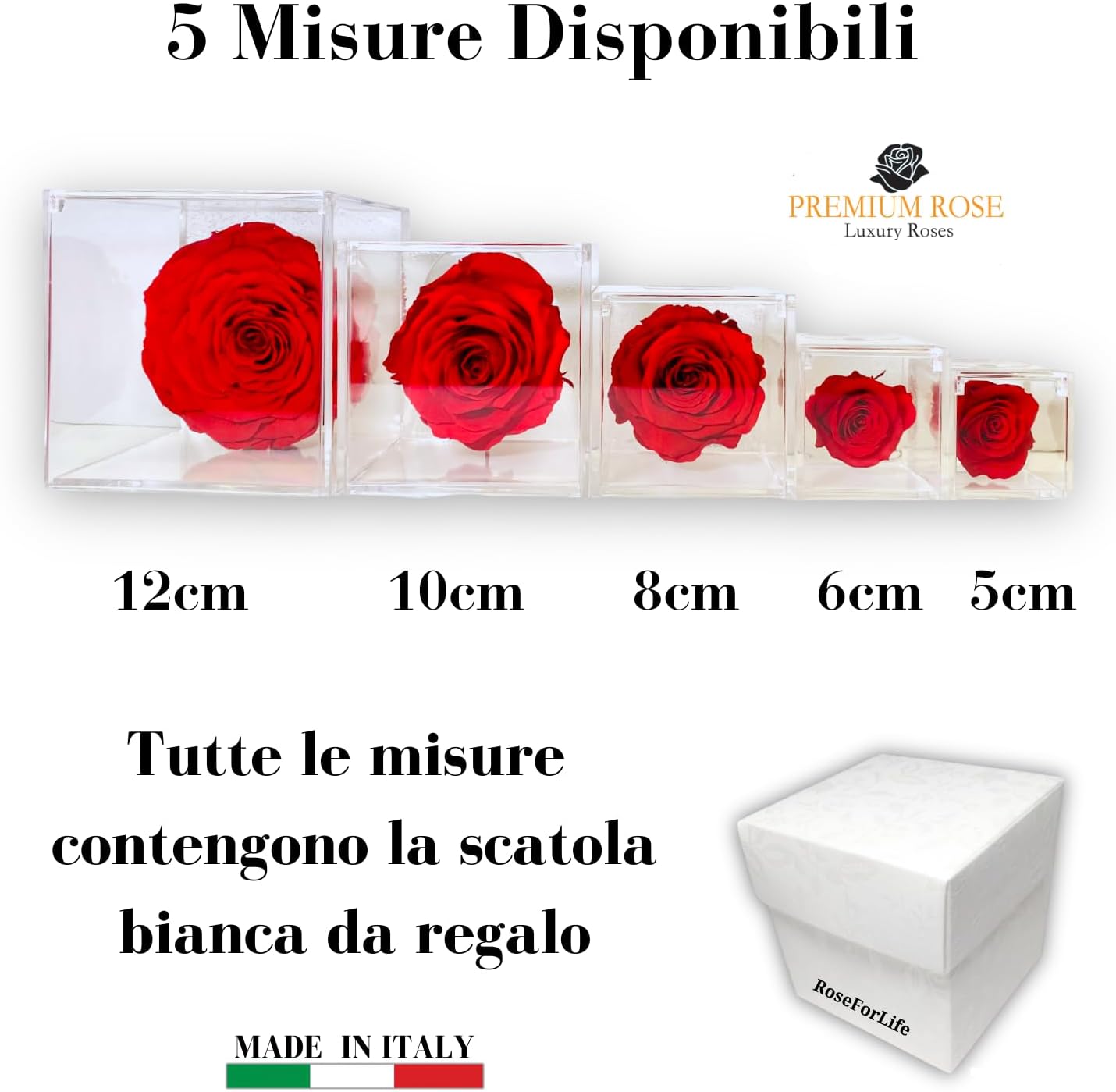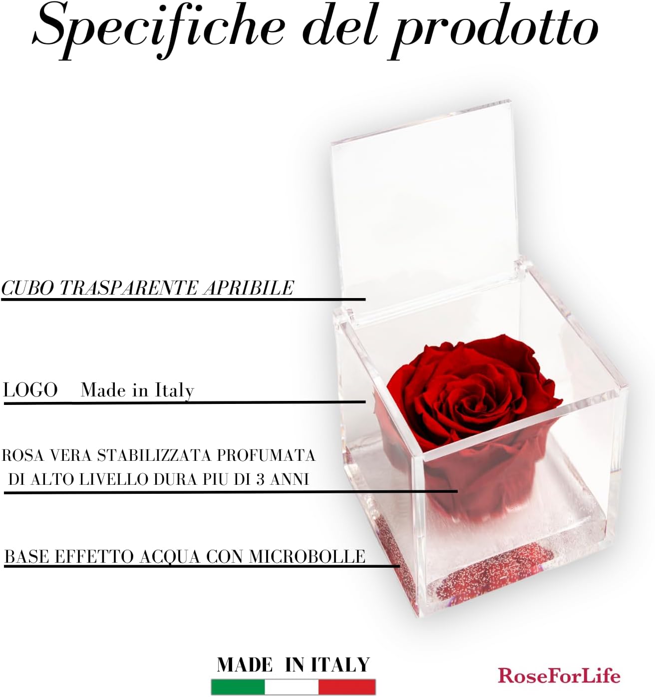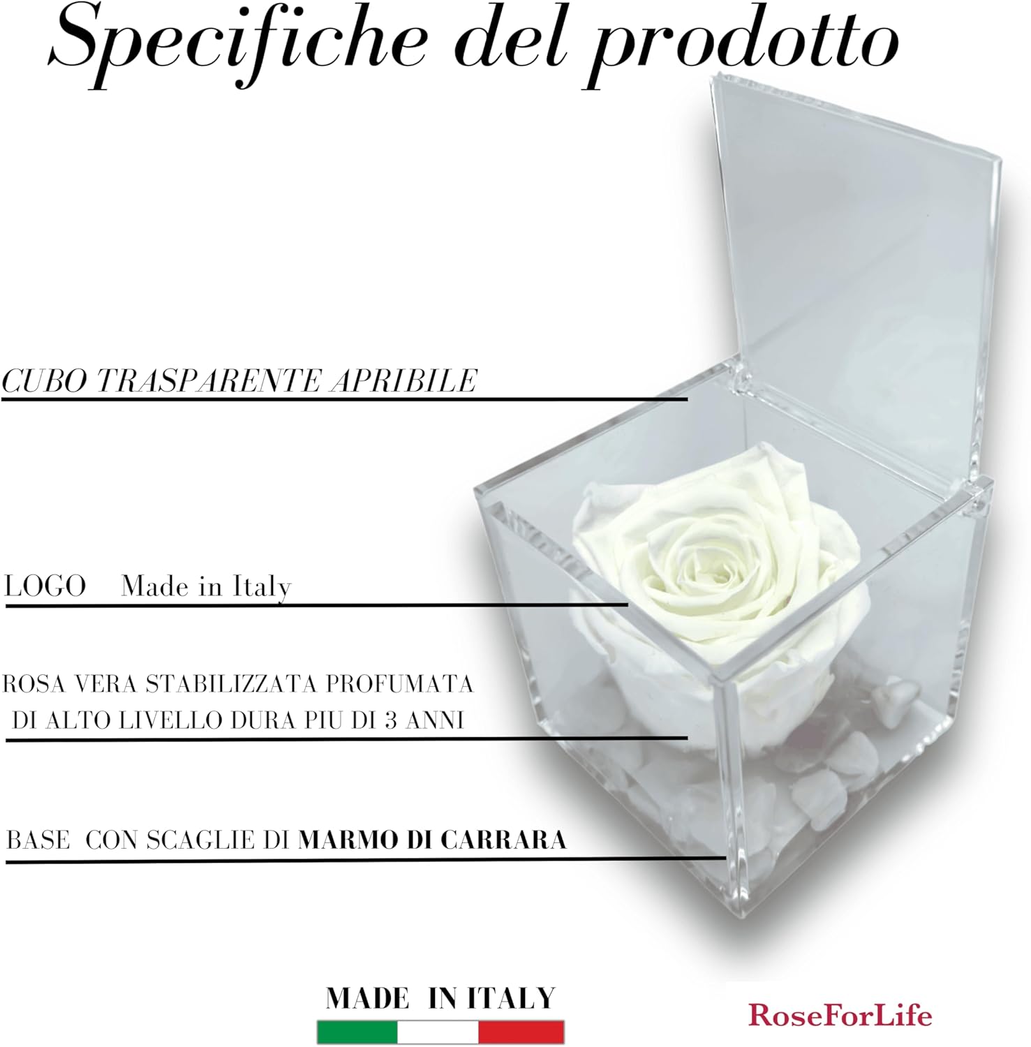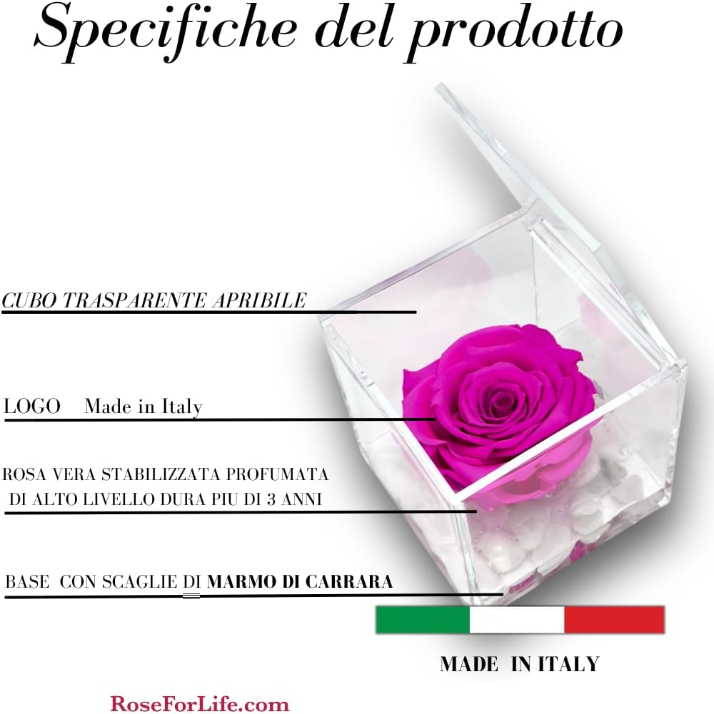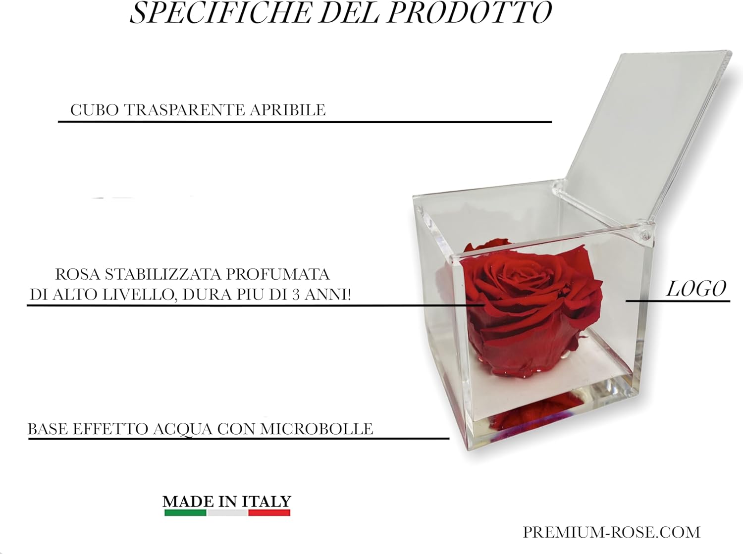 PREMIUM ROSE - Cubo Rosa Stabilizzata Rossa Profumata 8cm con Marmo di Carrara - Rosa Eterna Stabilizzata Rossa Idea per San Valentino, Natale Made in Italy - Rosso 1080
