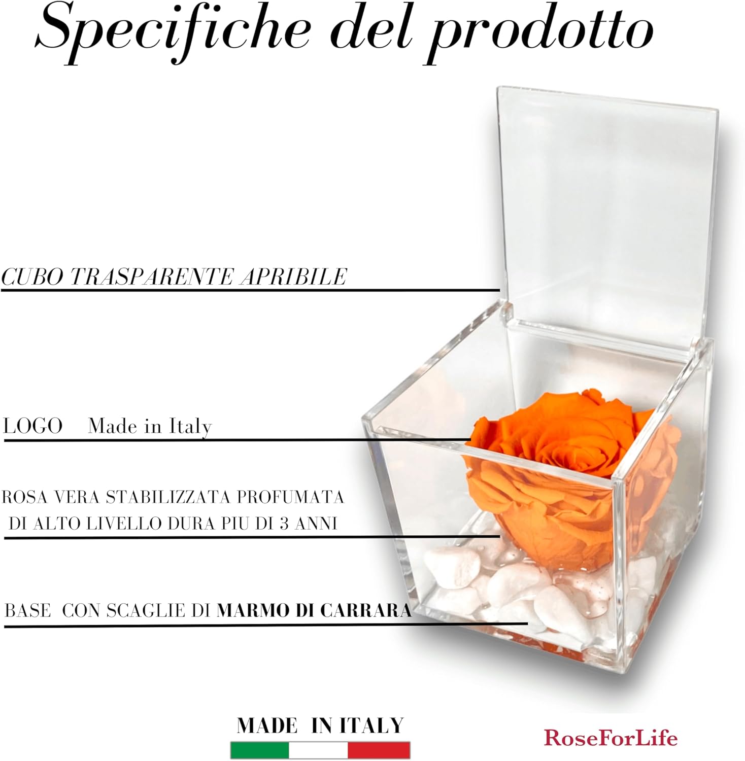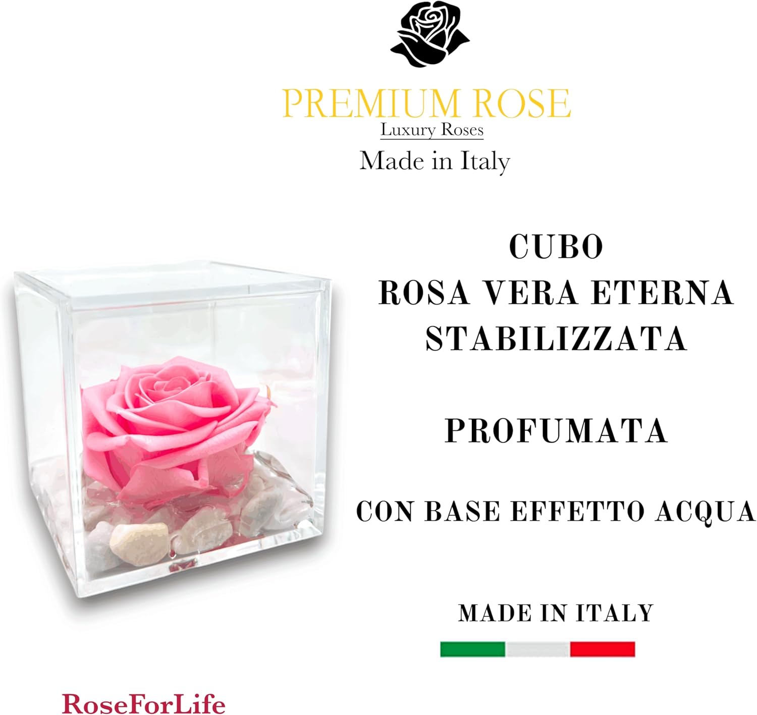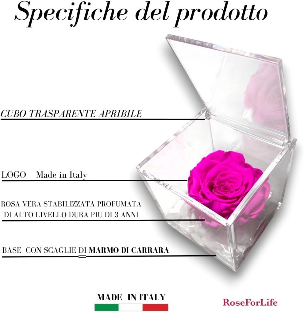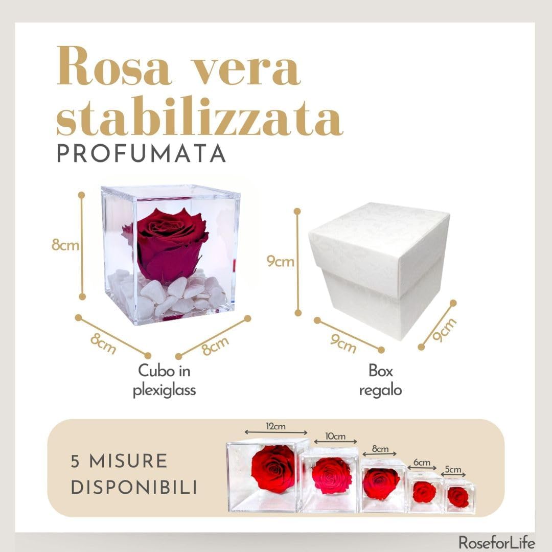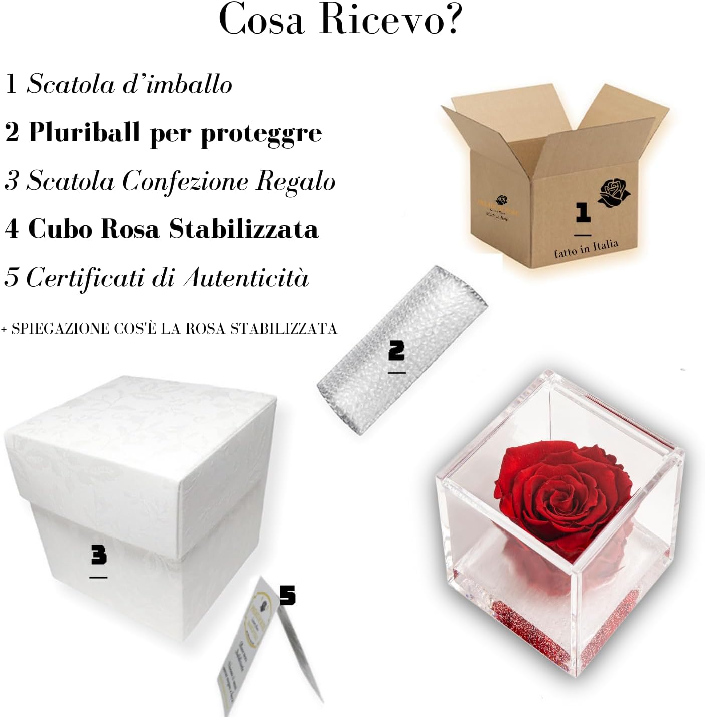 PREMIUM ROSE - Cubo Rosa Stabilizzata Rossa Profumata 8cm con Marmo di Carrara - Rosa Eterna Stabilizzata Rossa Idea per San Valentino, Natale Made in Italy - Rosso 1080