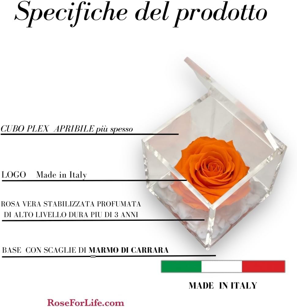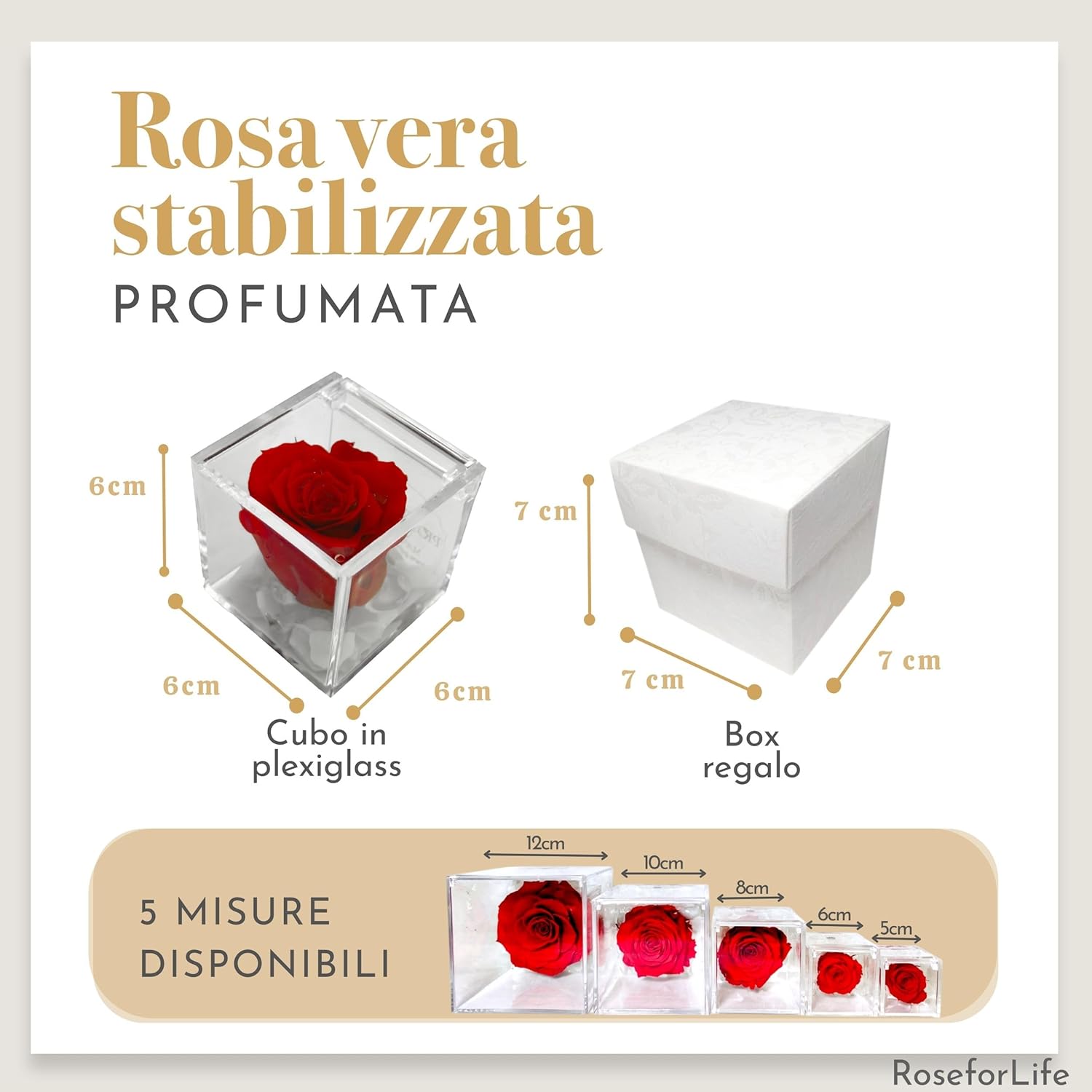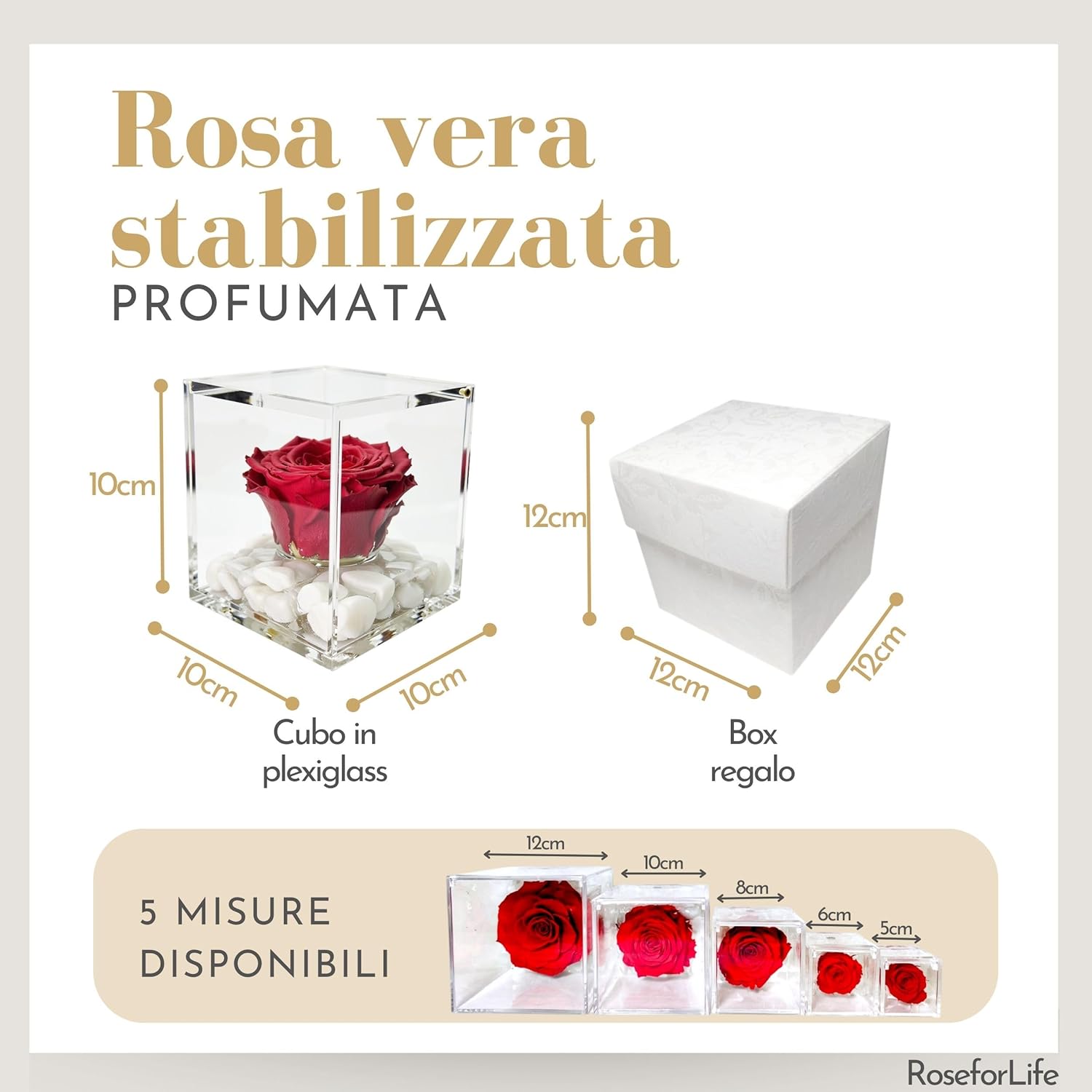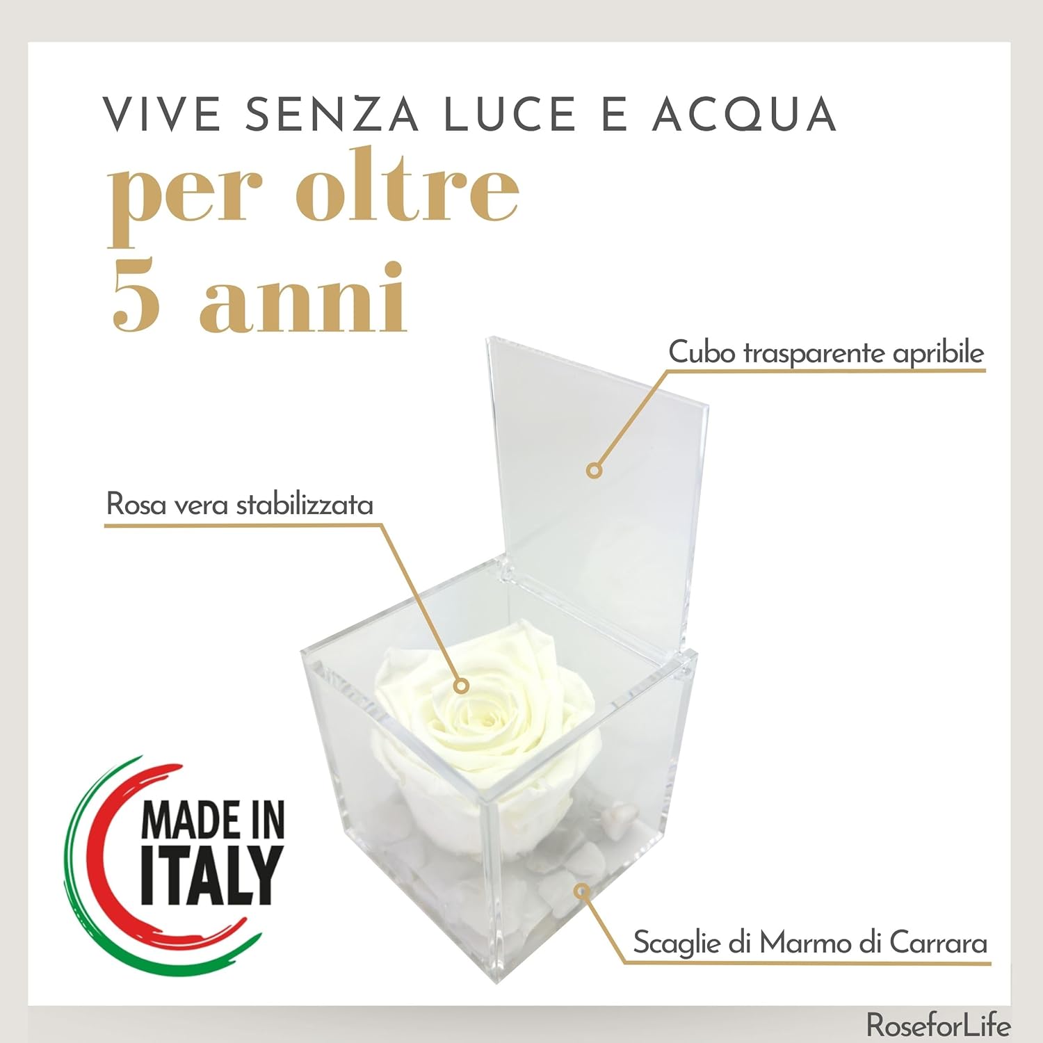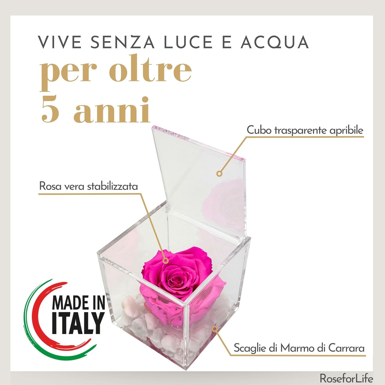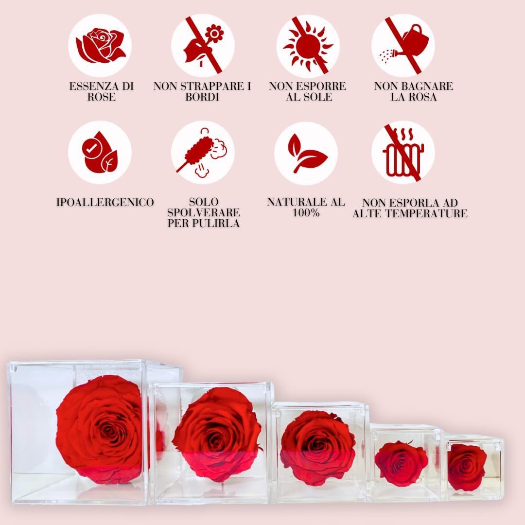PREMIUM ROSE - Cubo Rosa Stabilizzata Rossa Profumata 8cm con Marmo di Carrara - Rosa Eterna Stabilizzata Rossa Idea per San Valentino, Natale Made in Italy - Rosso 1080