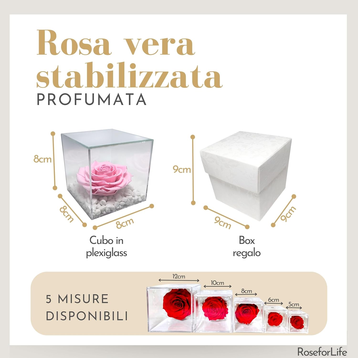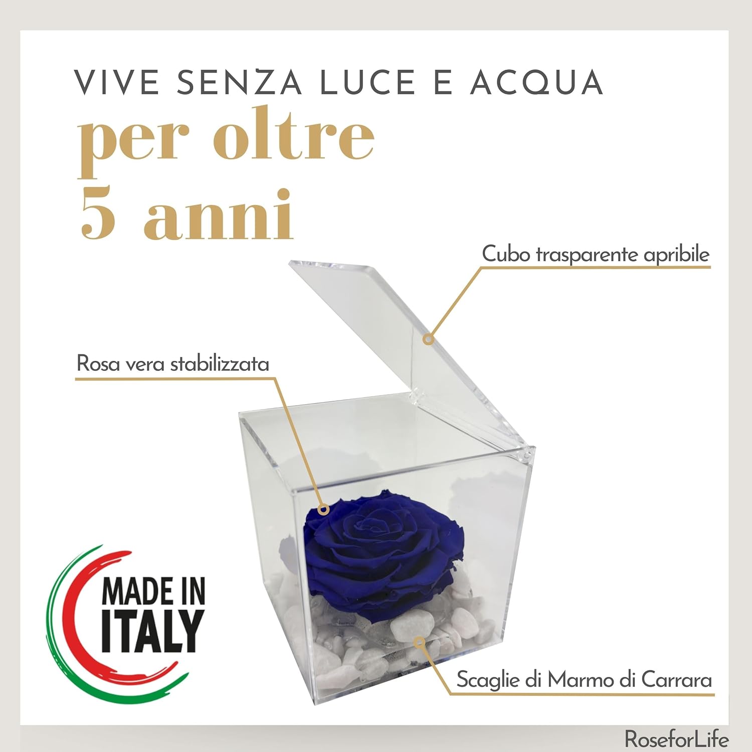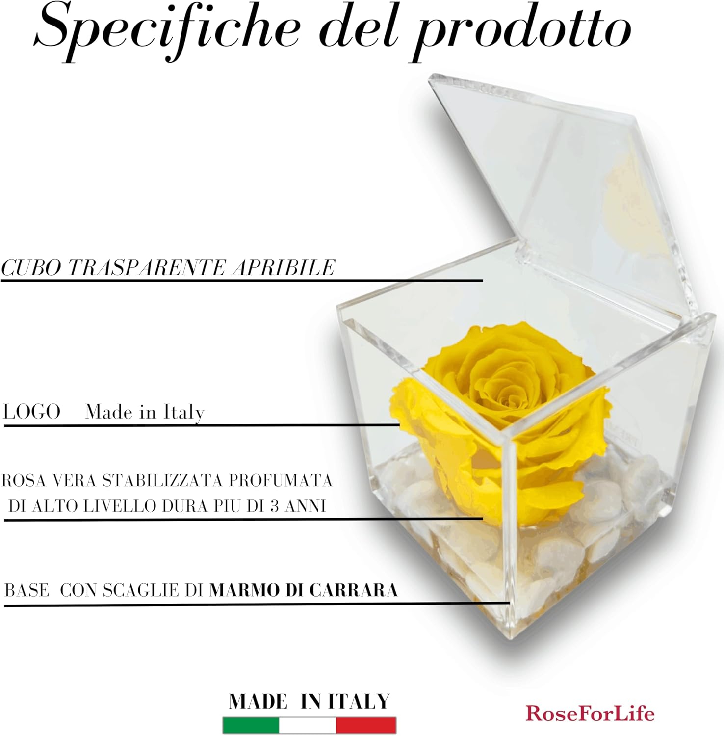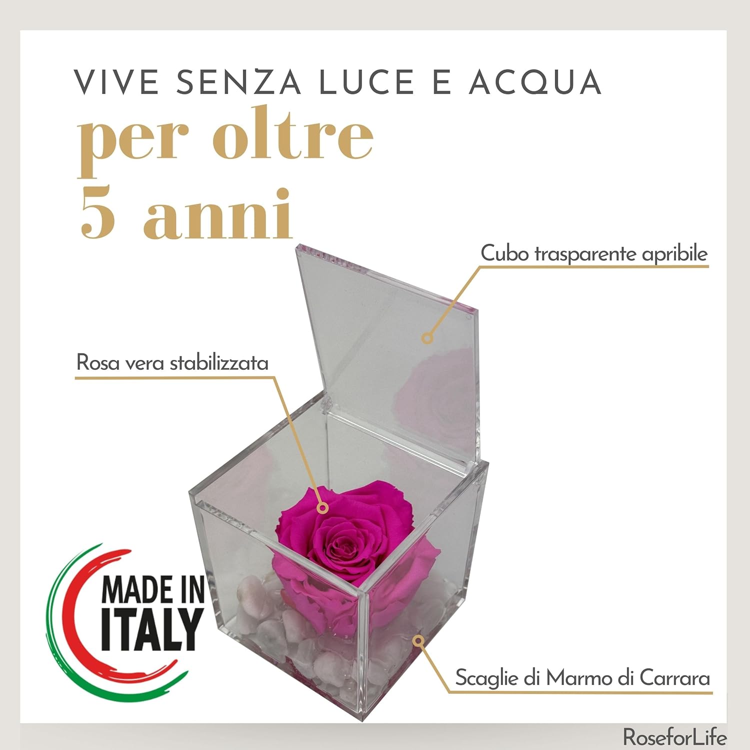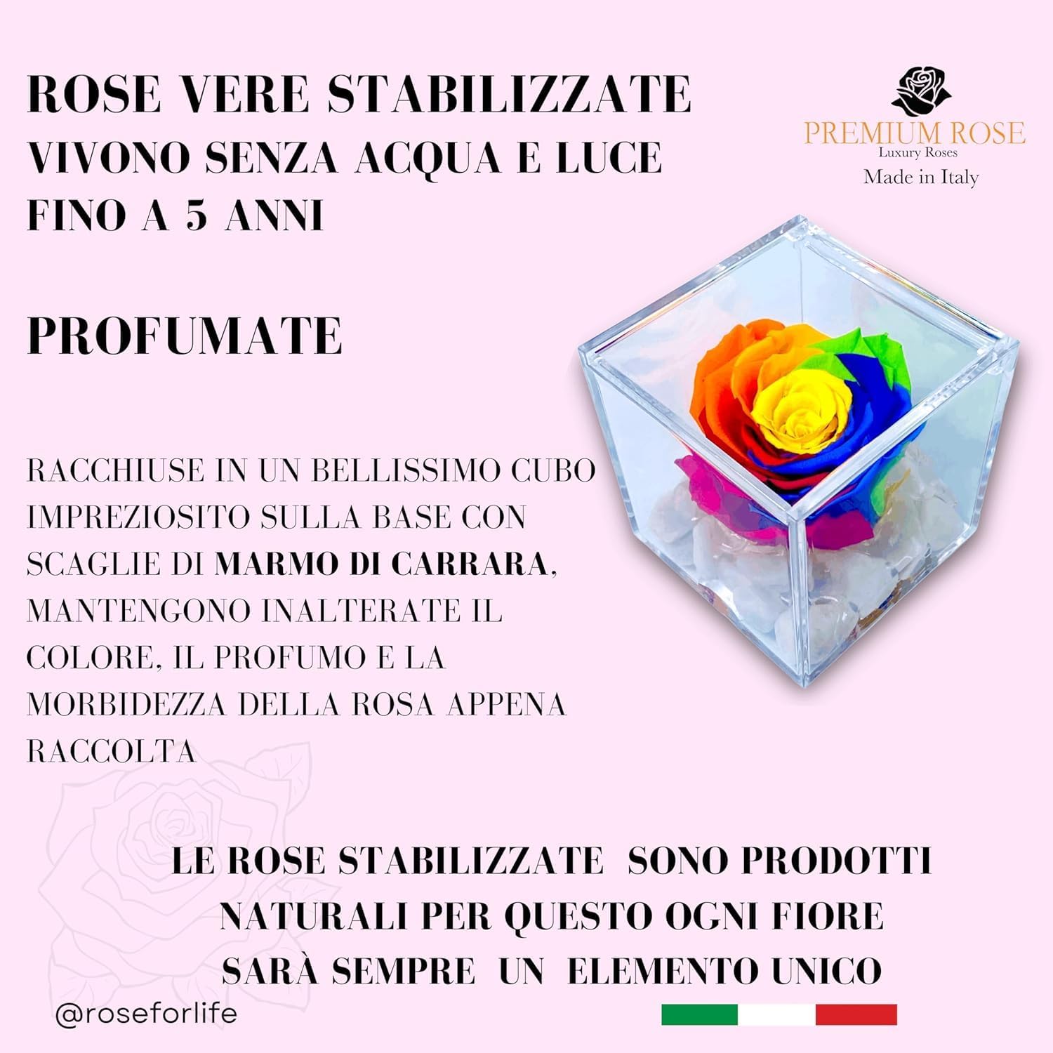 PREMIUM ROSE - Cubo Rosa Stabilizzata Rossa Profumata 8cm con Marmo di Carrara - Rosa Eterna Stabilizzata Rossa Idea per San Valentino, Natale Made in Italy - Rosso 1080