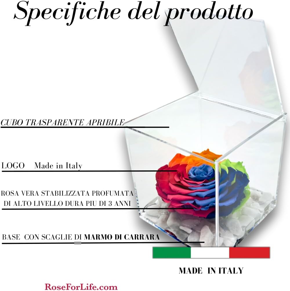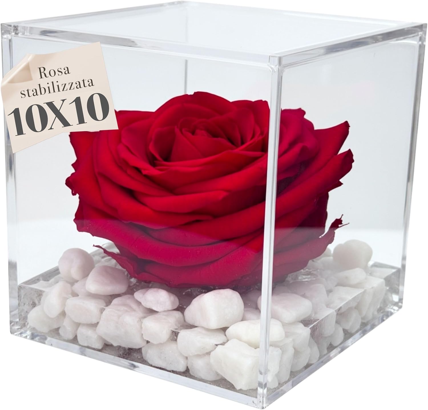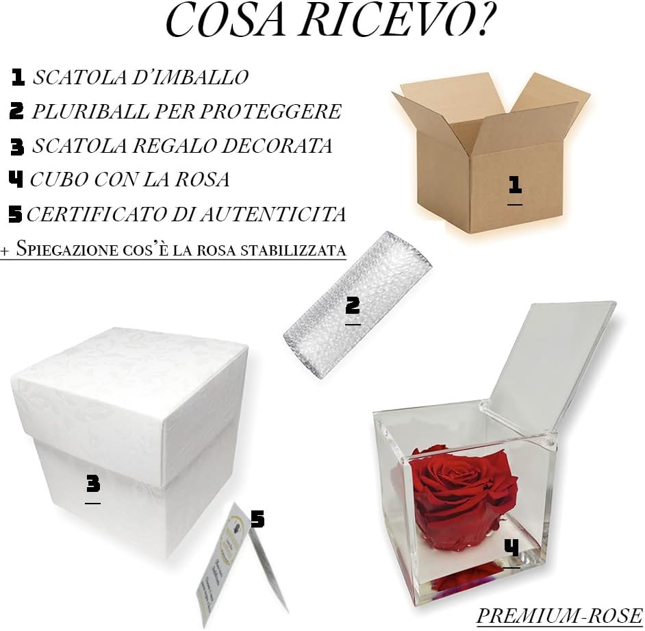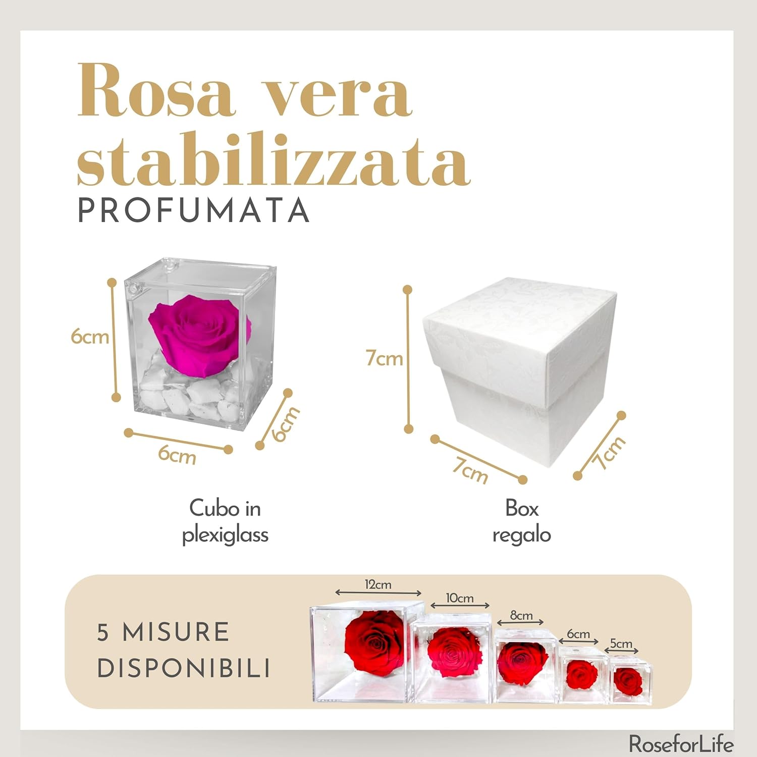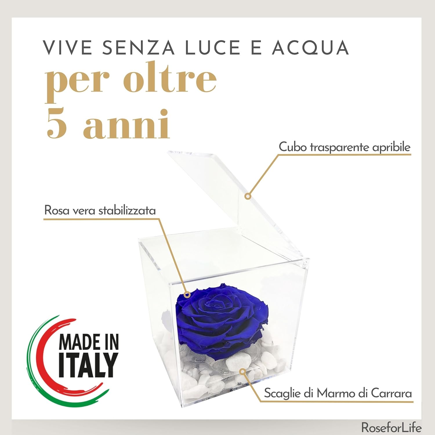 PREMIUM ROSE - Cubo Rosa Stabilizzata Rossa Profumata 8cm con Marmo di Carrara - Rosa Eterna Stabilizzata Rossa Idea per San Valentino, Natale Made in Italy - Rosso 1080