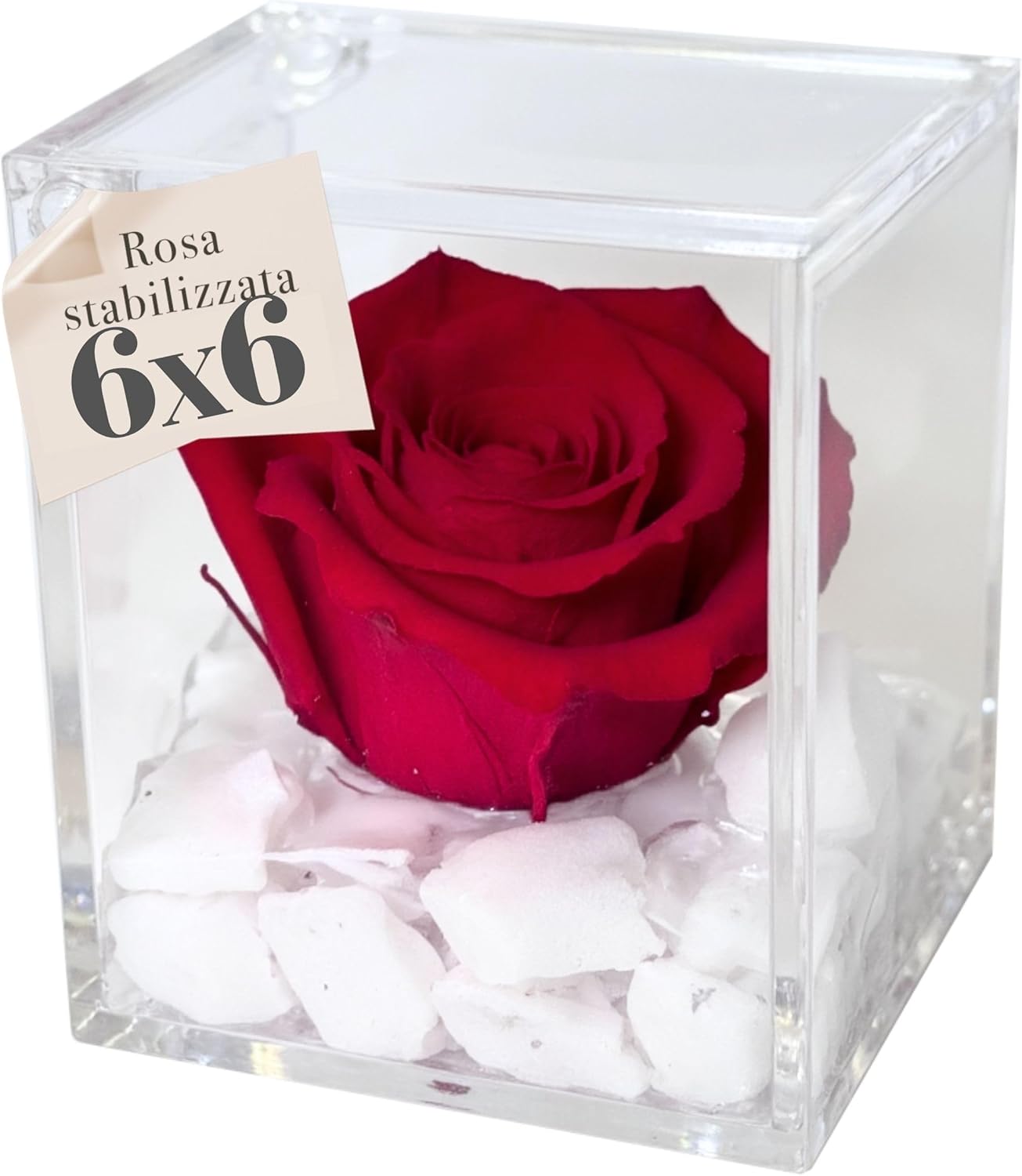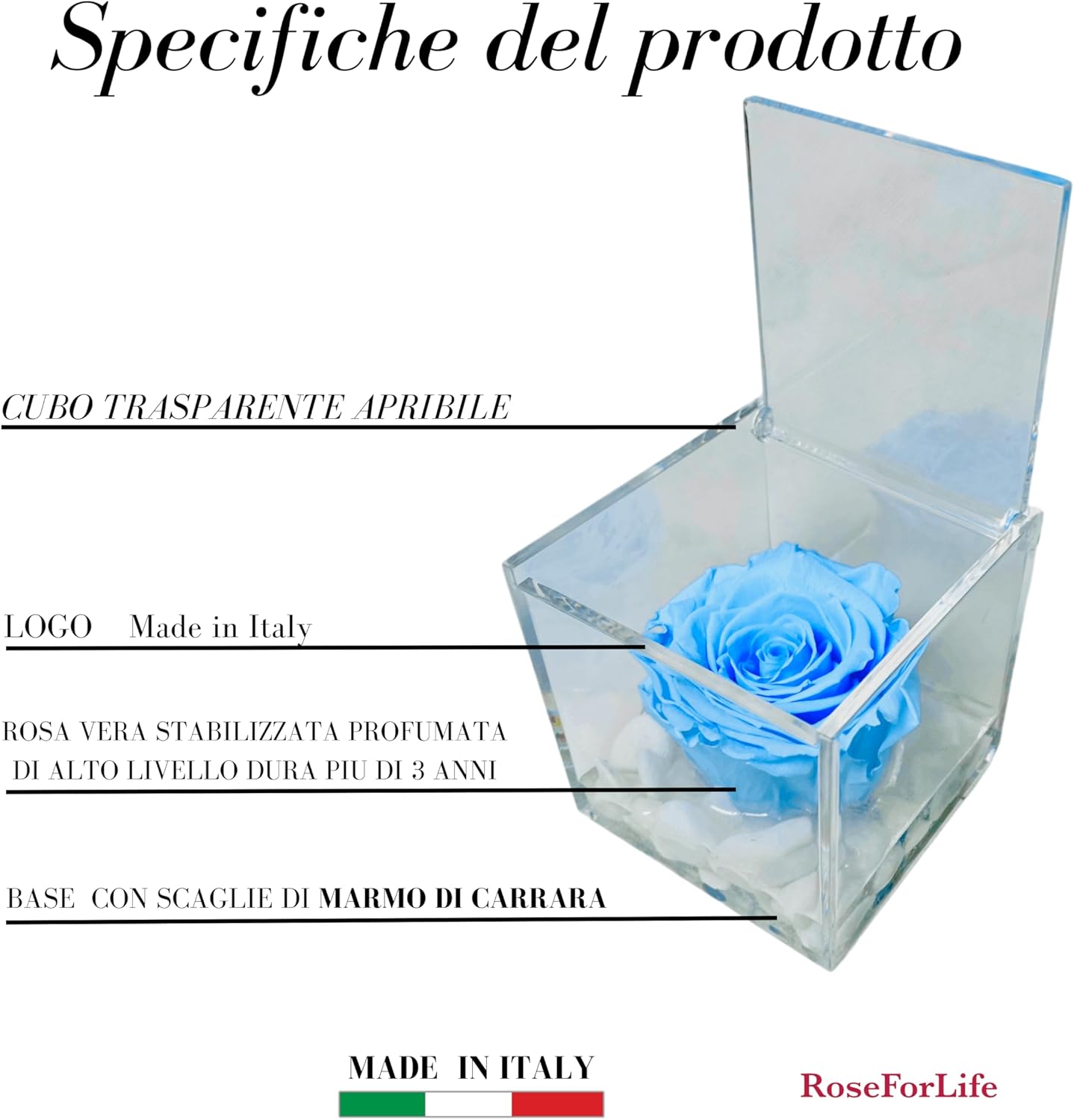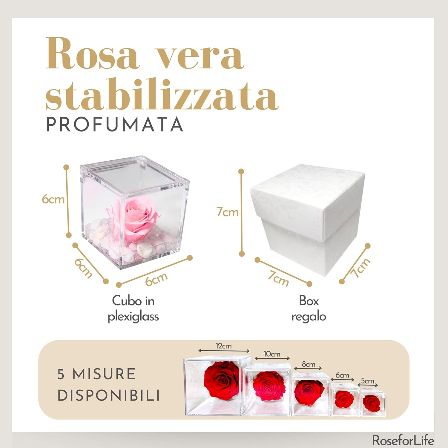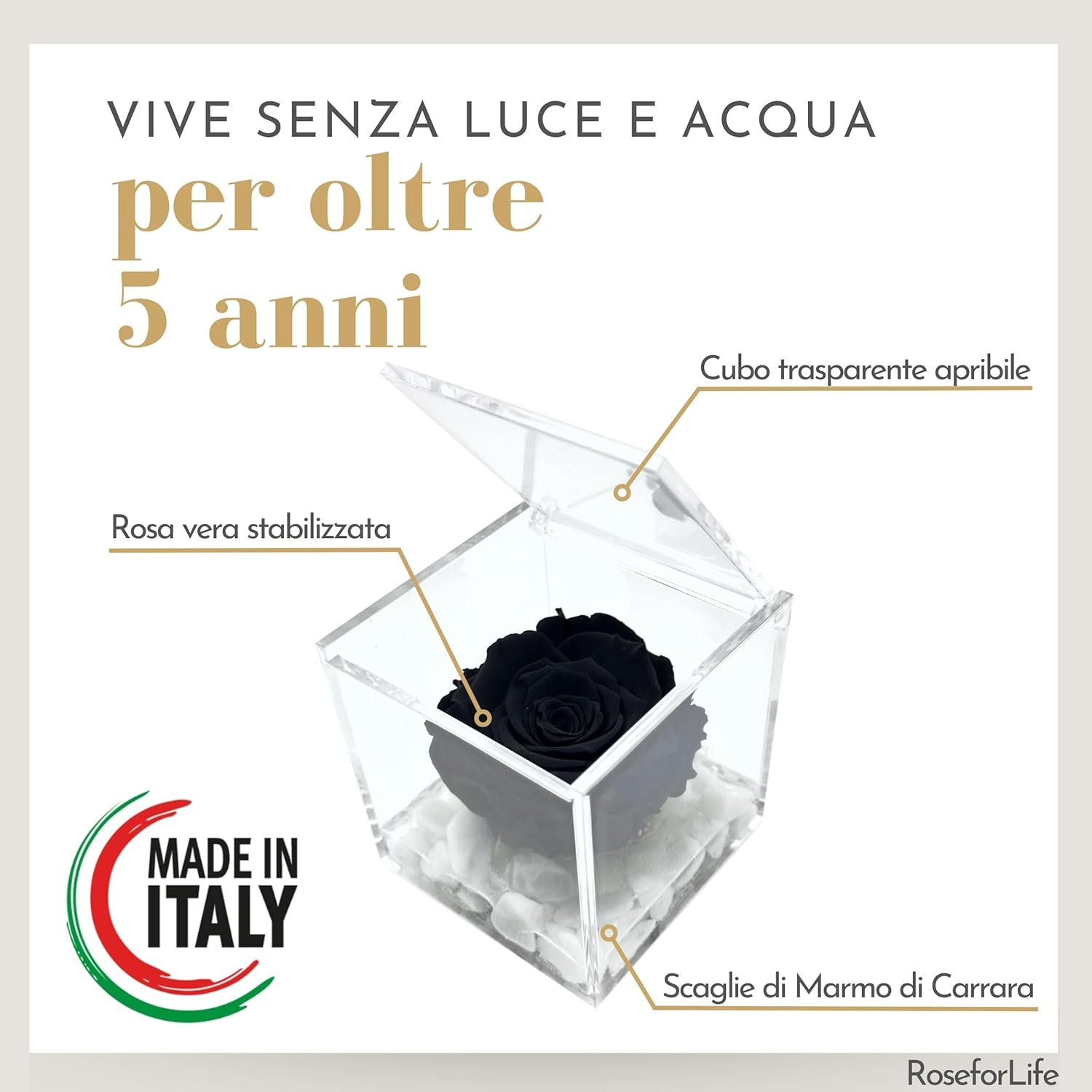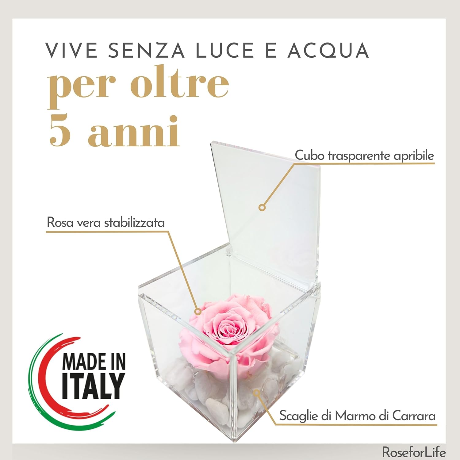 PREMIUM ROSE - Cubo Rosa Stabilizzata Rossa Profumata 8cm con Marmo di Carrara - Rosa Eterna Stabilizzata Rossa Idea per San Valentino, Natale Made in Italy - Rosso 1080