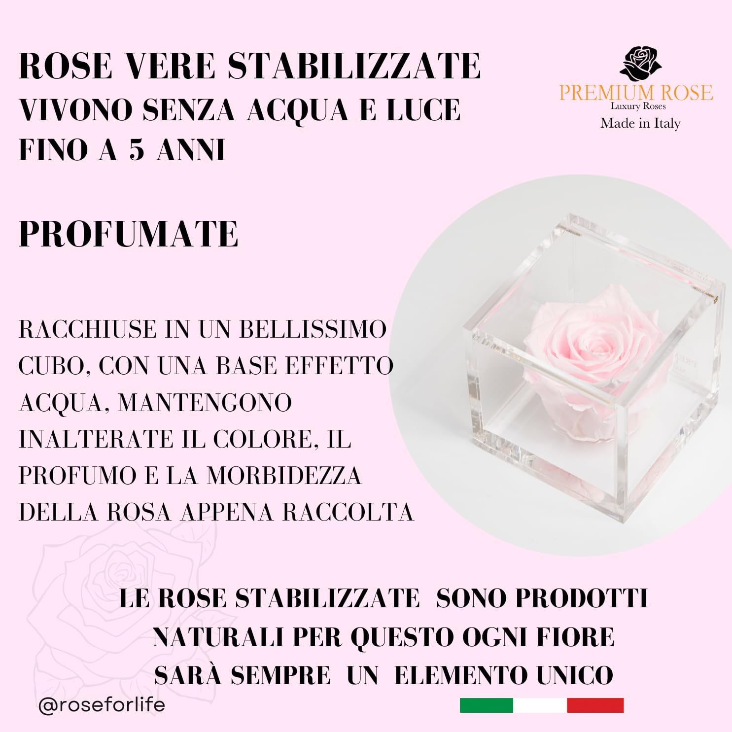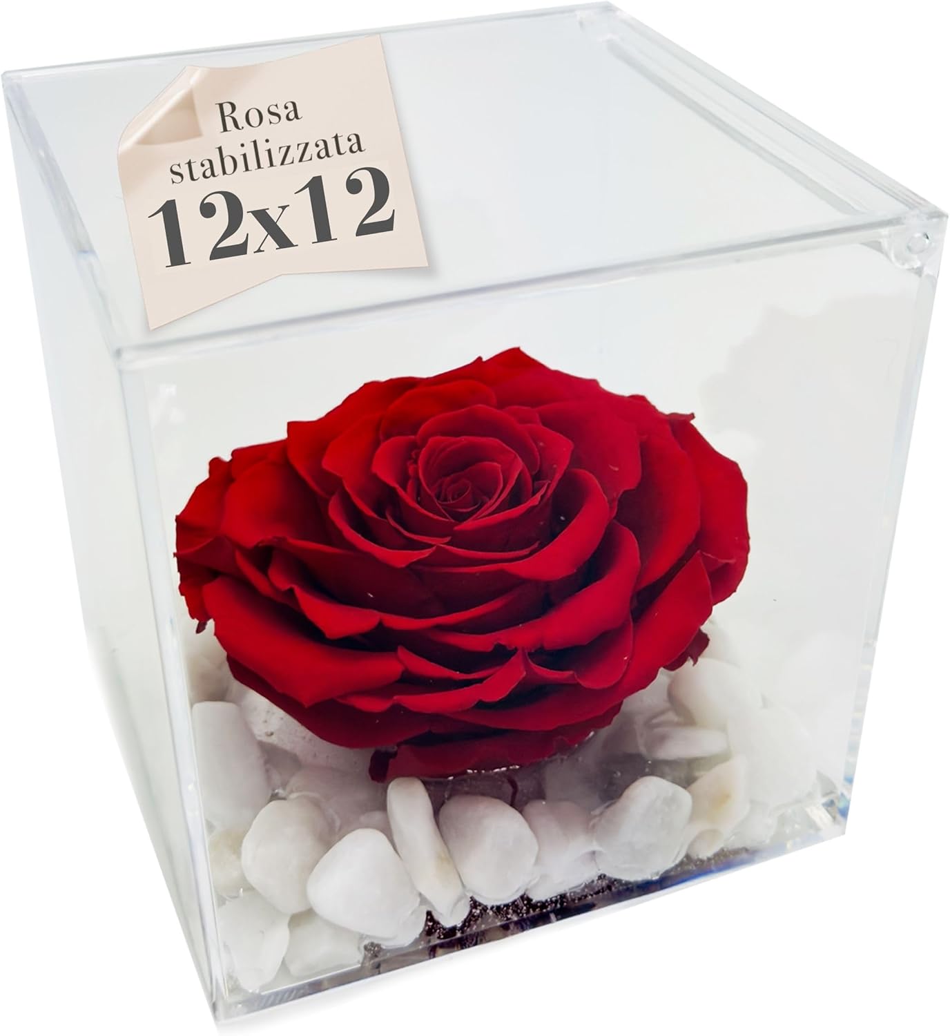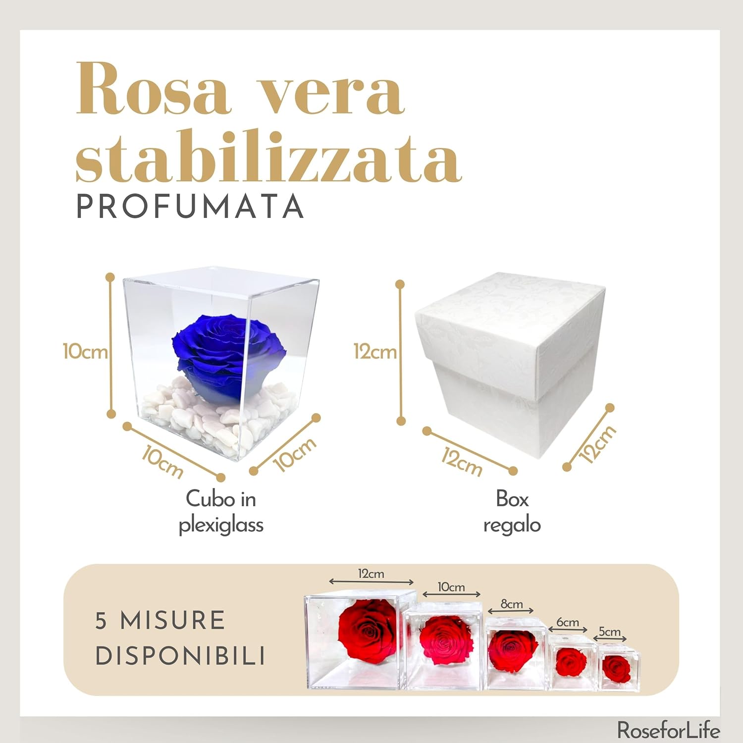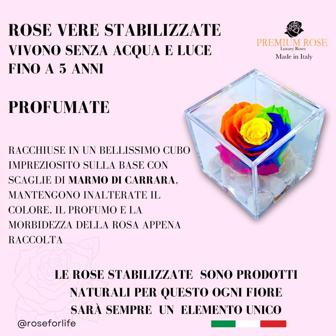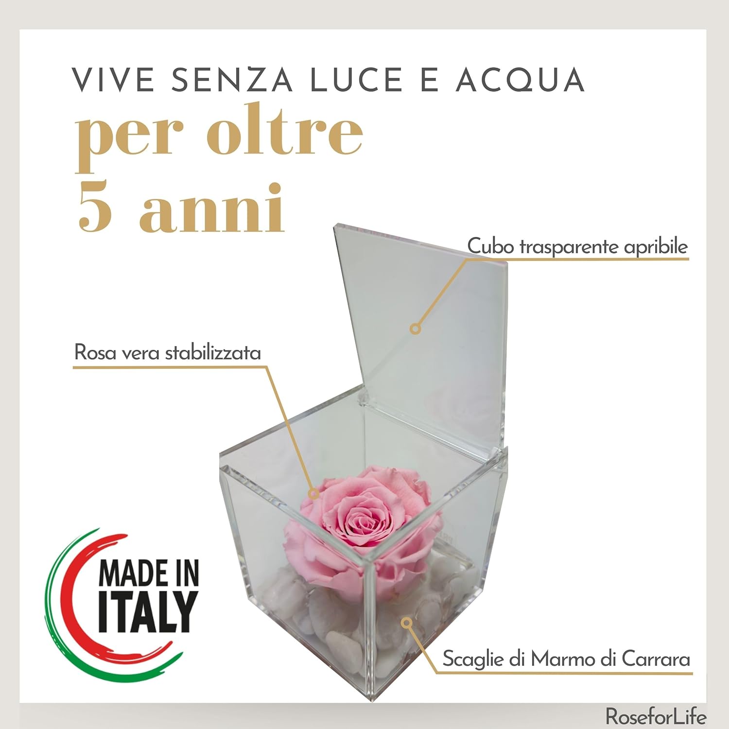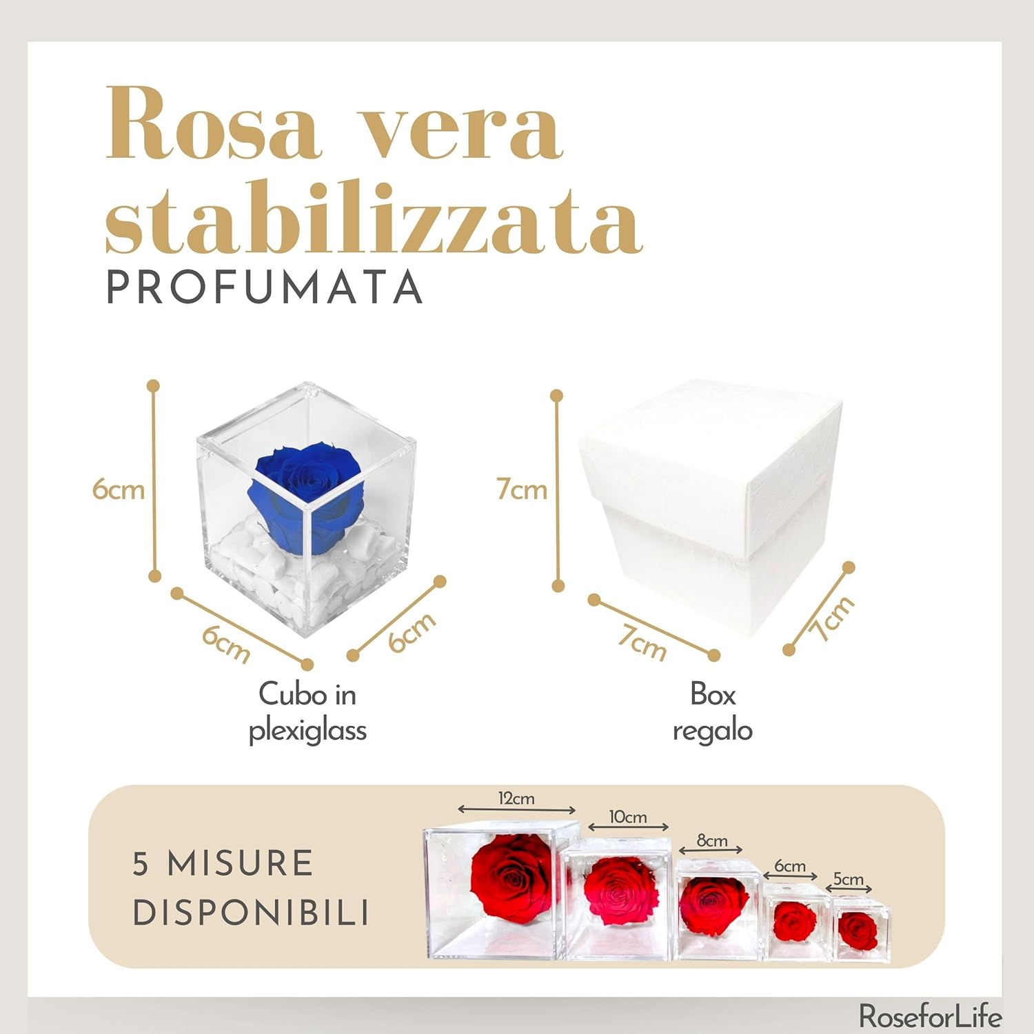 PREMIUM ROSE - Cubo Rosa Stabilizzata Rossa Profumata 8cm con Marmo di Carrara - Rosa Eterna Stabilizzata Rossa Idea per San Valentino, Natale Made in Italy - Rosso 1080