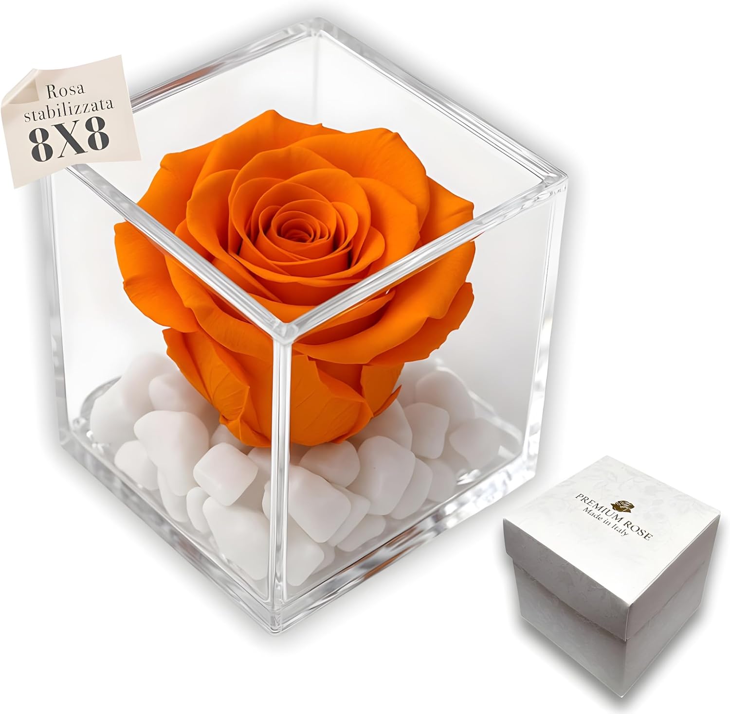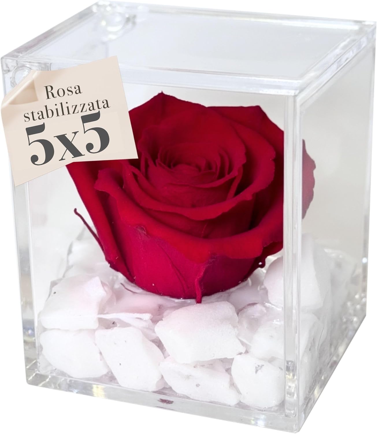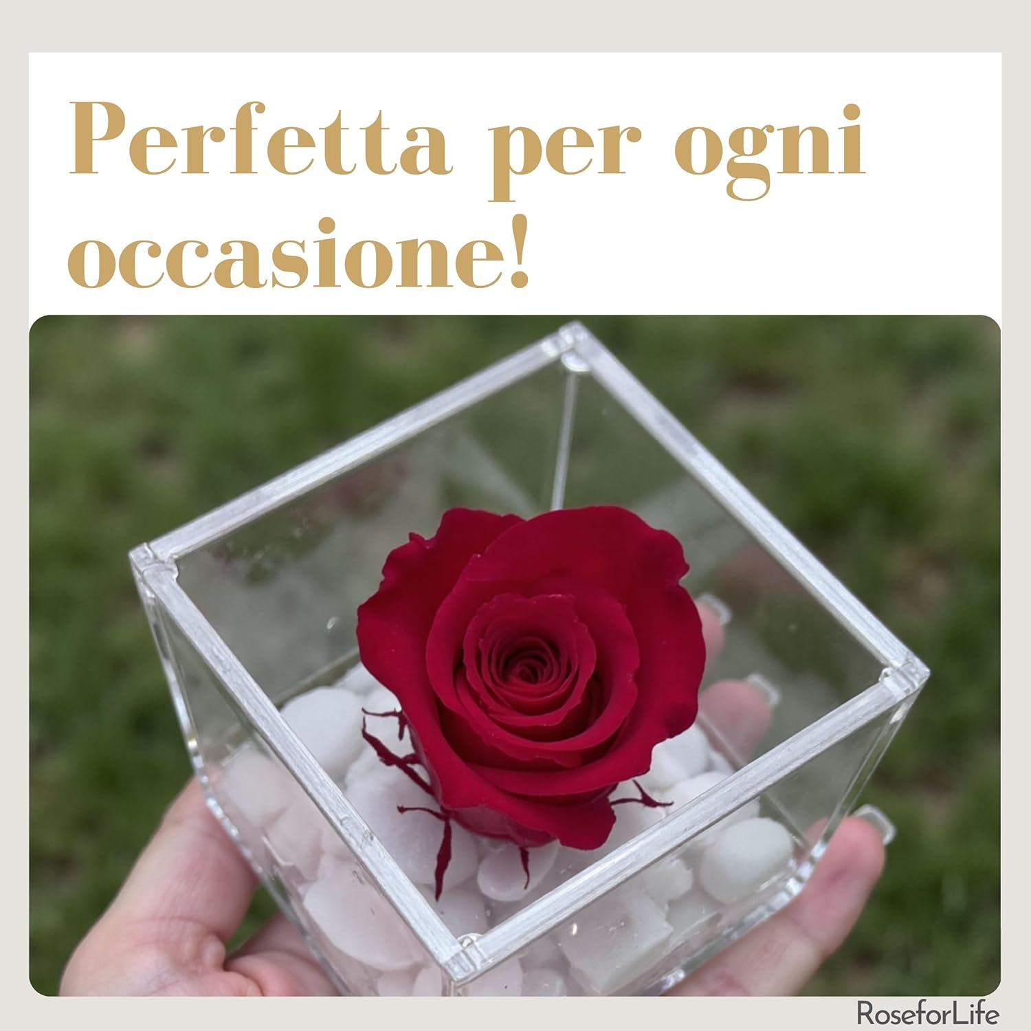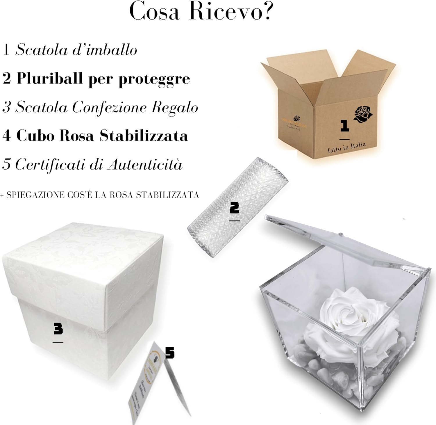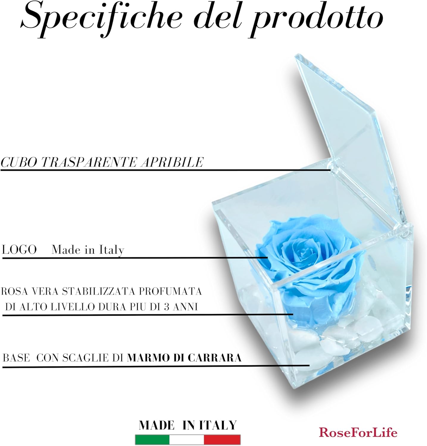PREMIUM ROSE - Cubo Rosa Stabilizzata Rossa Profumata 8cm con Marmo di Carrara - Rosa Eterna Stabilizzata Rossa Idea per San Valentino, Natale Made in Italy - Rosso 1080