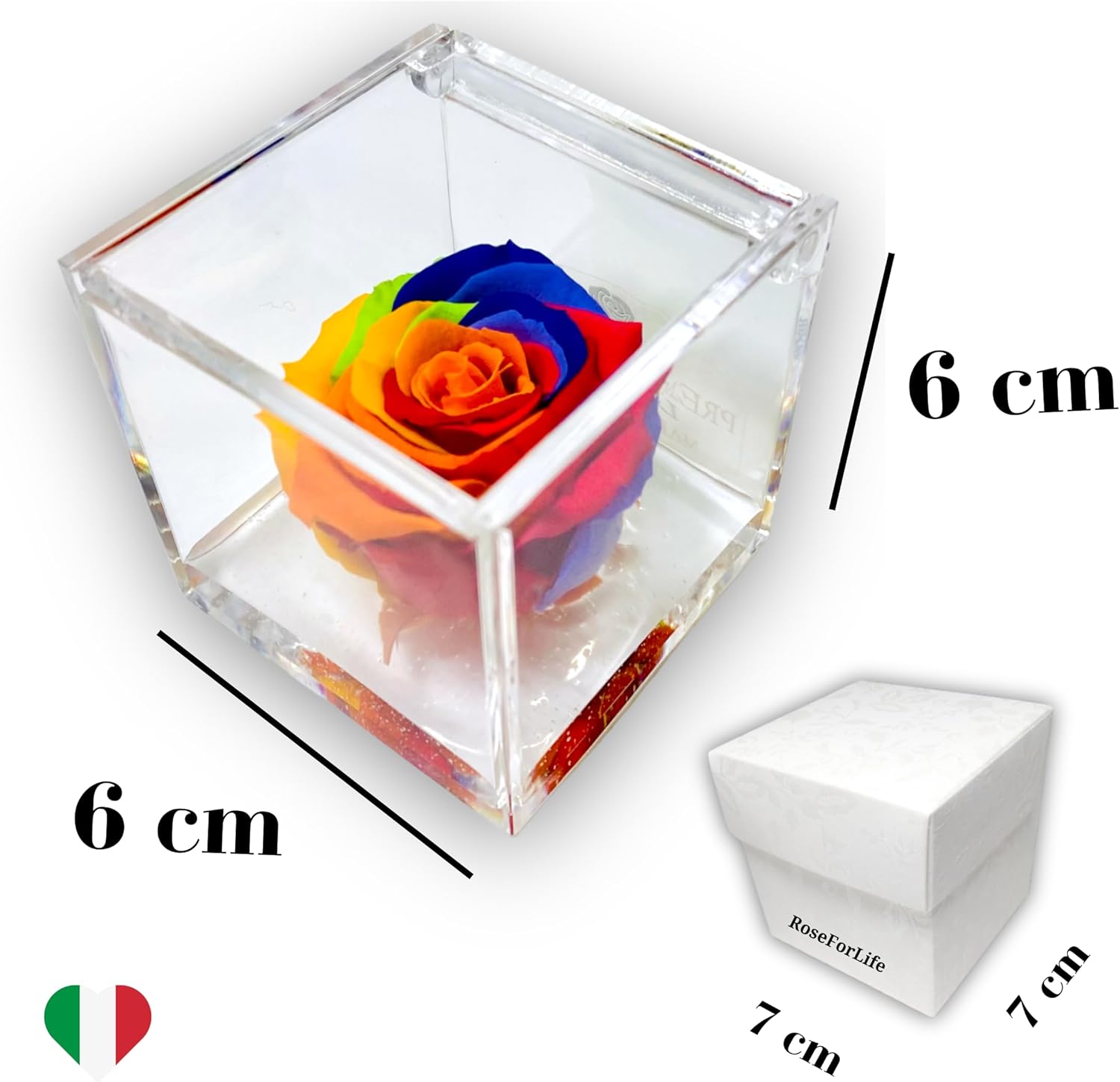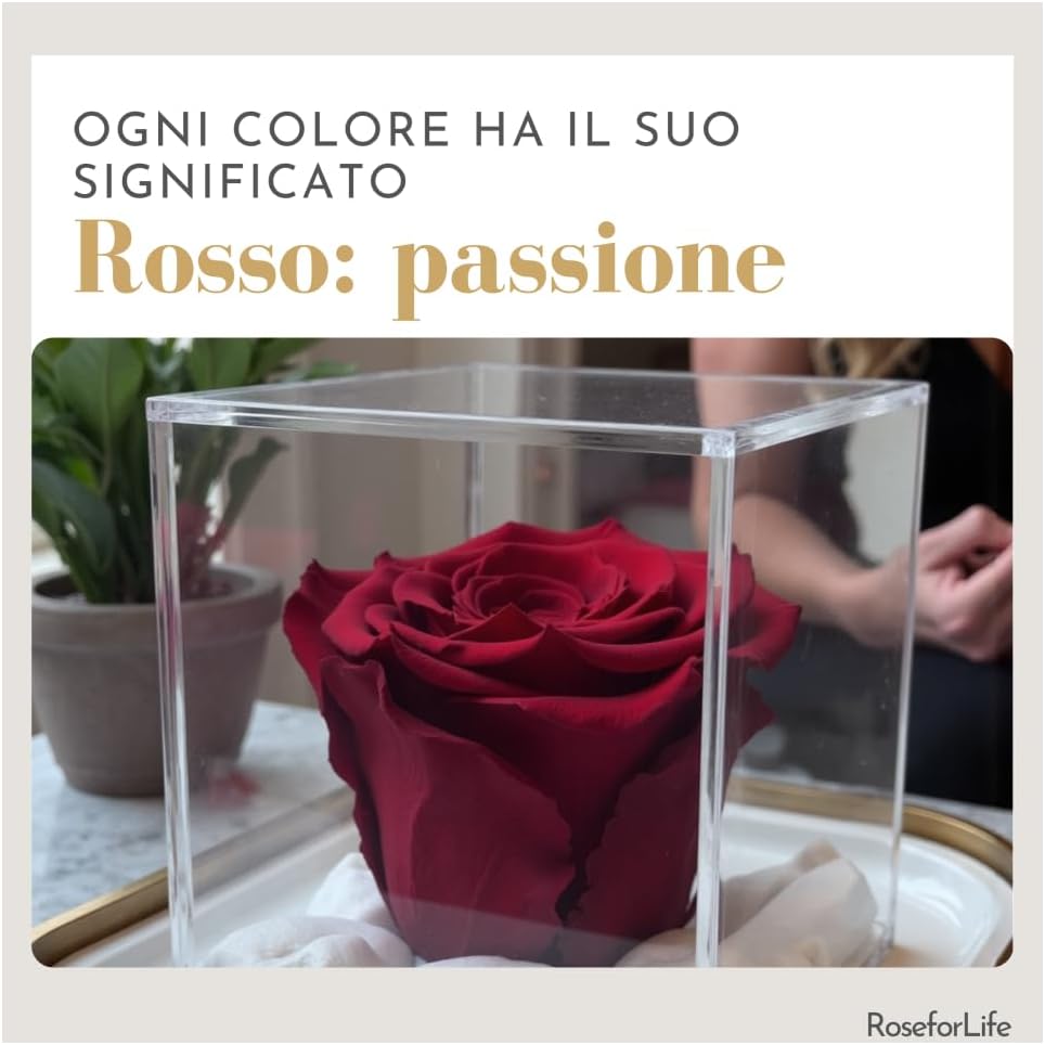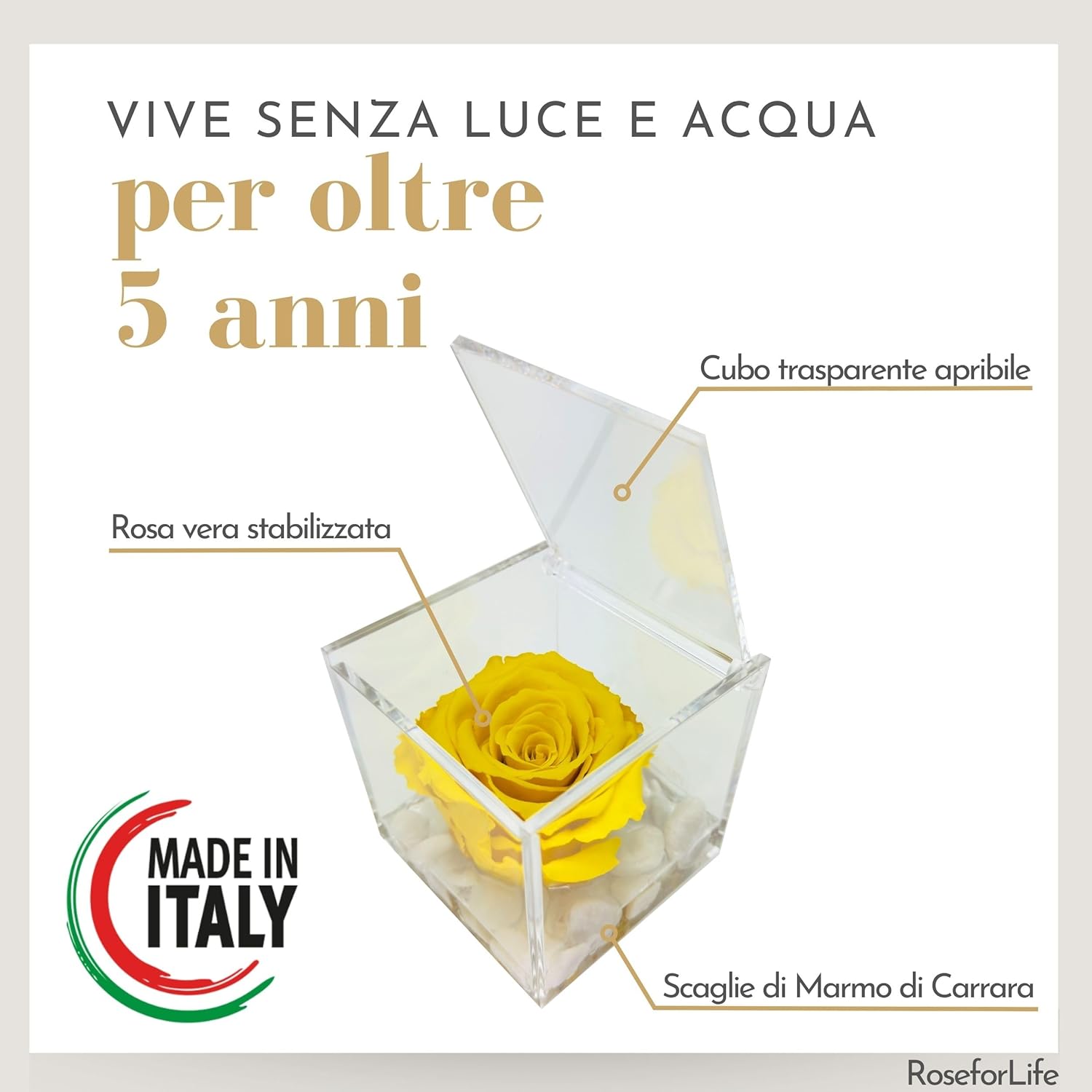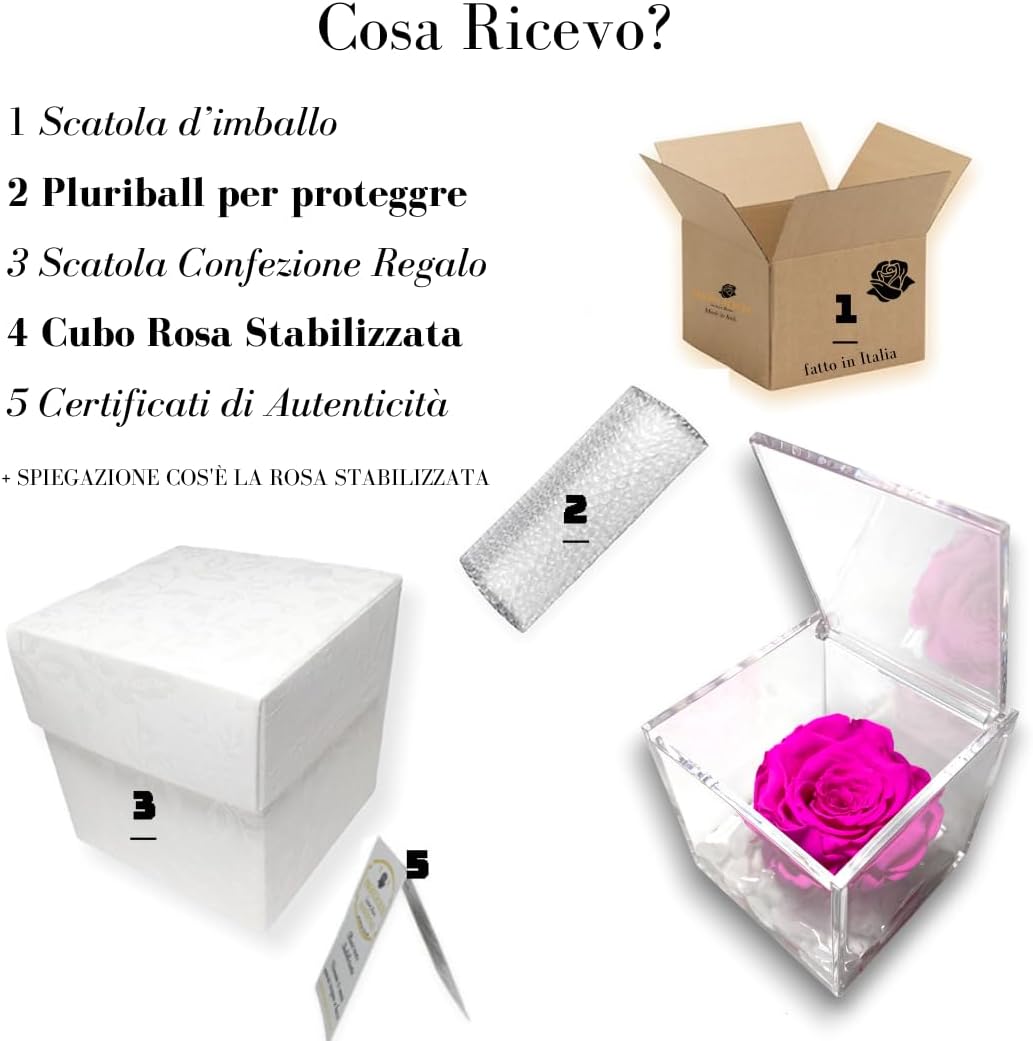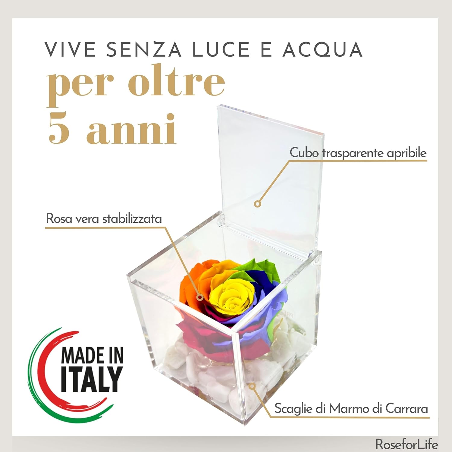 PREMIUM ROSE - Cubo Rosa Stabilizzata Rossa Profumata 8cm con Marmo di Carrara - Rosa Eterna Stabilizzata Rossa Idea per San Valentino, Natale Made in Italy - Rosso 1080