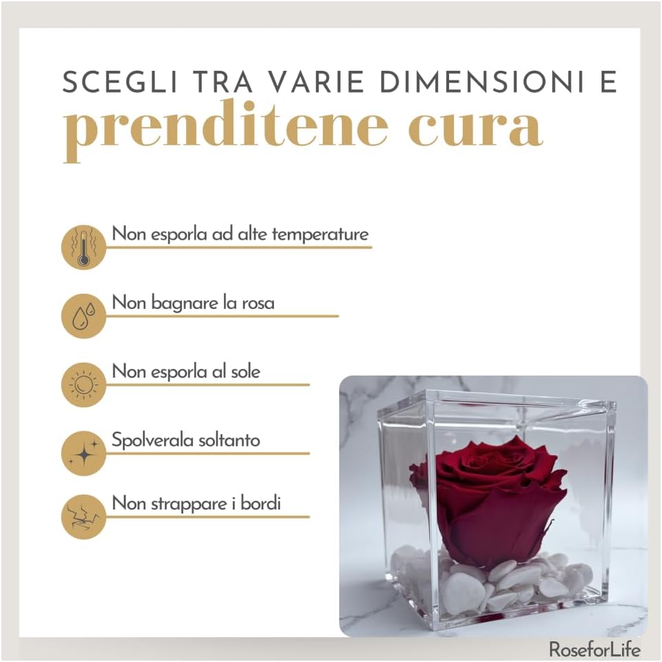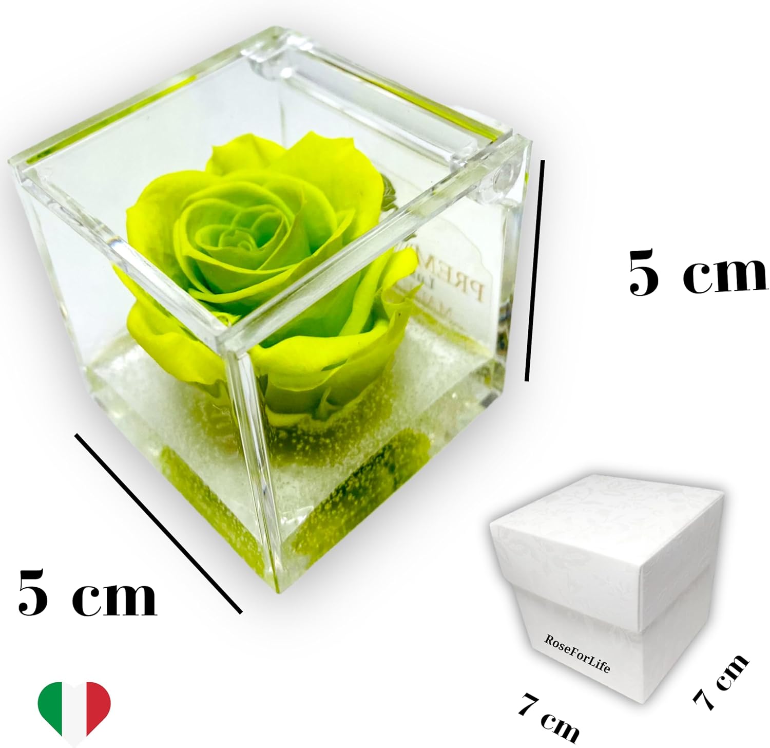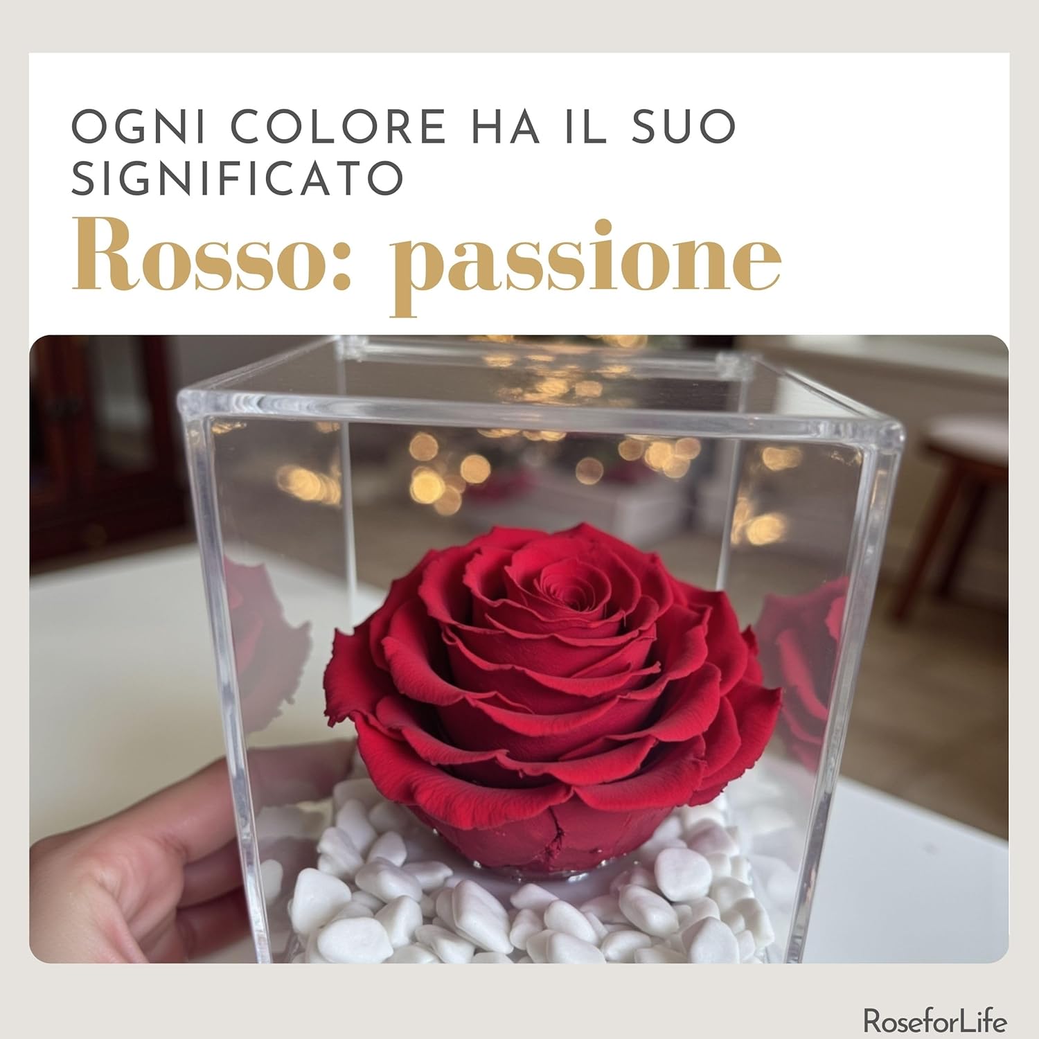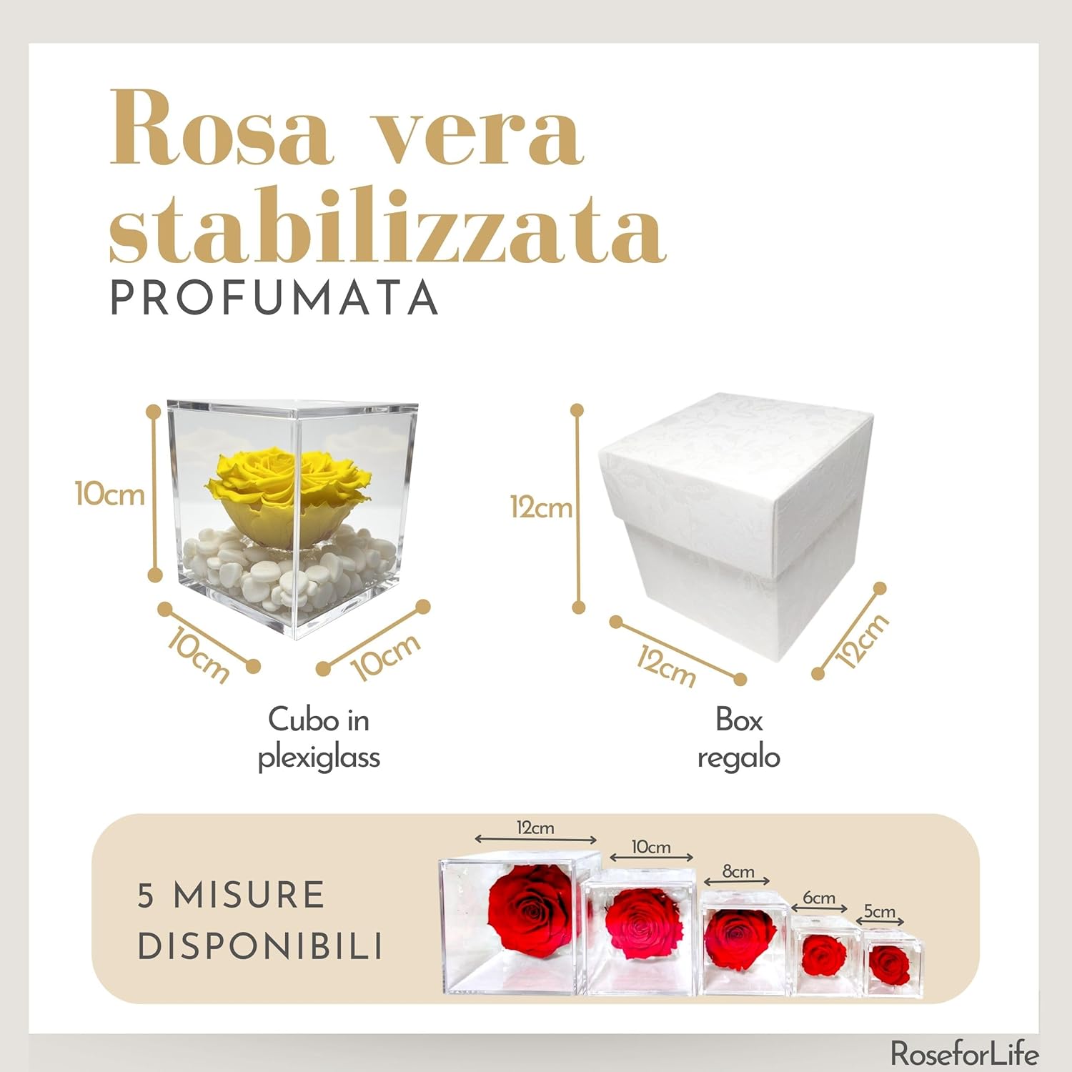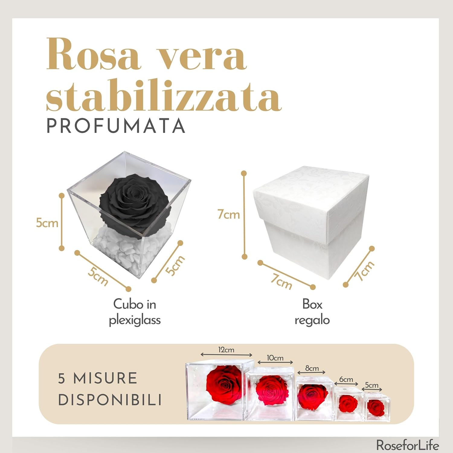 PREMIUM ROSE - Cubo Rosa Stabilizzata Rossa Profumata 8cm con Marmo di Carrara - Rosa Eterna Stabilizzata Rossa Idea per San Valentino, Natale Made in Italy - Rosso 1080