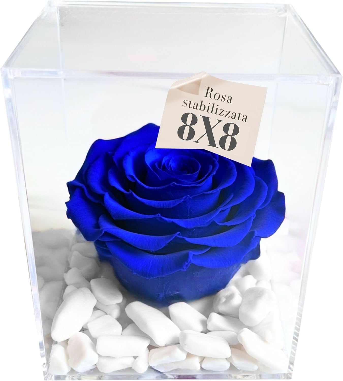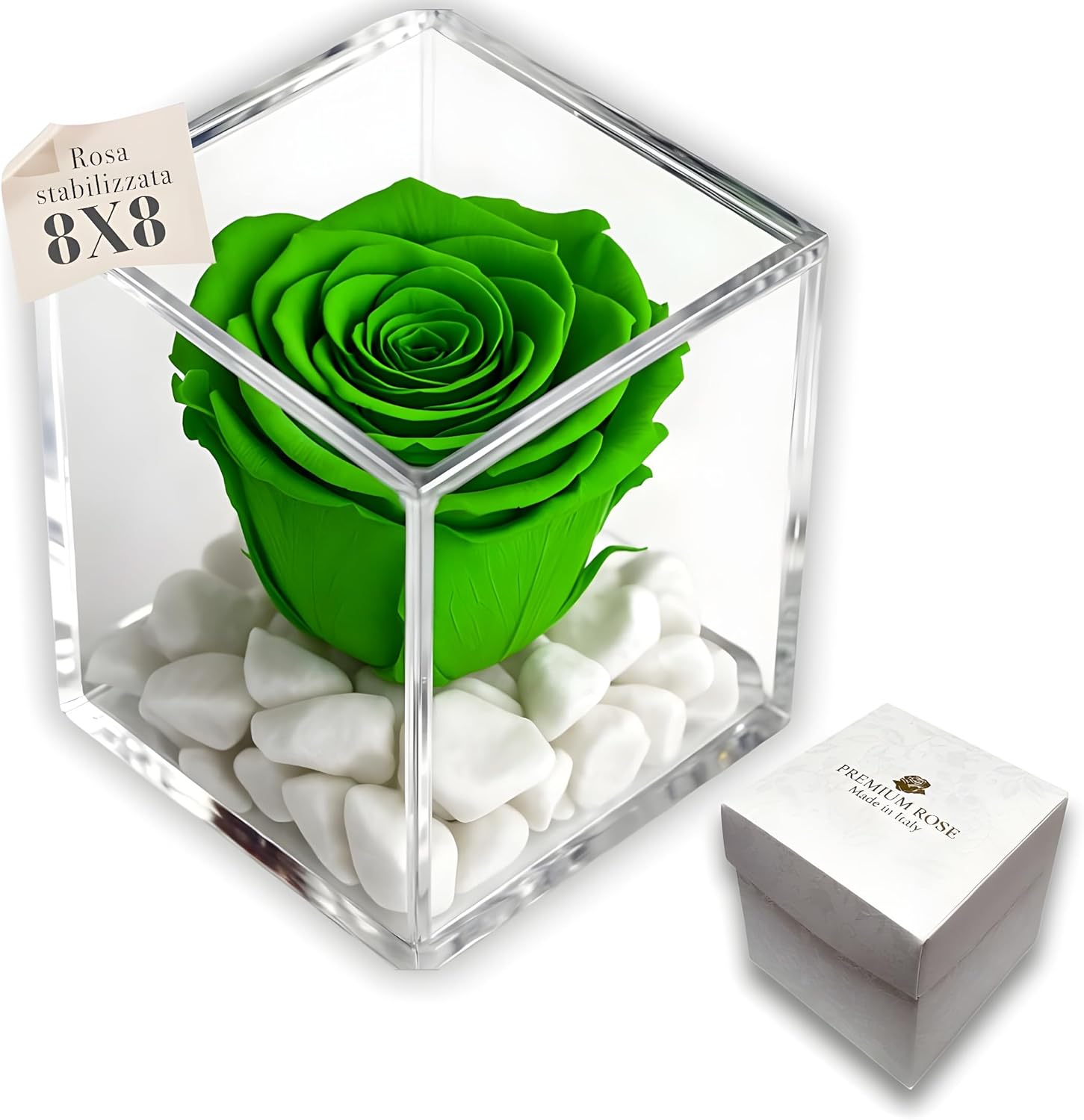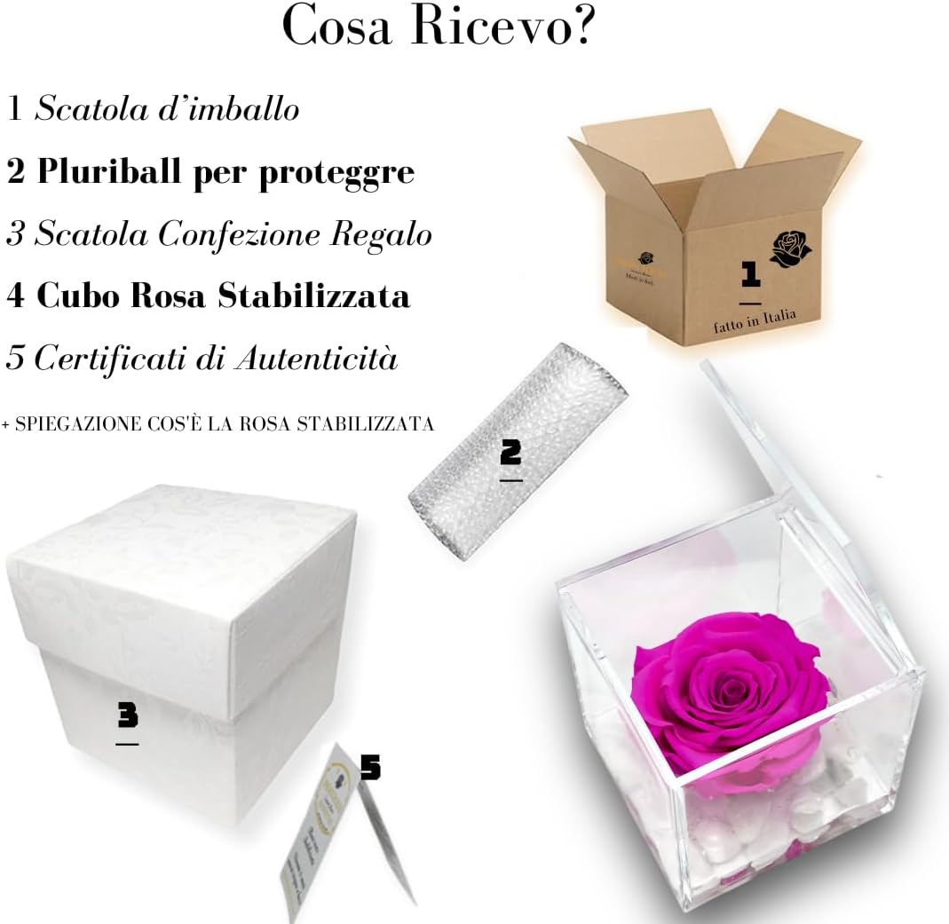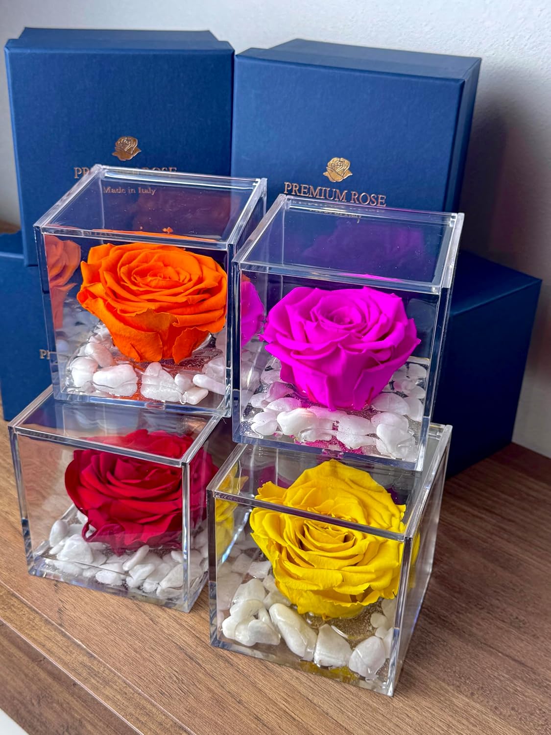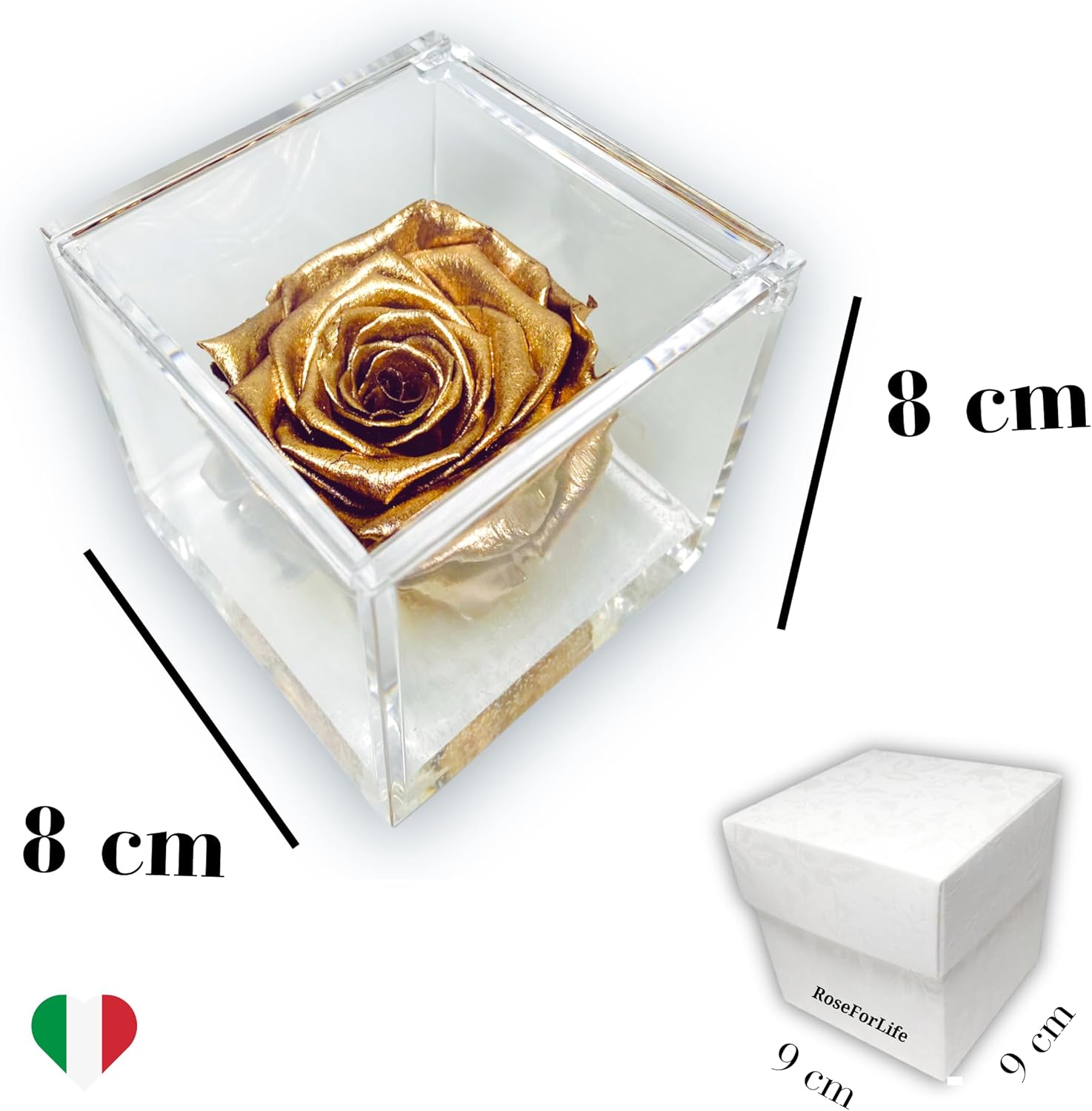 PREMIUM ROSE - Cubo Rosa Stabilizzata Rossa Profumata 8cm con Marmo di Carrara - Rosa Eterna Stabilizzata Rossa Idea per San Valentino, Natale Made in Italy - Rosso 1080