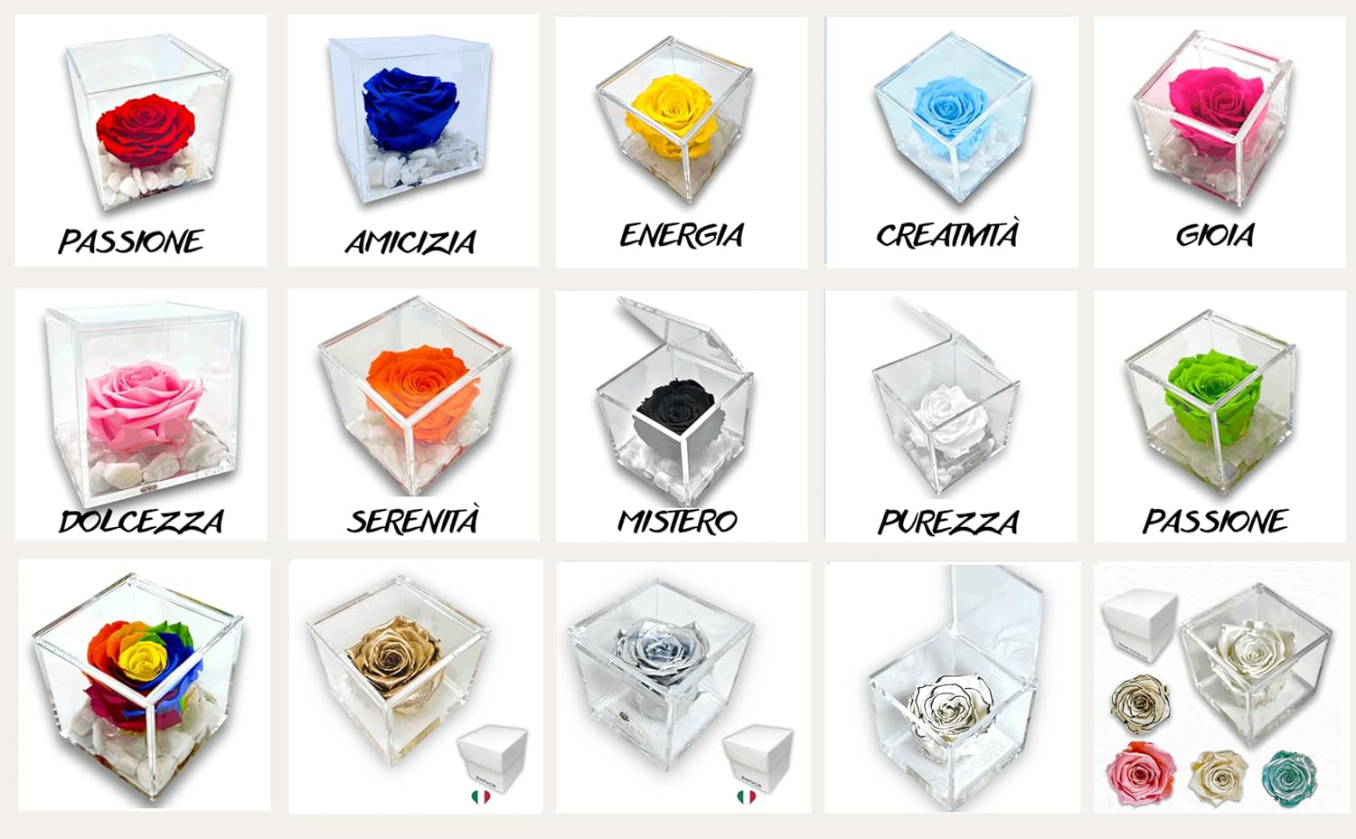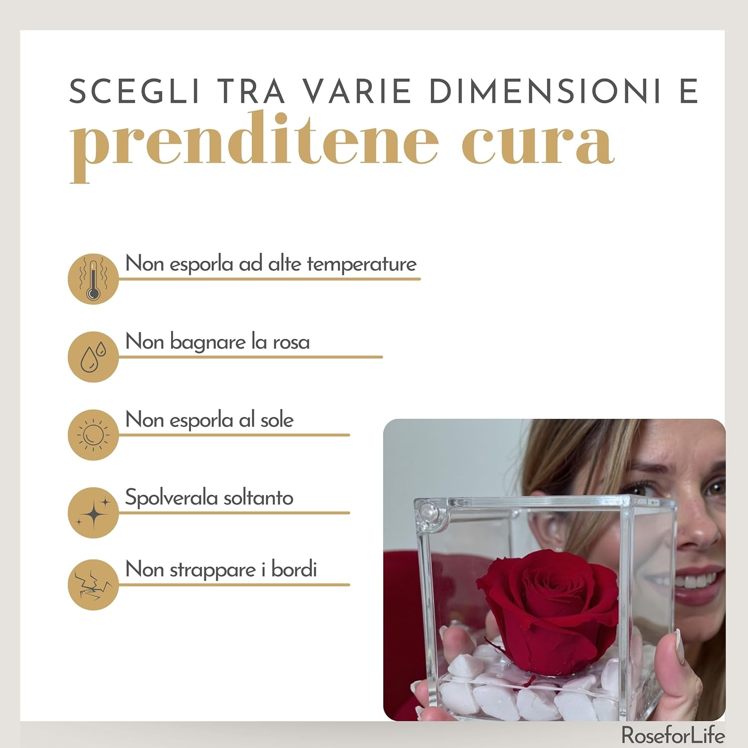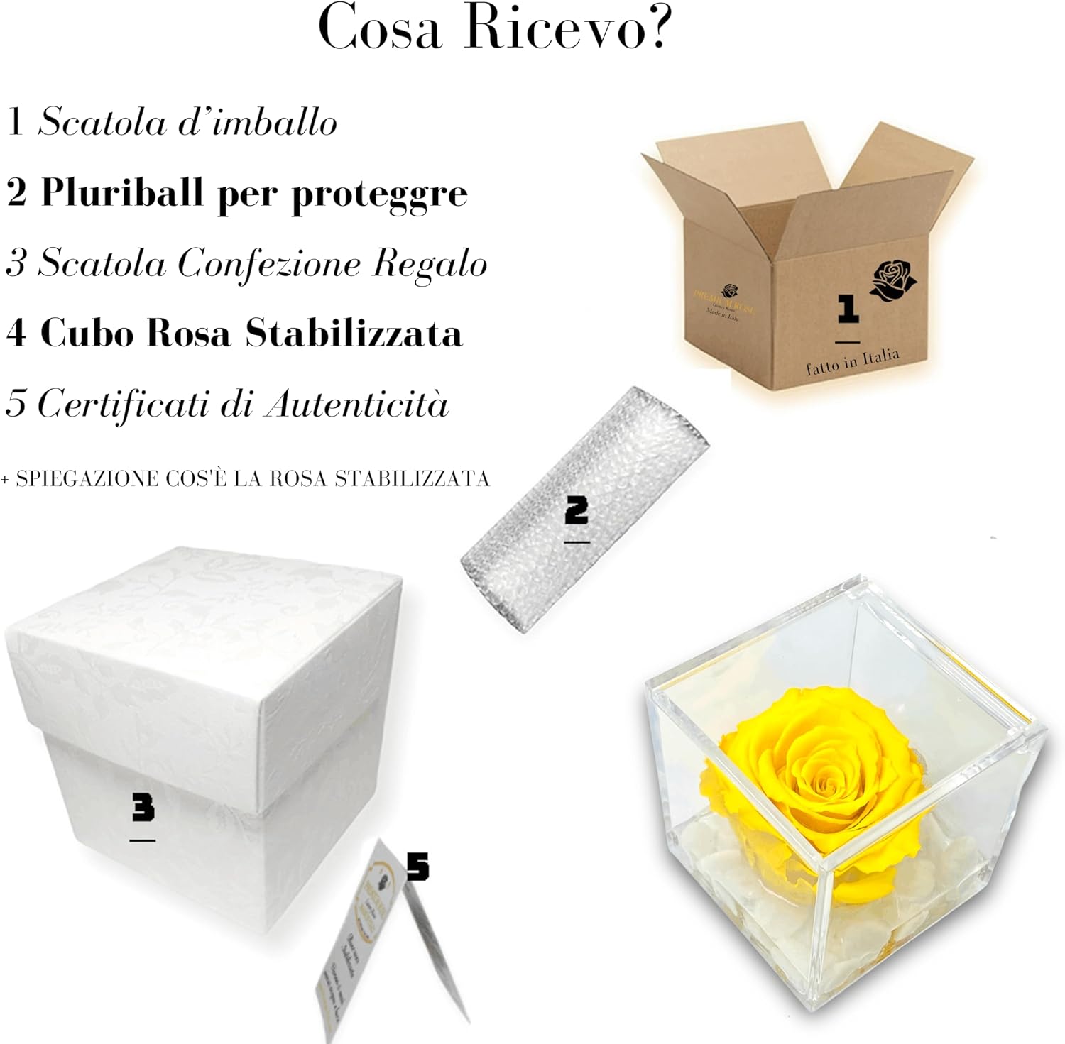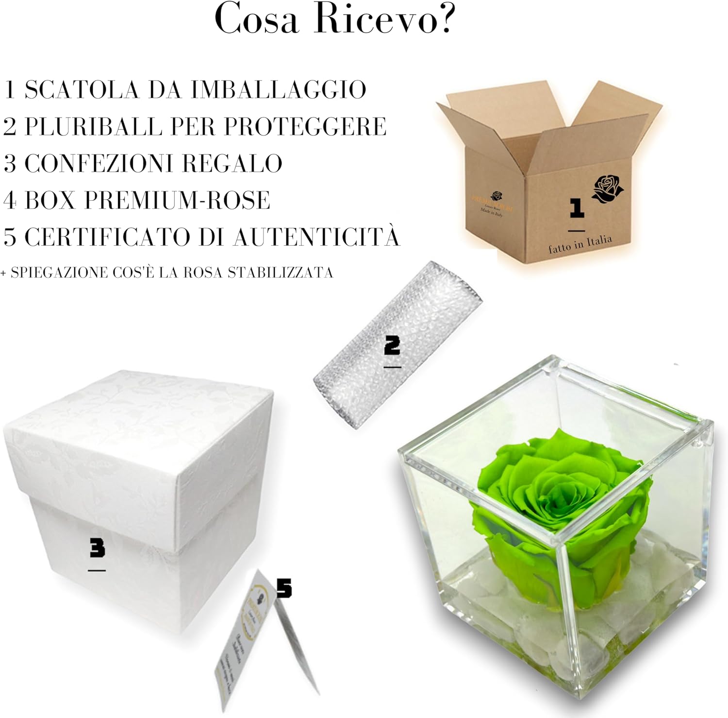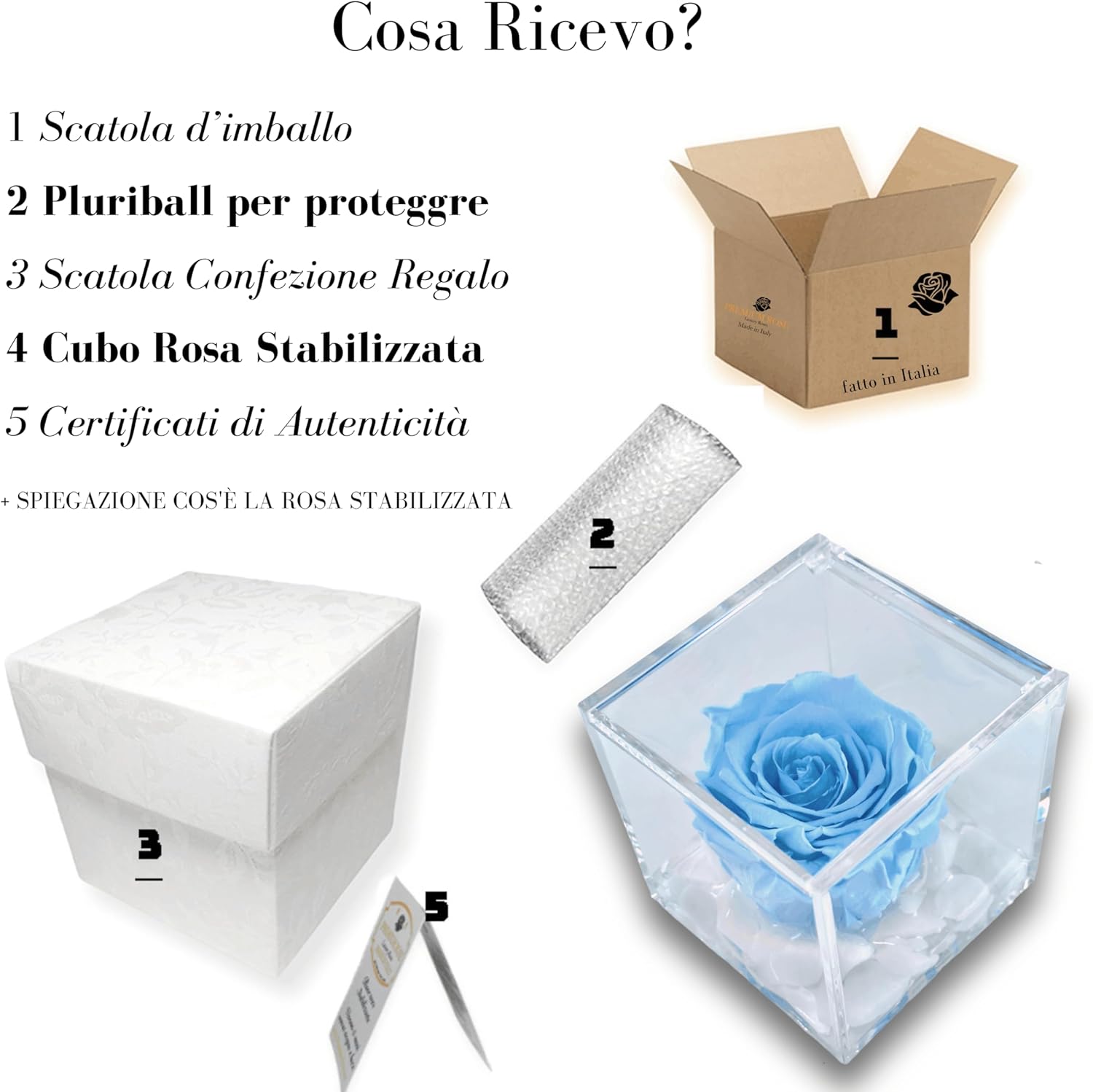 PREMIUM ROSE - Cubo Rosa Stabilizzata Rossa Profumata 8cm con Marmo di Carrara - Rosa Eterna Stabilizzata Rossa Idea per San Valentino, Natale Made in Italy - Rosso 1080