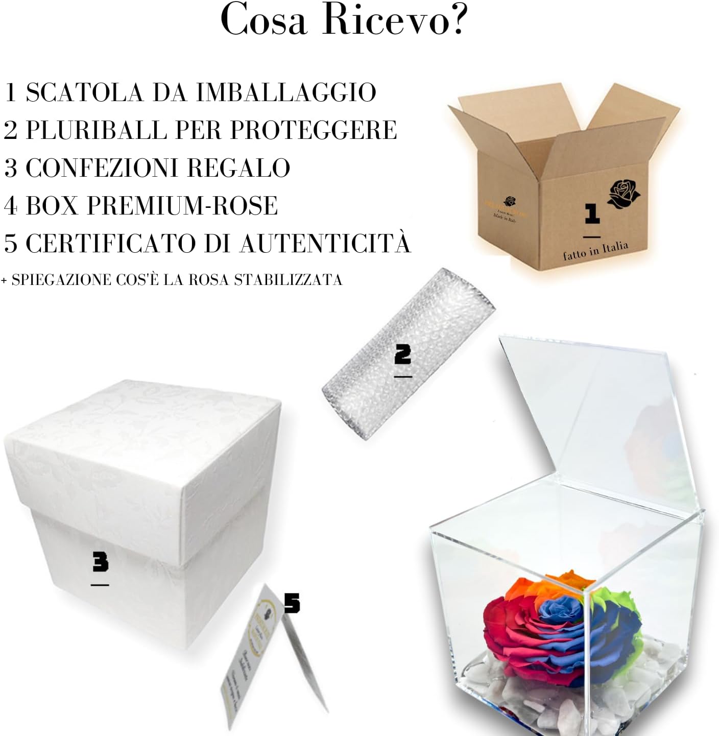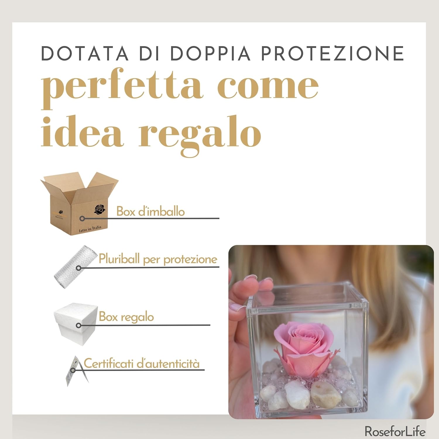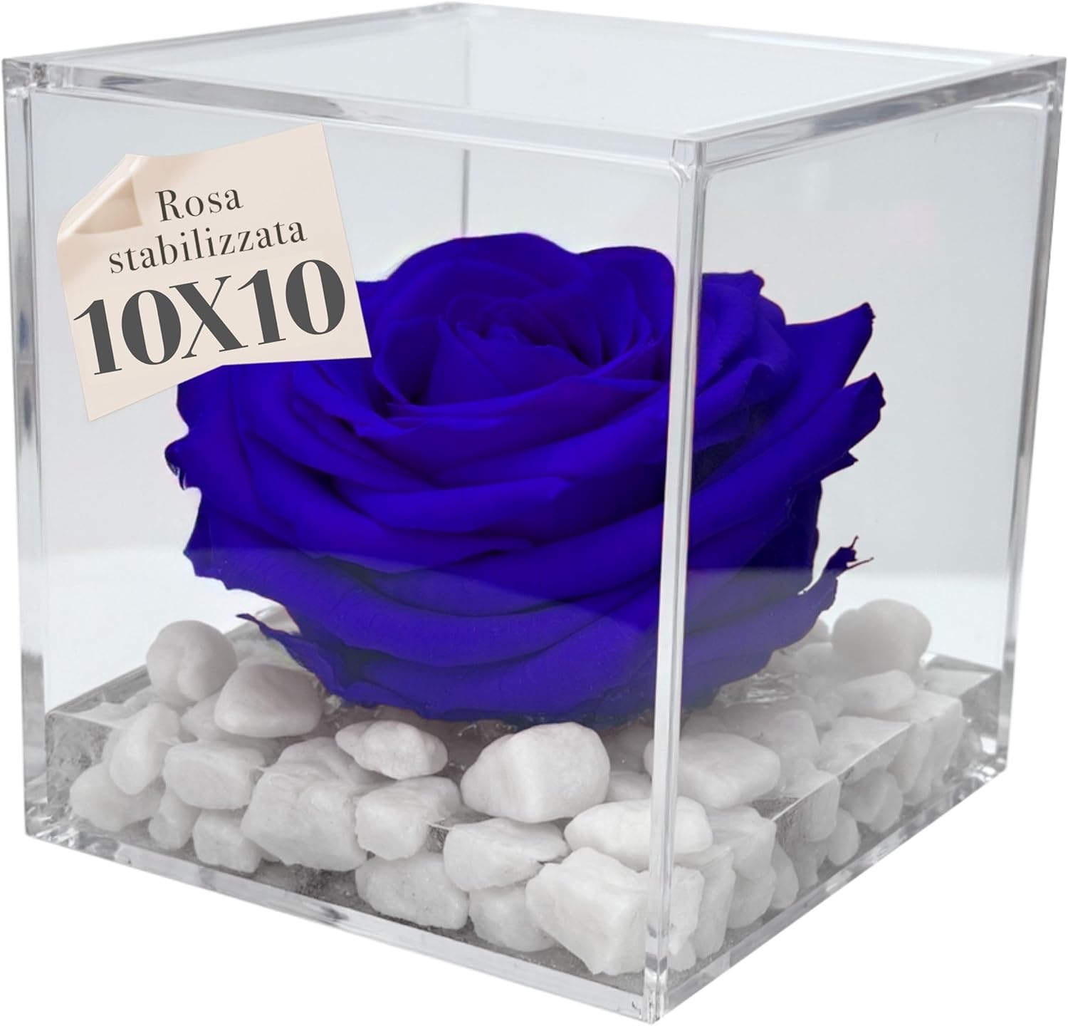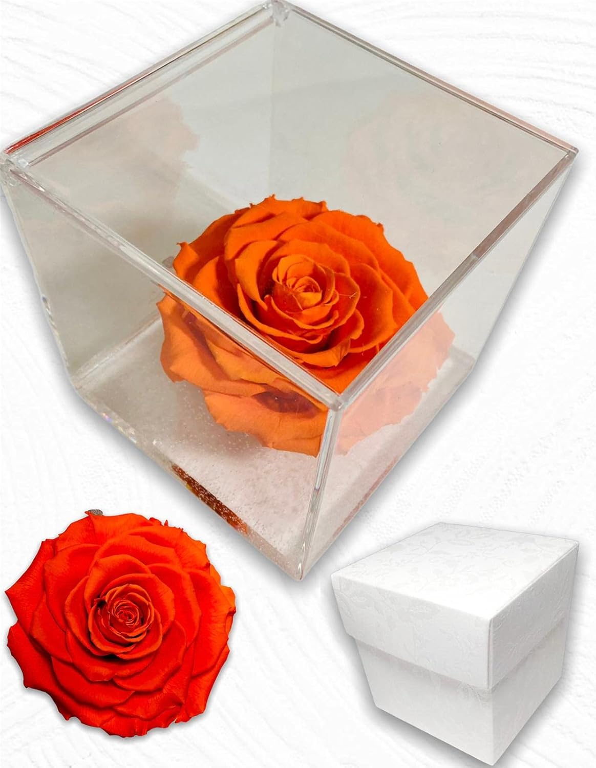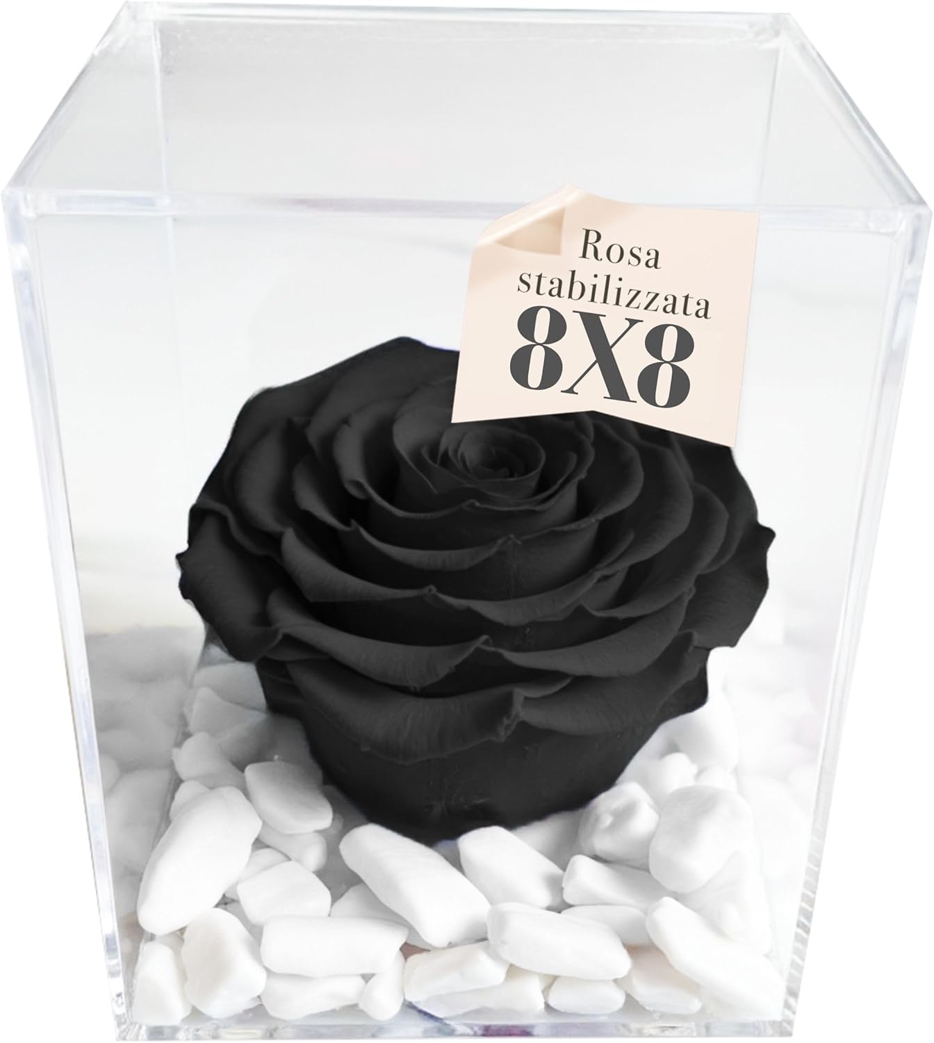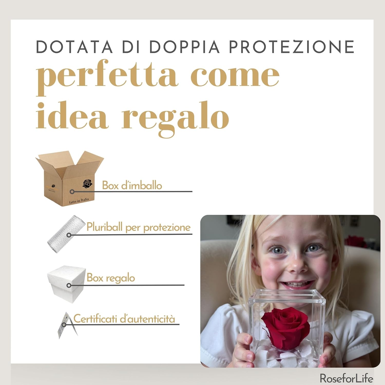PREMIUM ROSE - Cubo Rosa Stabilizzata Rossa Profumata 8cm con Marmo di Carrara - Rosa Eterna Stabilizzata Rossa Idea per San Valentino, Natale Made in Italy - Rosso 1080