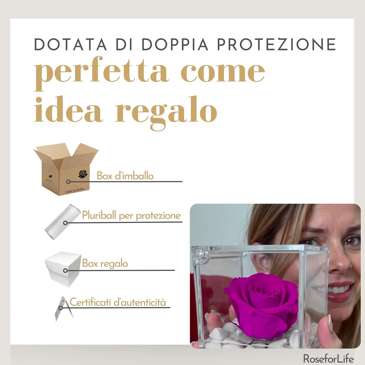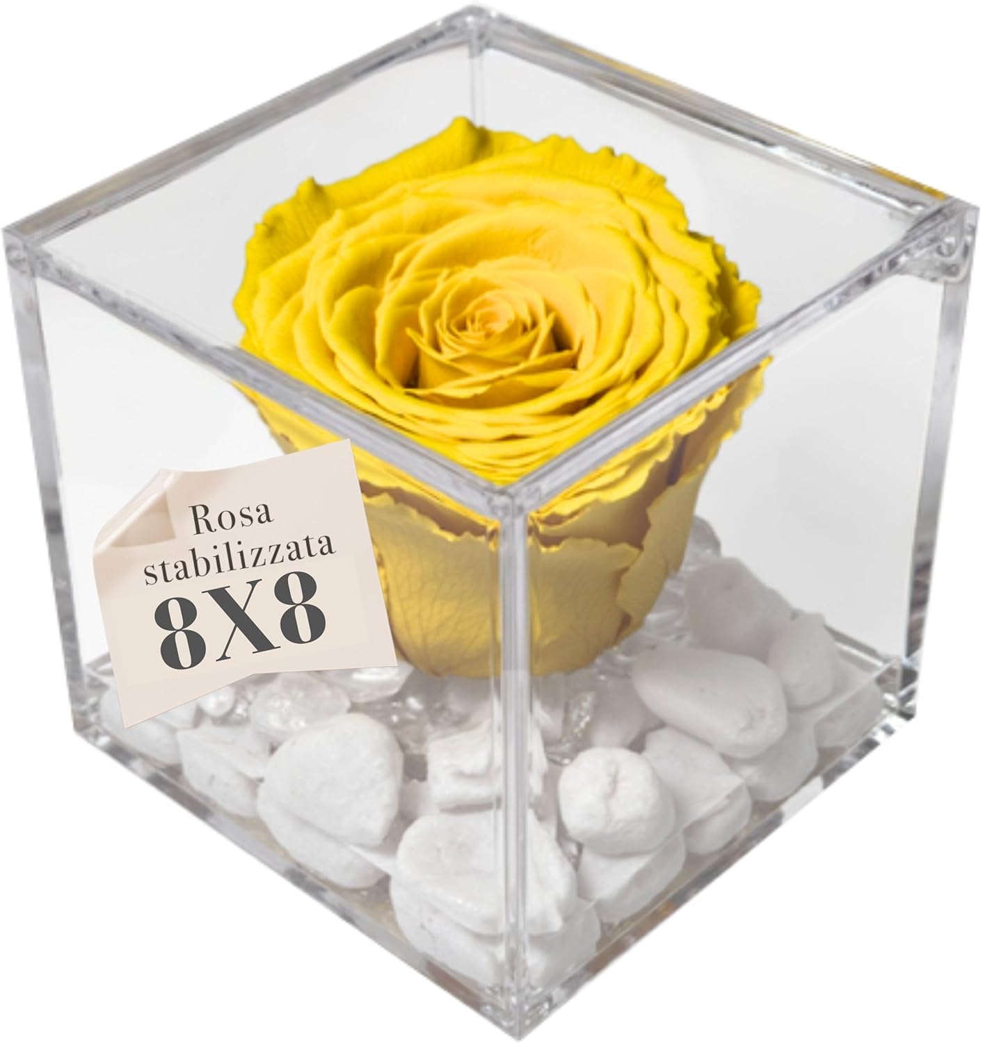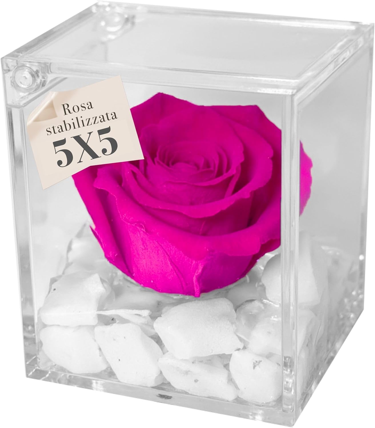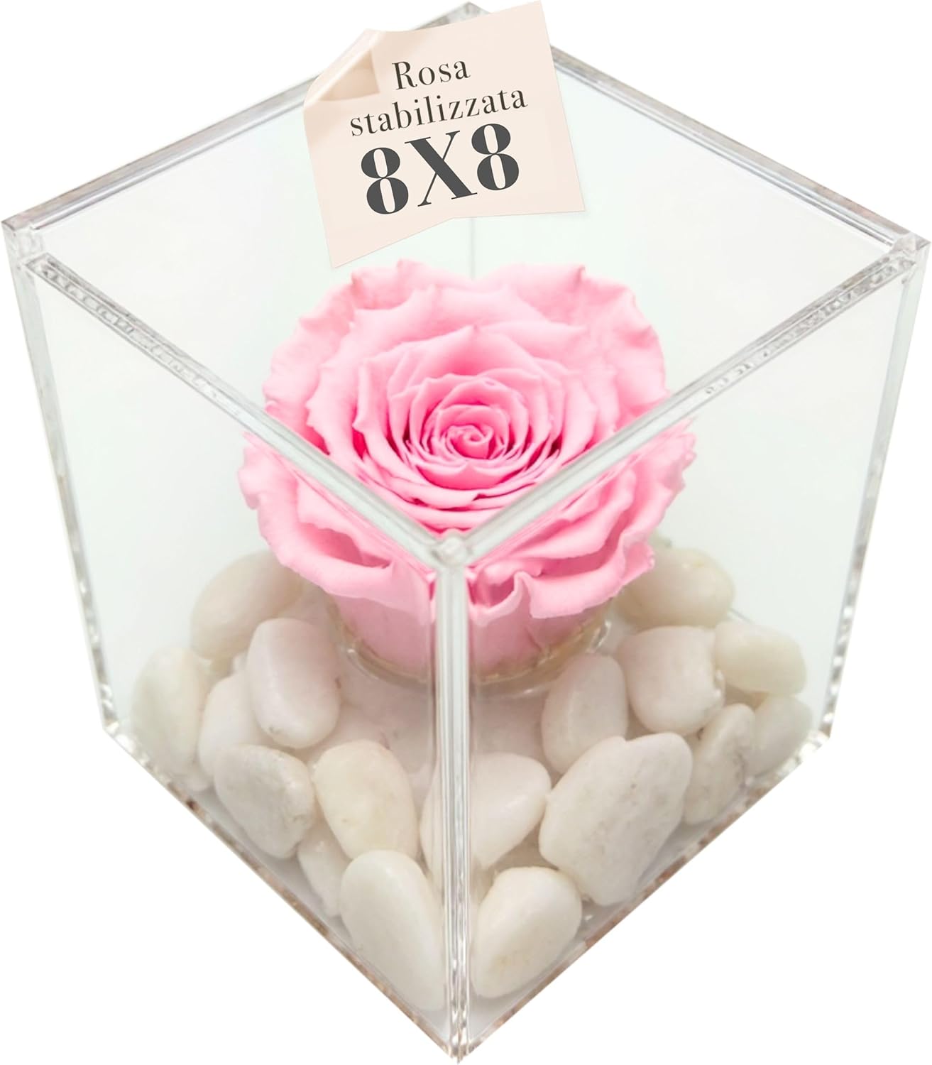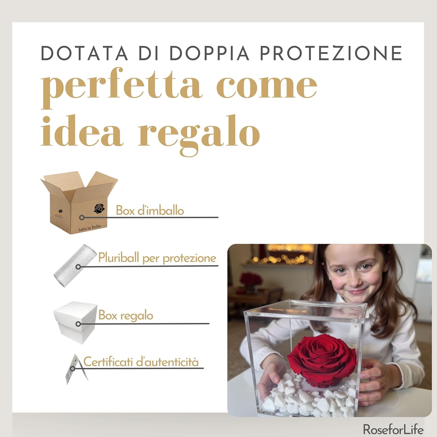 PREMIUM ROSE - Cubo Rosa Stabilizzata Rossa Profumata 8cm con Marmo di Carrara - Rosa Eterna Stabilizzata Rossa Idea per San Valentino, Natale Made in Italy - Rosso 1080