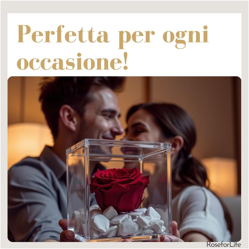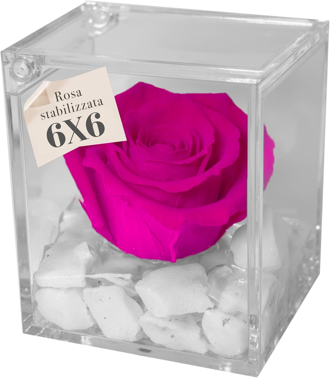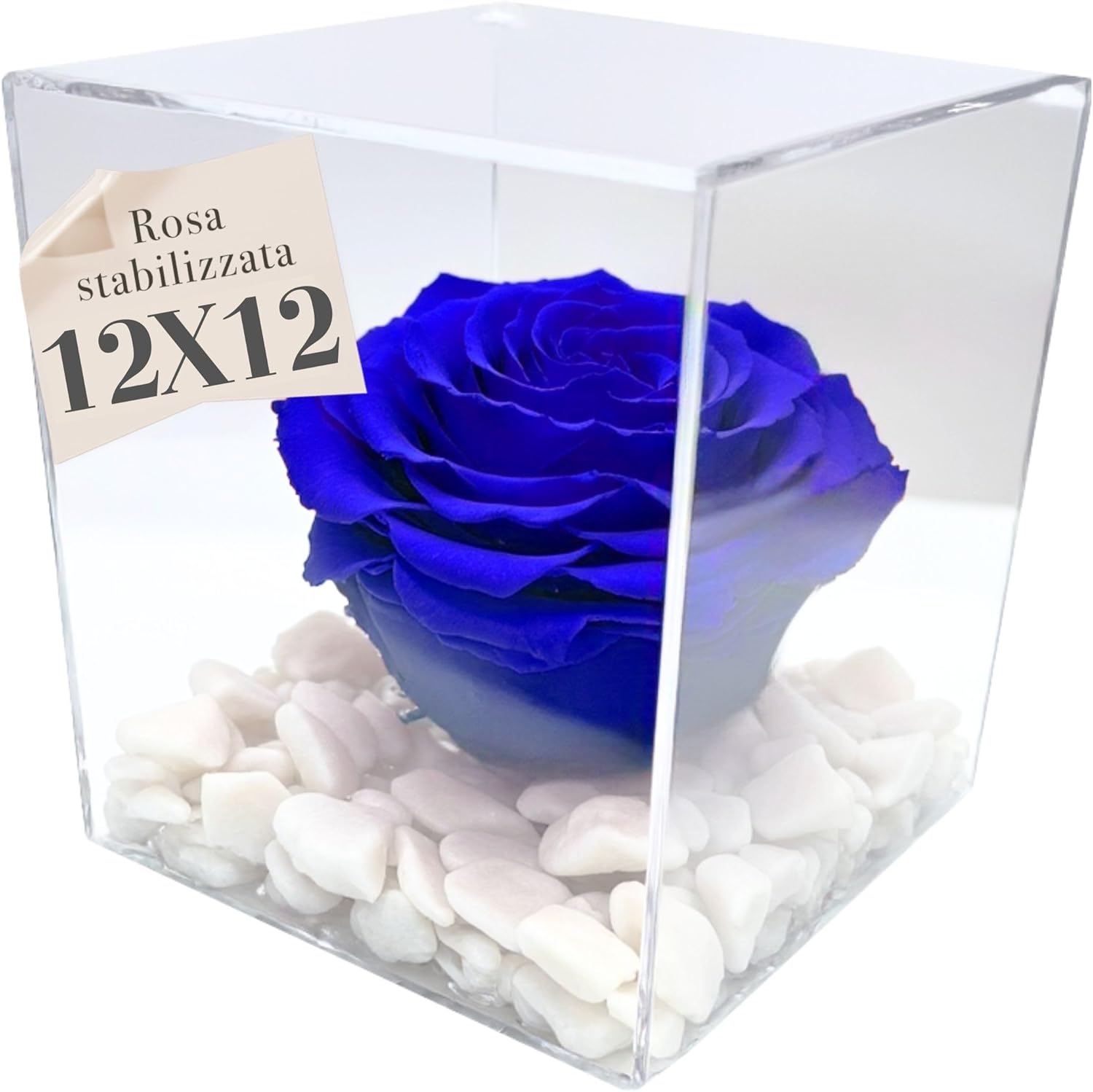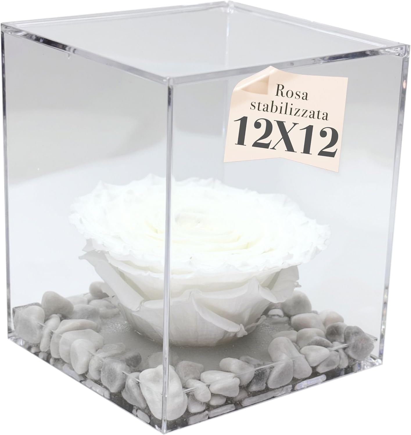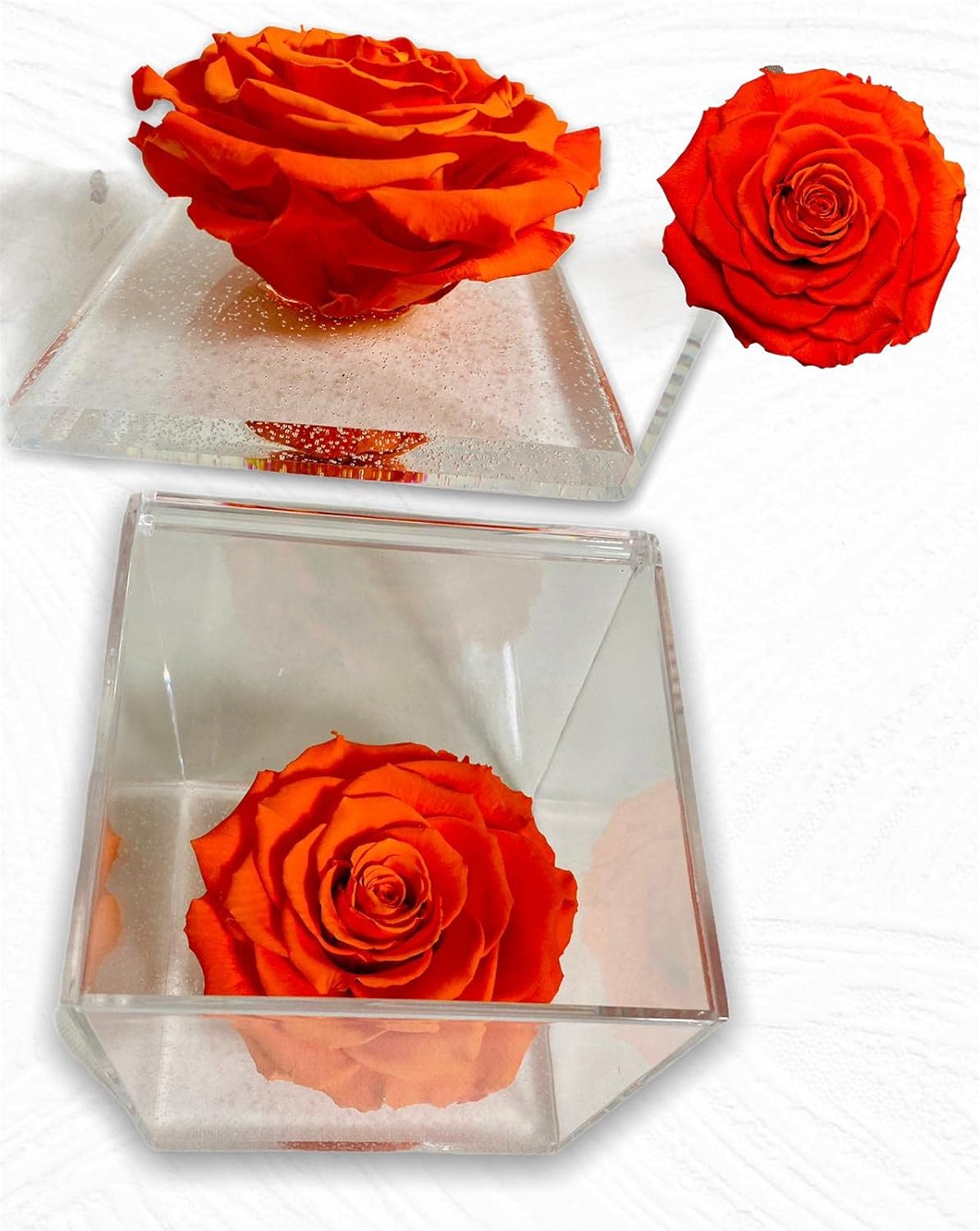 PREMIUM ROSE - Cubo Rosa Stabilizzata Rossa Profumata 8cm con Marmo di Carrara - Rosa Eterna Stabilizzata Rossa Idea per San Valentino, Natale Made in Italy - Rosso 1080