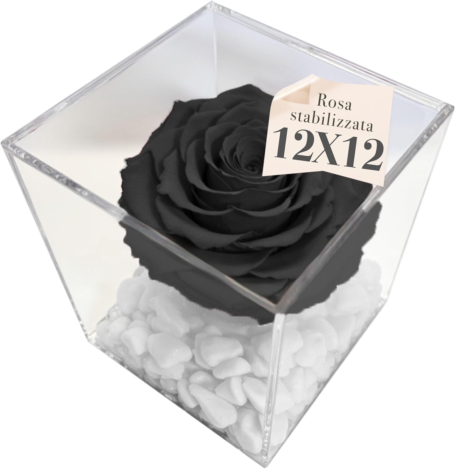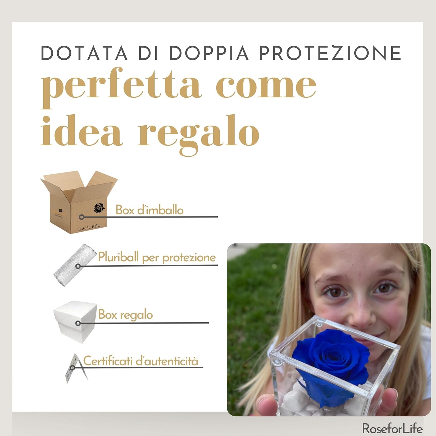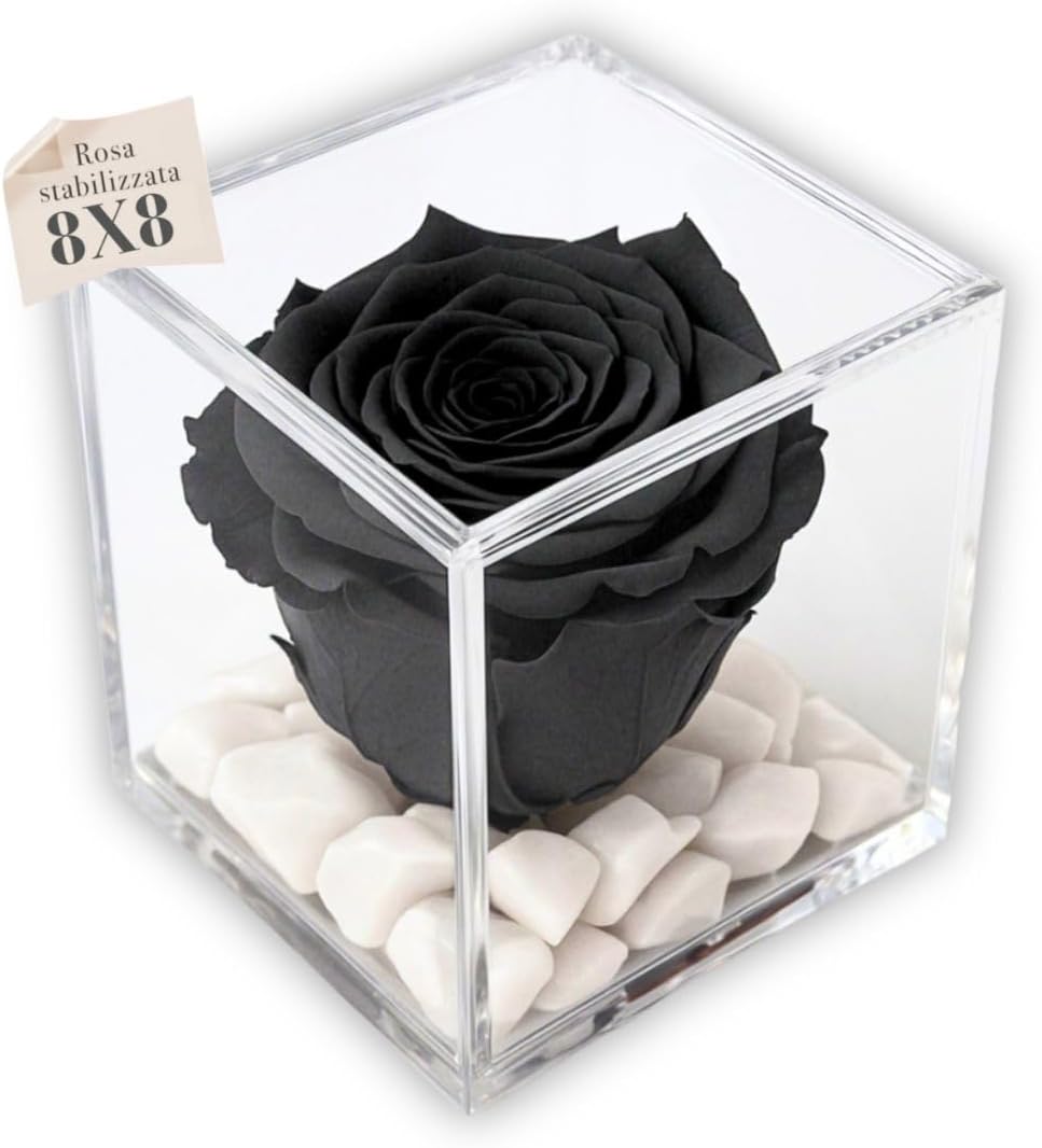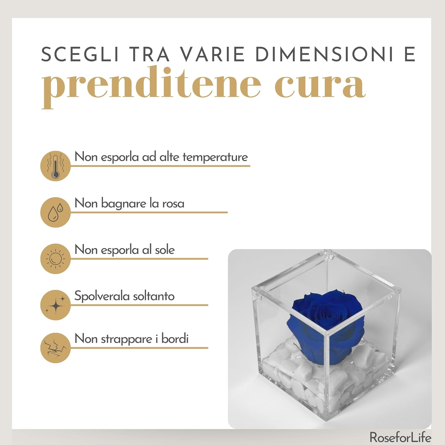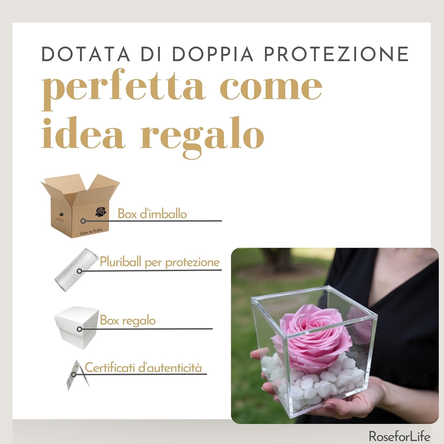 PREMIUM ROSE - Cubo Rosa Stabilizzata Rossa Profumata 8cm con Marmo di Carrara - Rosa Eterna Stabilizzata Rossa Idea per San Valentino, Natale Made in Italy - Rosso 1080