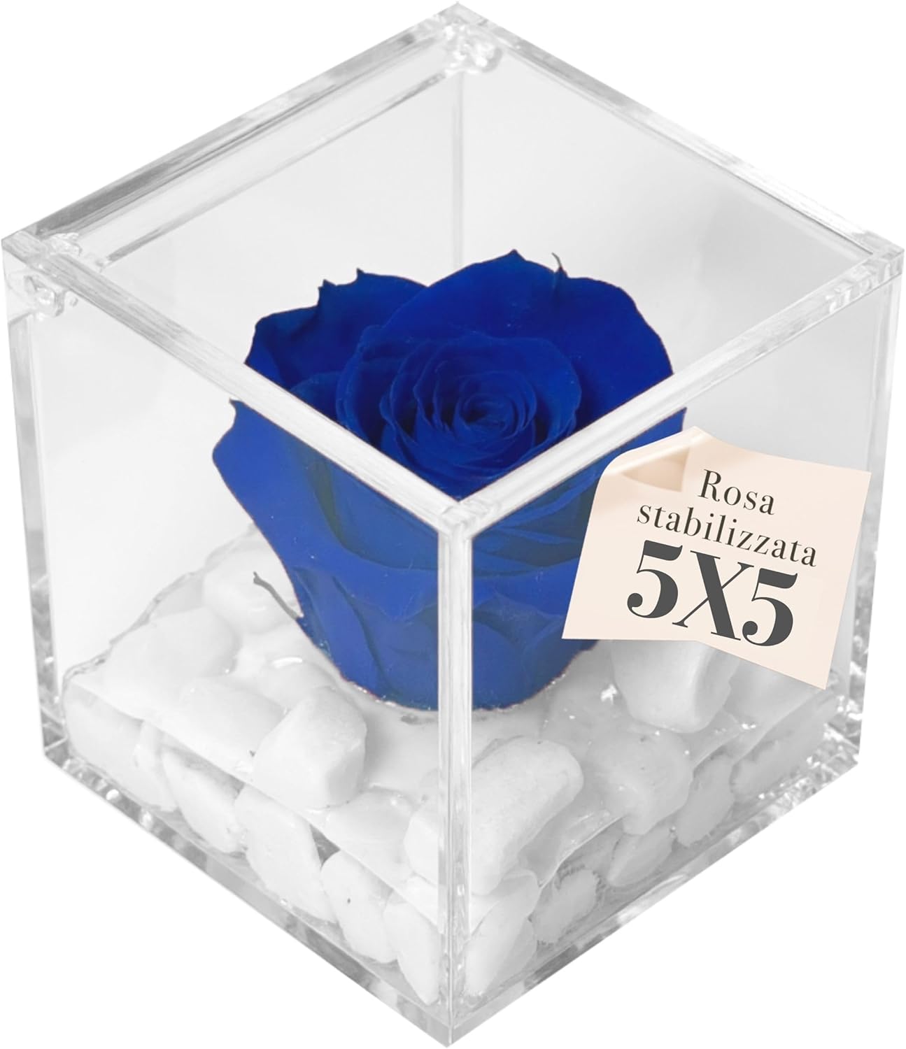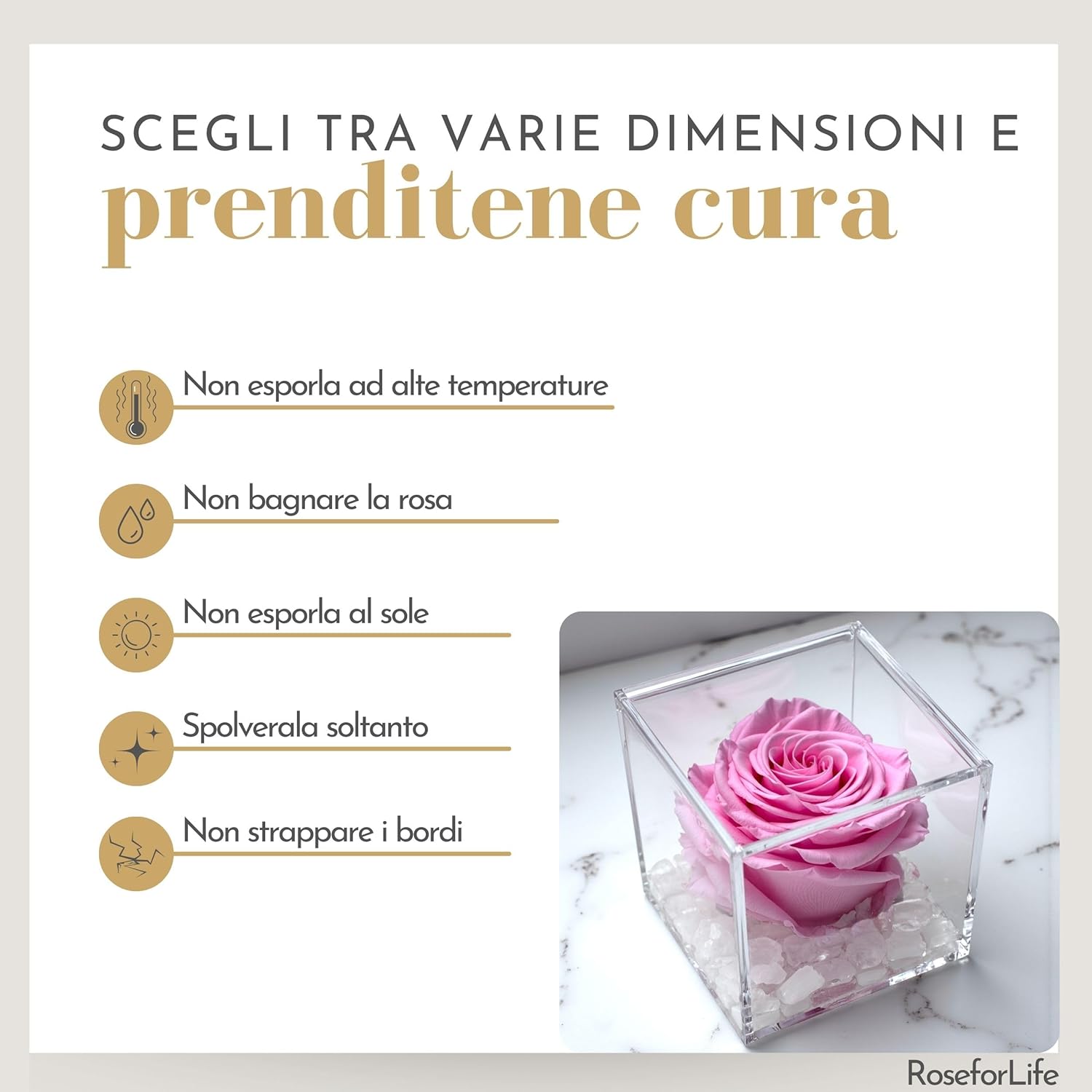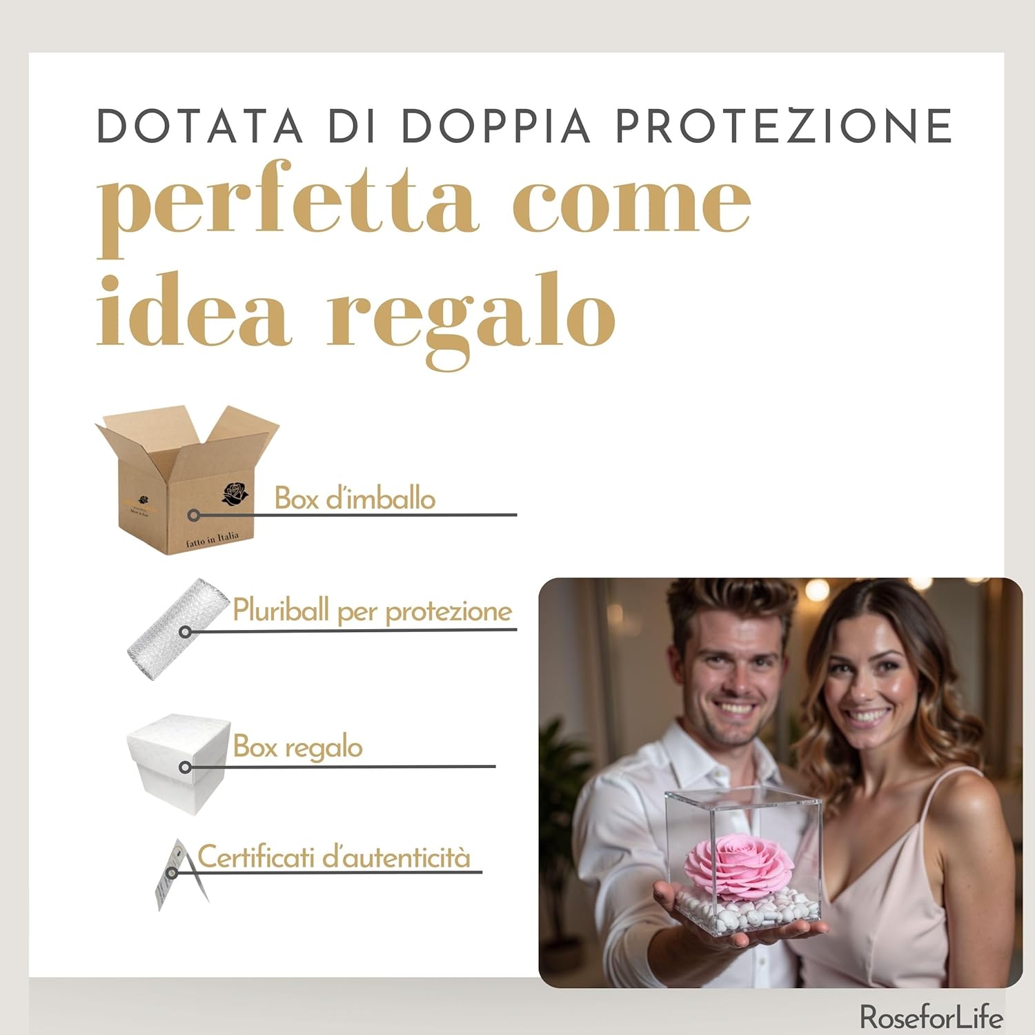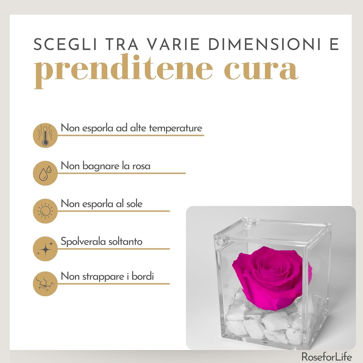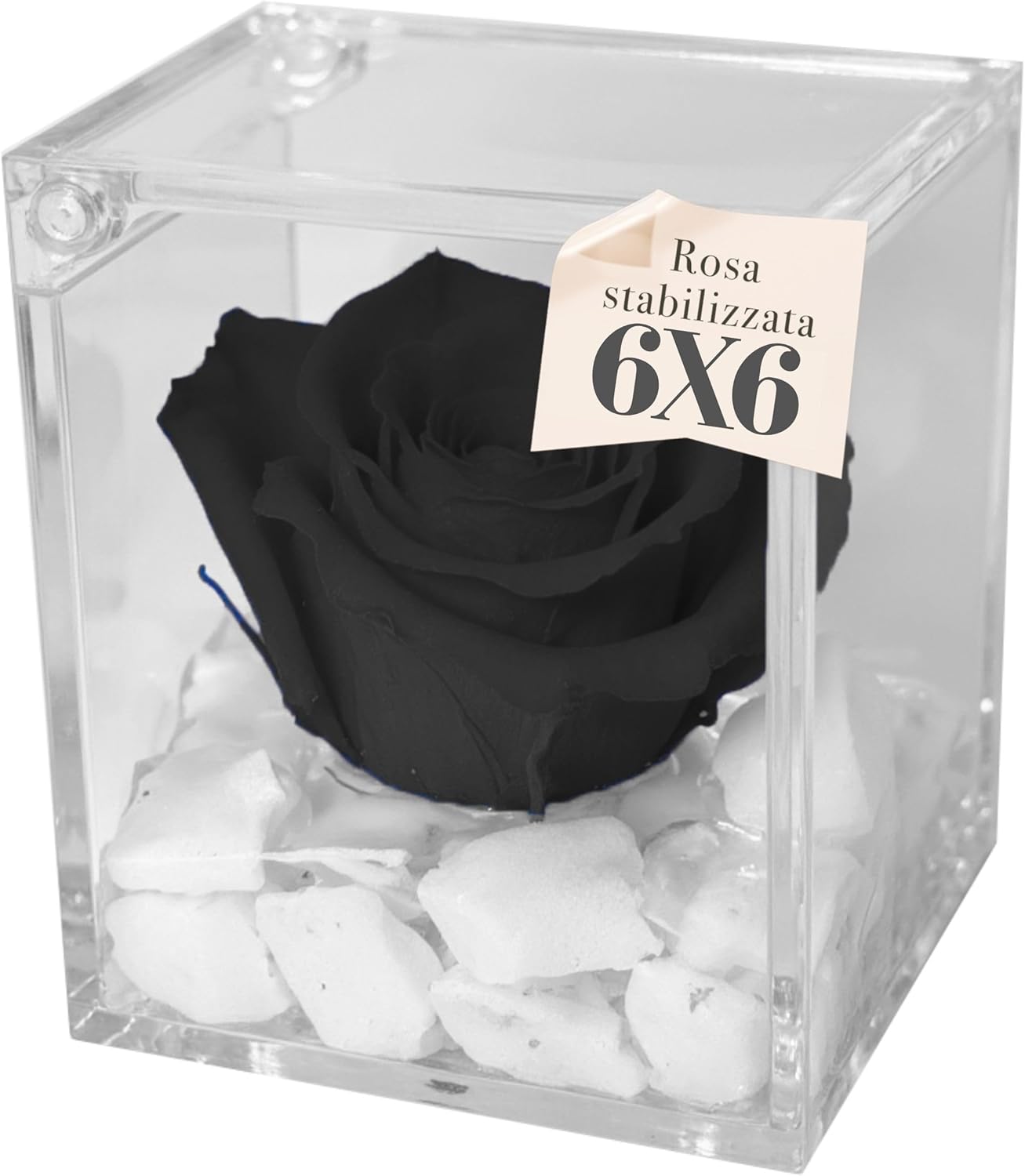 PREMIUM ROSE - Cubo Rosa Stabilizzata Rossa Profumata 8cm con Marmo di Carrara - Rosa Eterna Stabilizzata Rossa Idea per San Valentino, Natale Made in Italy - Rosso 1080