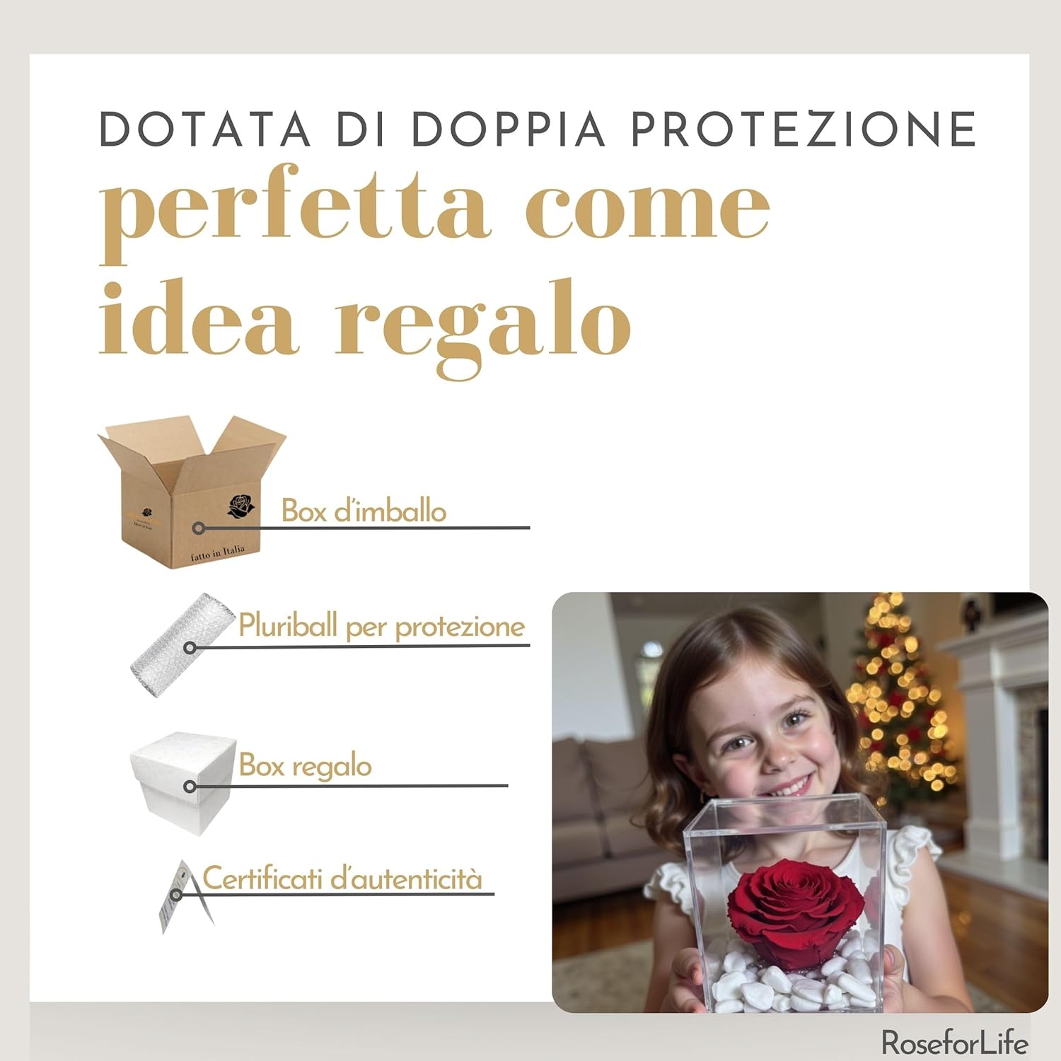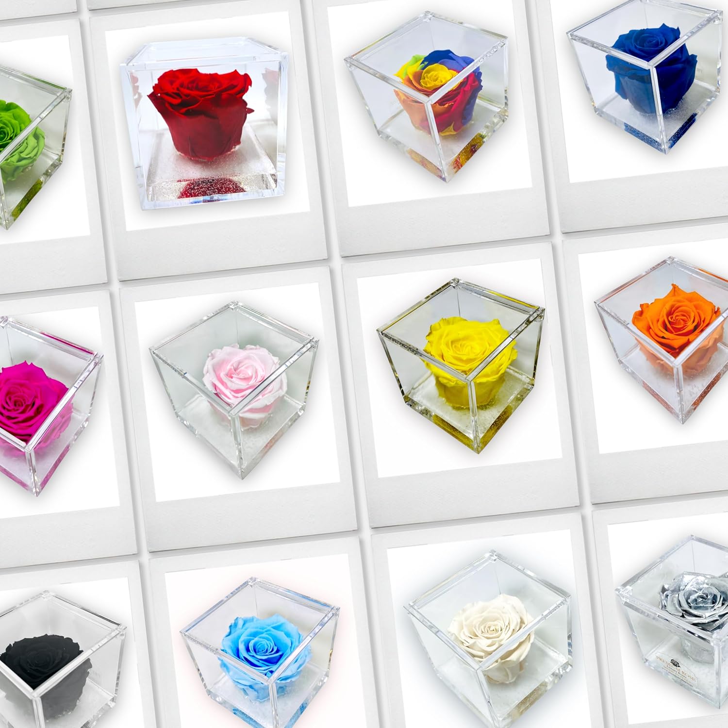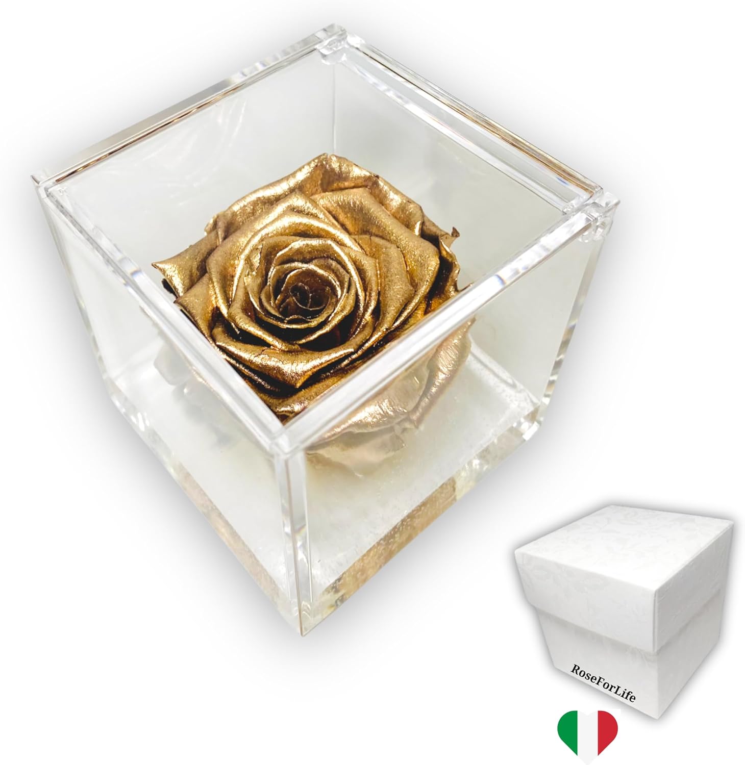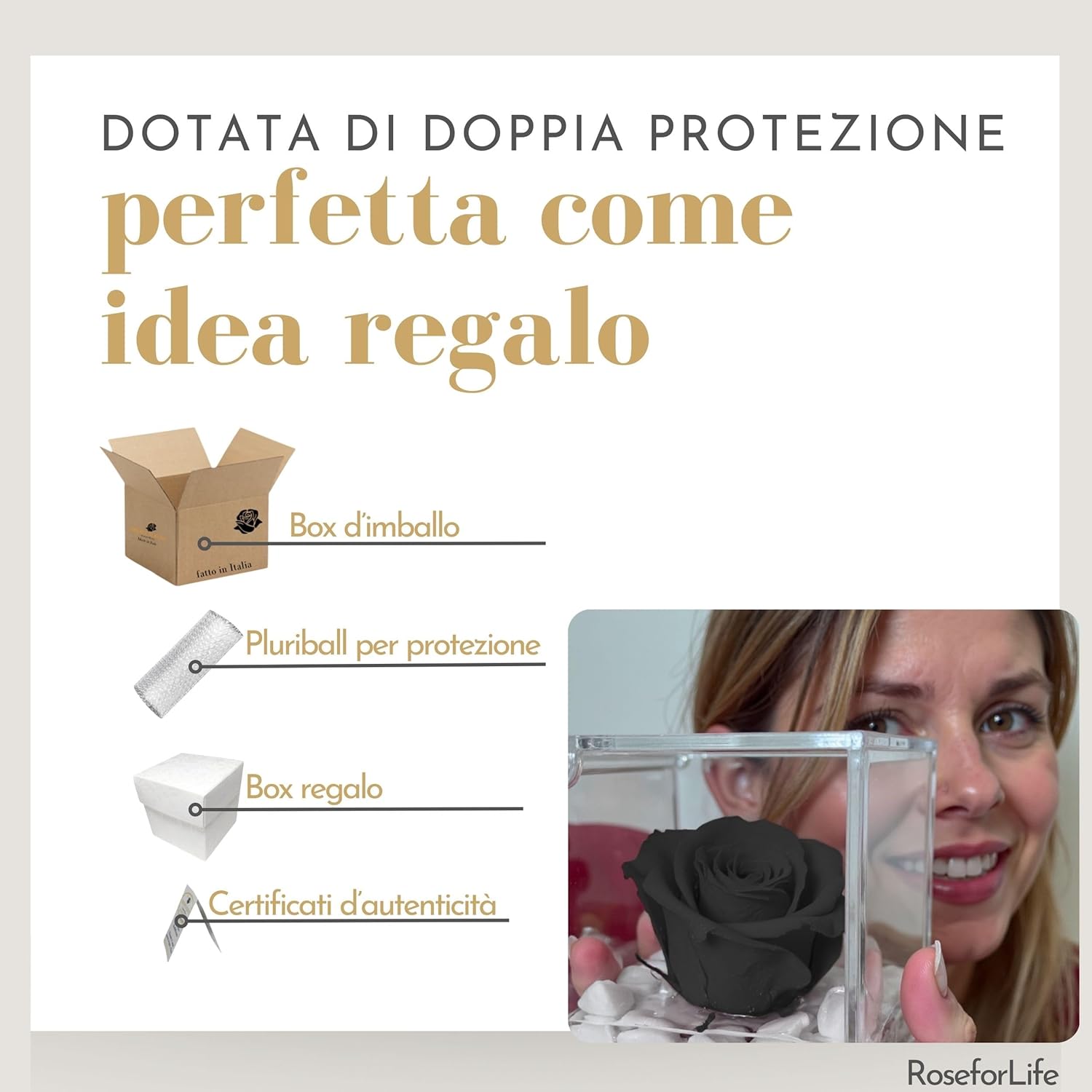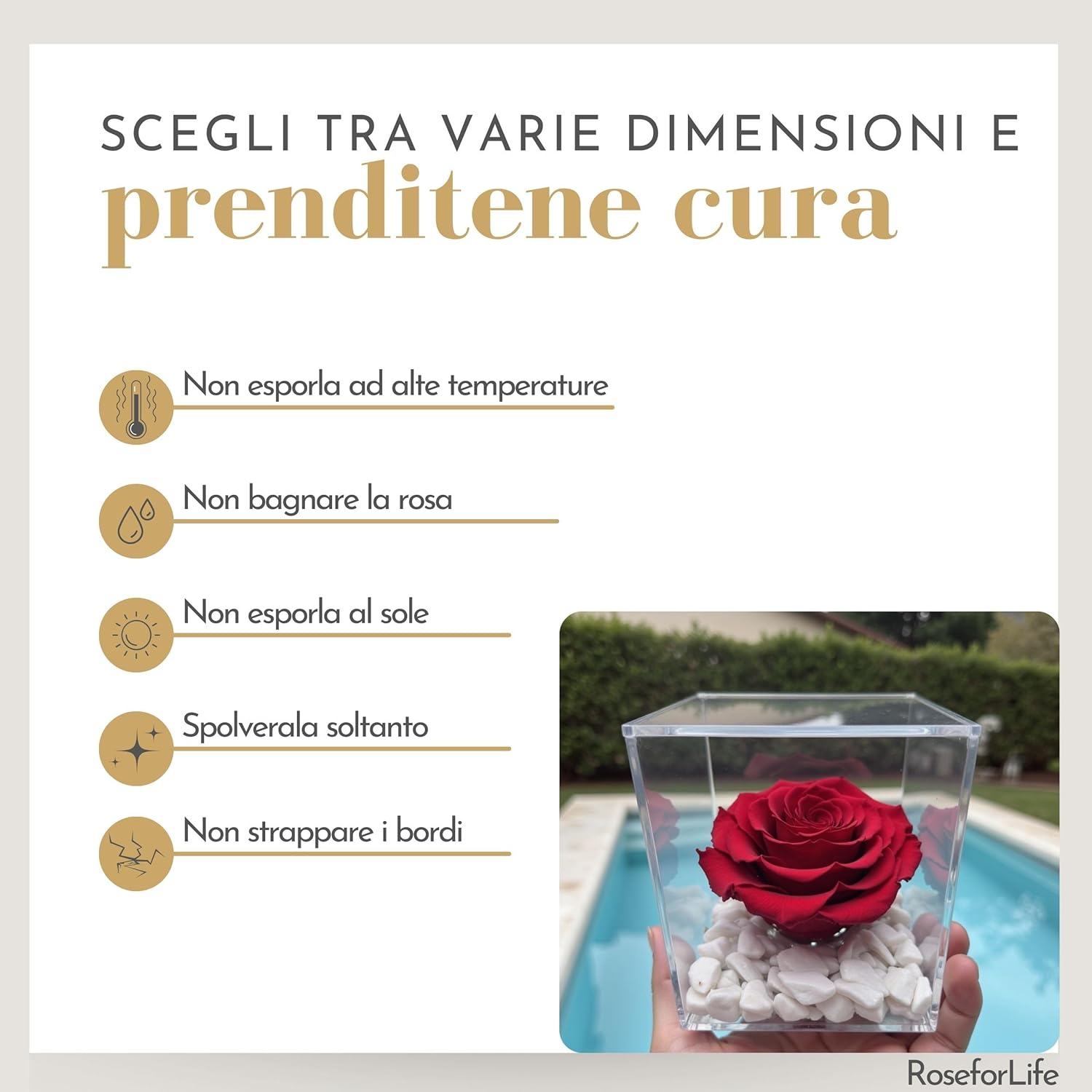 PREMIUM ROSE - Cubo Rosa Stabilizzata Rossa Profumata 8cm con Marmo di Carrara - Rosa Eterna Stabilizzata Rossa Idea per San Valentino, Natale Made in Italy - Rosso 1080