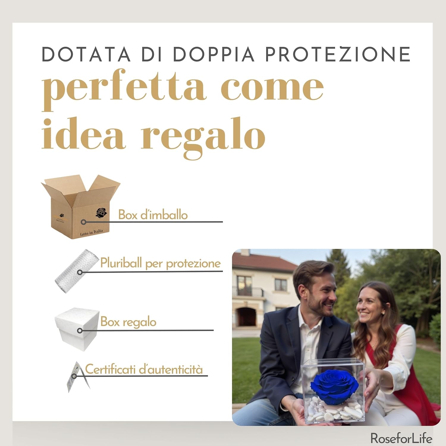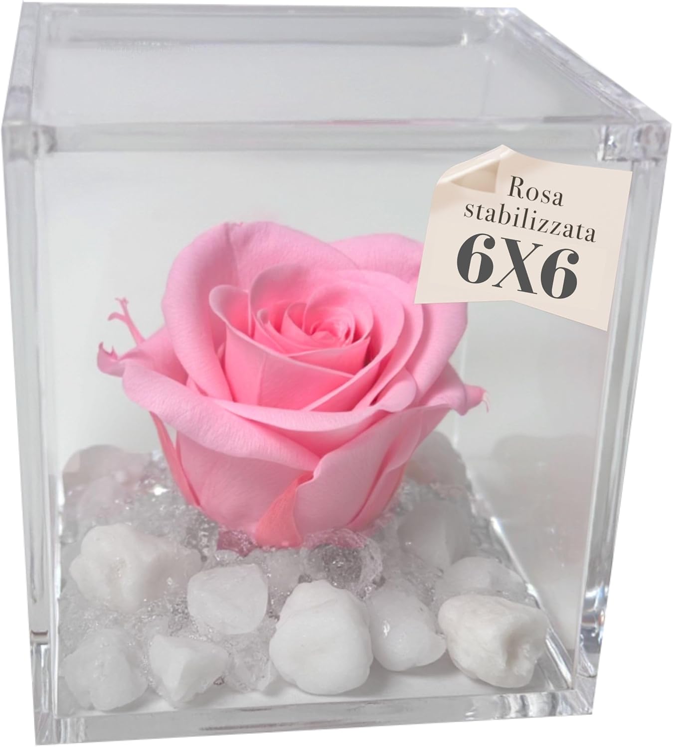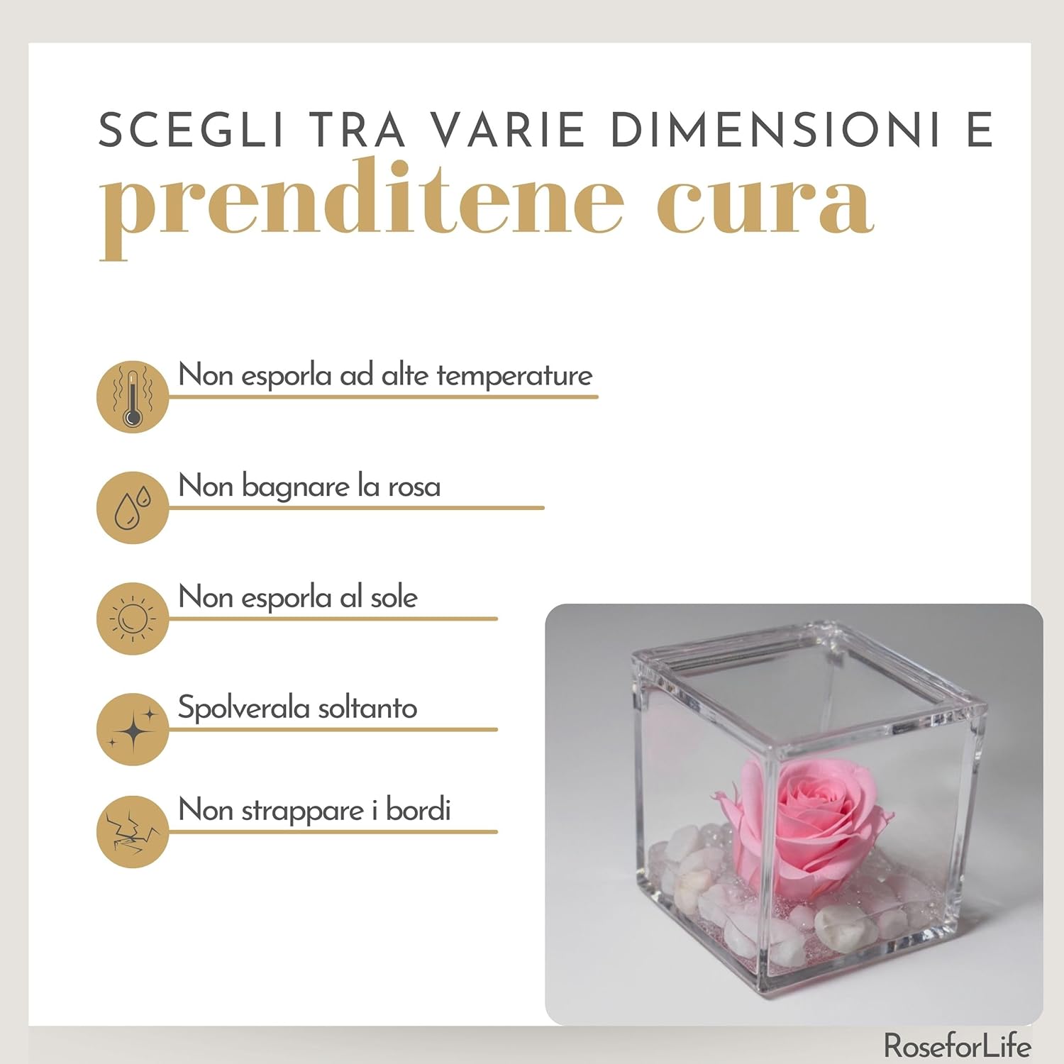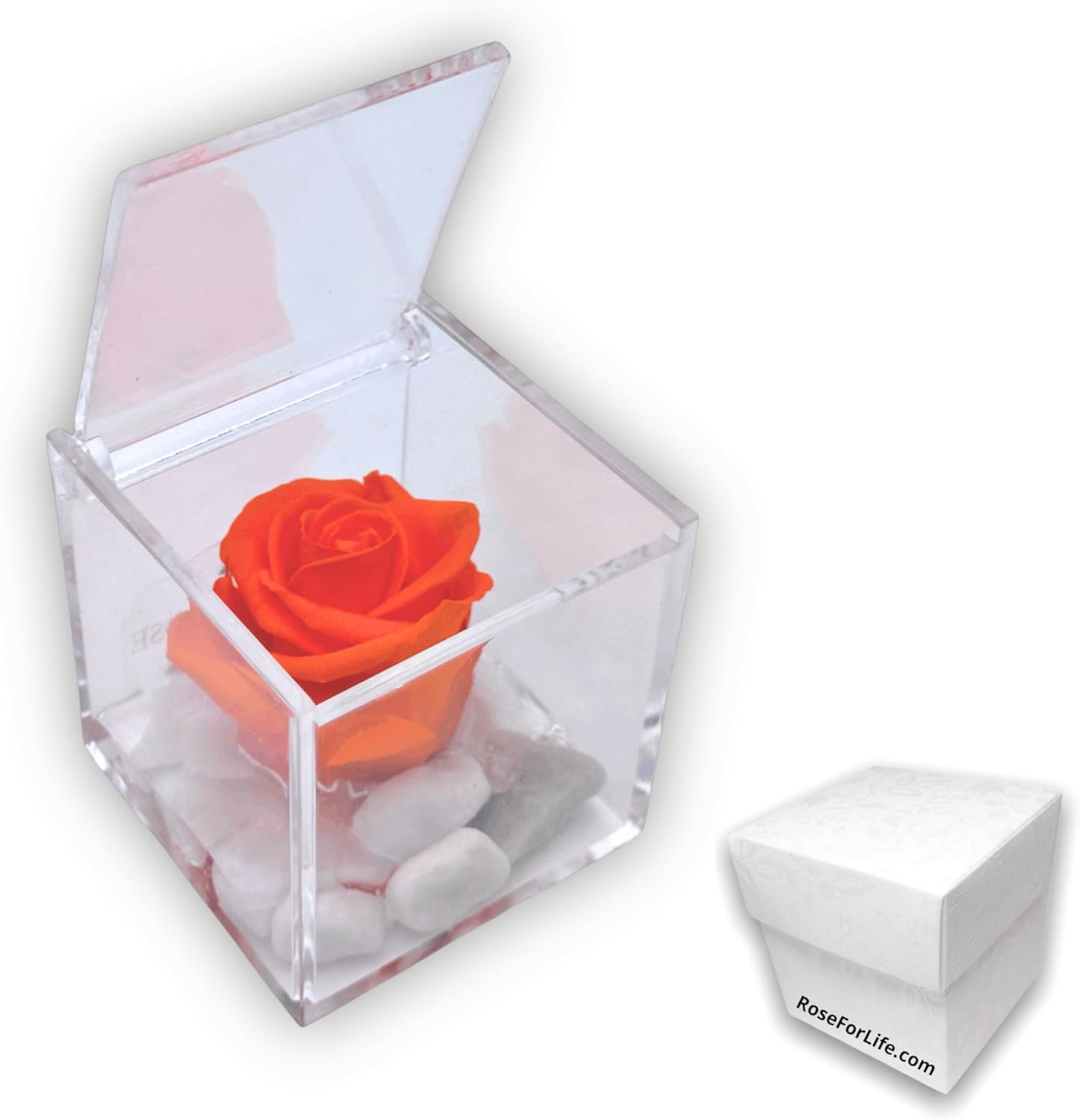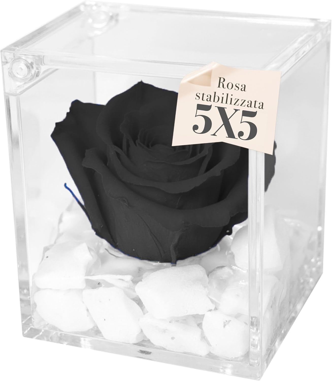 PREMIUM ROSE - Cubo Rosa Stabilizzata Rossa Profumata 8cm con Marmo di Carrara - Rosa Eterna Stabilizzata Rossa Idea per San Valentino, Natale Made in Italy - Rosso 1080