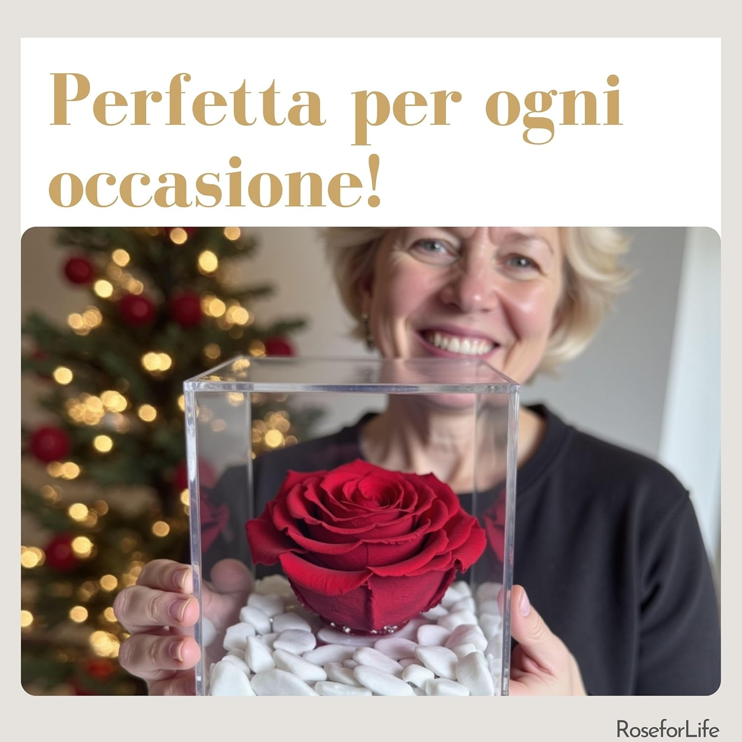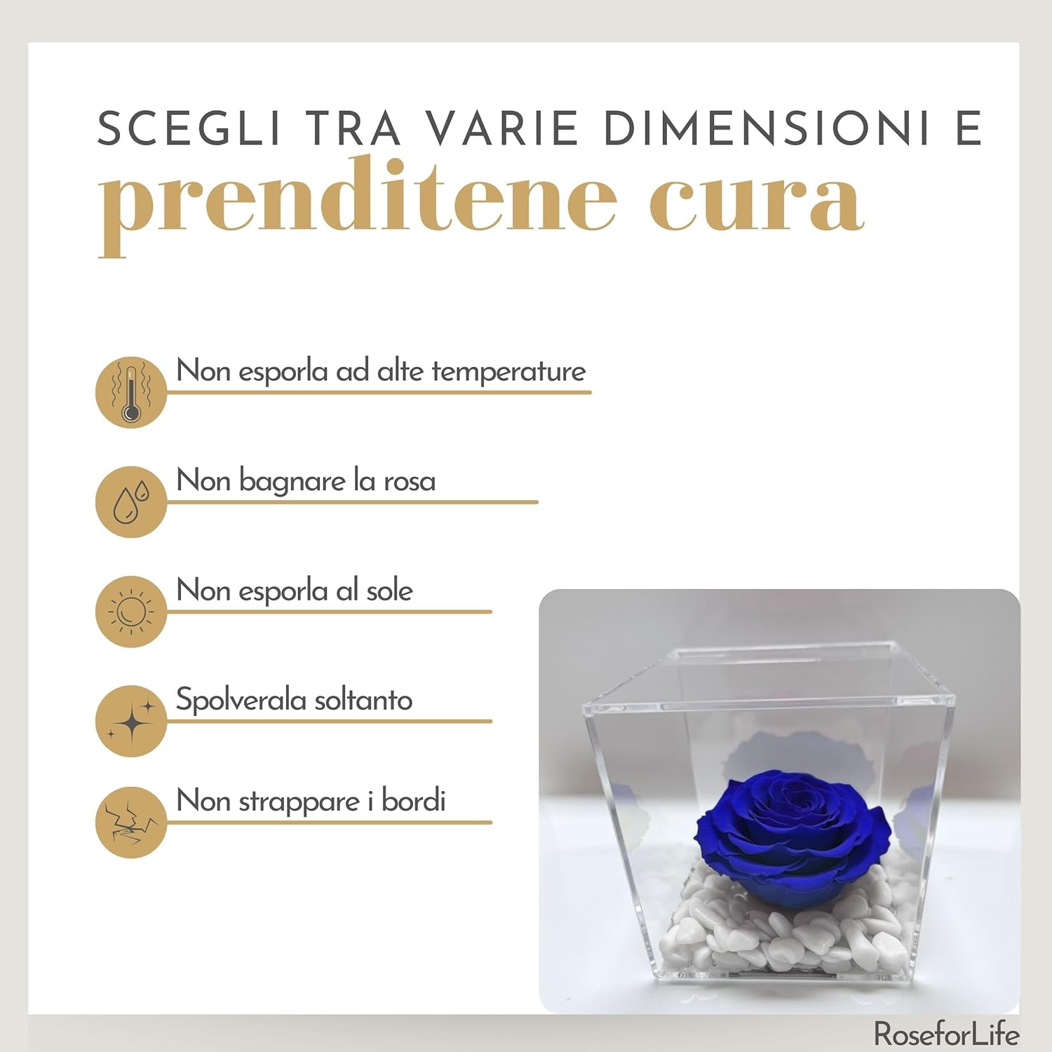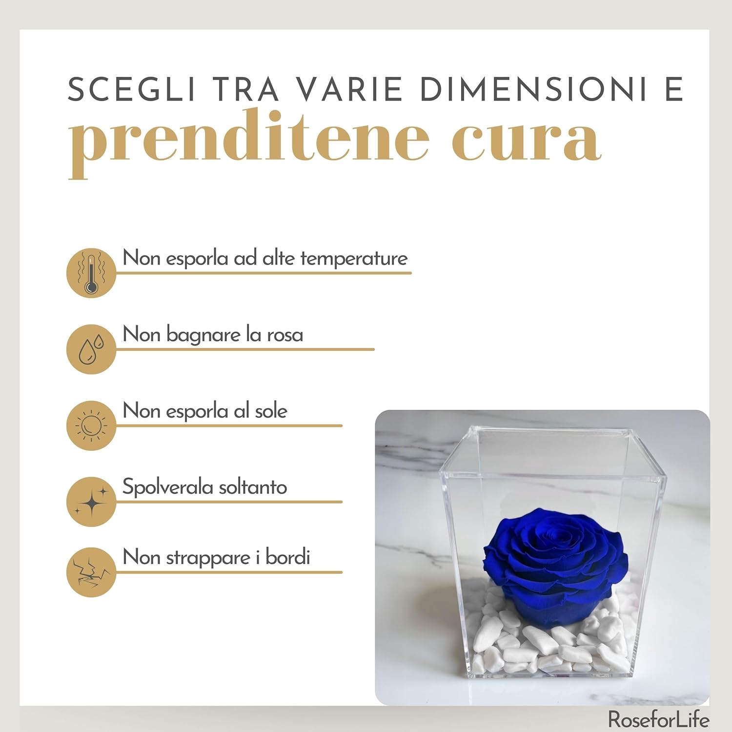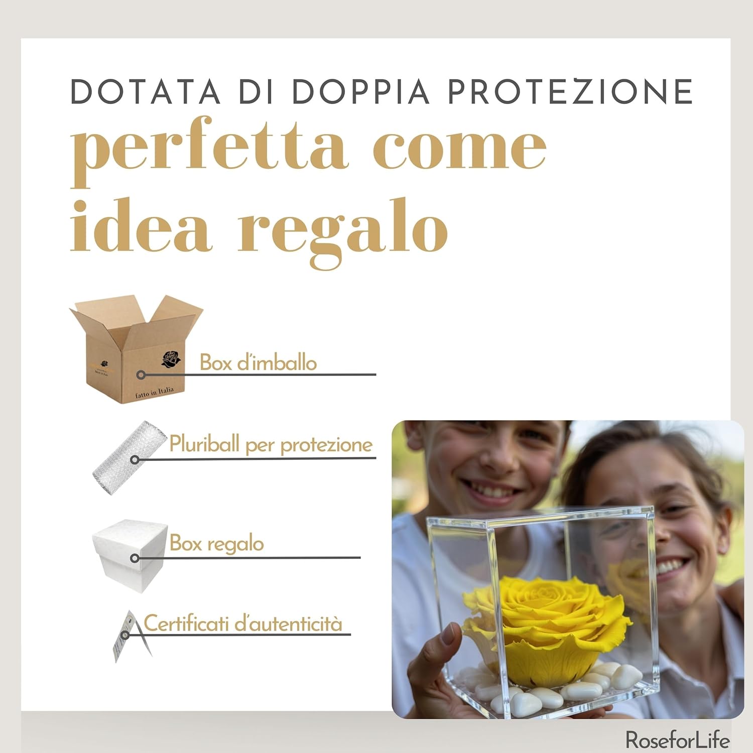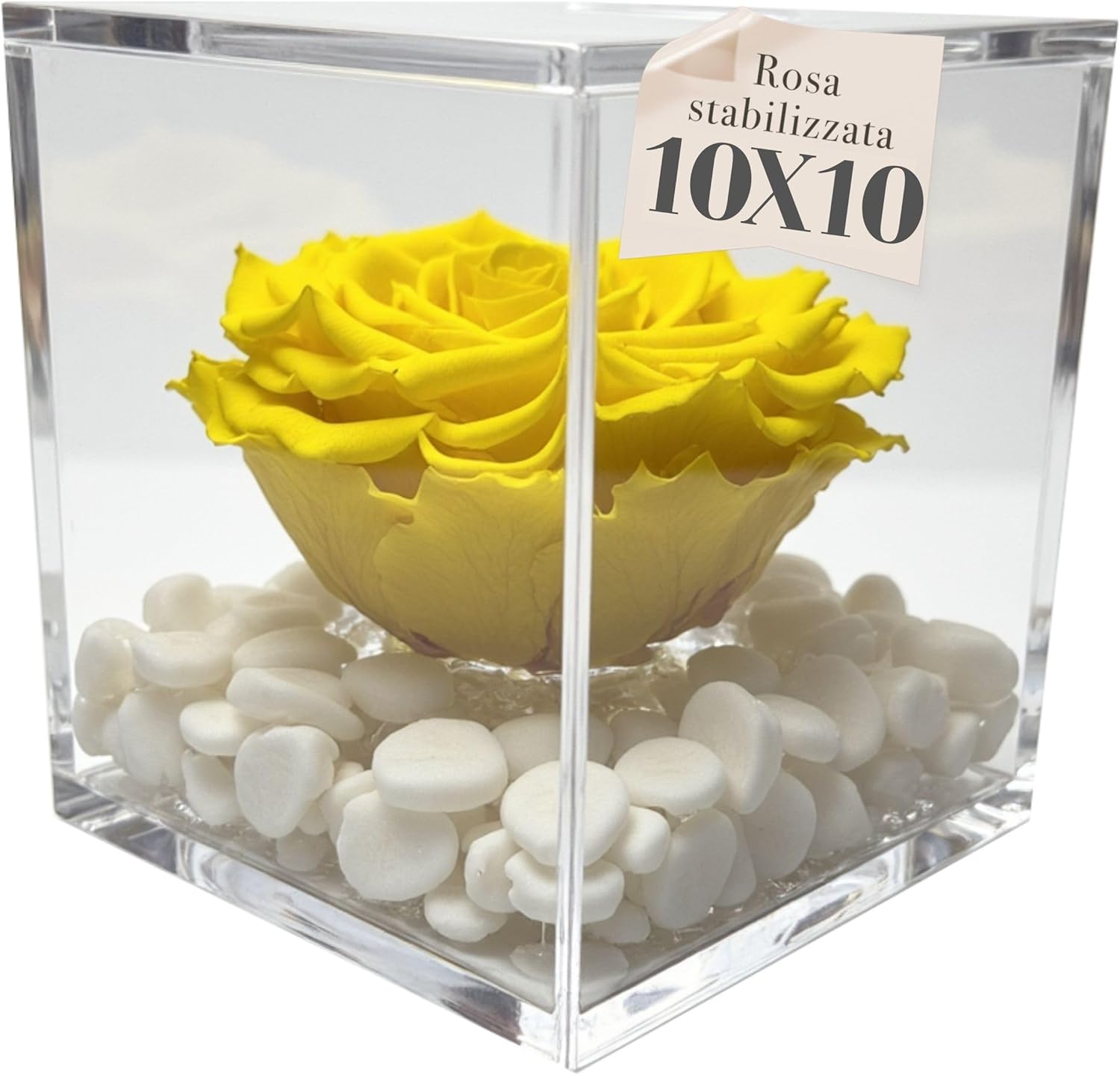 PREMIUM ROSE - Cubo Rosa Stabilizzata Rossa Profumata 8cm con Marmo di Carrara - Rosa Eterna Stabilizzata Rossa Idea per San Valentino, Natale Made in Italy - Rosso 1080