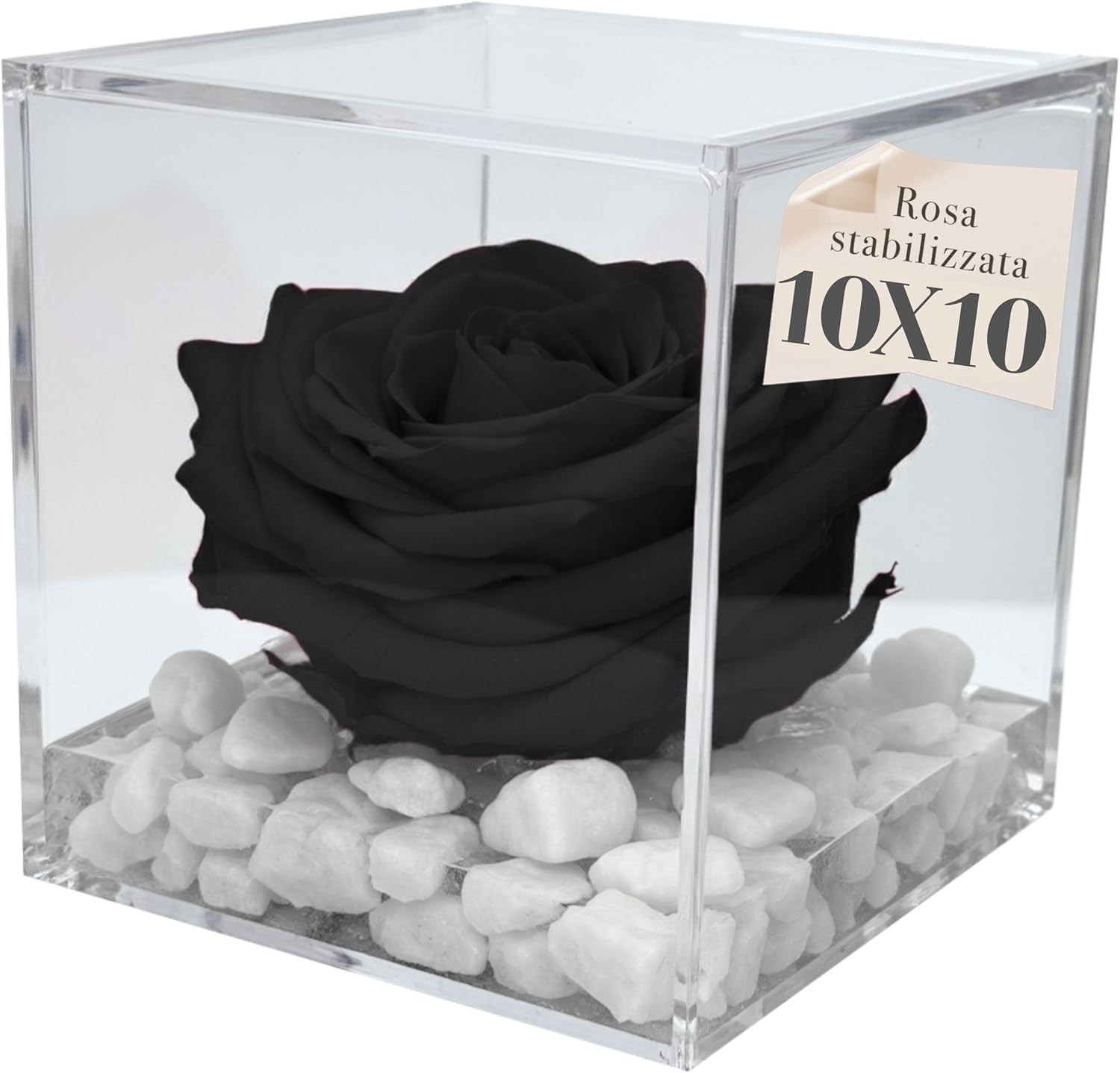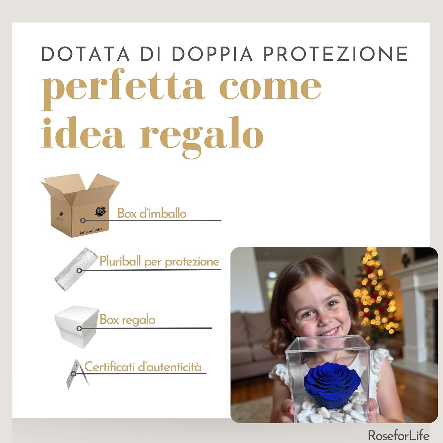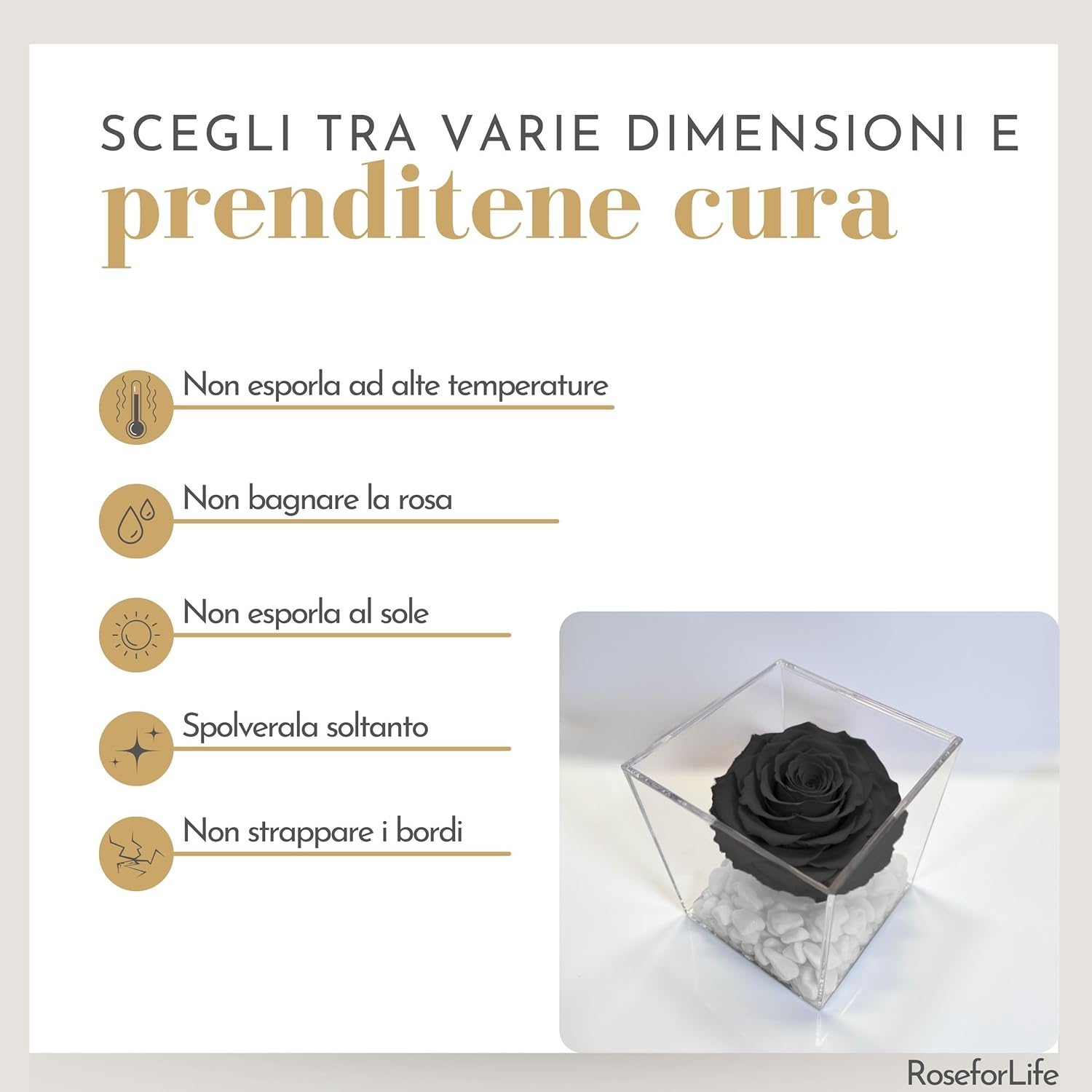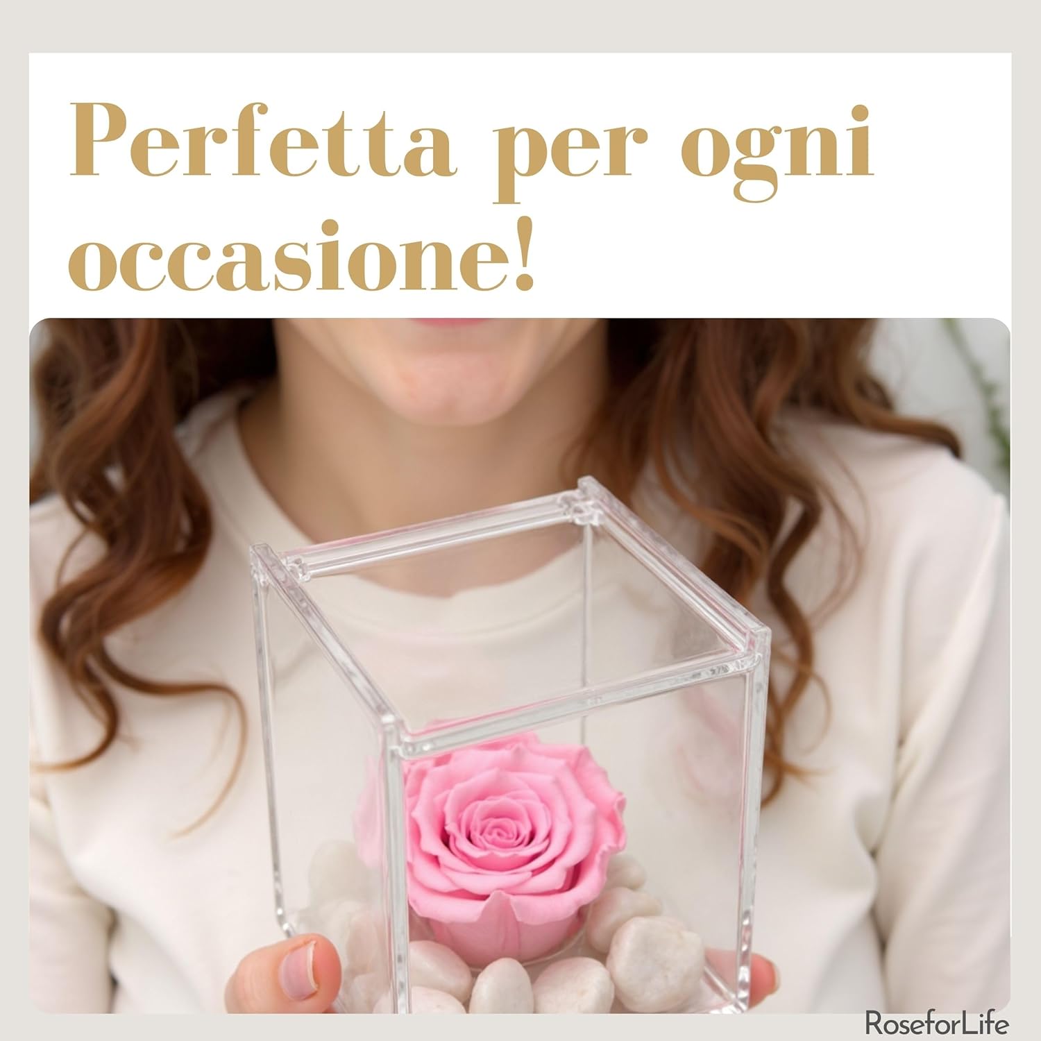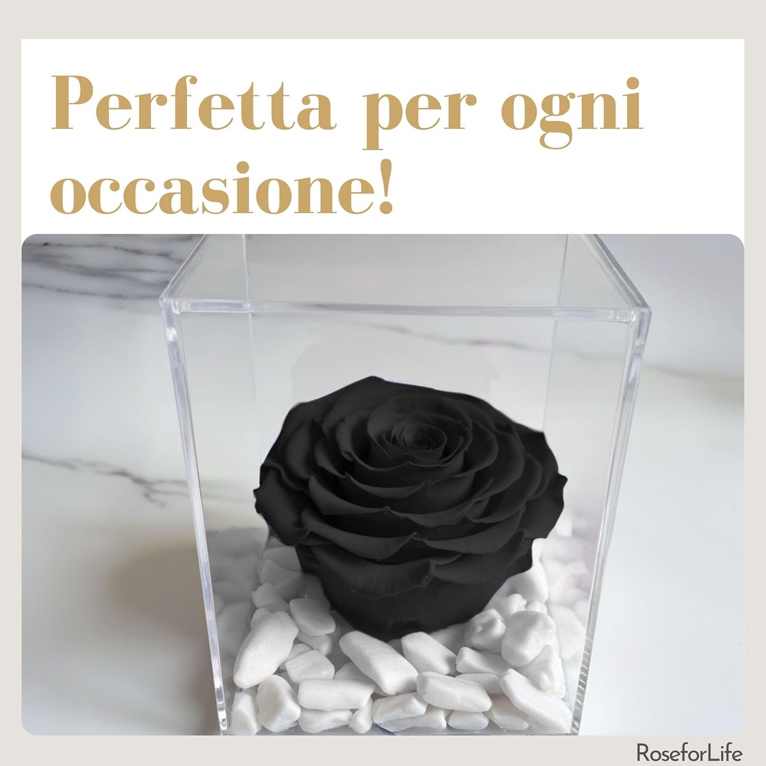 PREMIUM ROSE - Cubo Rosa Stabilizzata Rossa Profumata 8cm con Marmo di Carrara - Rosa Eterna Stabilizzata Rossa Idea per San Valentino, Natale Made in Italy - Rosso 1080